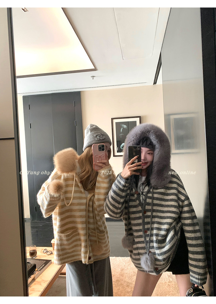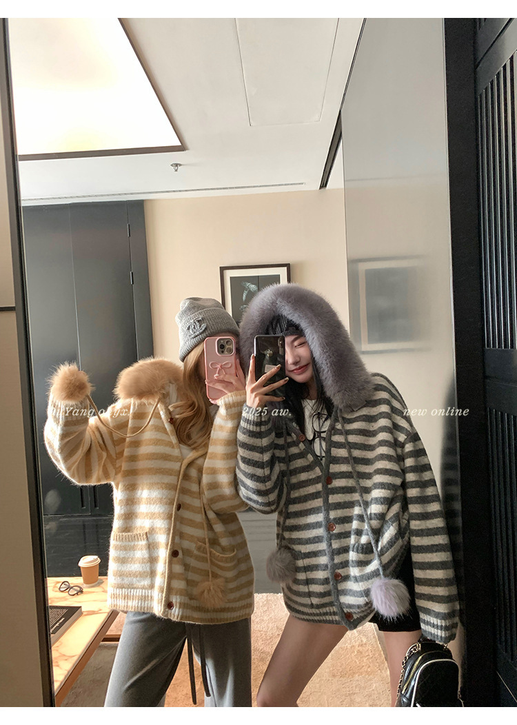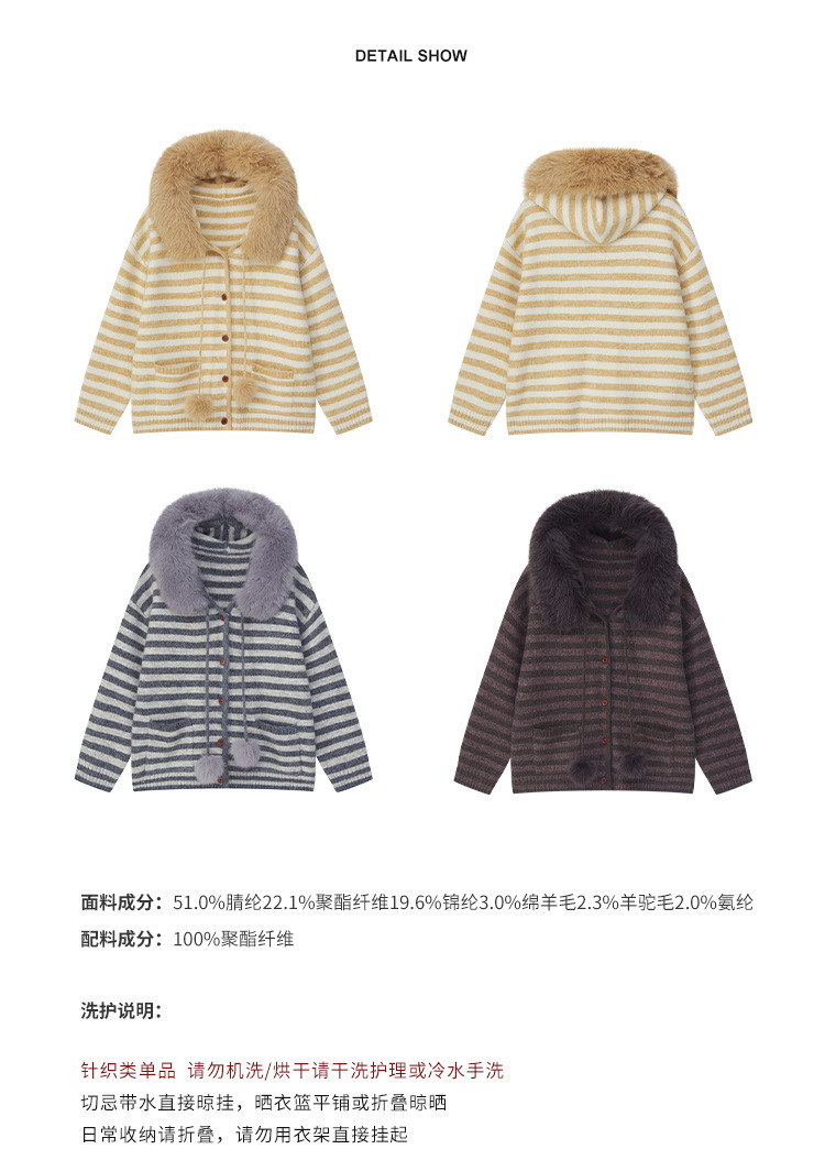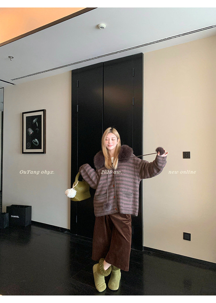 *o-ha-you*【F60562】毛領條紋開襟毛衣外套-2色