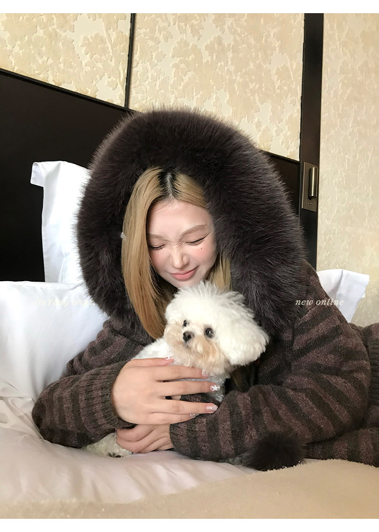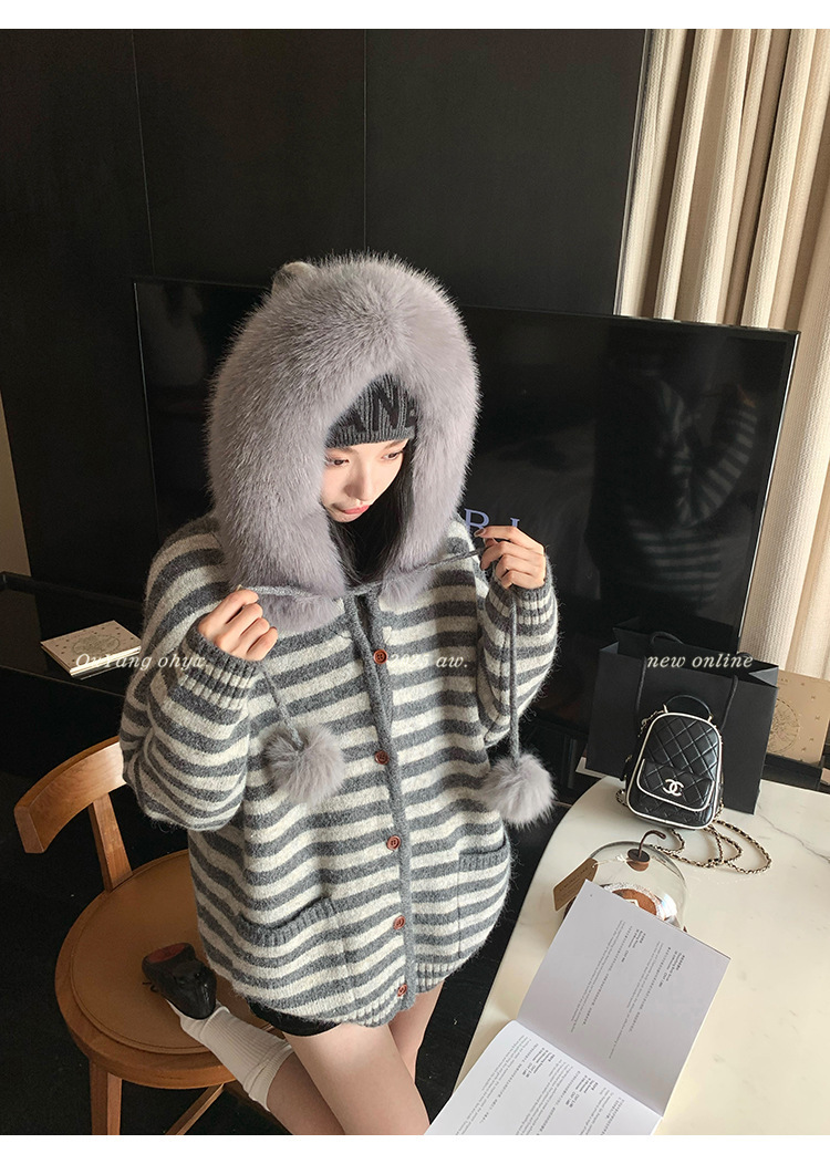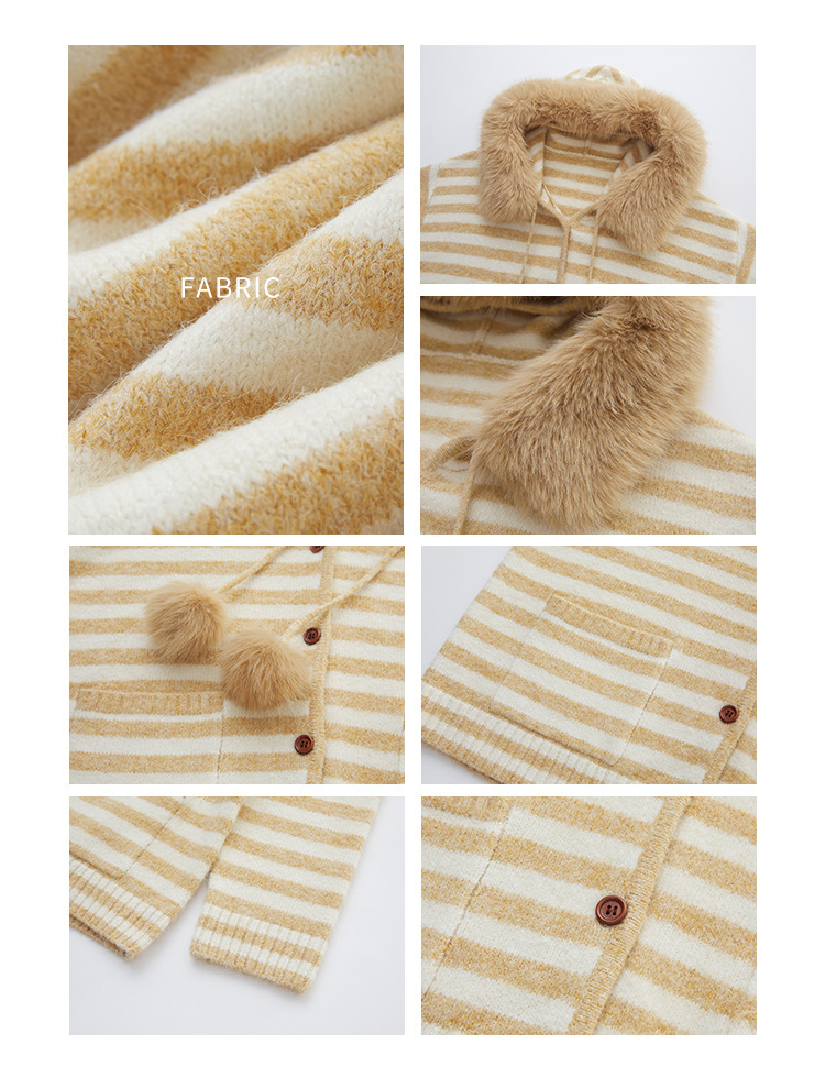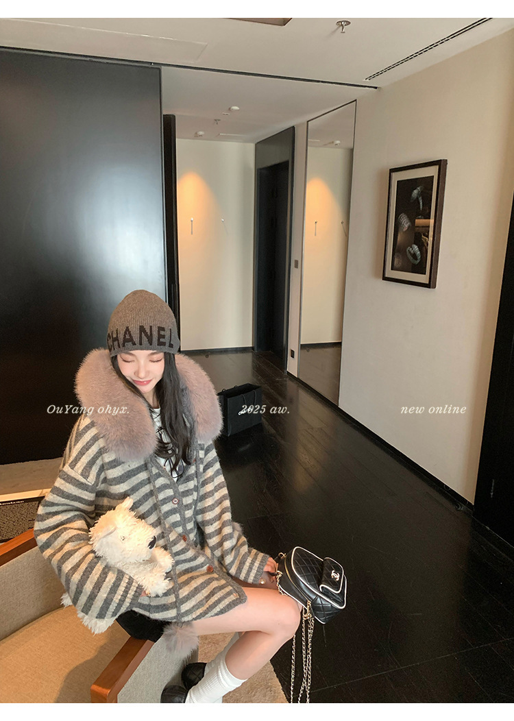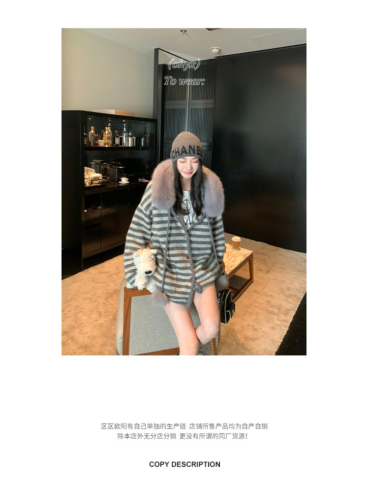 *o-ha-you*【F60562】毛領條紋開襟毛衣外套-2色