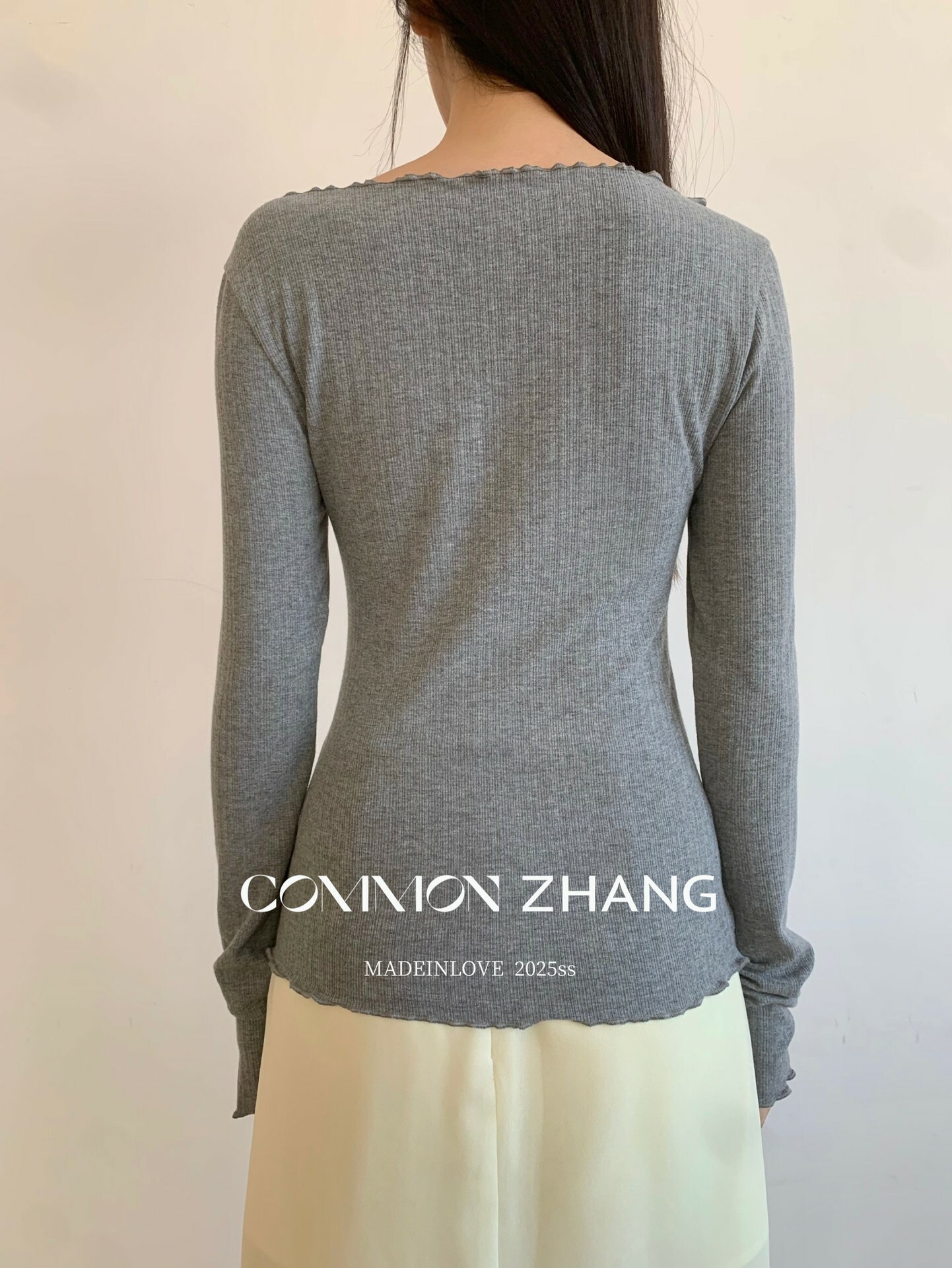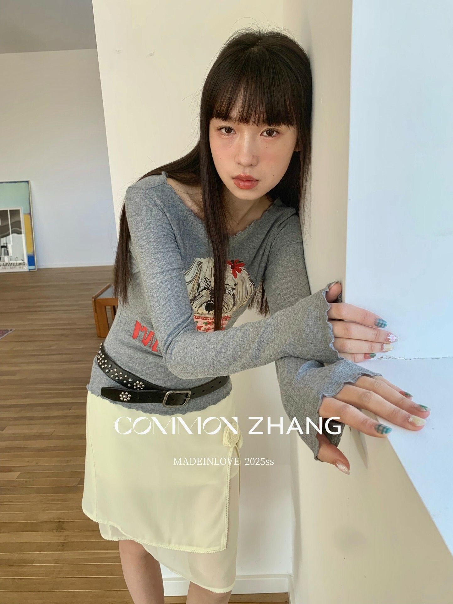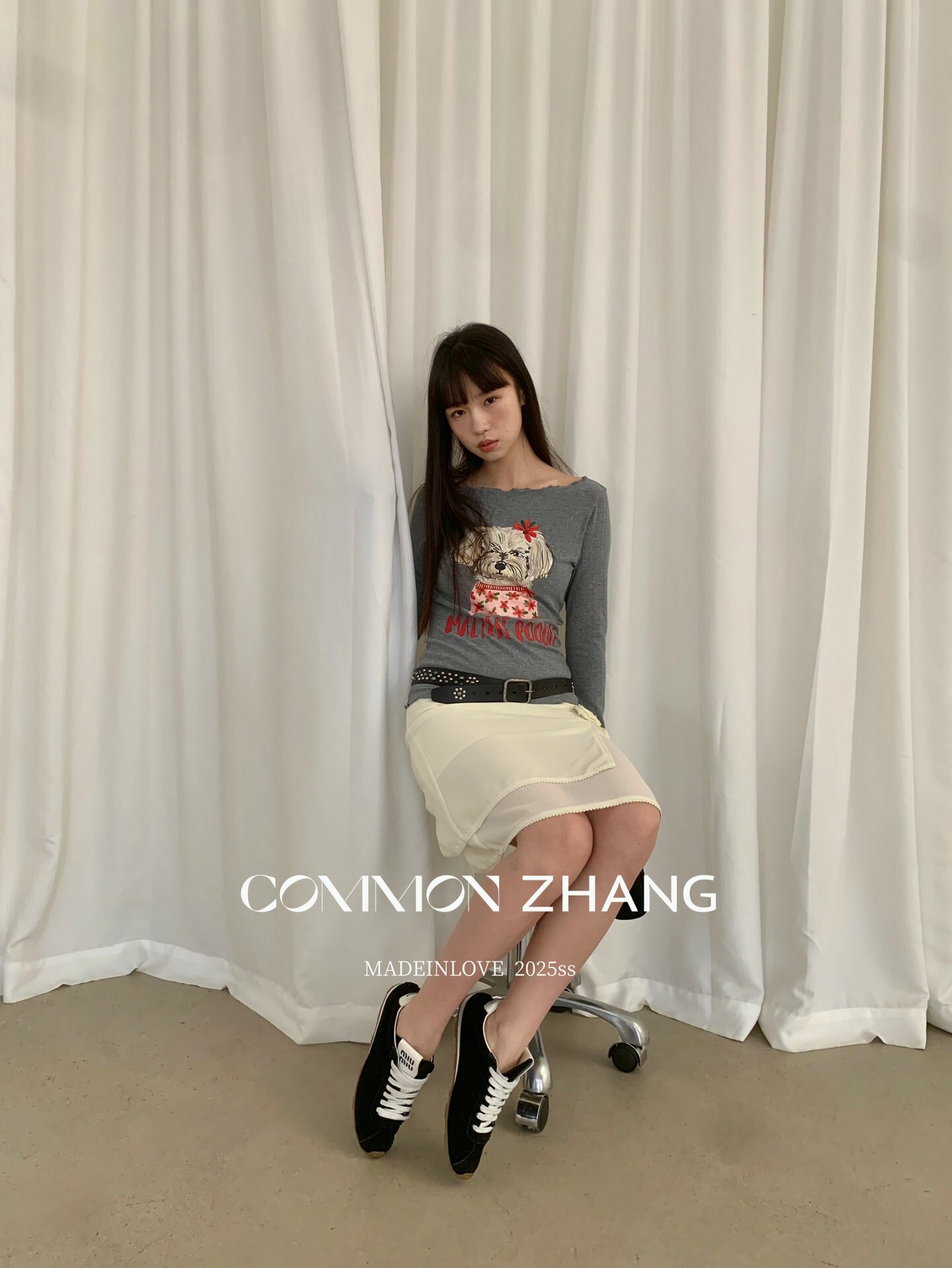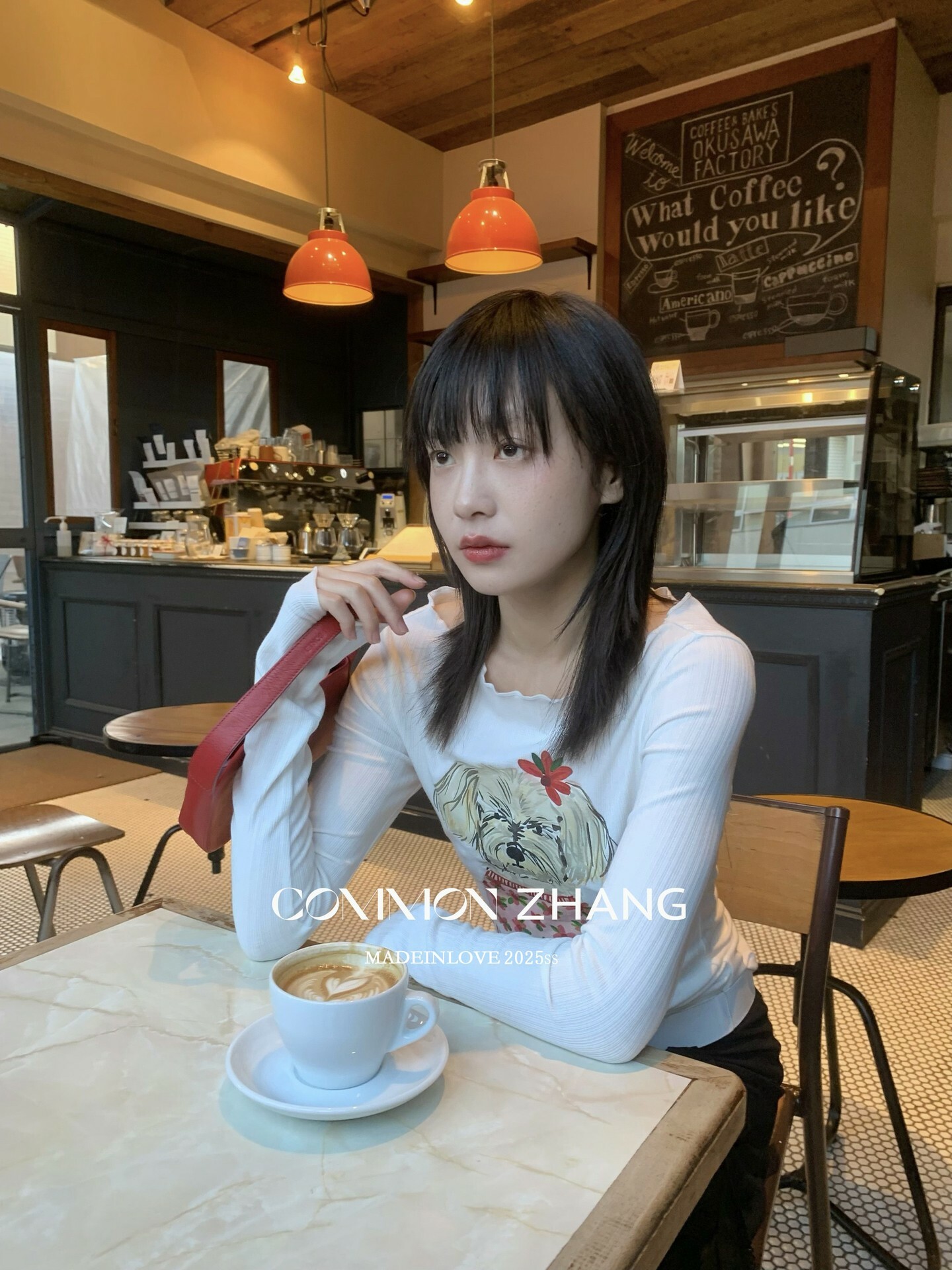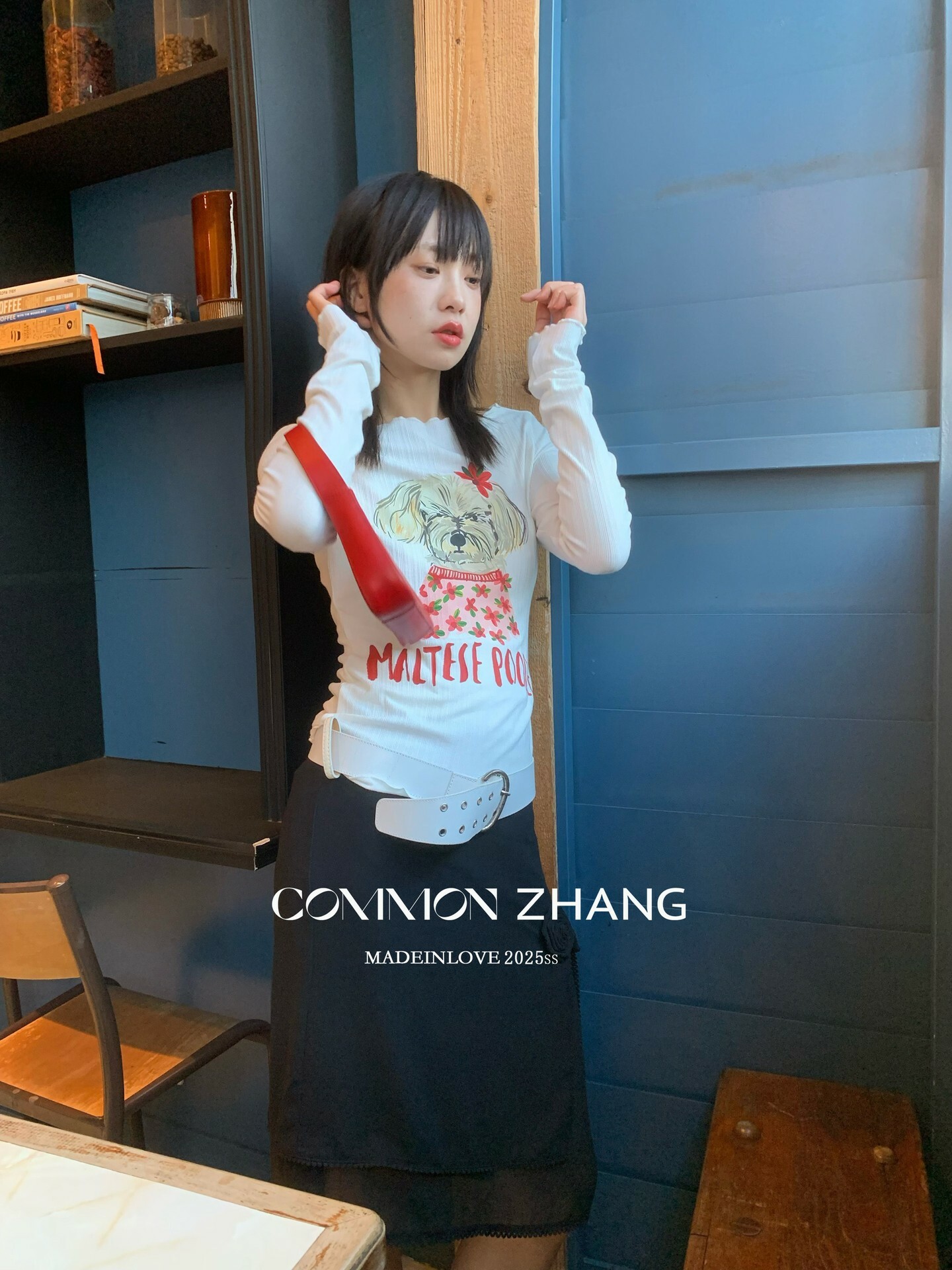 *o-ha-you*【FCZ100011】可愛少女感字母小狗印花木耳邊圓領修身顯瘦長袖T恤-2色-如有需要請先諮詢