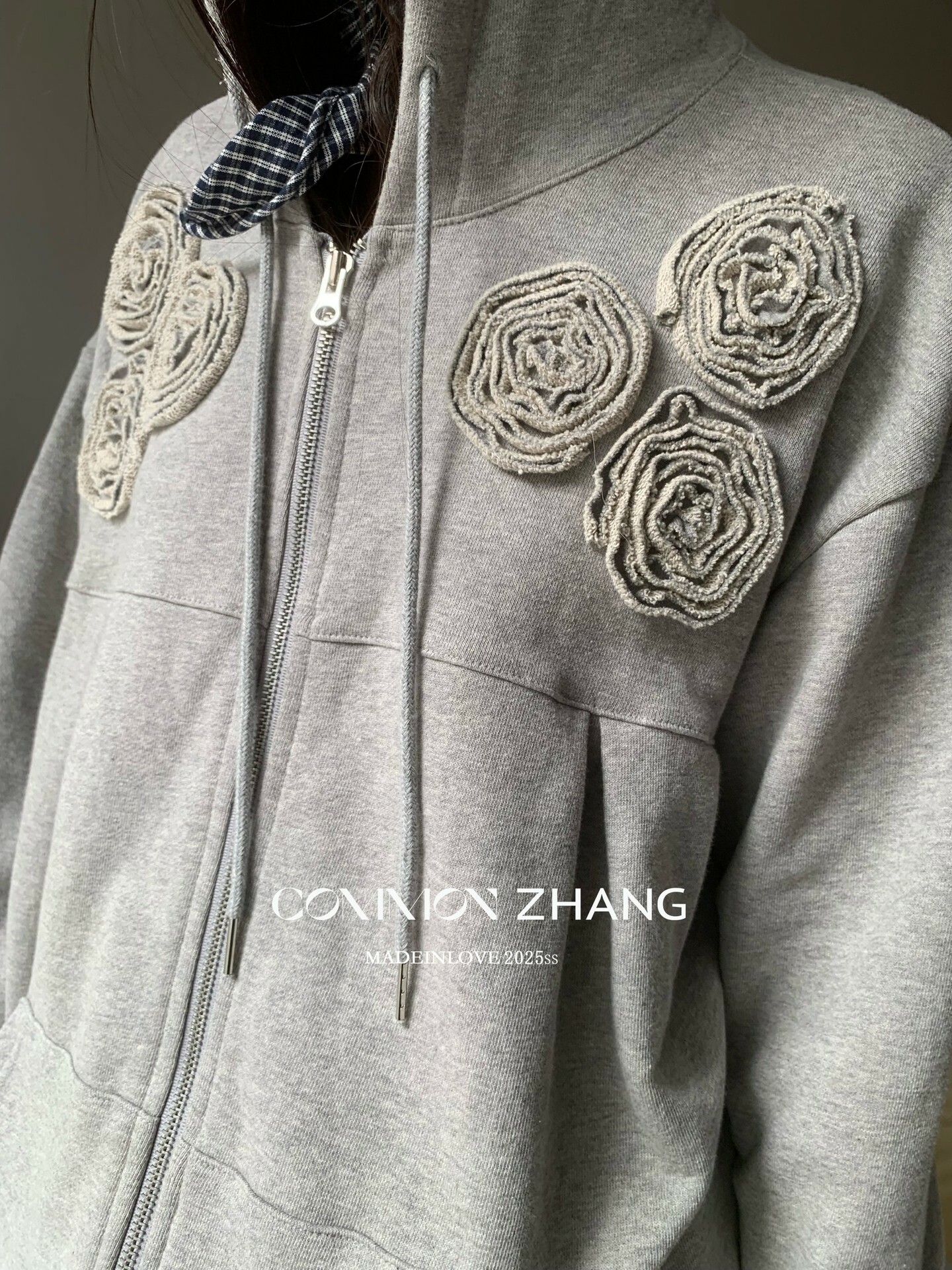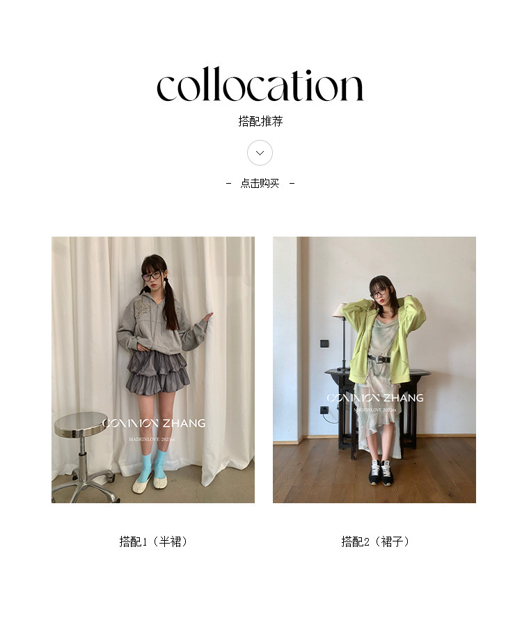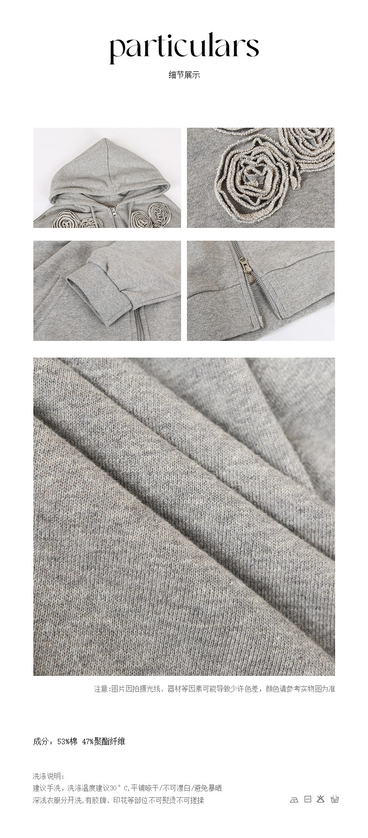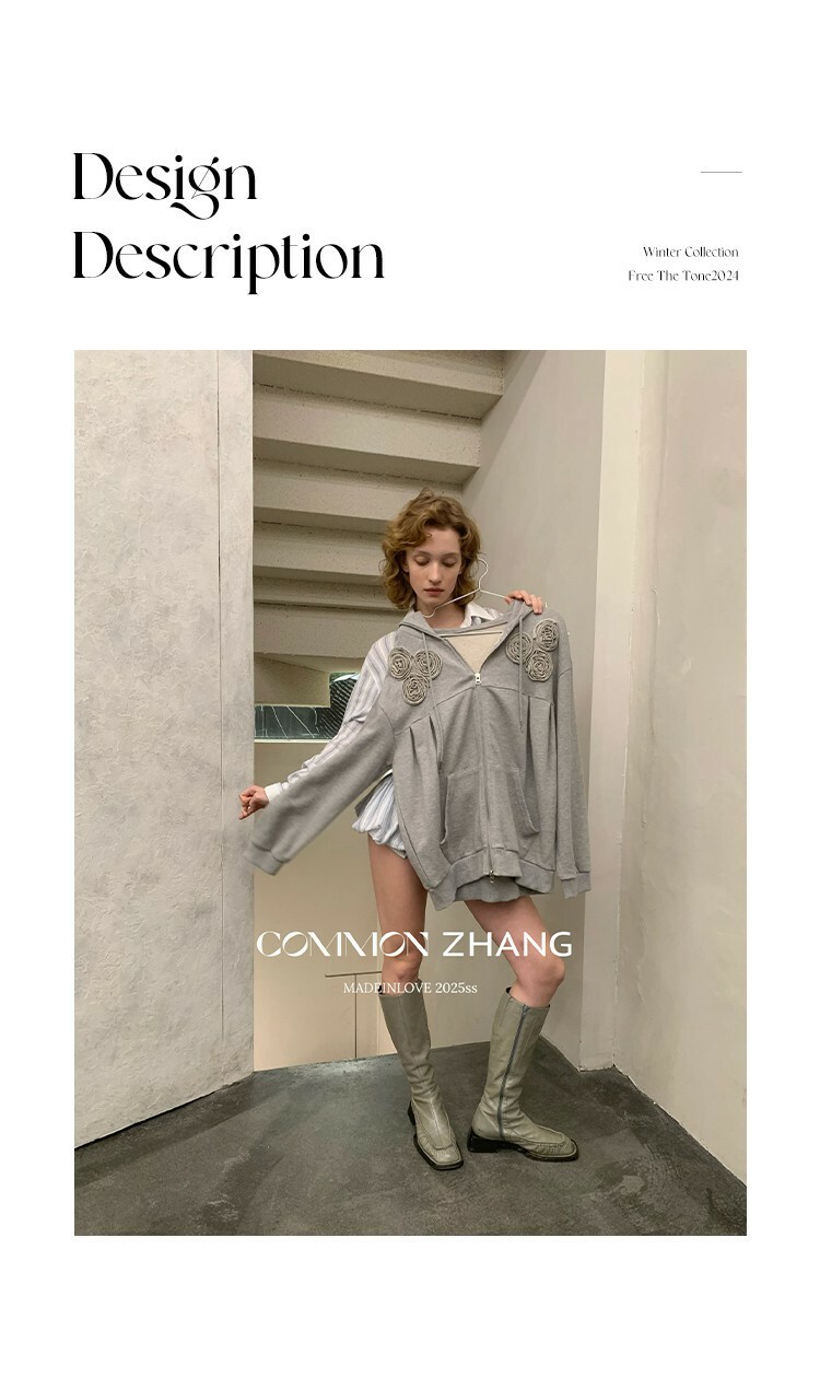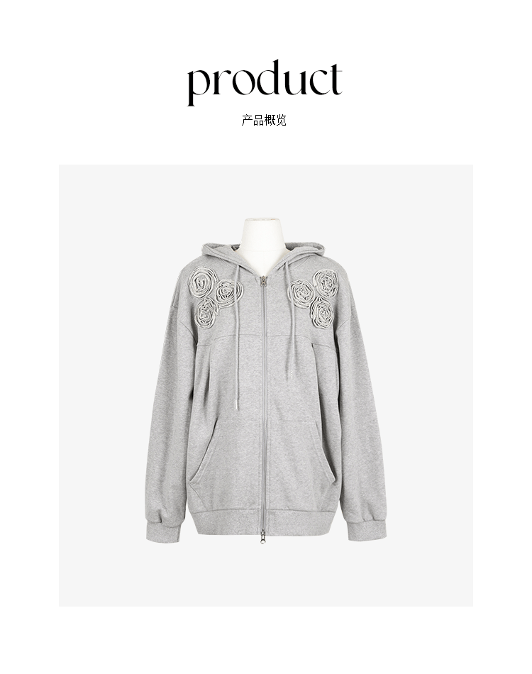*o-ha-you*【FCZ100052】運動俏皮純色別緻花立體感休閒風開襟連帽衛衣-4色