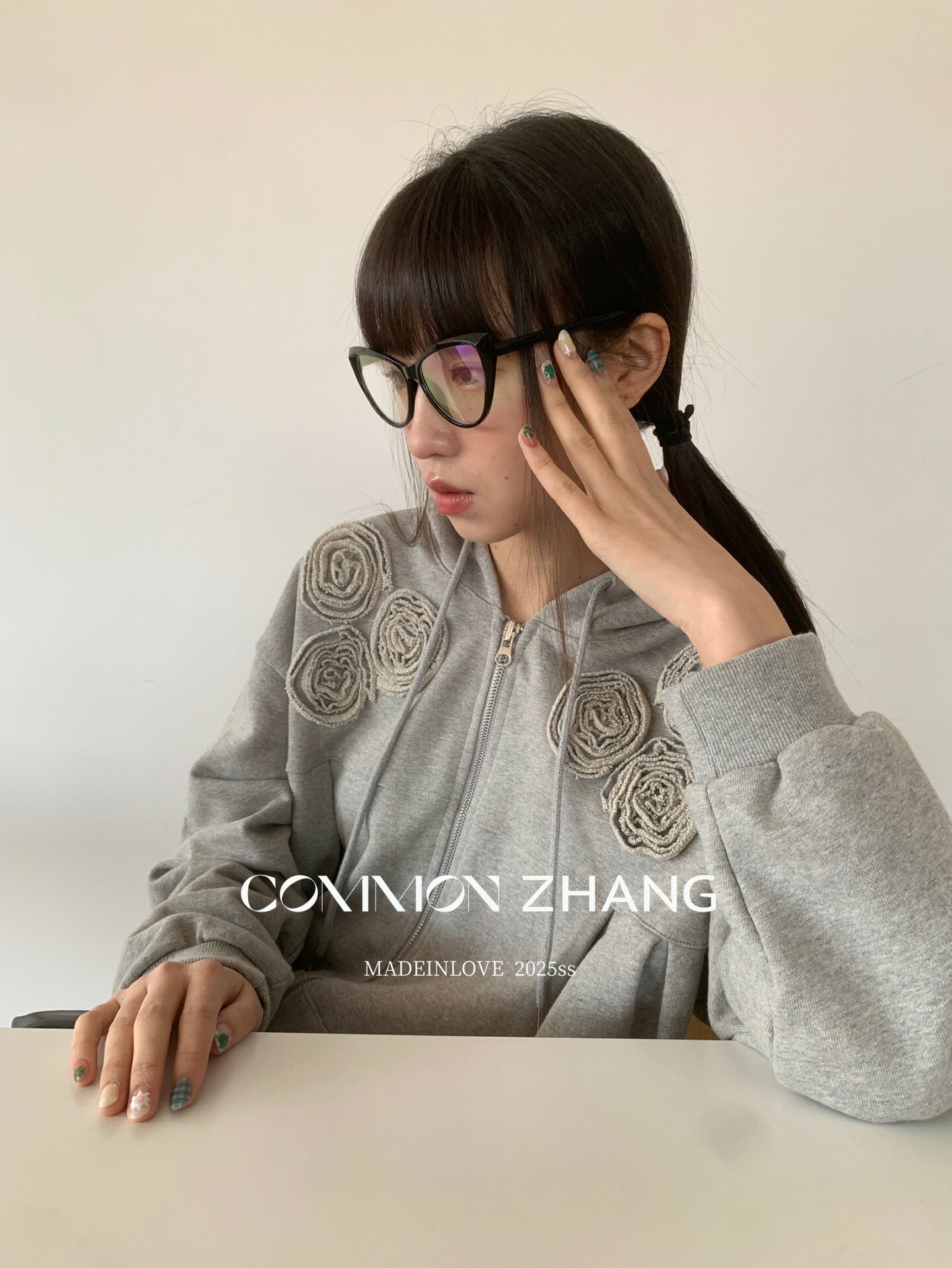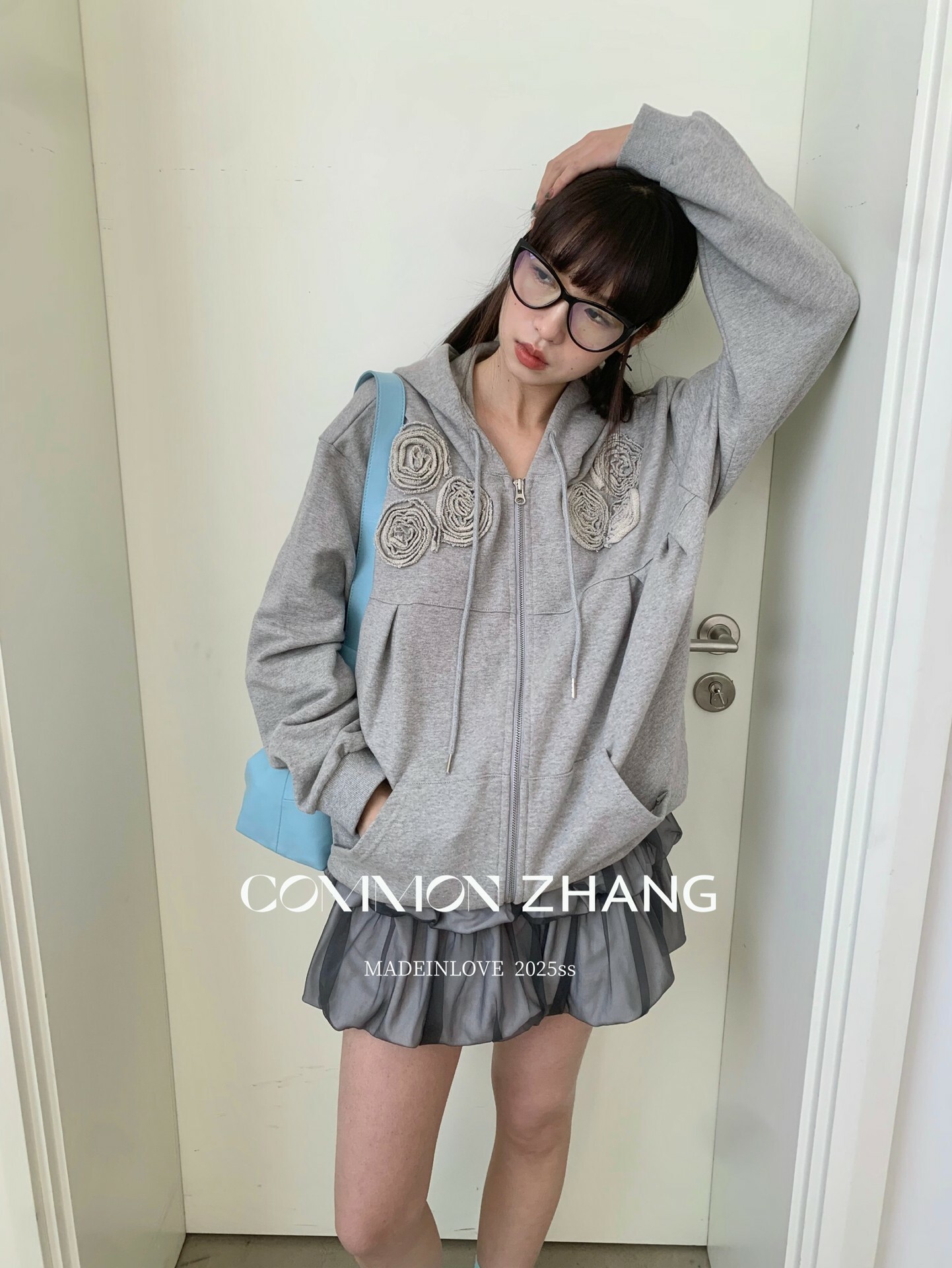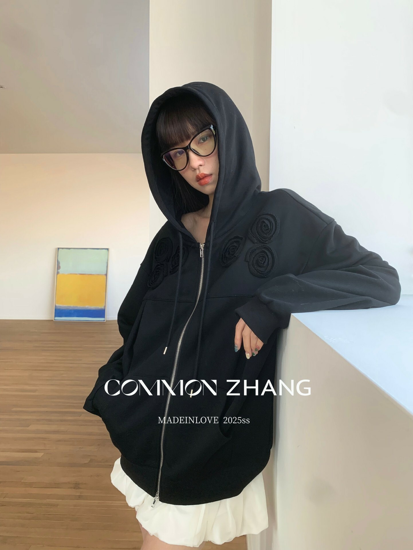 *o-ha-you*【FCZ100052】運動俏皮純色別緻花立體感休閒風開襟連帽衛衣-4色