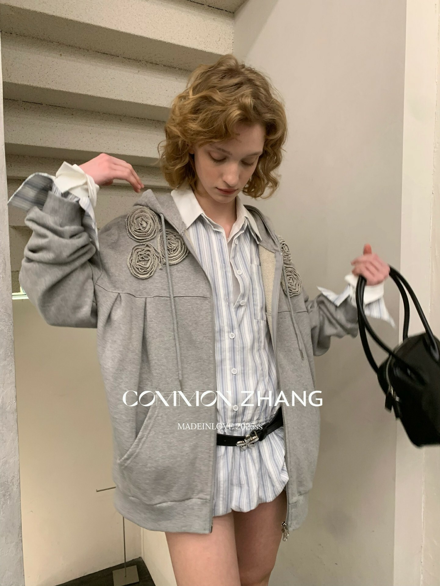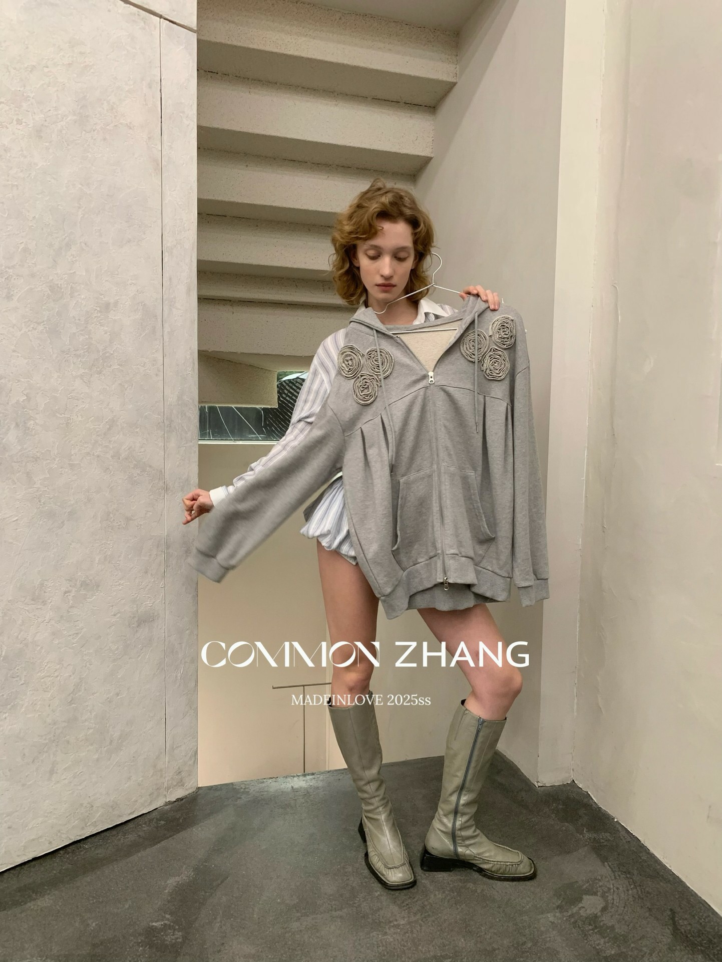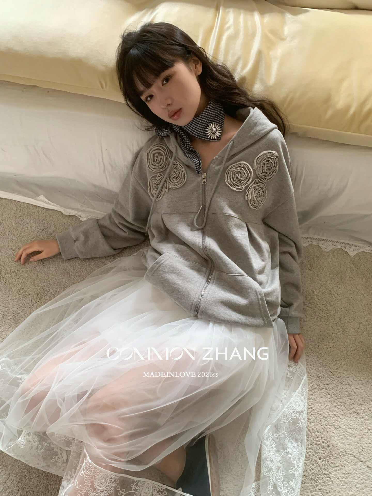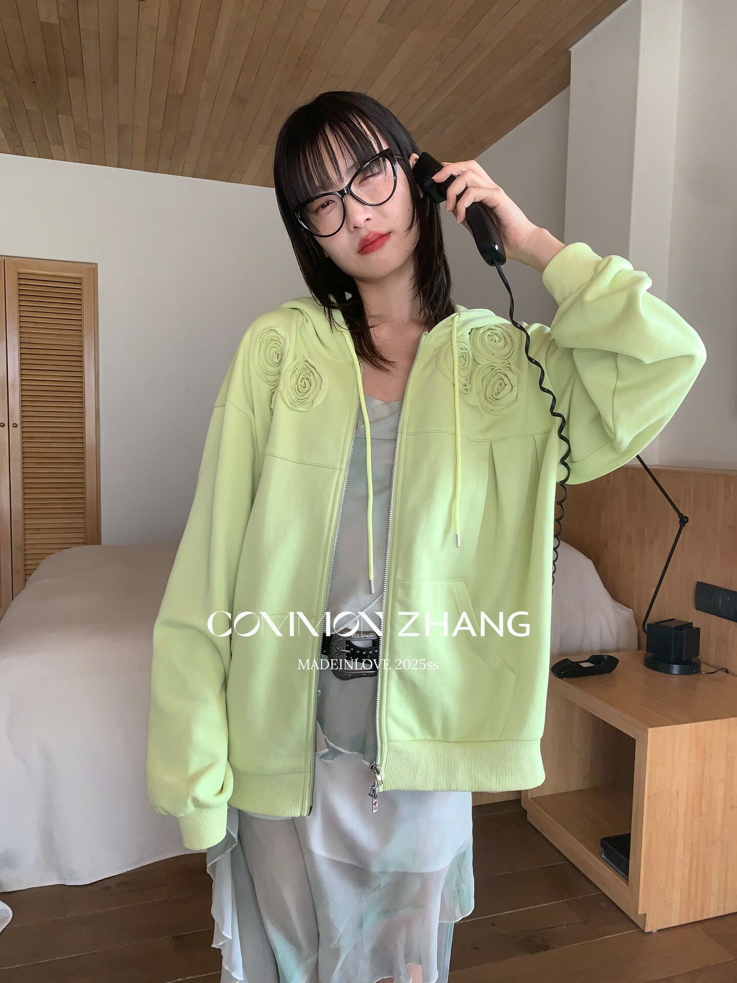 *o-ha-you*【FCZ100052】運動俏皮純色別緻花立體感休閒風開襟連帽衛衣-4色