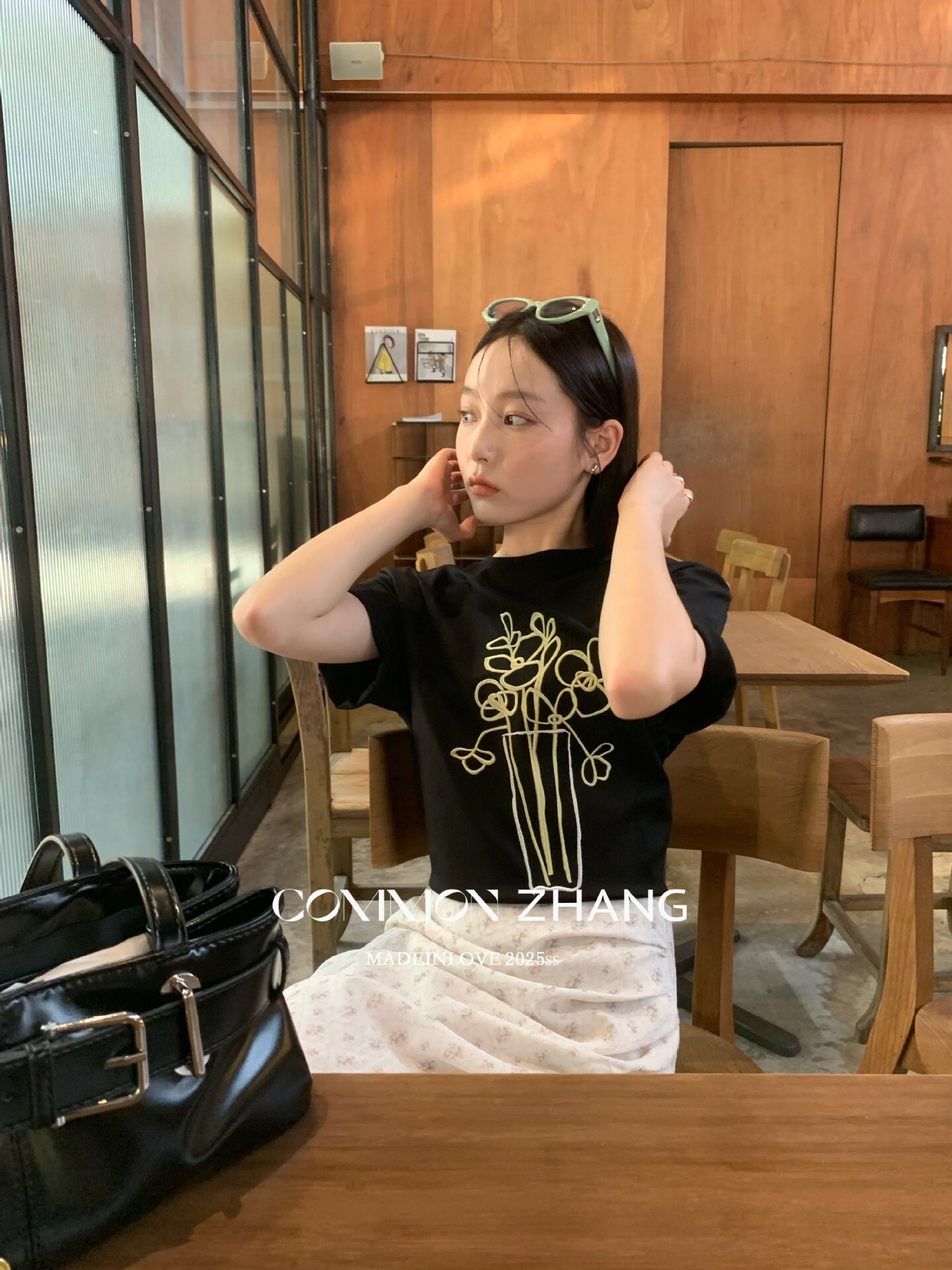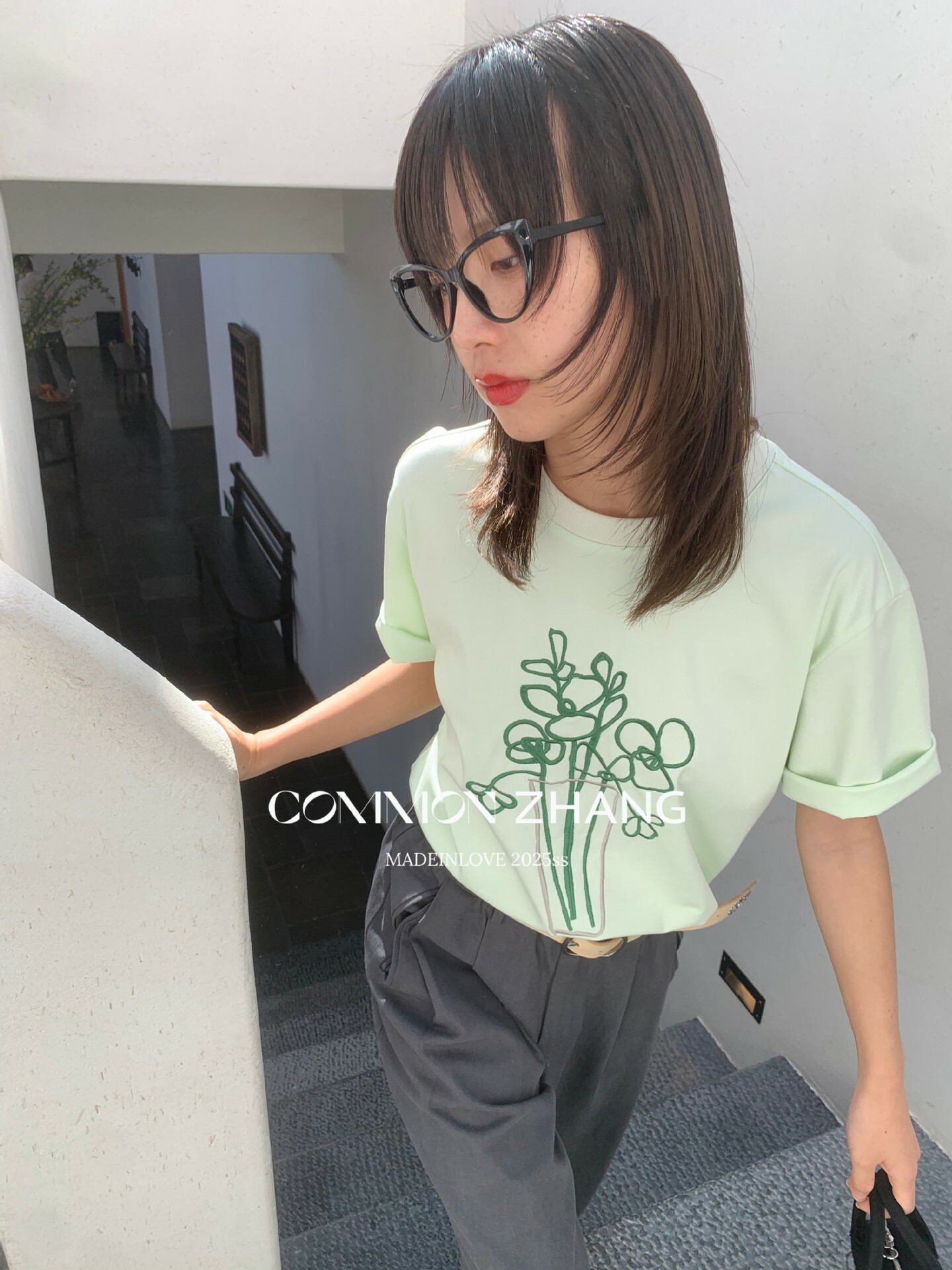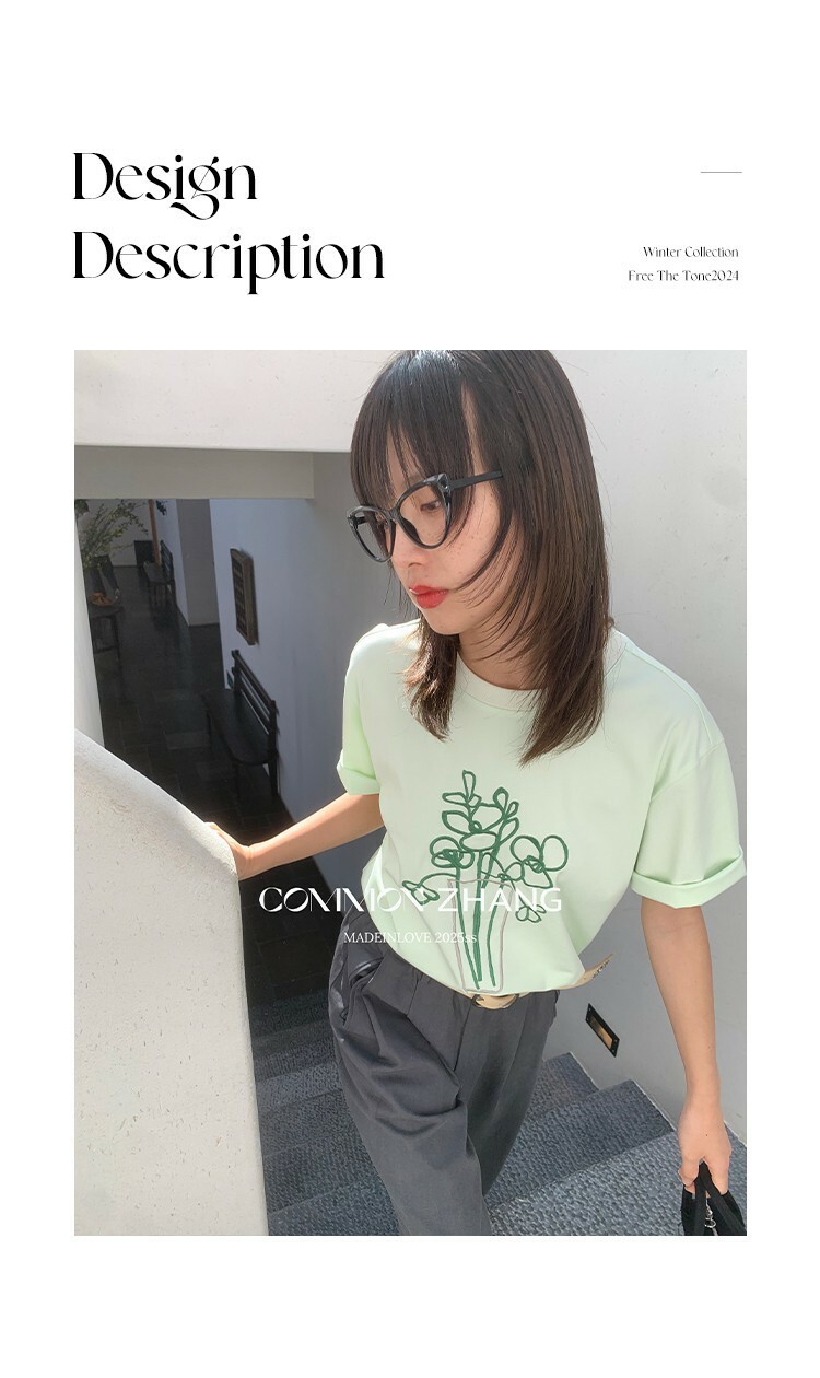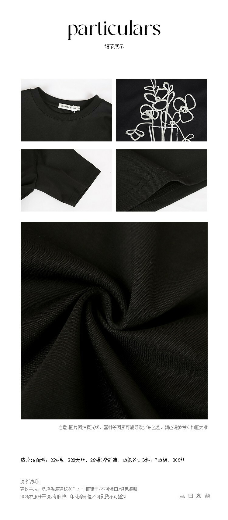 *o-ha-you*【FCZ100090】韓版小眾抽象花卉繡花圓領正肩寬鬆休閒天絲短袖T恤-3色-如有需要請先諮詢