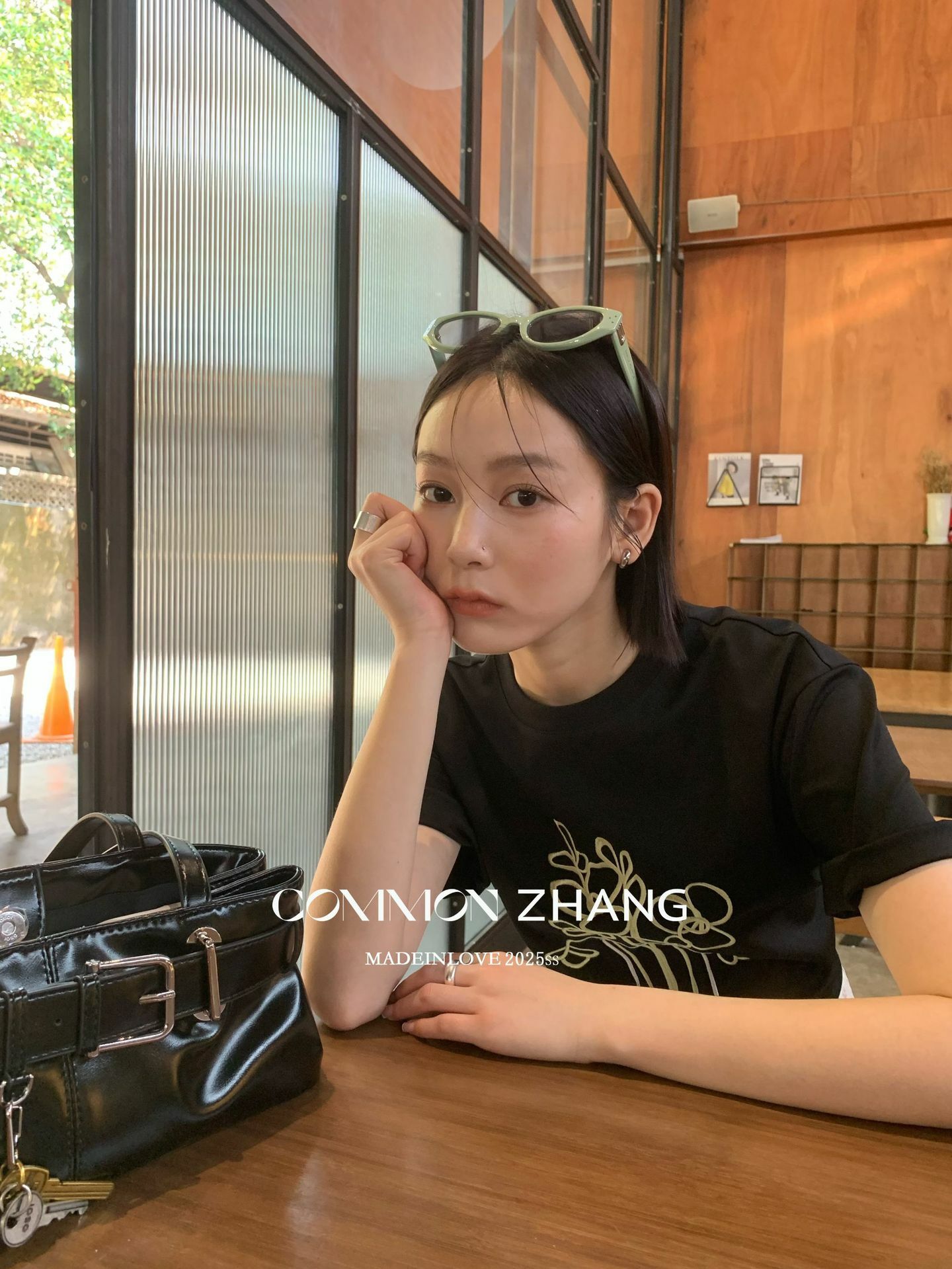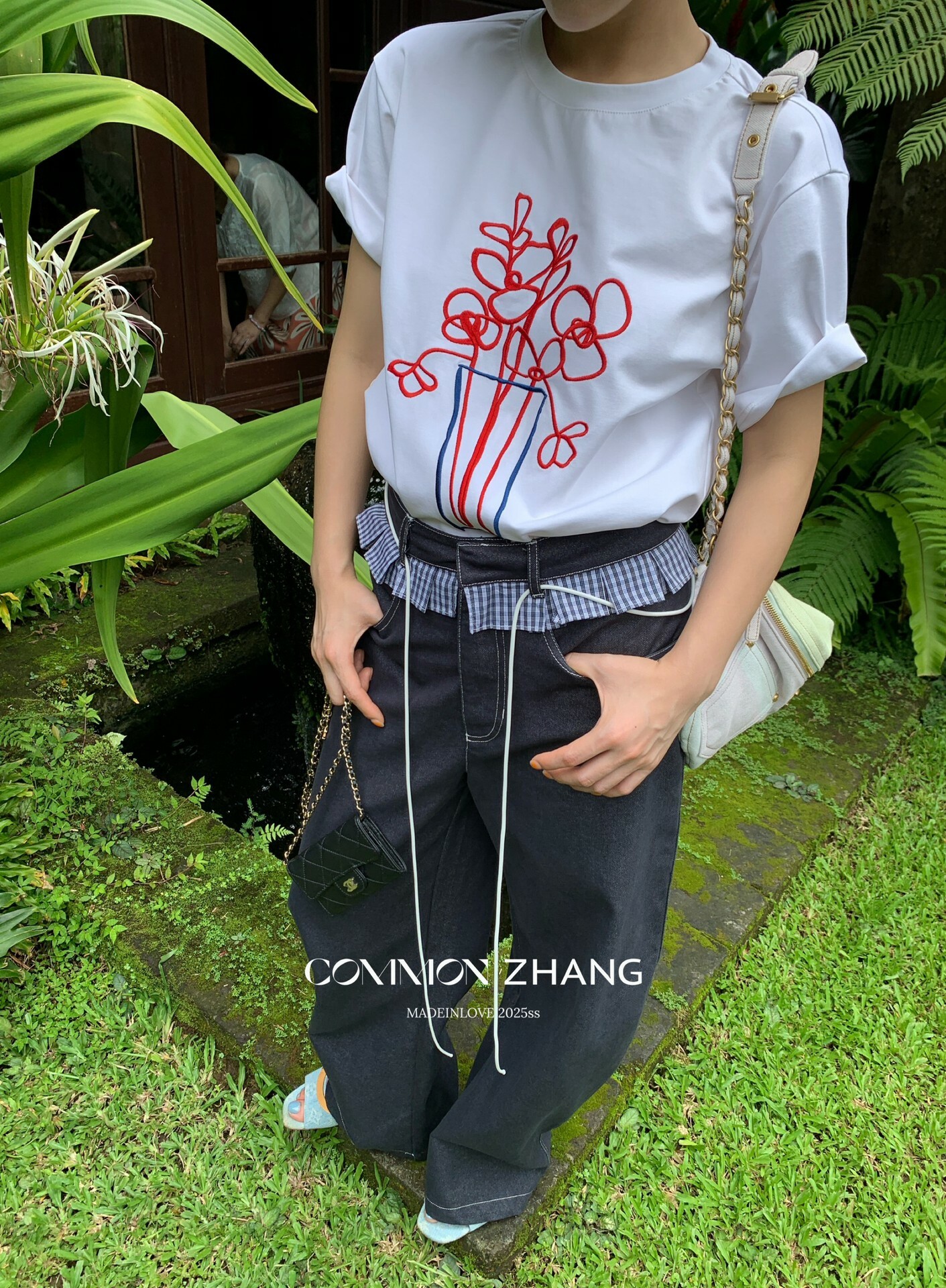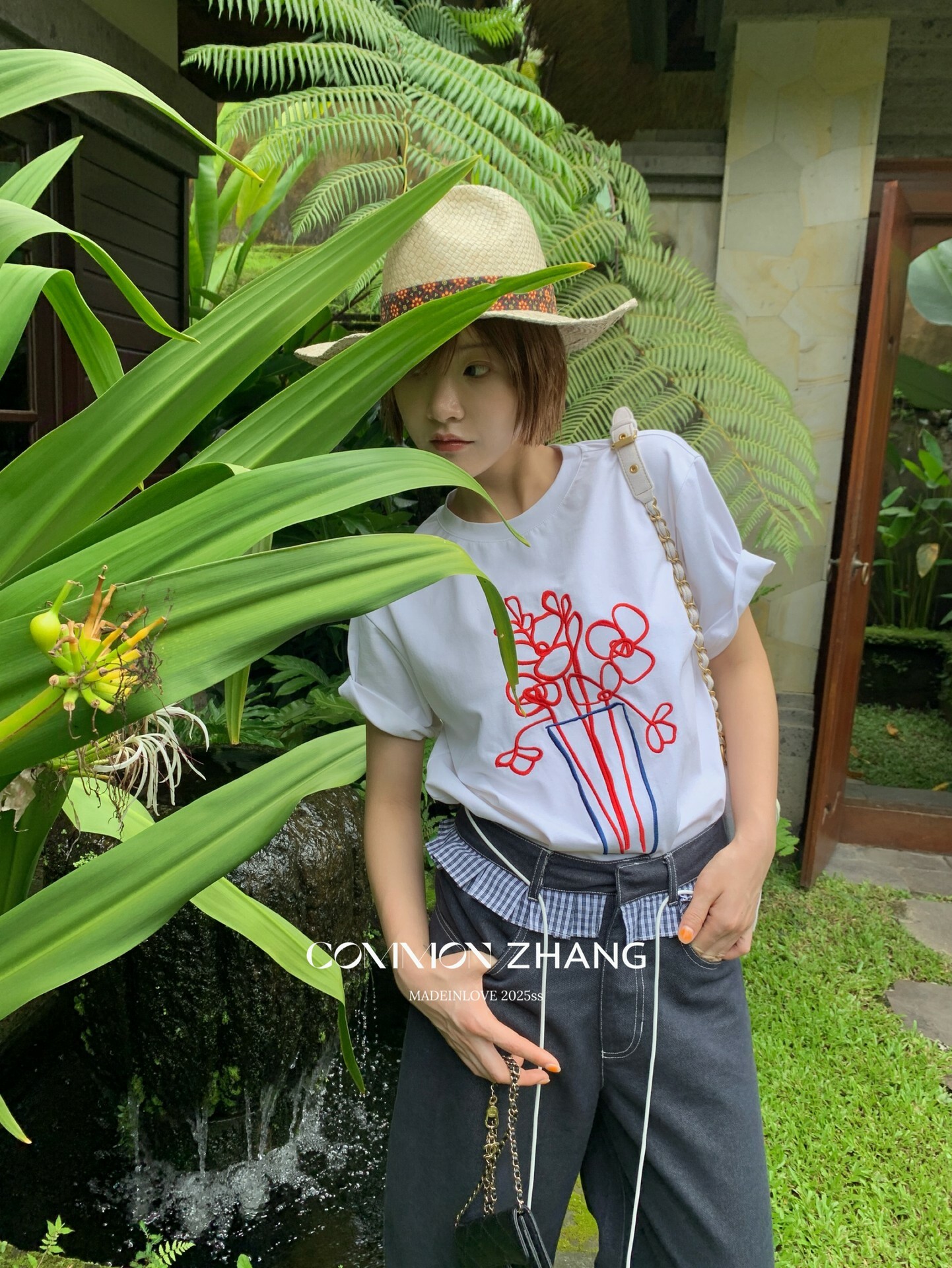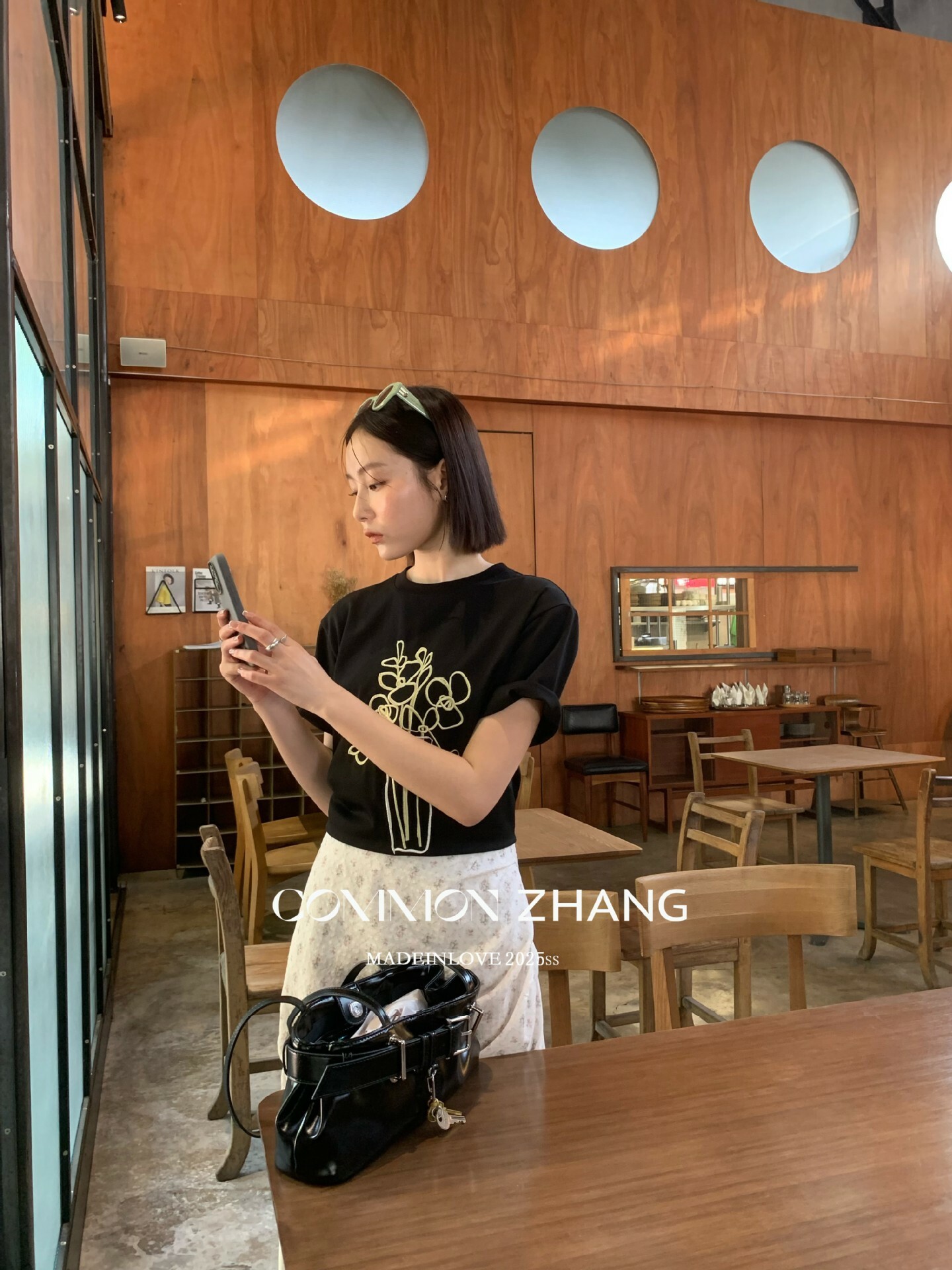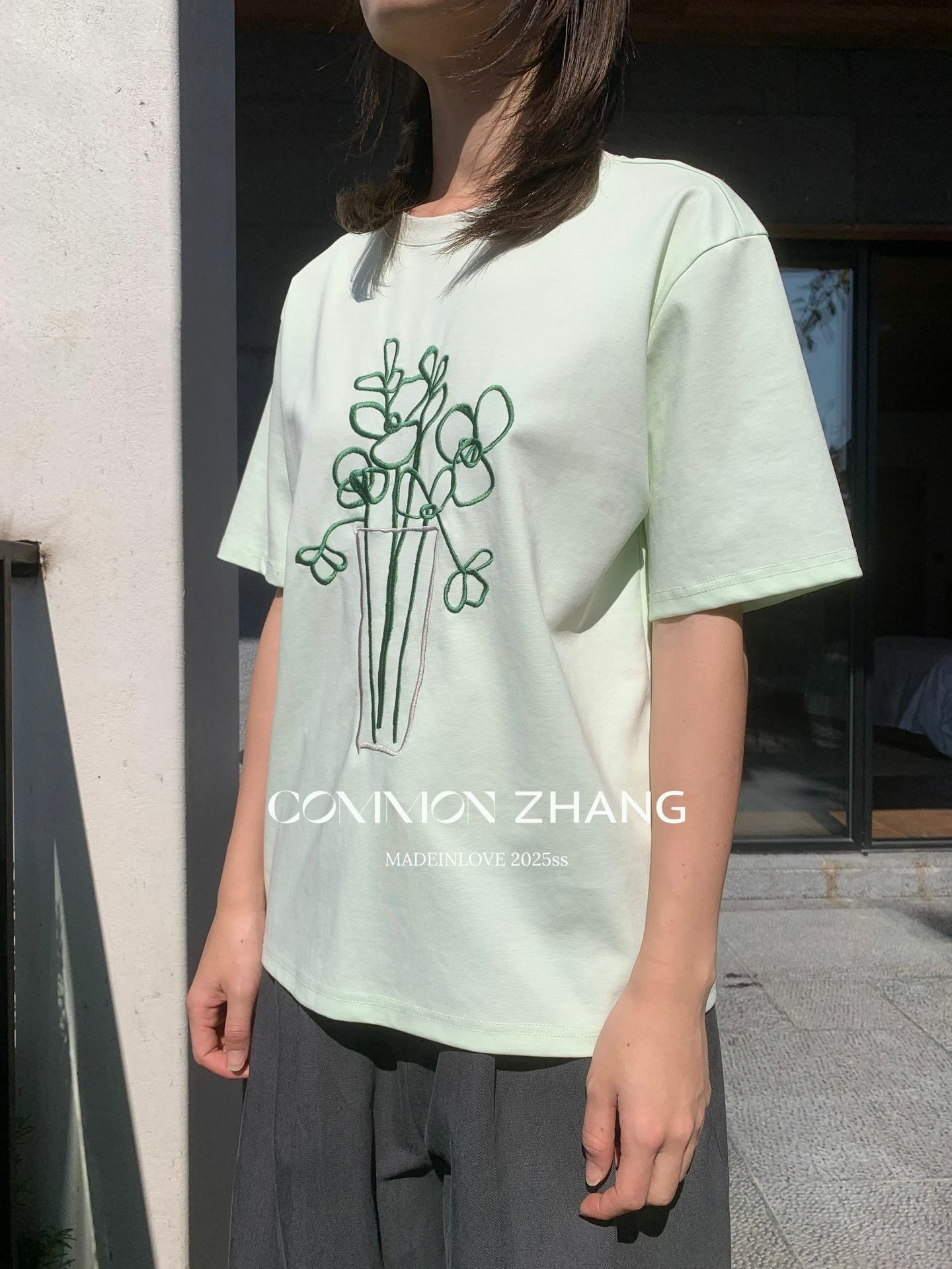 *o-ha-you*【FCZ100090】韓版小眾抽象花卉繡花圓領正肩寬鬆休閒天絲短袖T恤-3色-如有需要請先諮詢