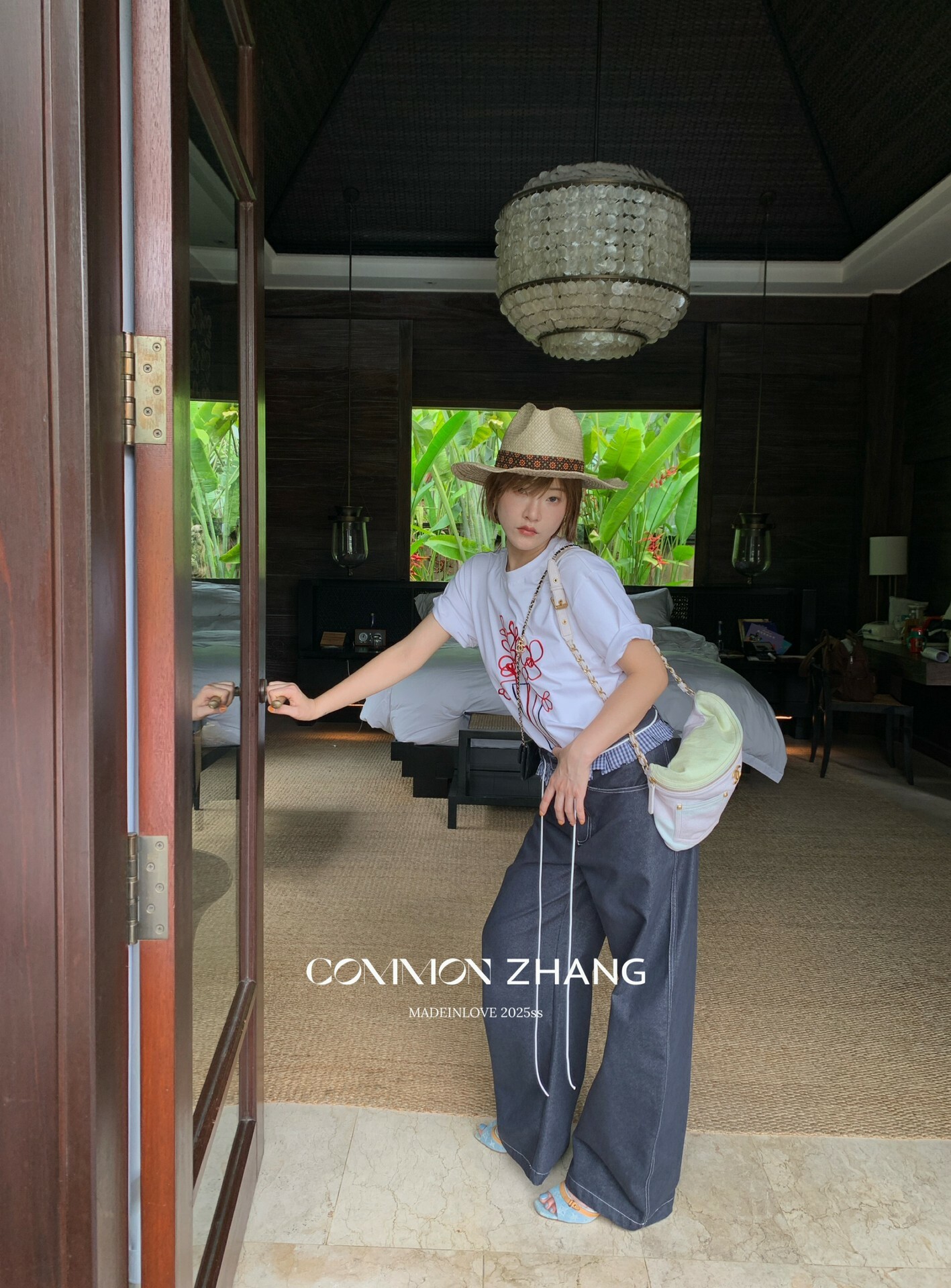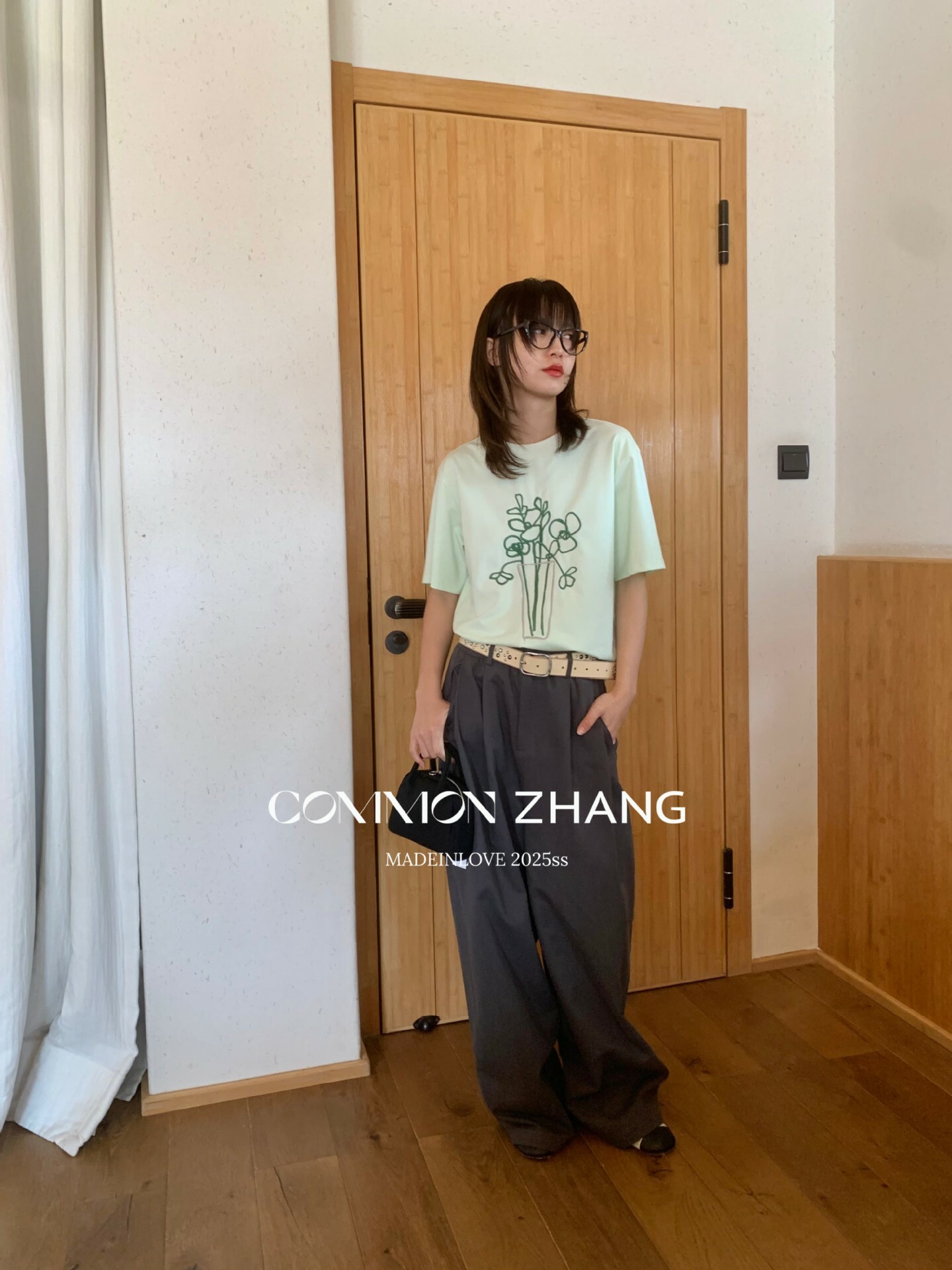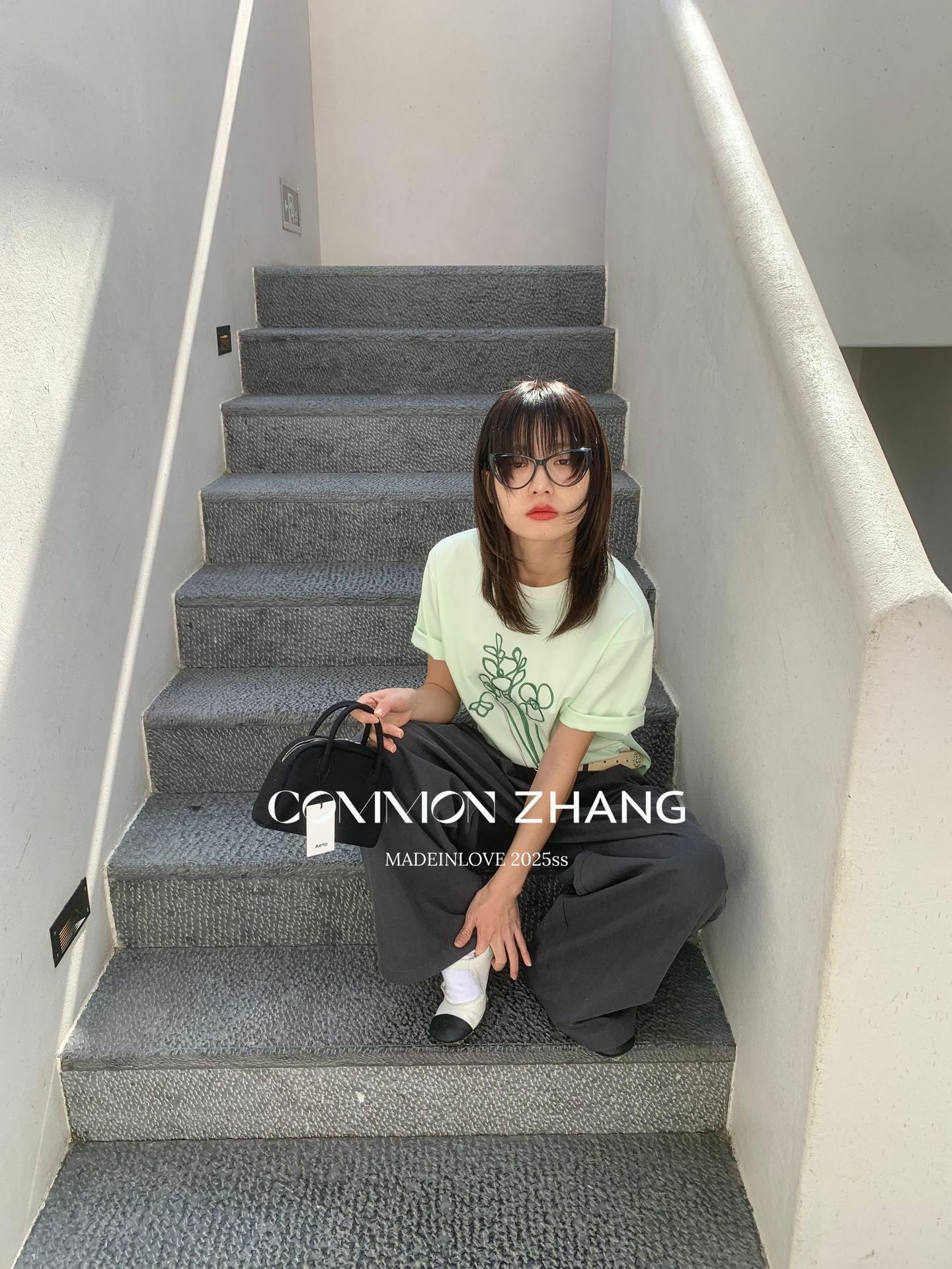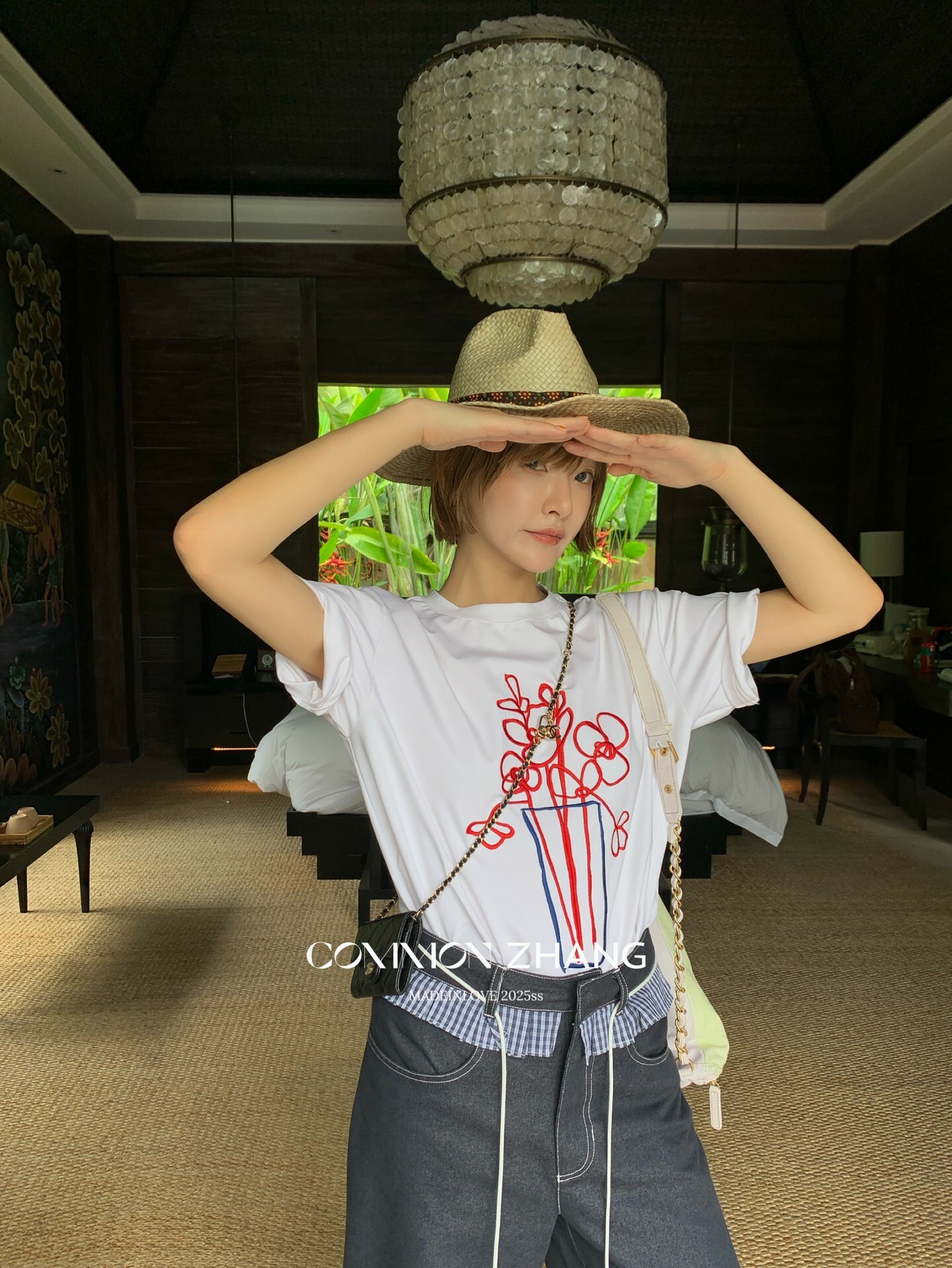 *o-ha-you*【FCZ100090】韓版小眾抽象花卉繡花圓領正肩寬鬆休閒天絲短袖T恤-3色-如有需要請先諮詢