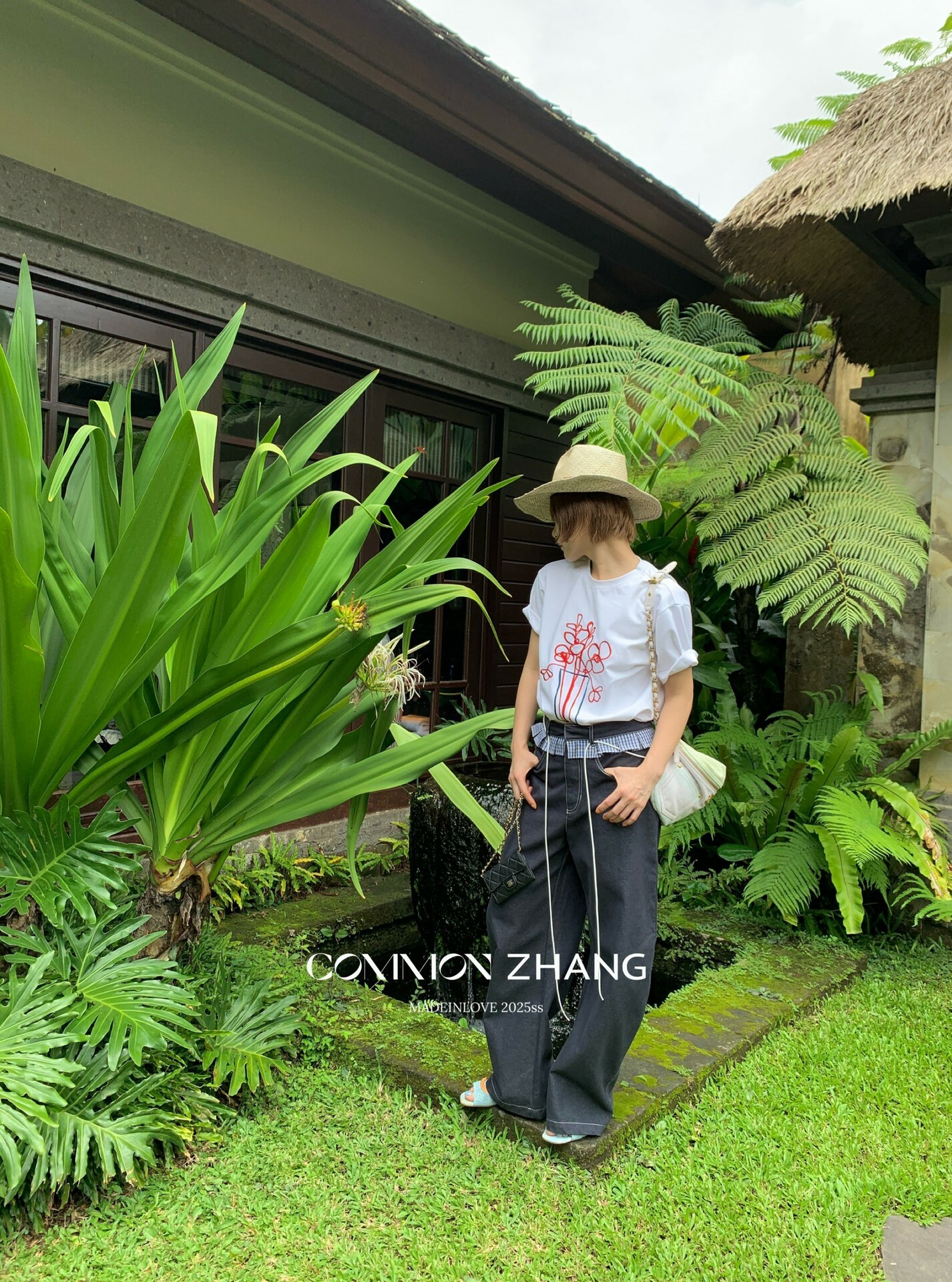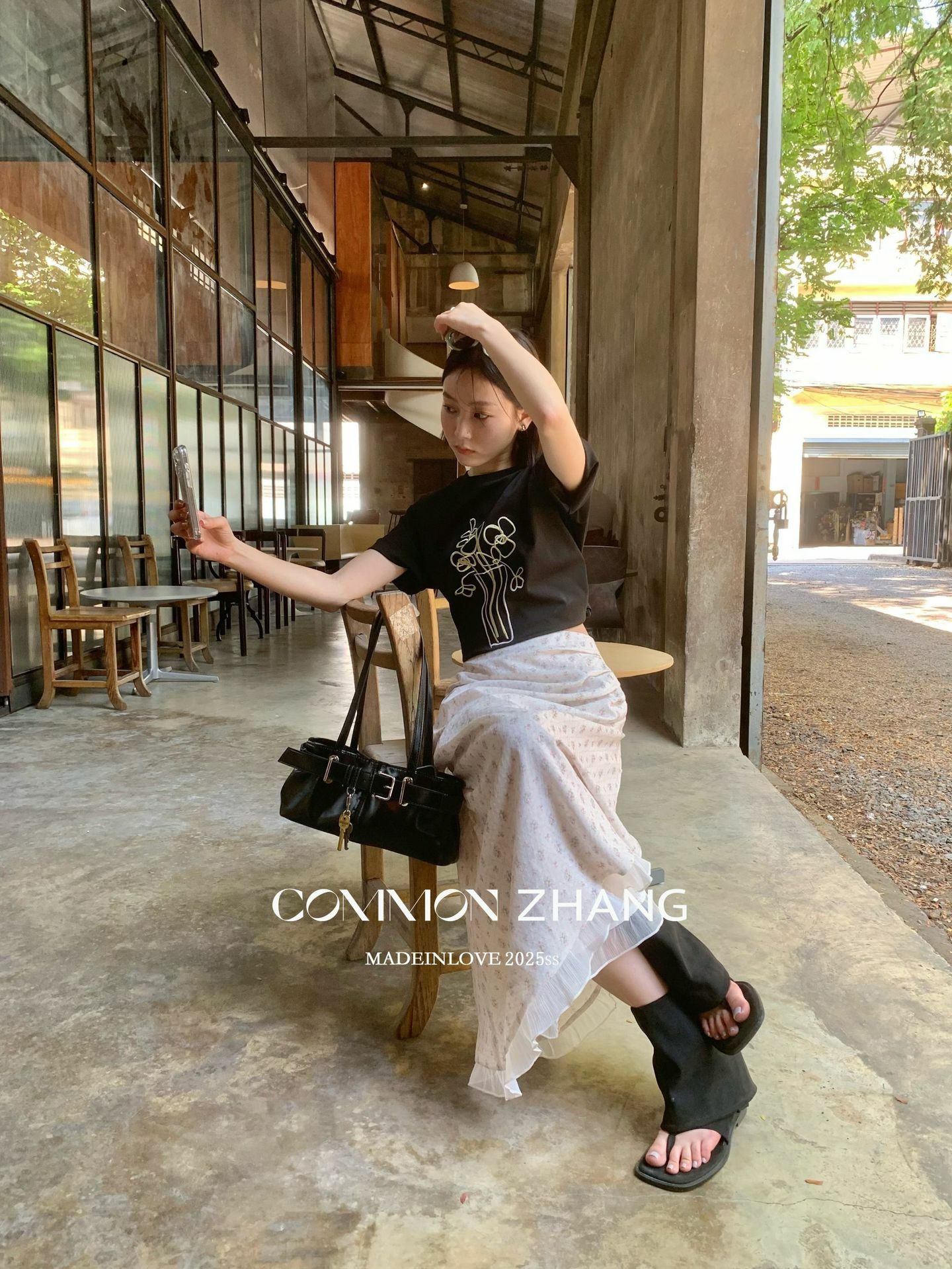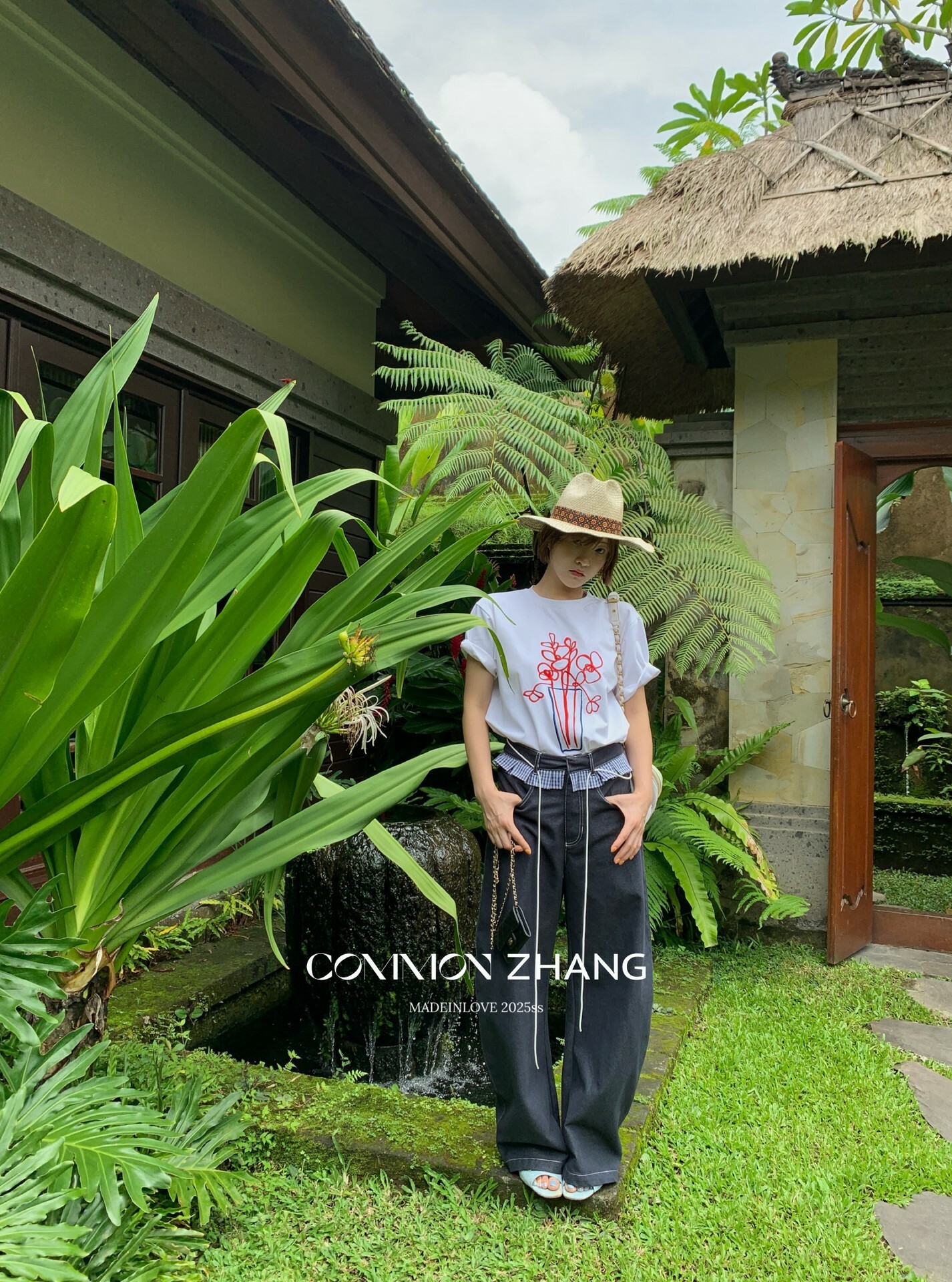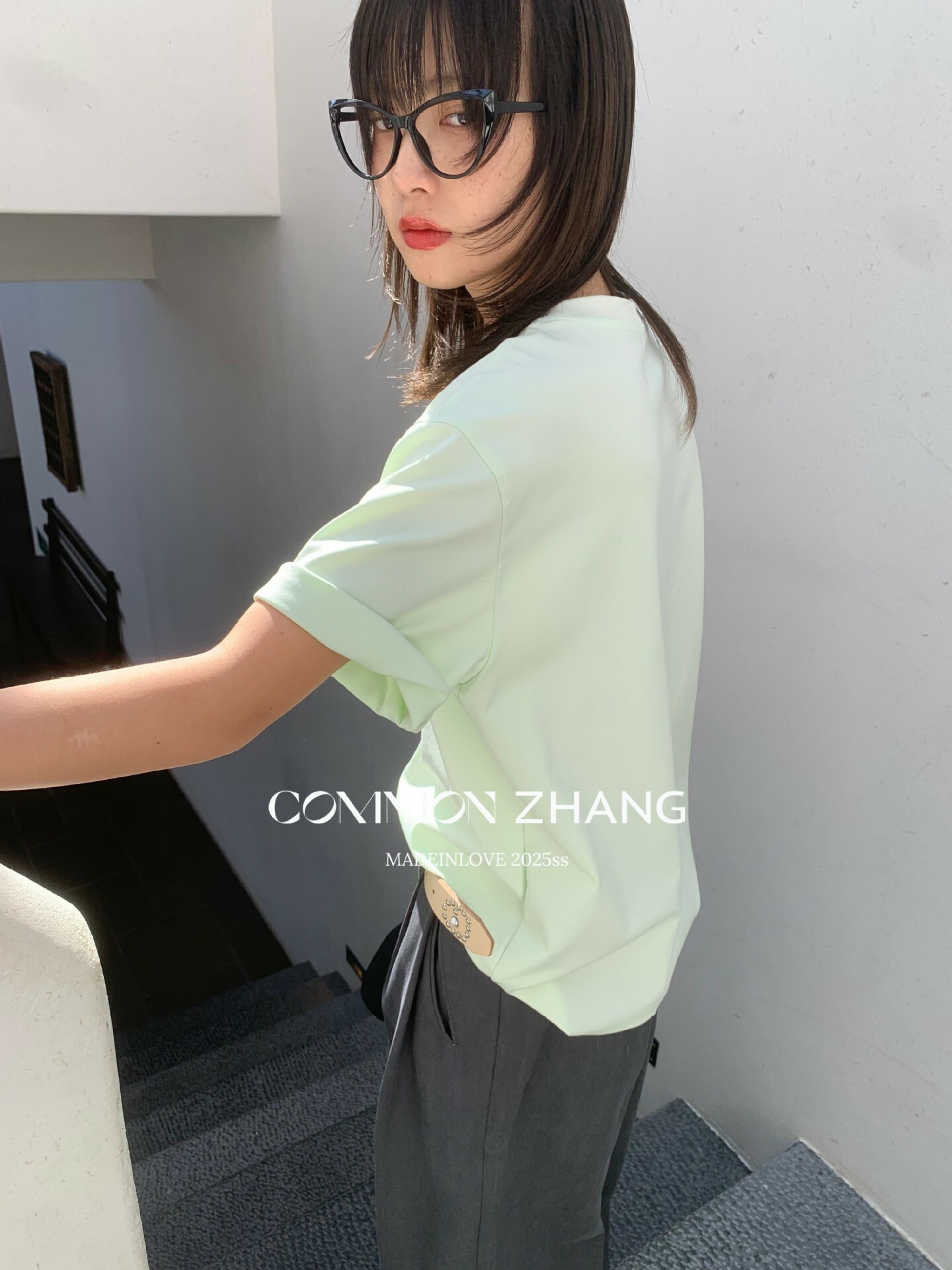 *o-ha-you*【FCZ100090】韓版小眾抽象花卉繡花圓領正肩寬鬆休閒天絲短袖T恤-3色-如有需要請先諮詢