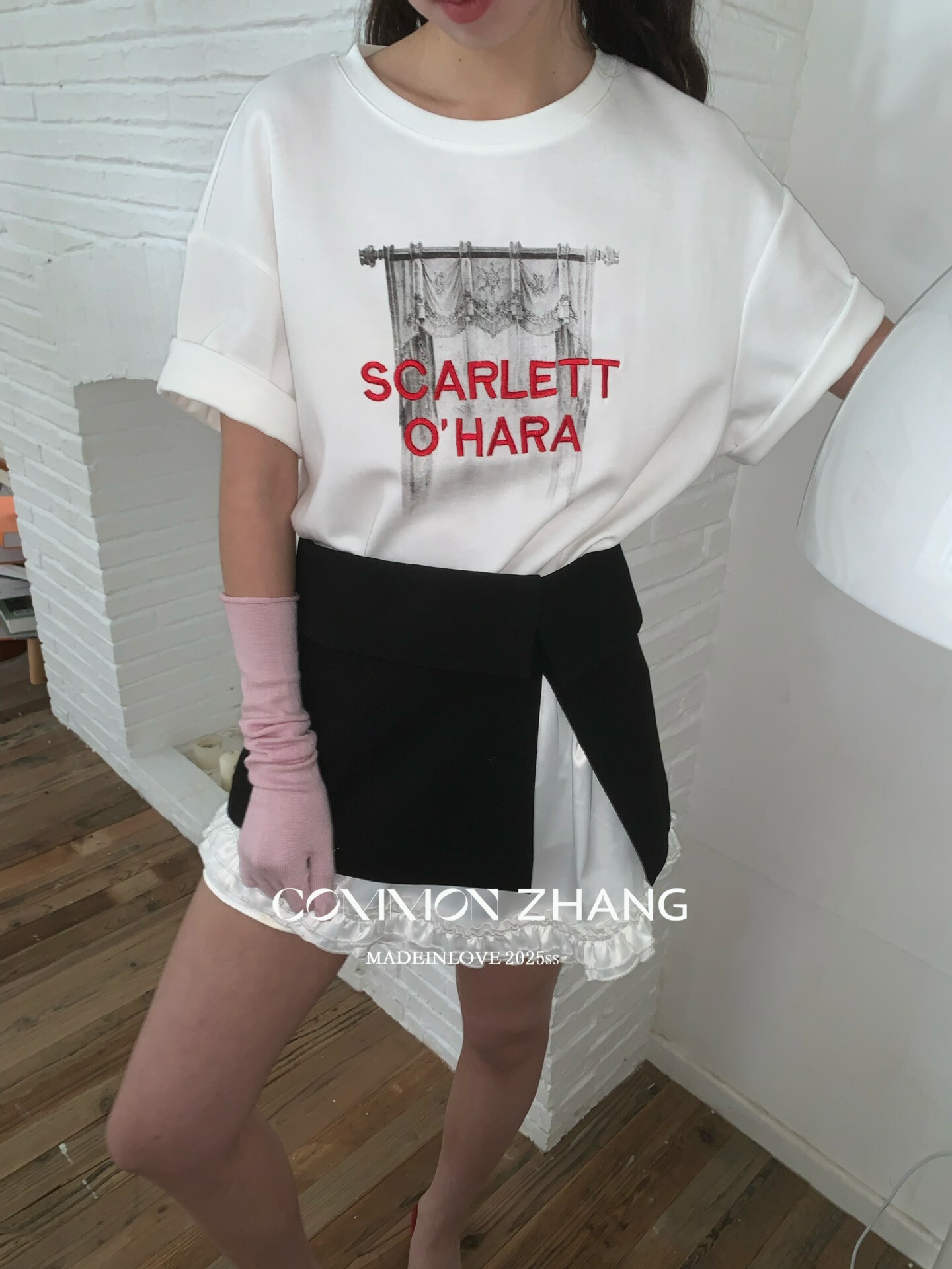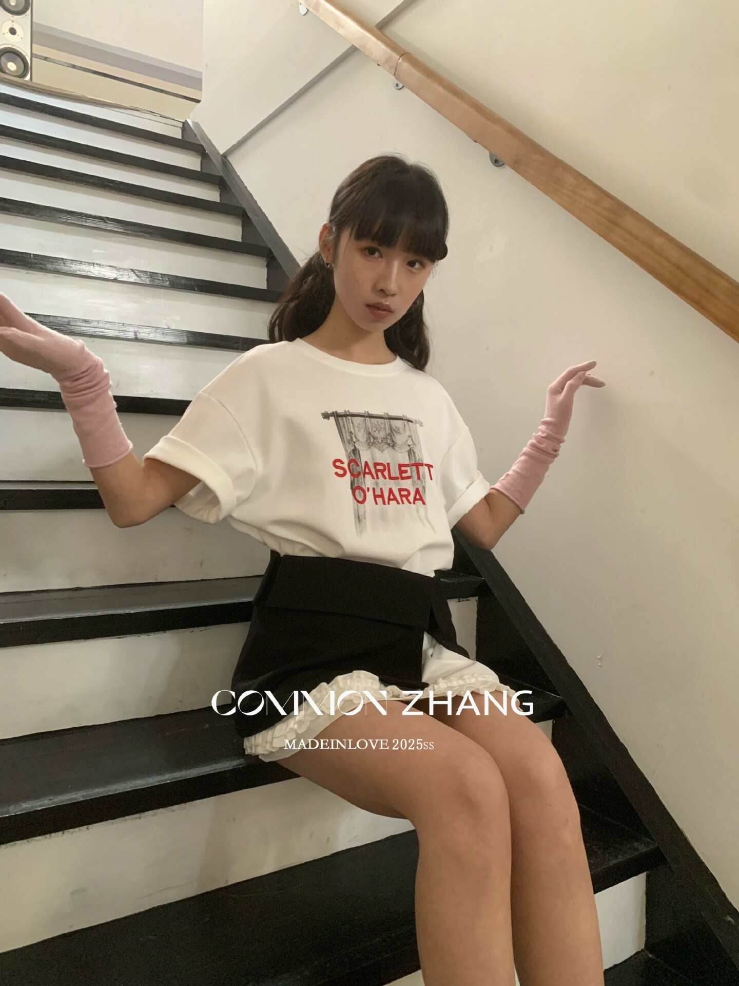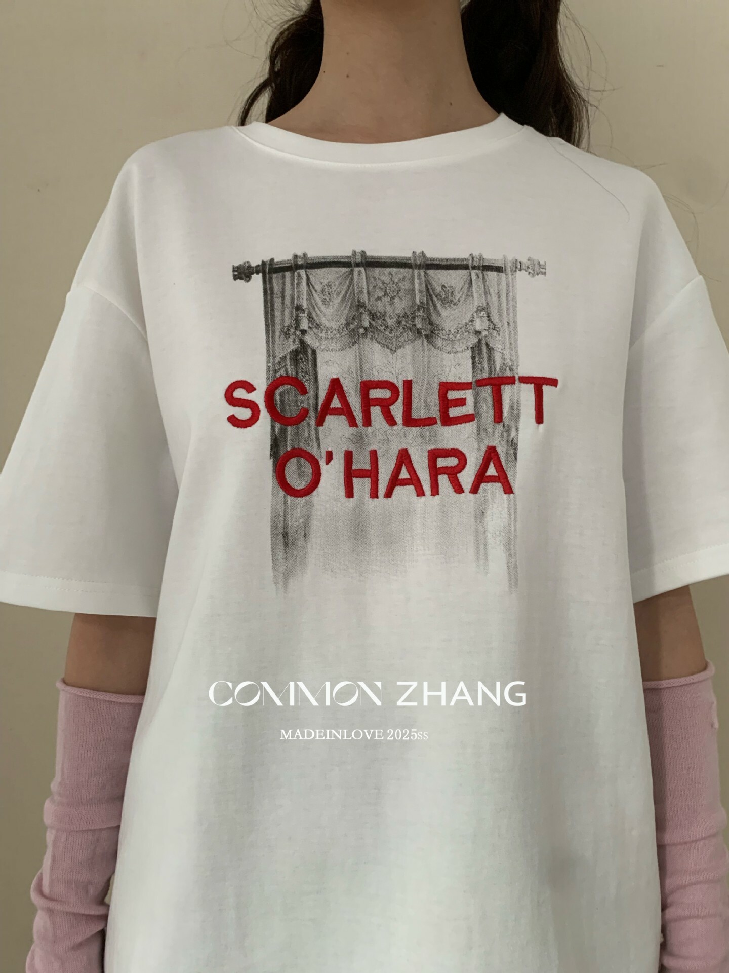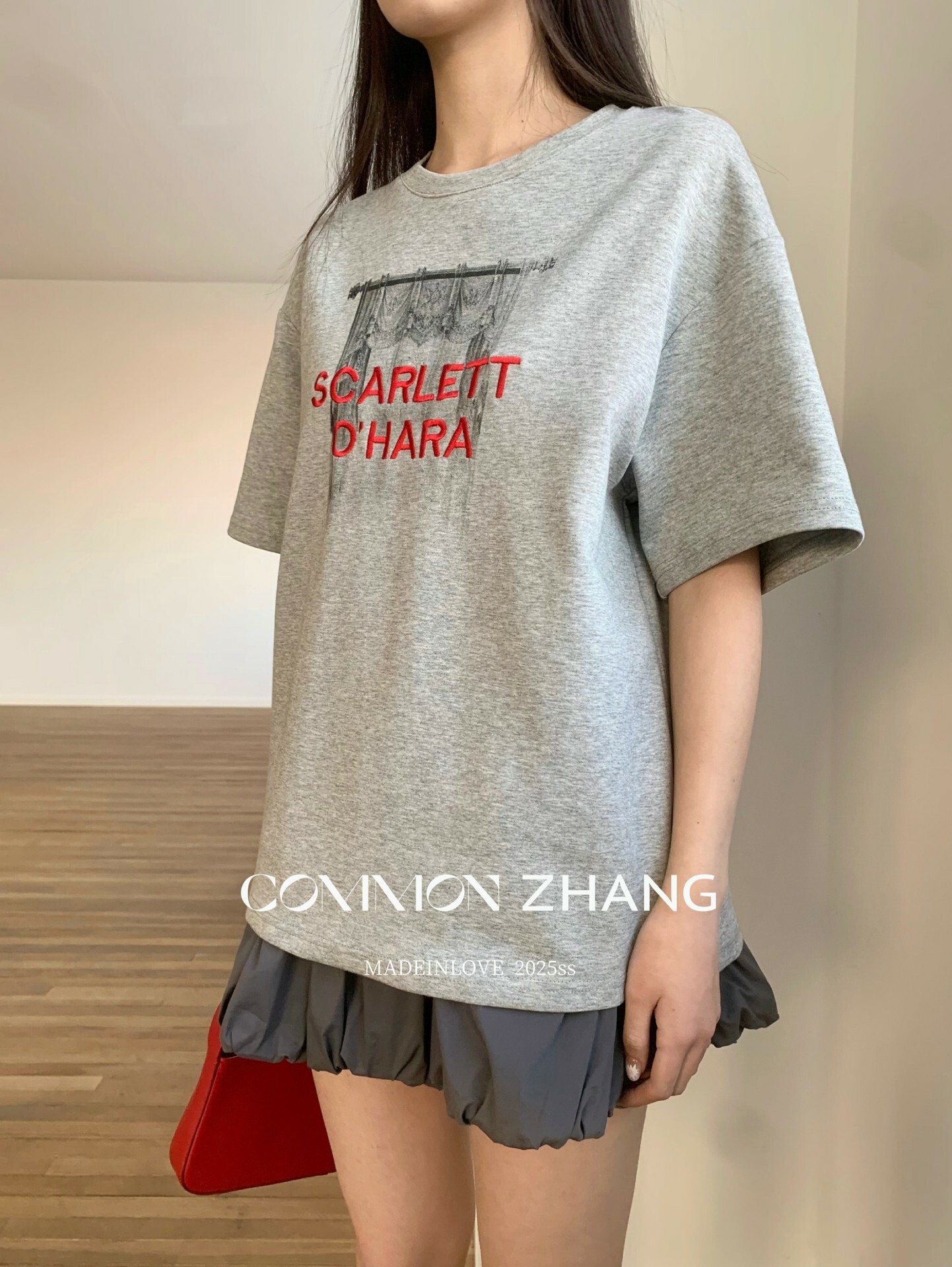*o-ha-you*【FCZ100237】春季復古字母繡花圖案印花圓領正肩寬鬆百搭短袖T恤-2色-如有需要請先諮詢