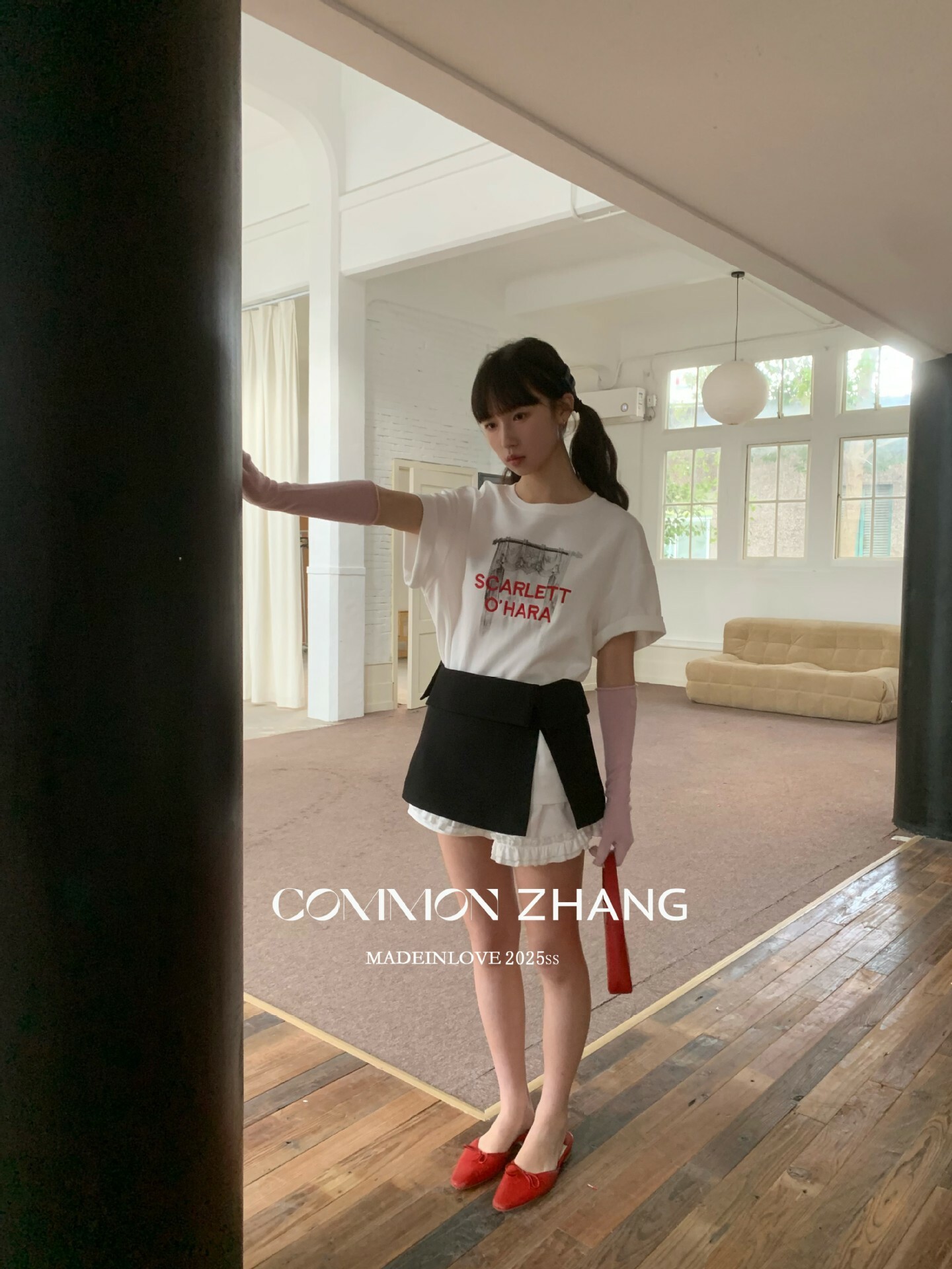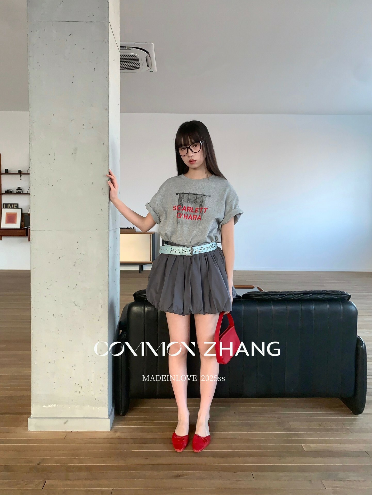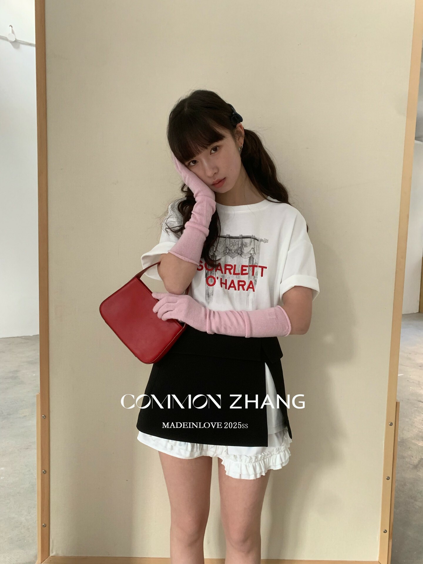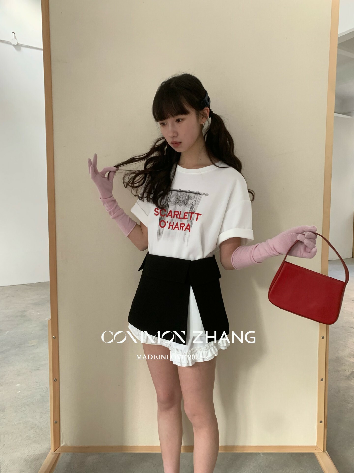 *o-ha-you*【FCZ100237】春季復古字母繡花圖案印花圓領正肩寬鬆百搭短袖T恤-2色-如有需要請先諮詢