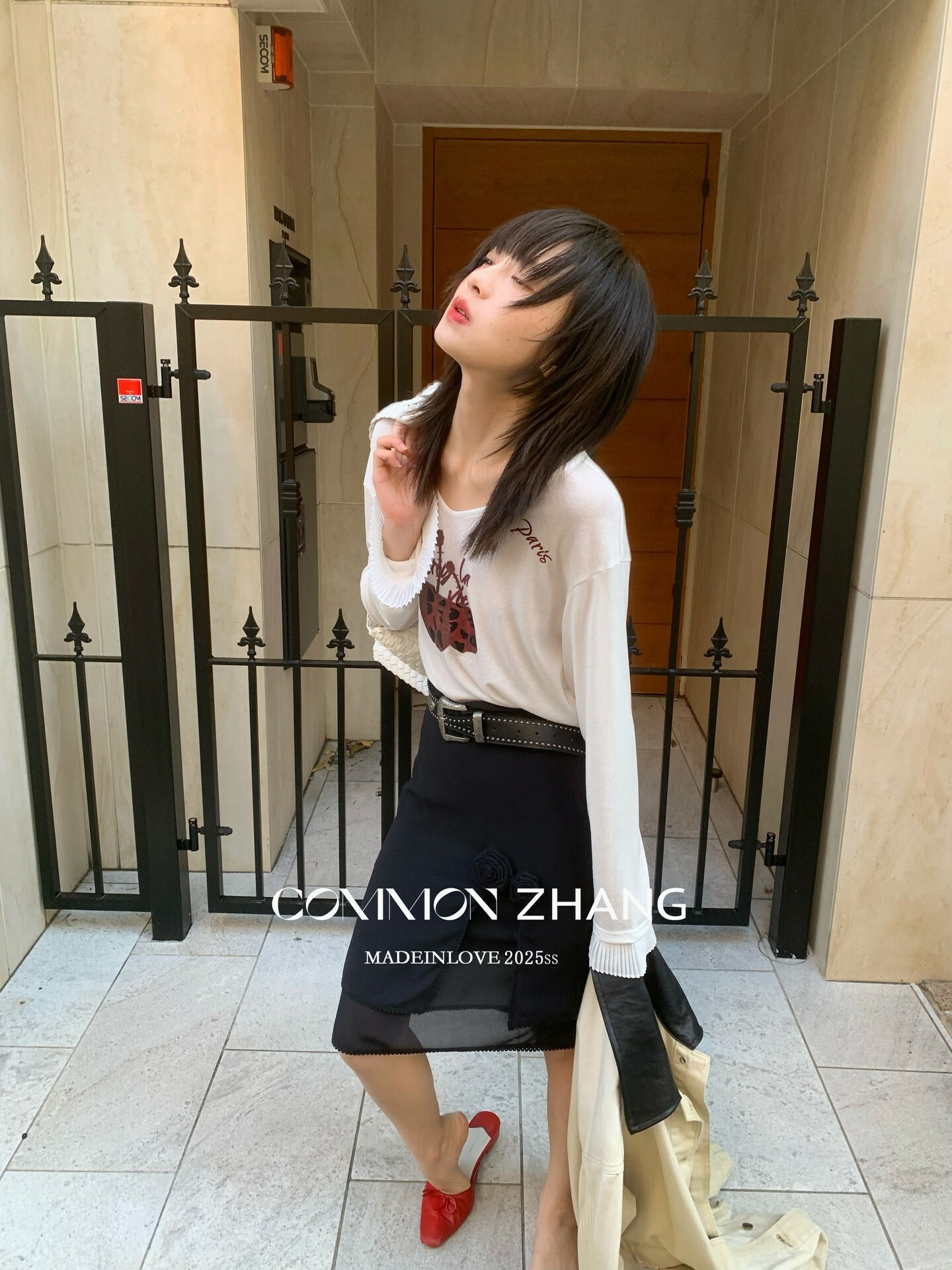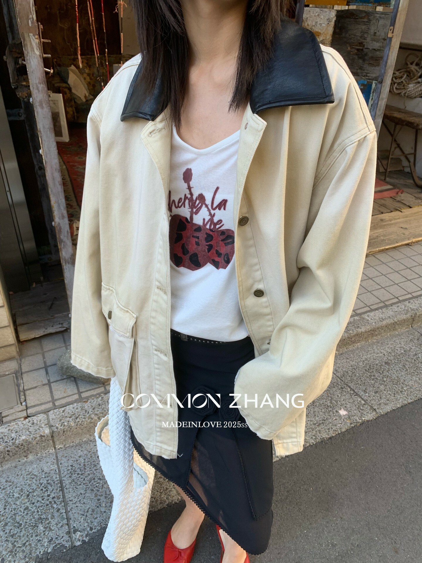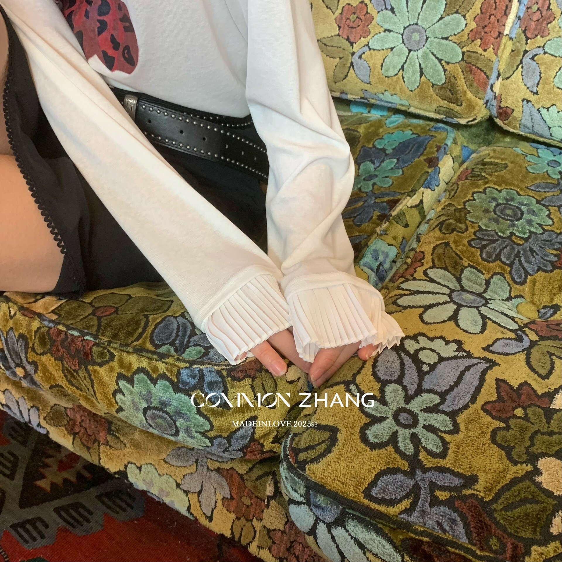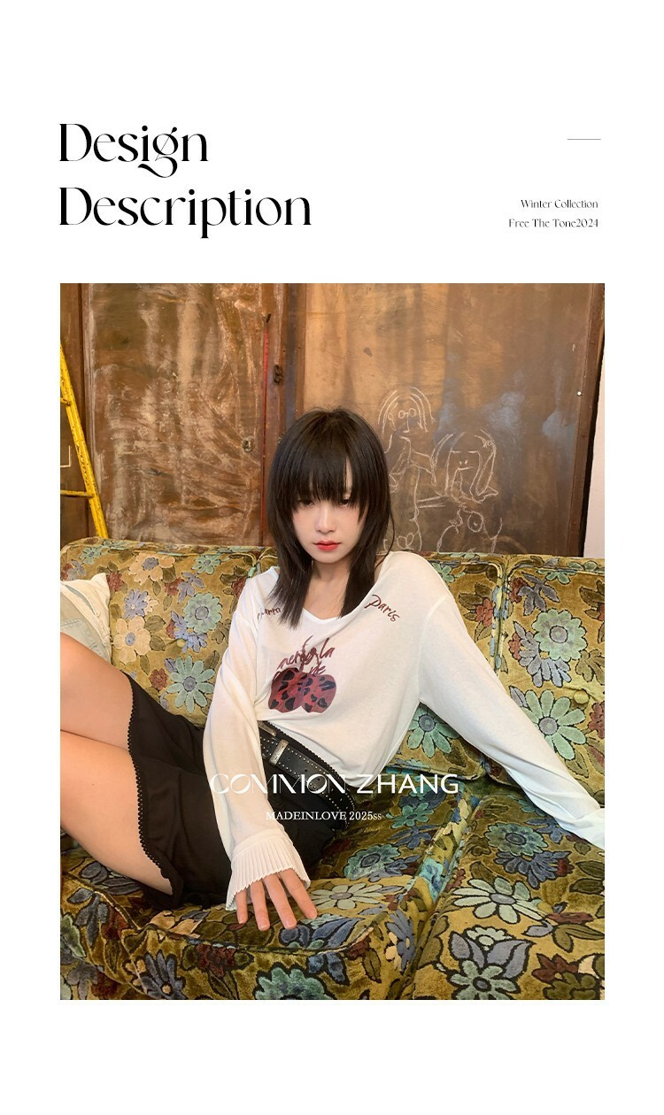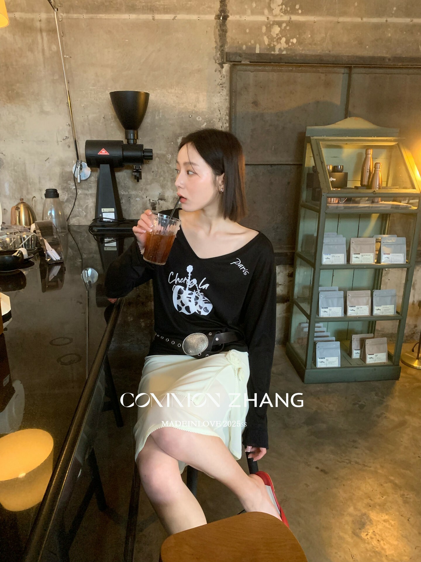 *o-ha-you*【FCZ100240】春季新款復古櫻桃字母印花百褶袖天絲寬V領短袖T恤-2色-如有需要請先諮詢