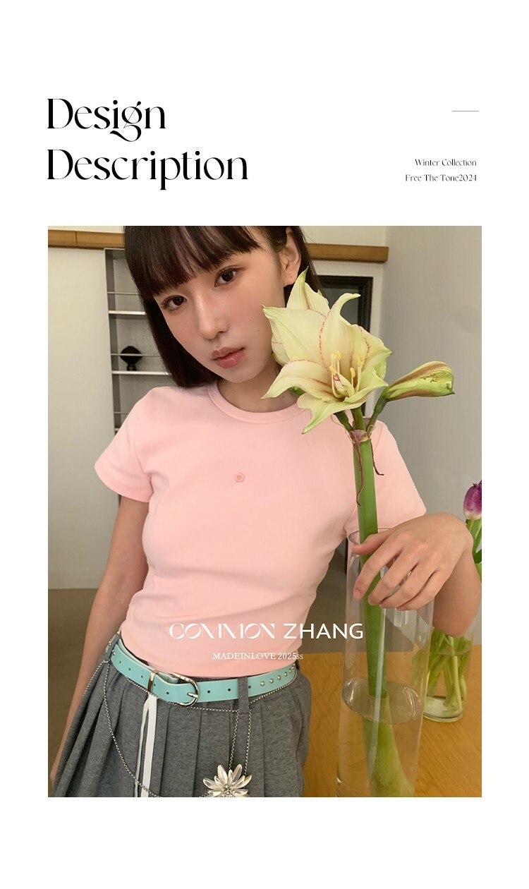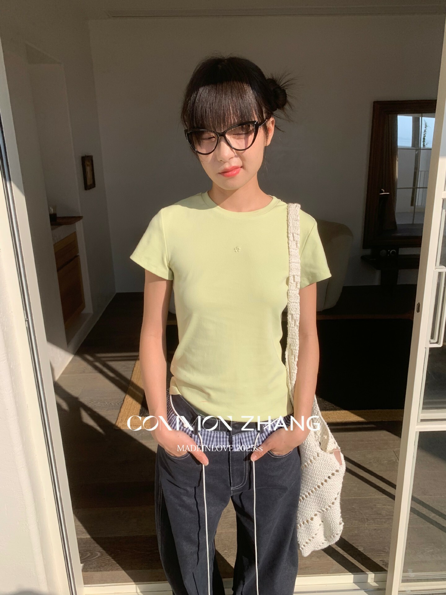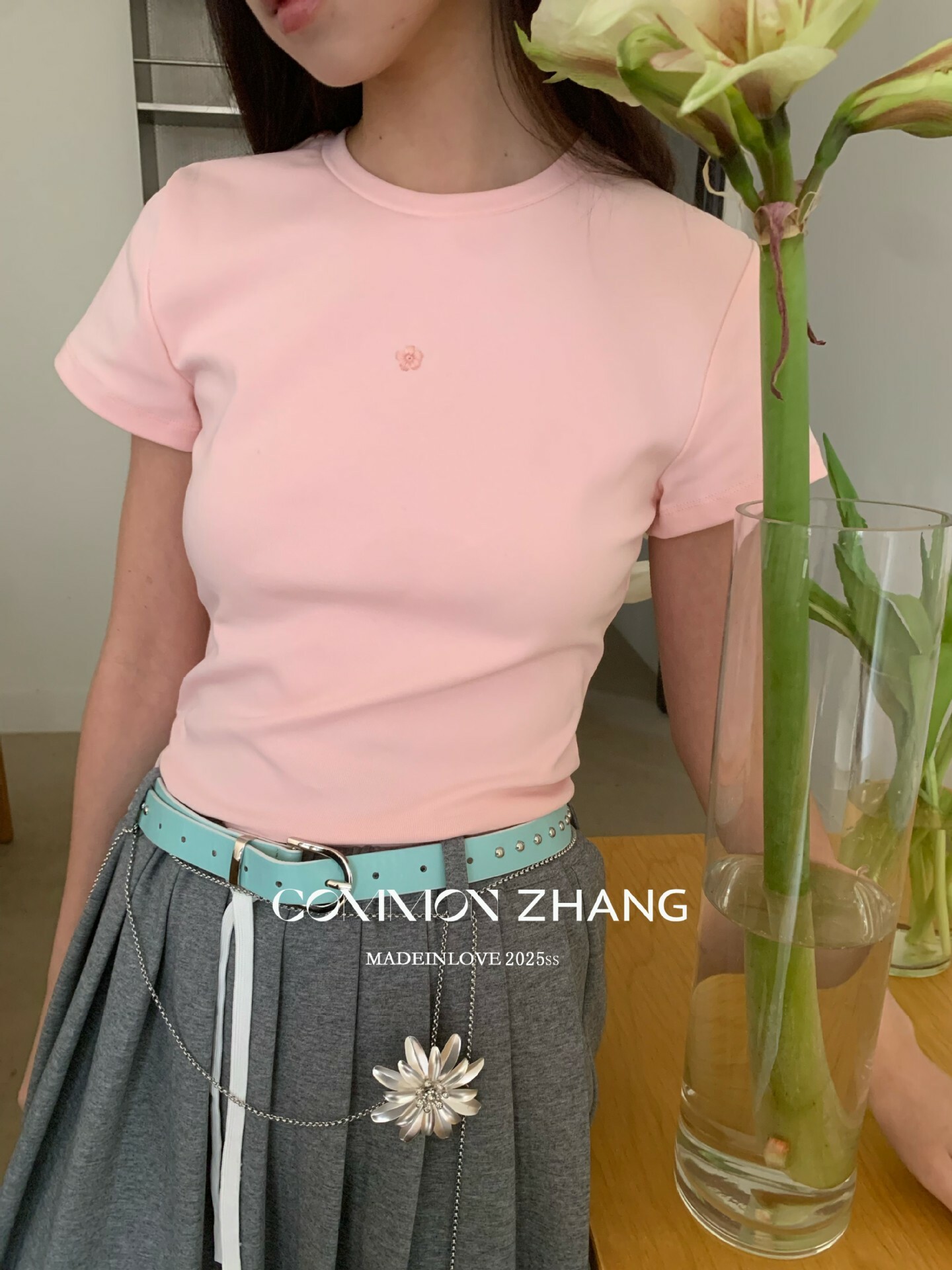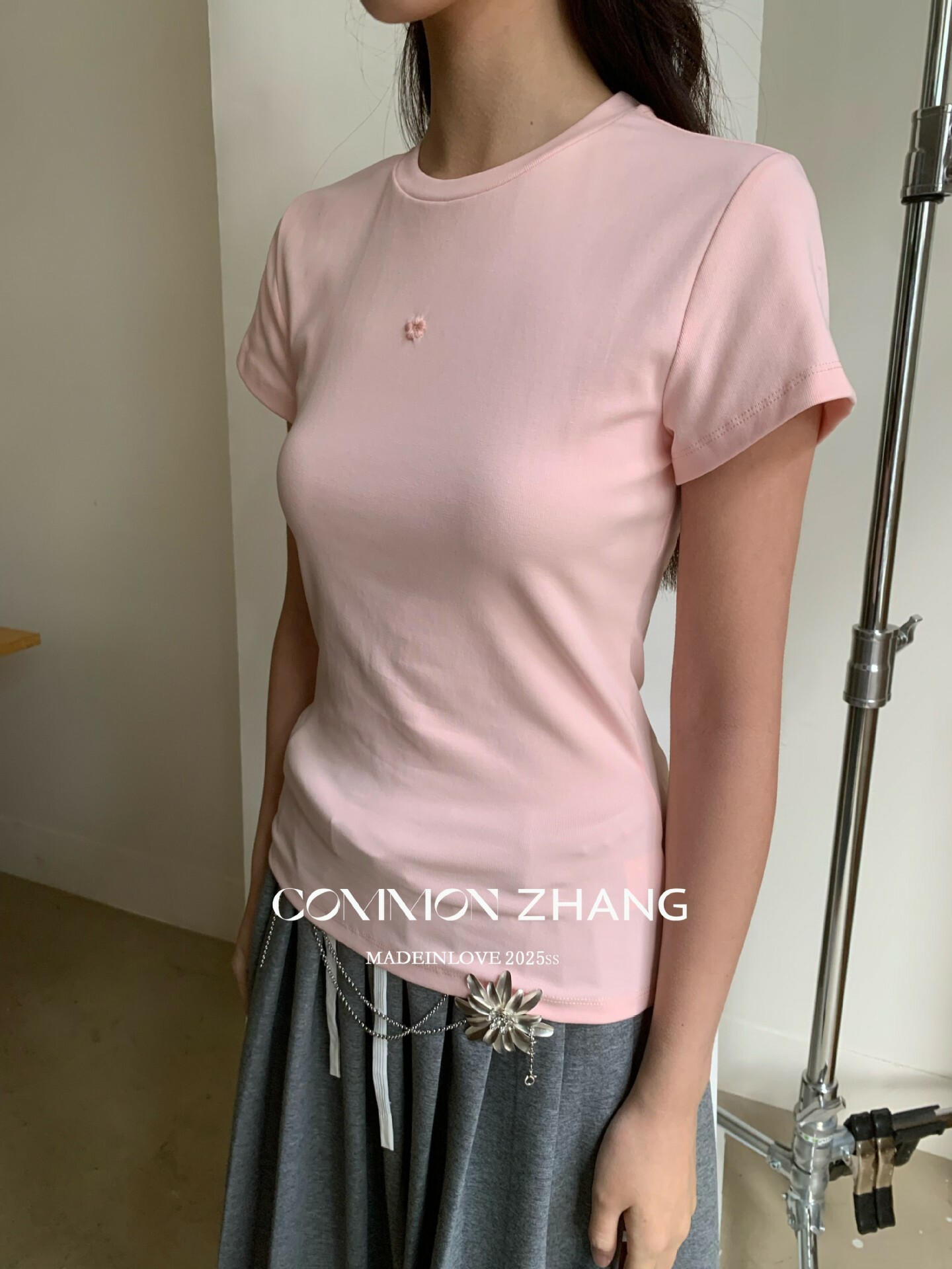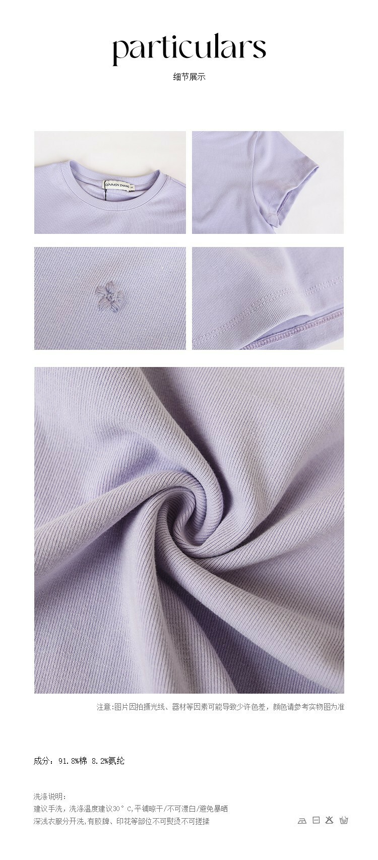 *o-ha-you*【FCZ100308】多色小眾繡花圓領正肩寬鬆休閒百搭純色打底短袖T恤-如有需要請先諮詢