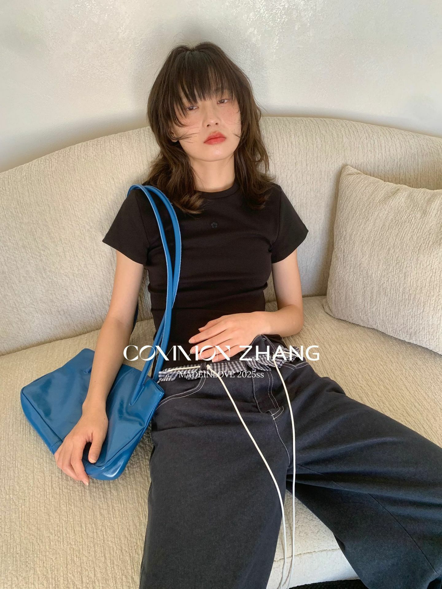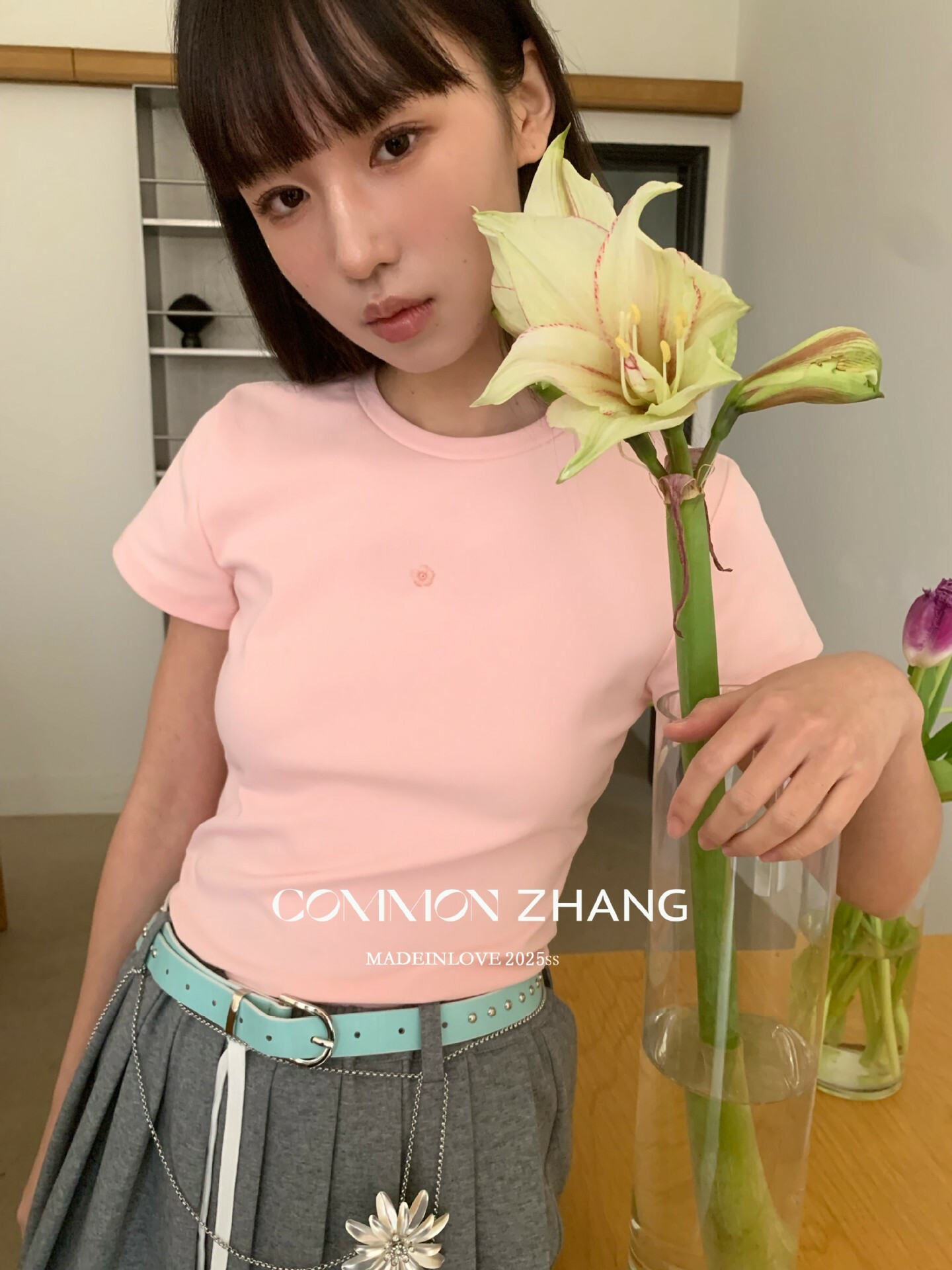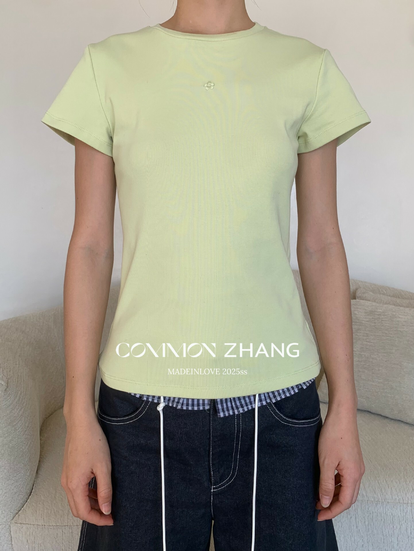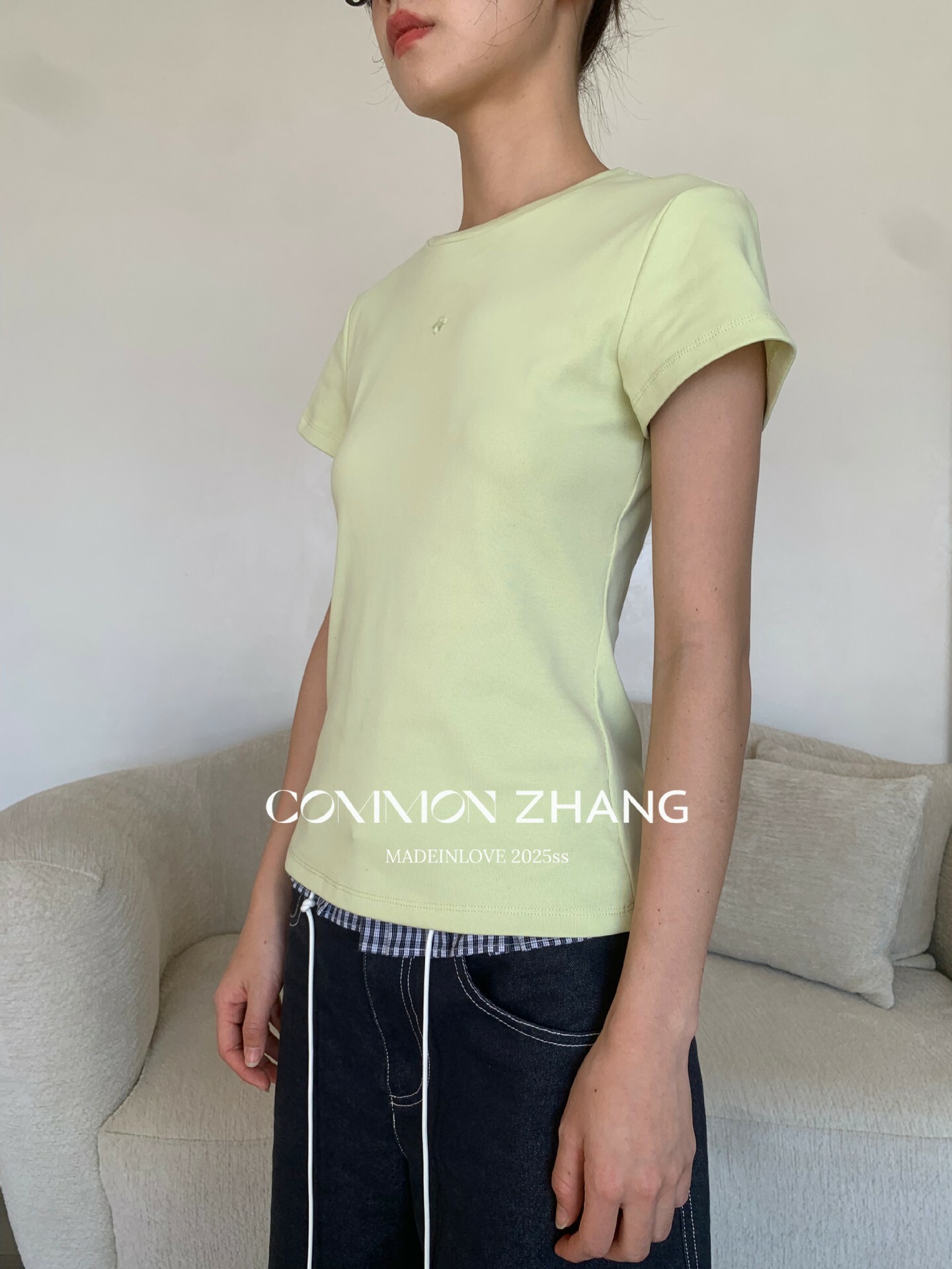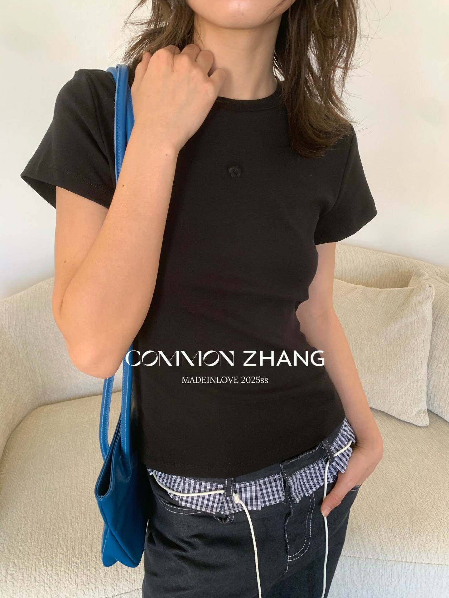 *o-ha-you*【FCZ100308】多色小眾繡花圓領正肩寬鬆休閒百搭純色打底短袖T恤-如有需要請先諮詢