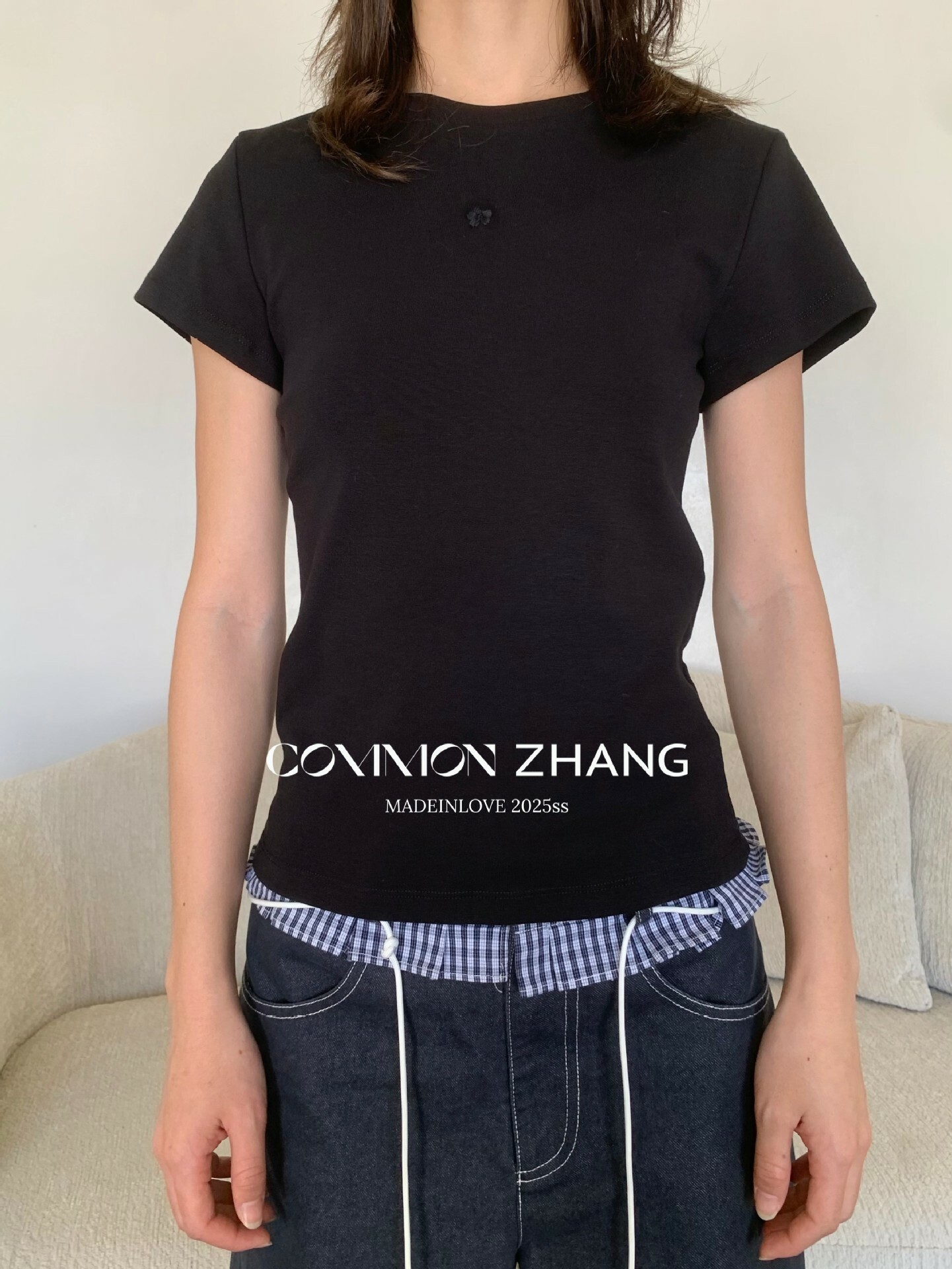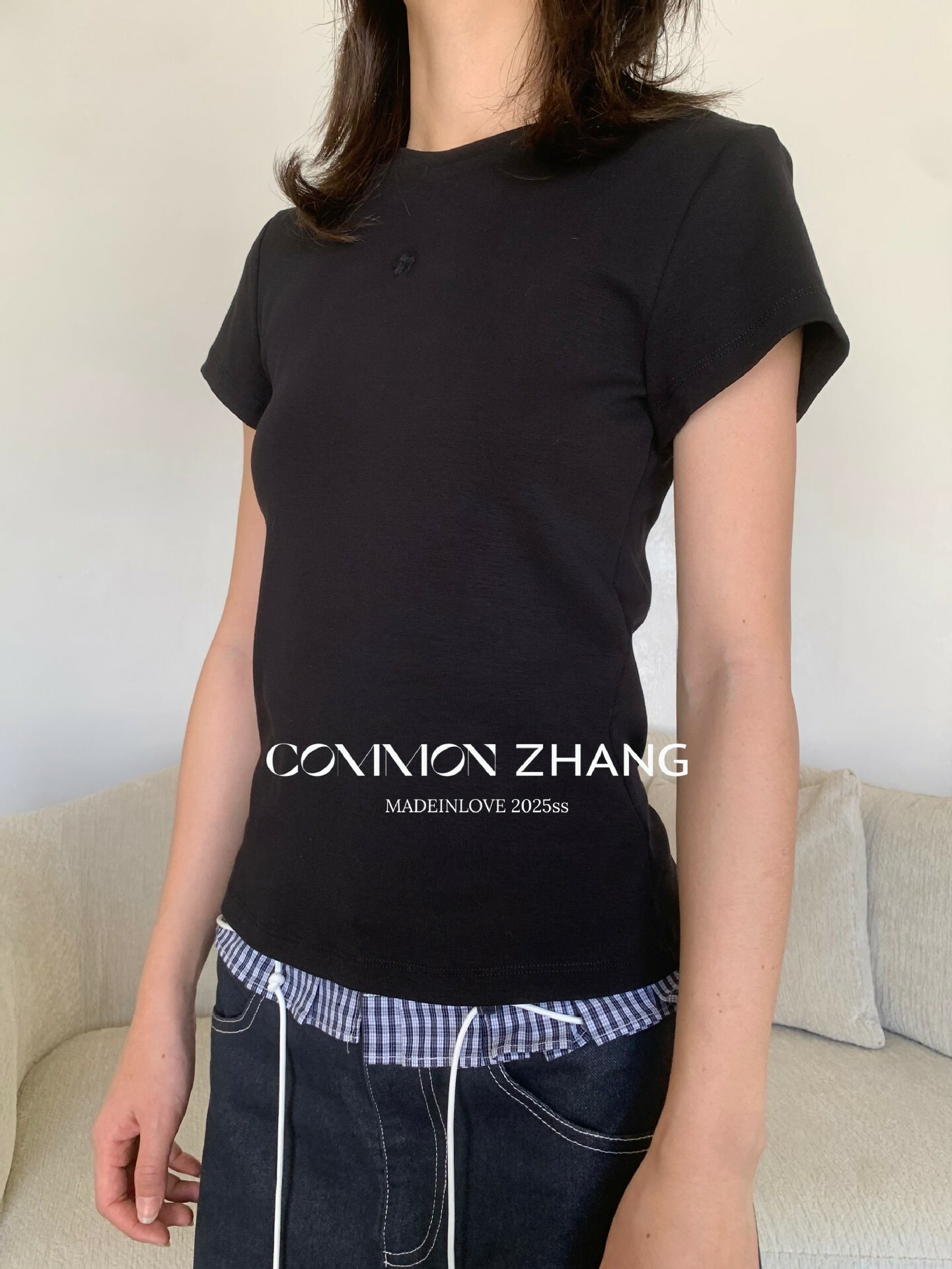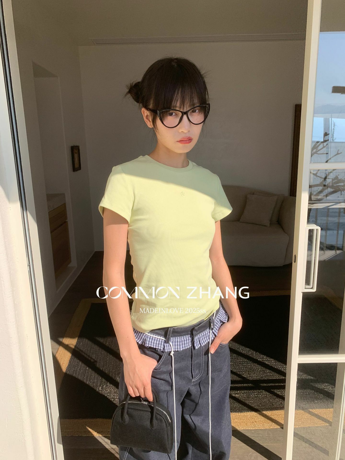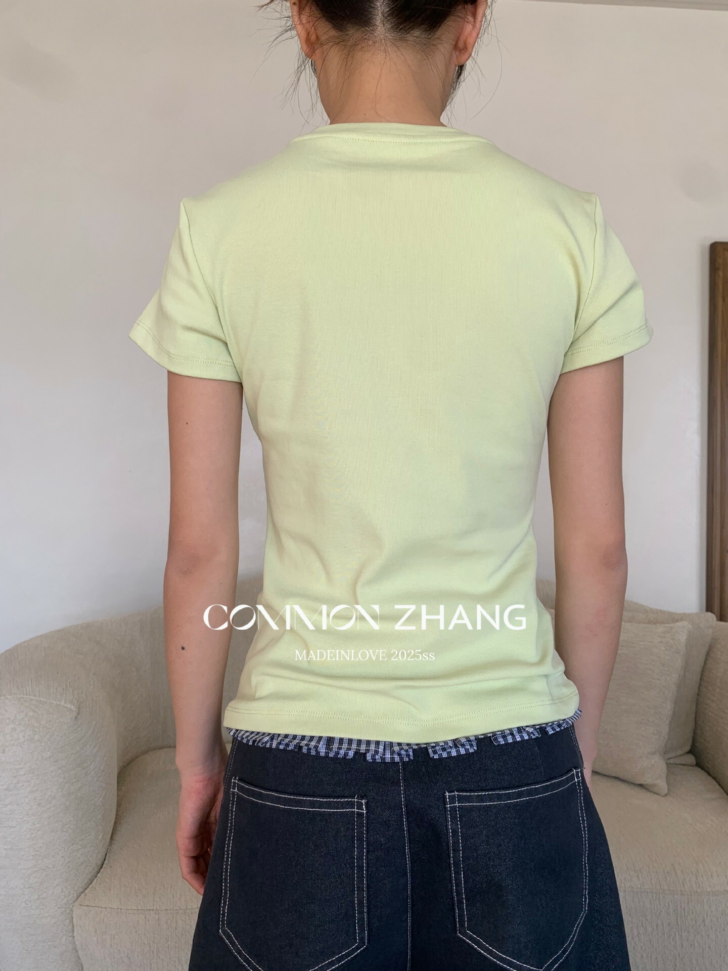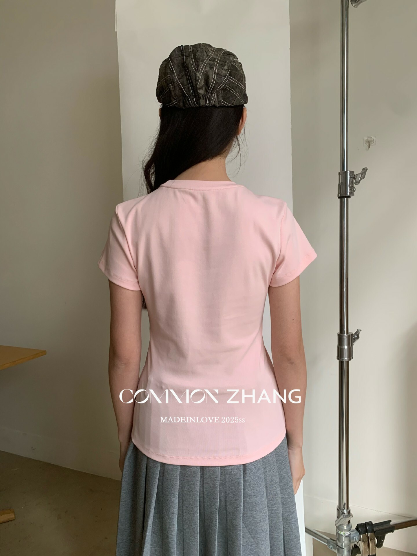 *o-ha-you*【FCZ100308】多色小眾繡花圓領正肩寬鬆休閒百搭純色打底短袖T恤-如有需要請先諮詢
