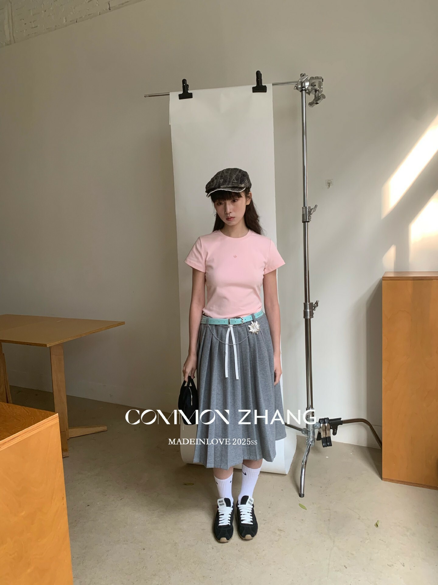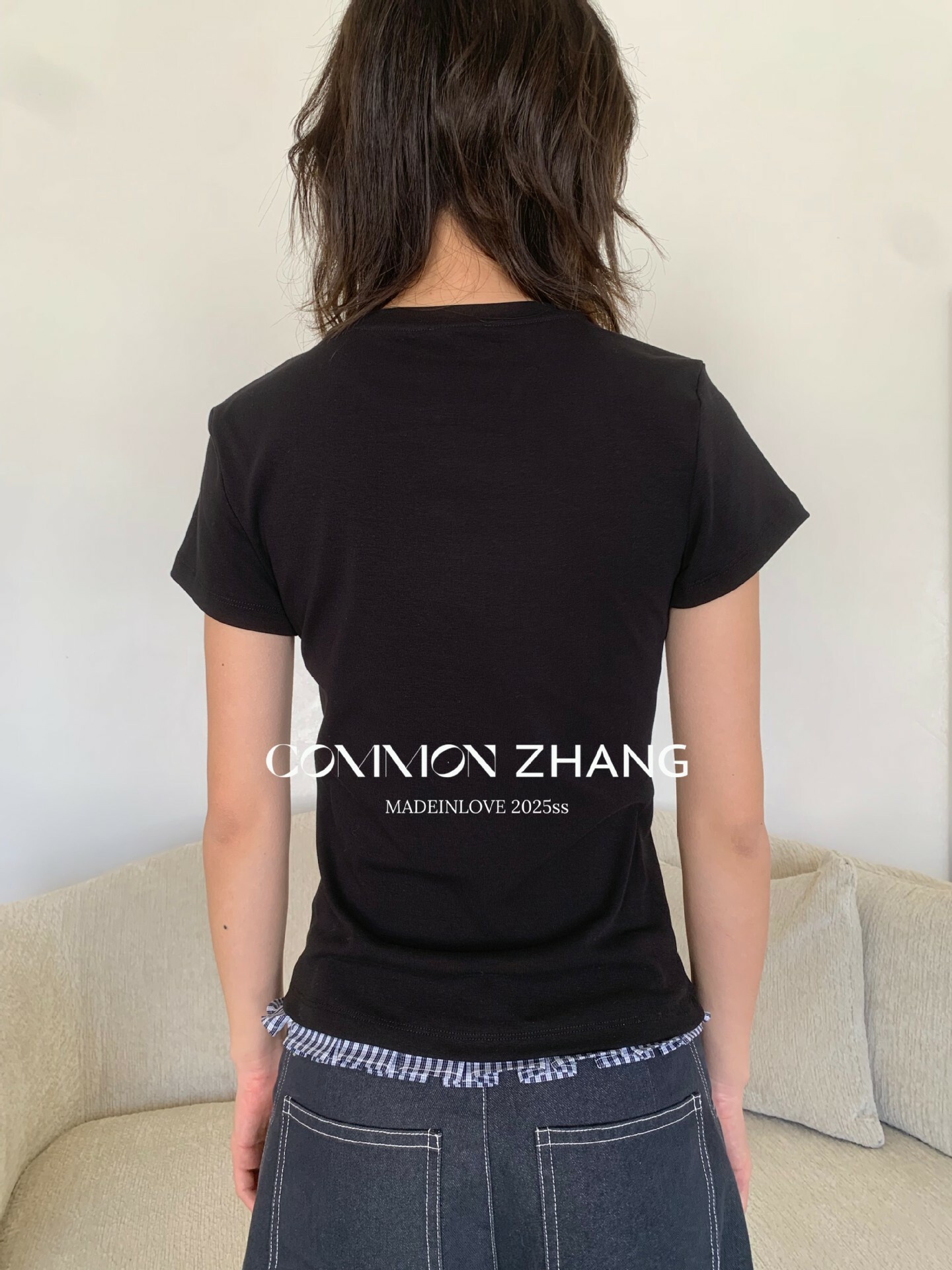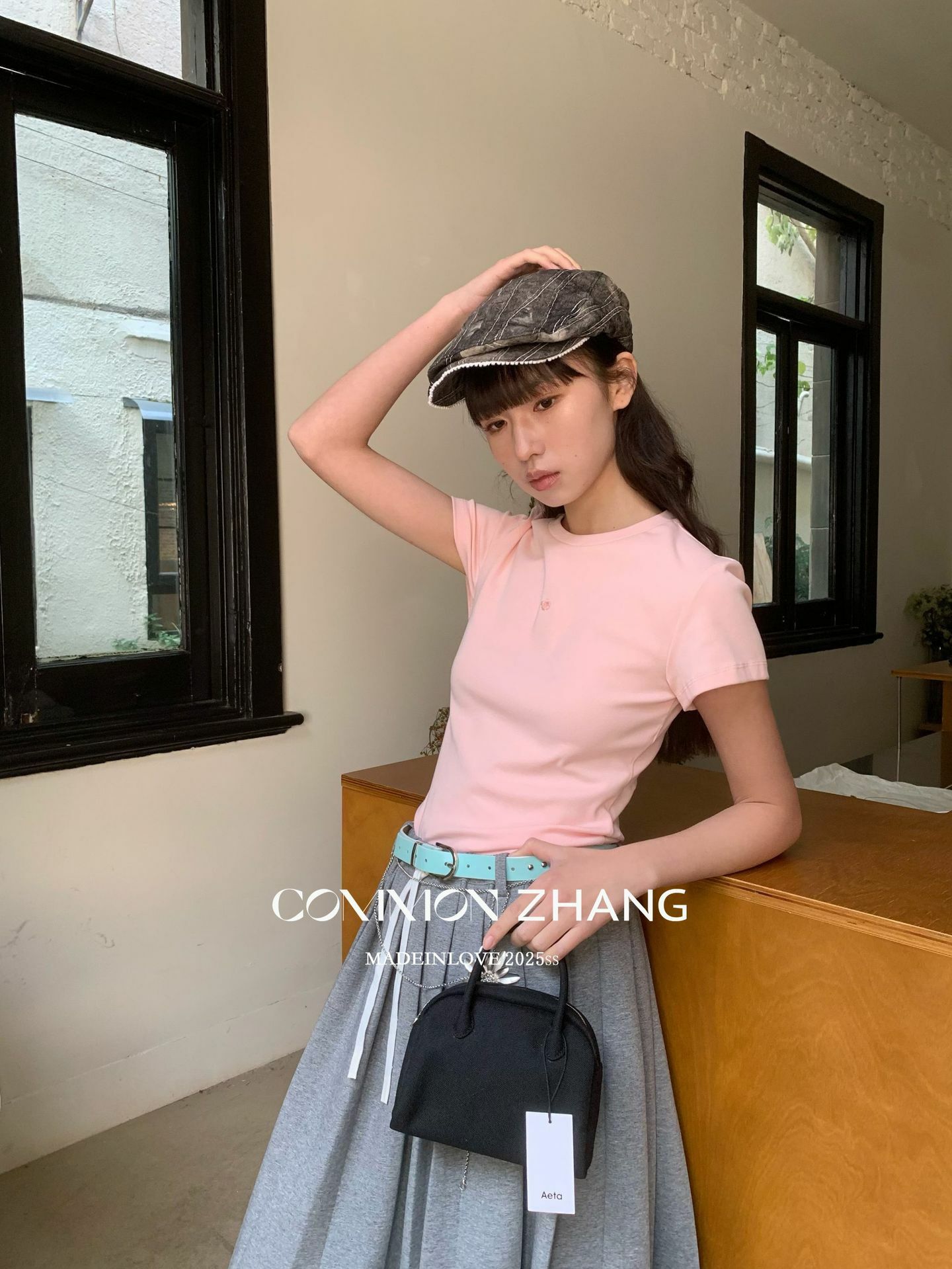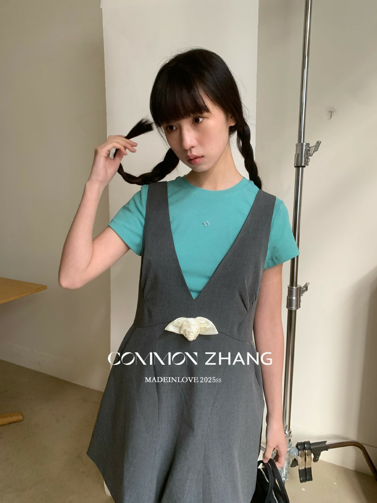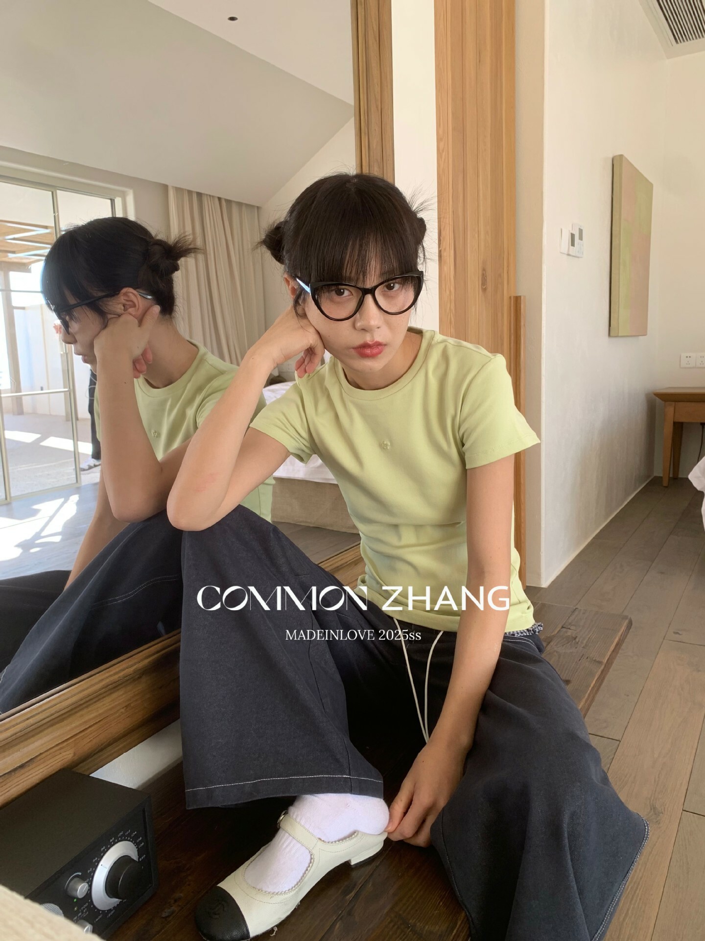*o-ha-you*【FCZ100308】多色小眾繡花圓領正肩寬鬆休閒百搭純色打底短袖T恤-如有需要請先諮詢