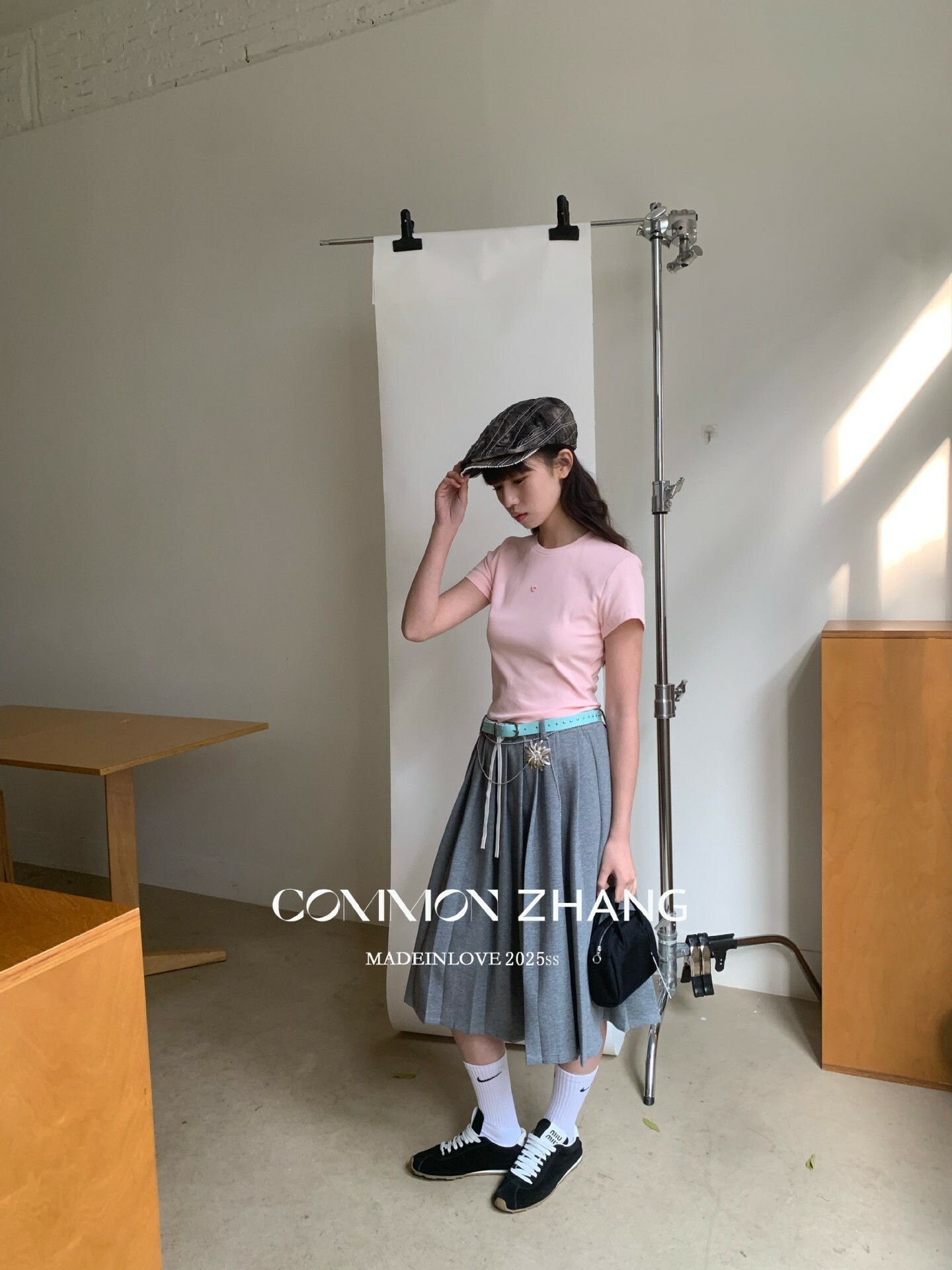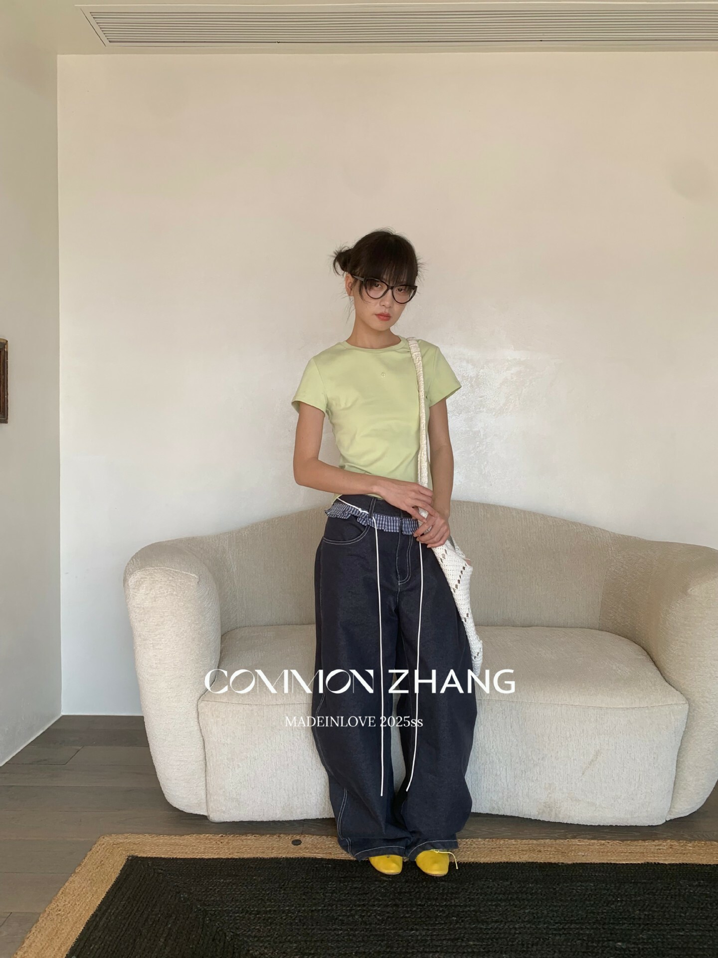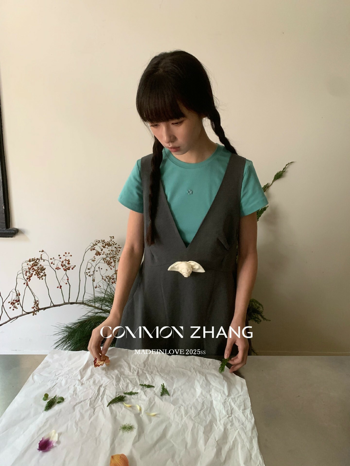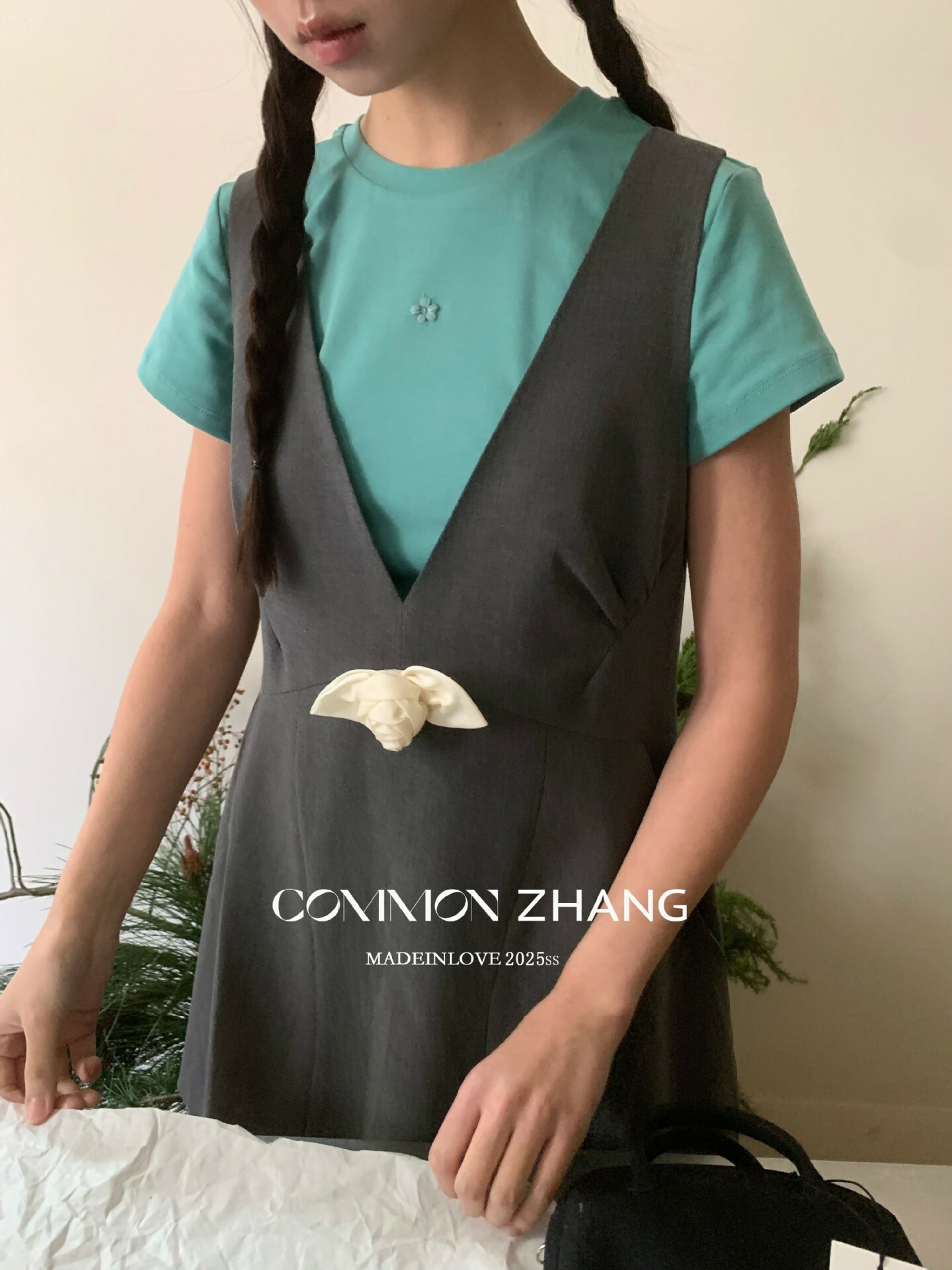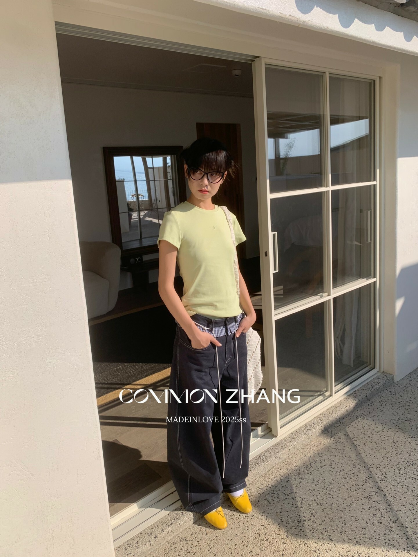 *o-ha-you*【FCZ100308】多色小眾繡花圓領正肩寬鬆休閒百搭純色打底短袖T恤-如有需要請先諮詢