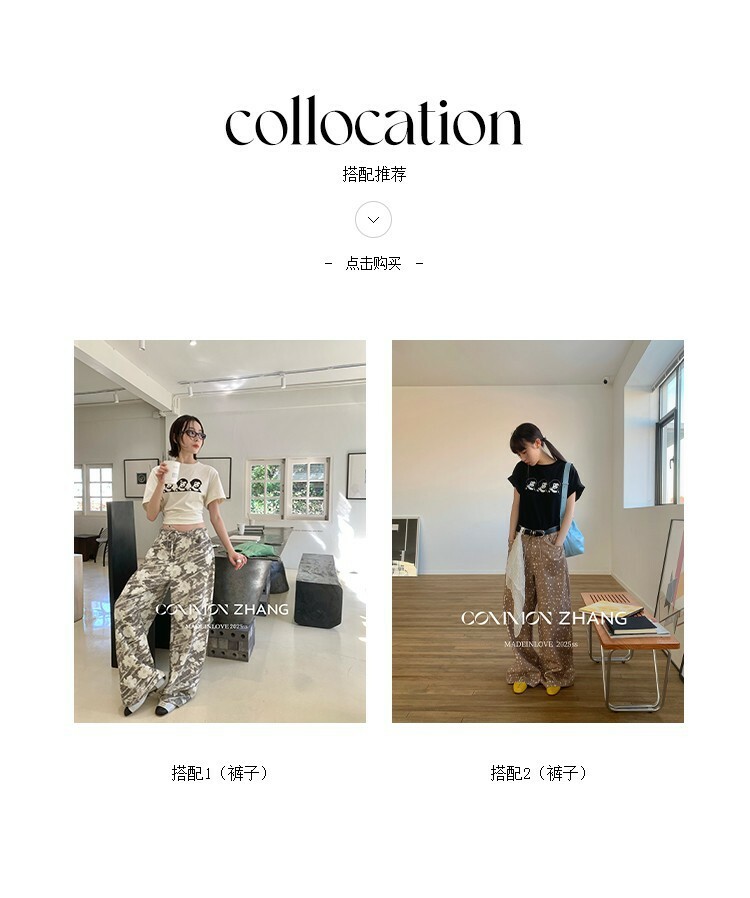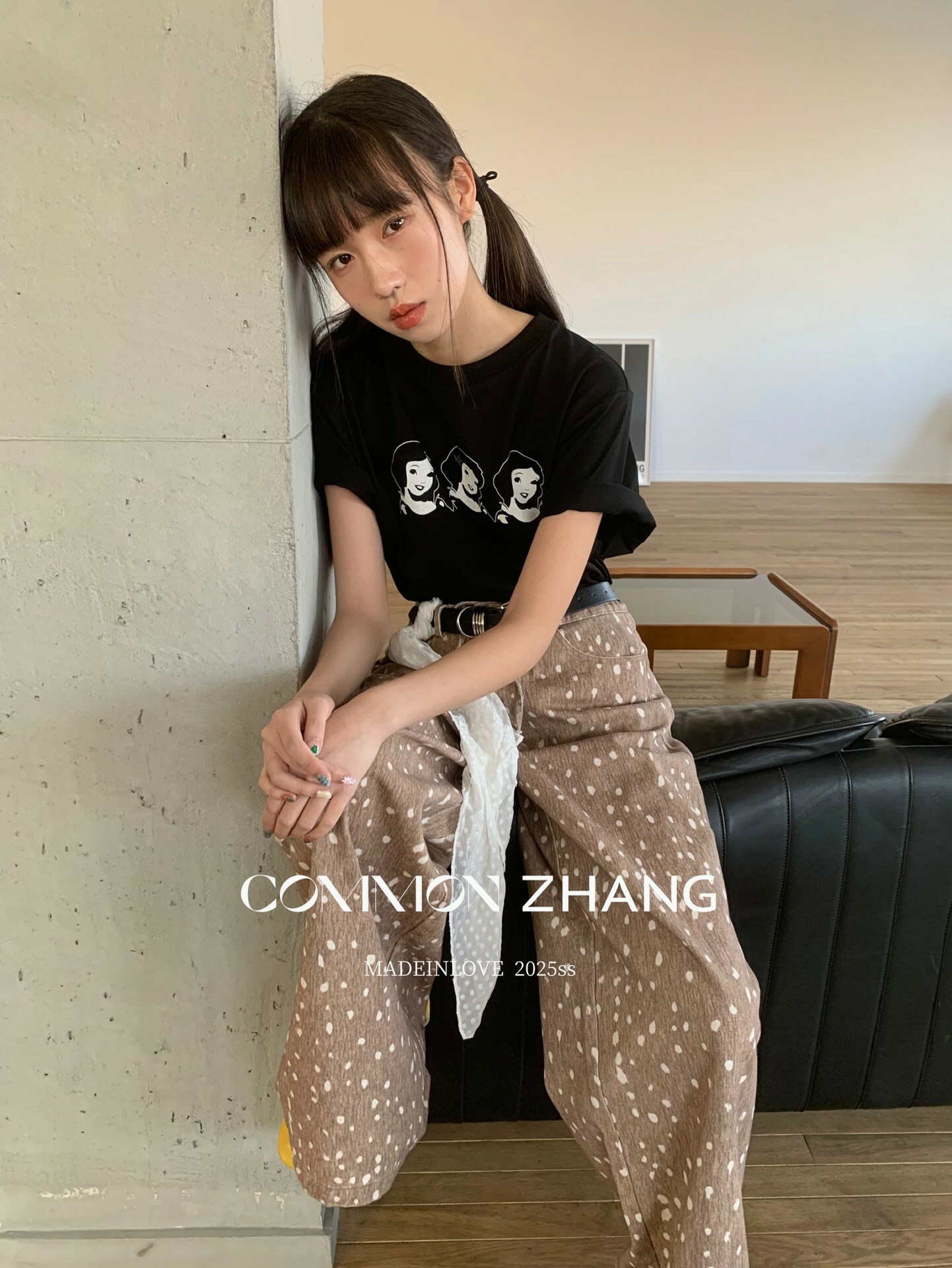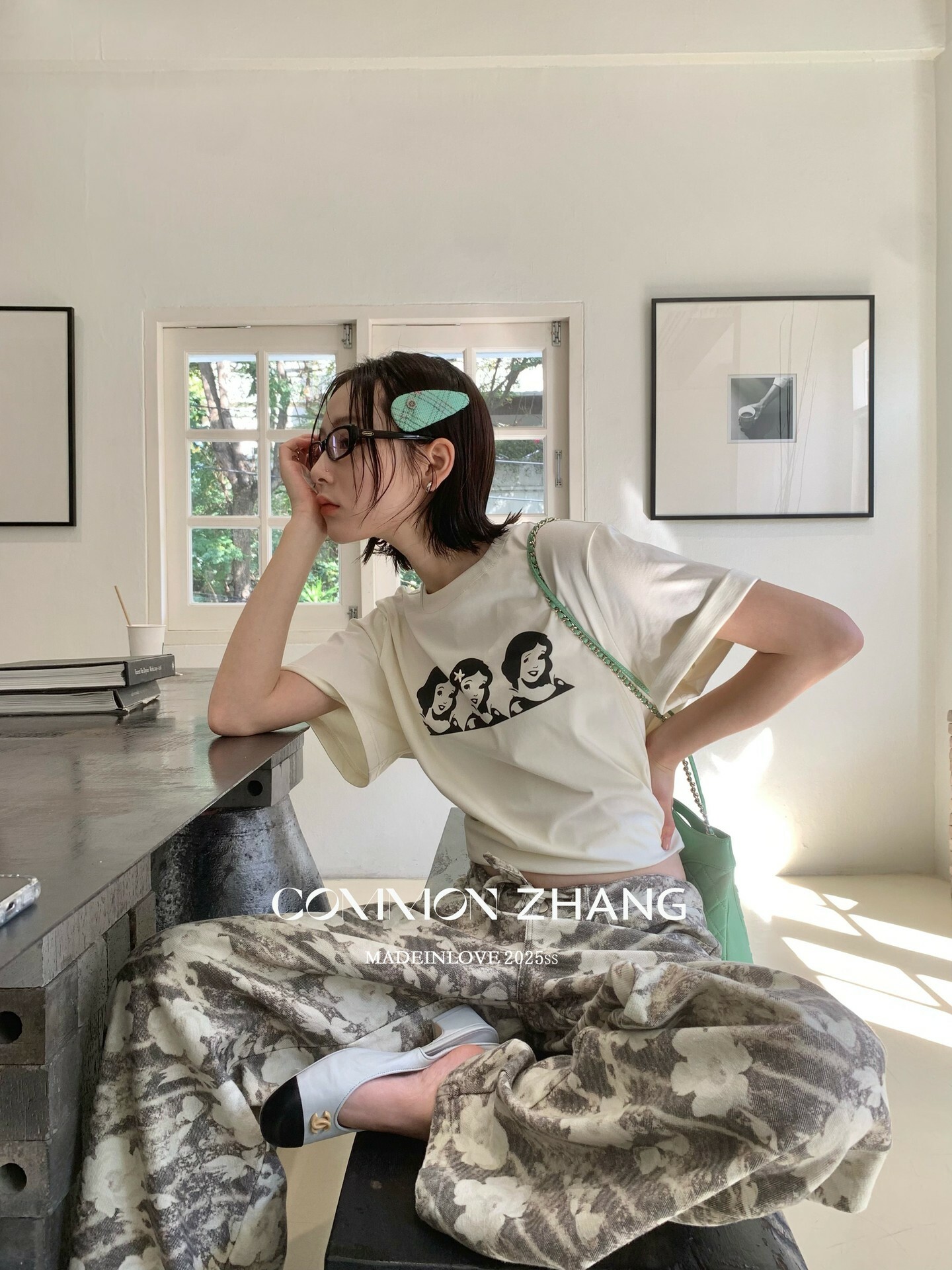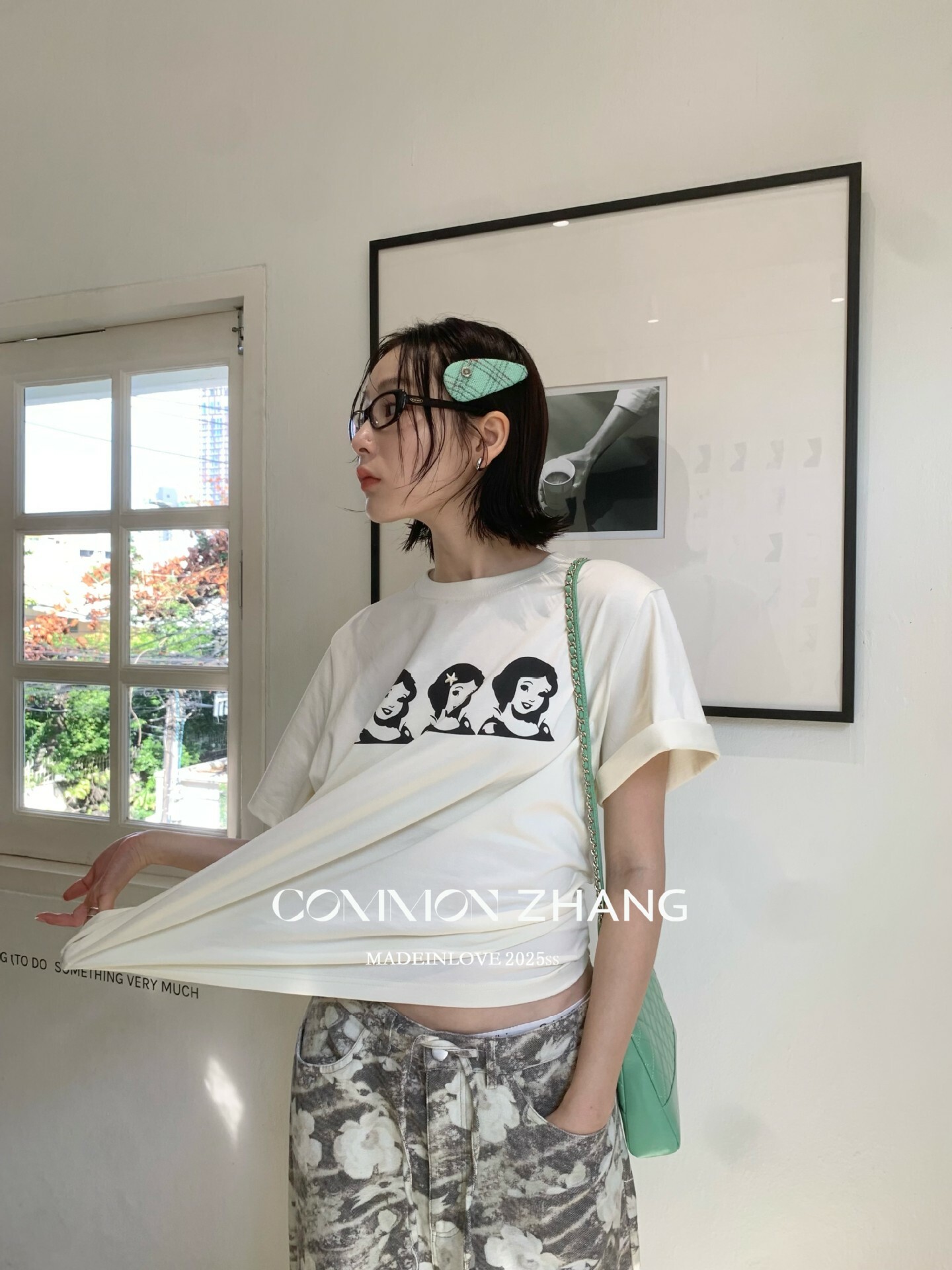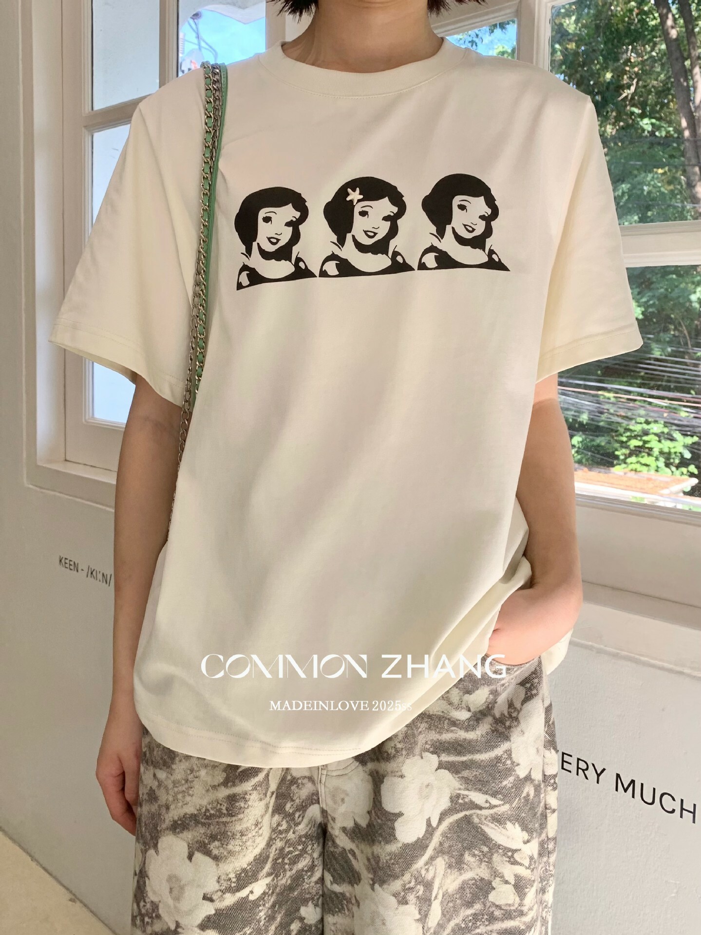 *o-ha-you*【FCZ100386】春季休閒慵懶圓領正肩卡通人物印花寬鬆百搭短袖T恤-2色