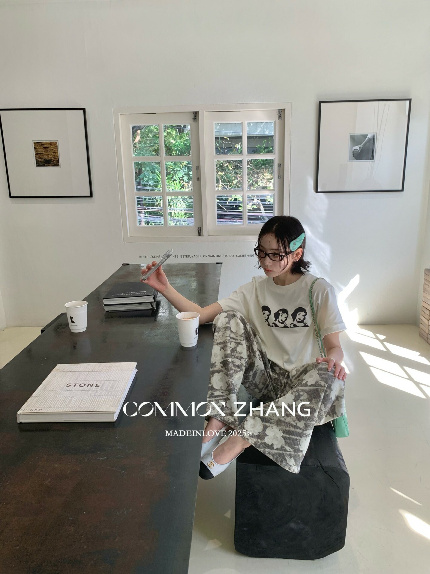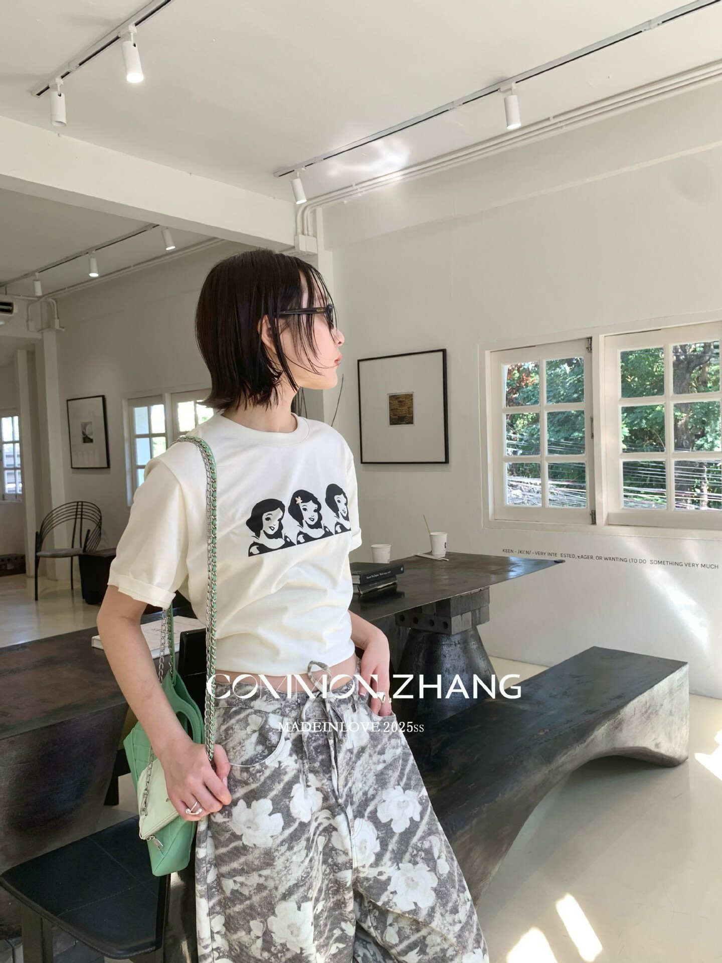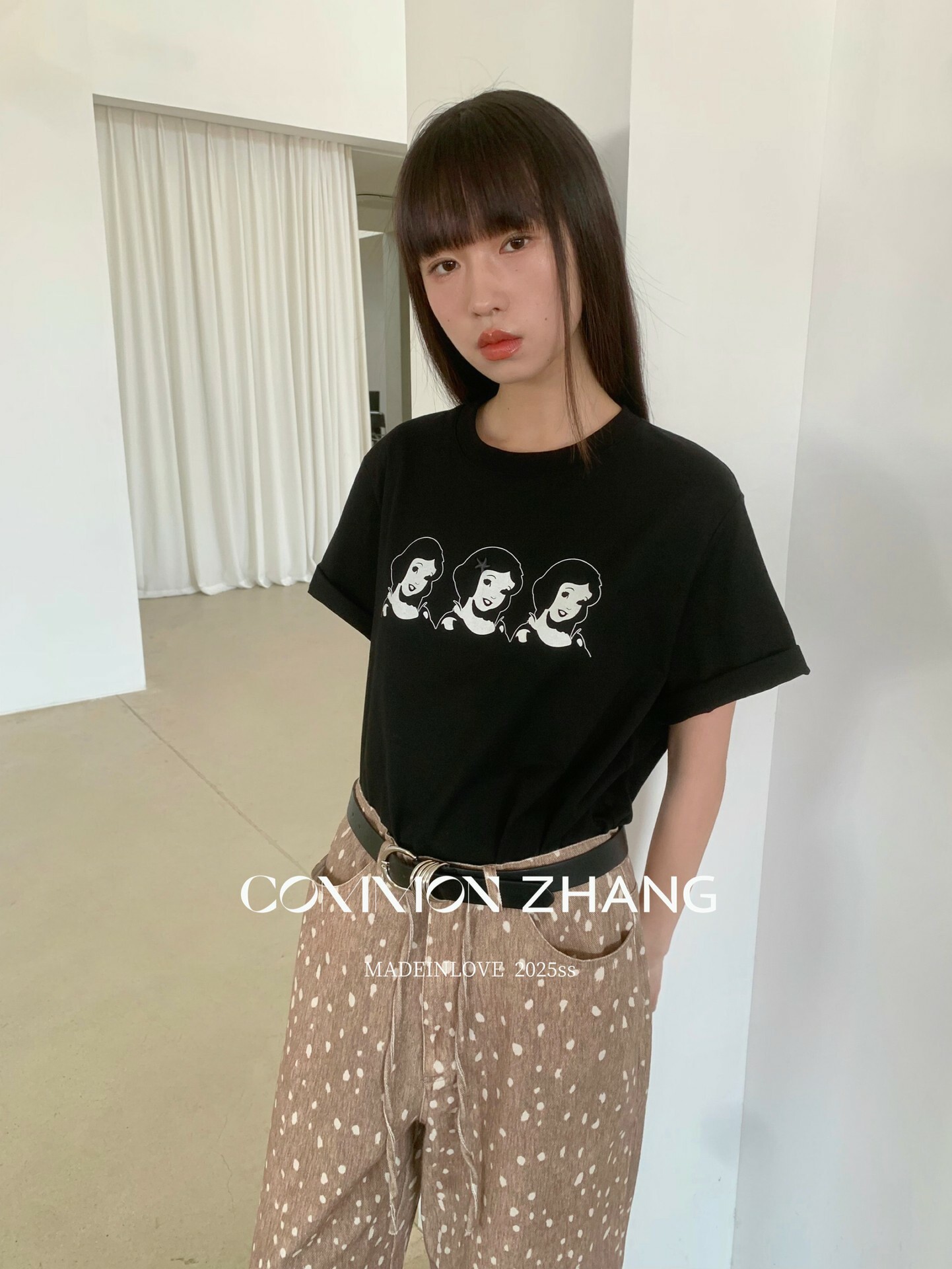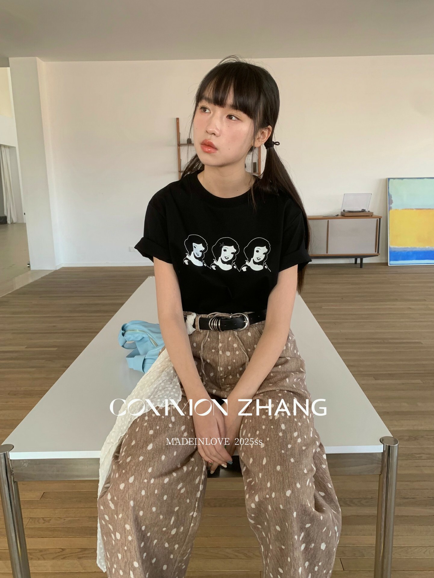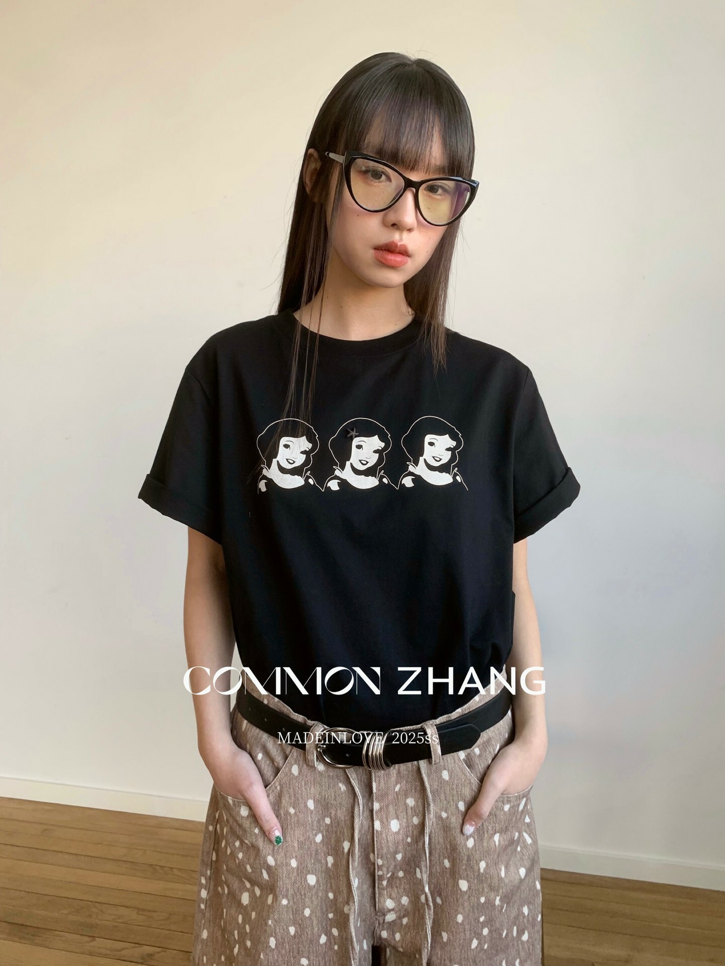 *o-ha-you*【FCZ100386】春季休閒慵懶圓領正肩卡通人物印花寬鬆百搭短袖T恤-2色
