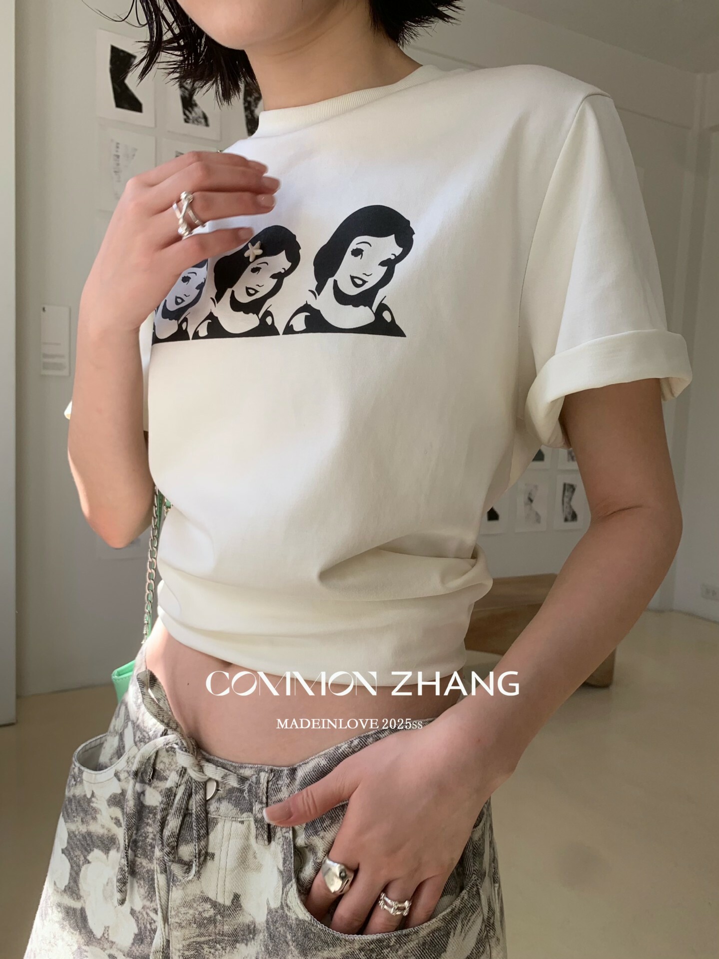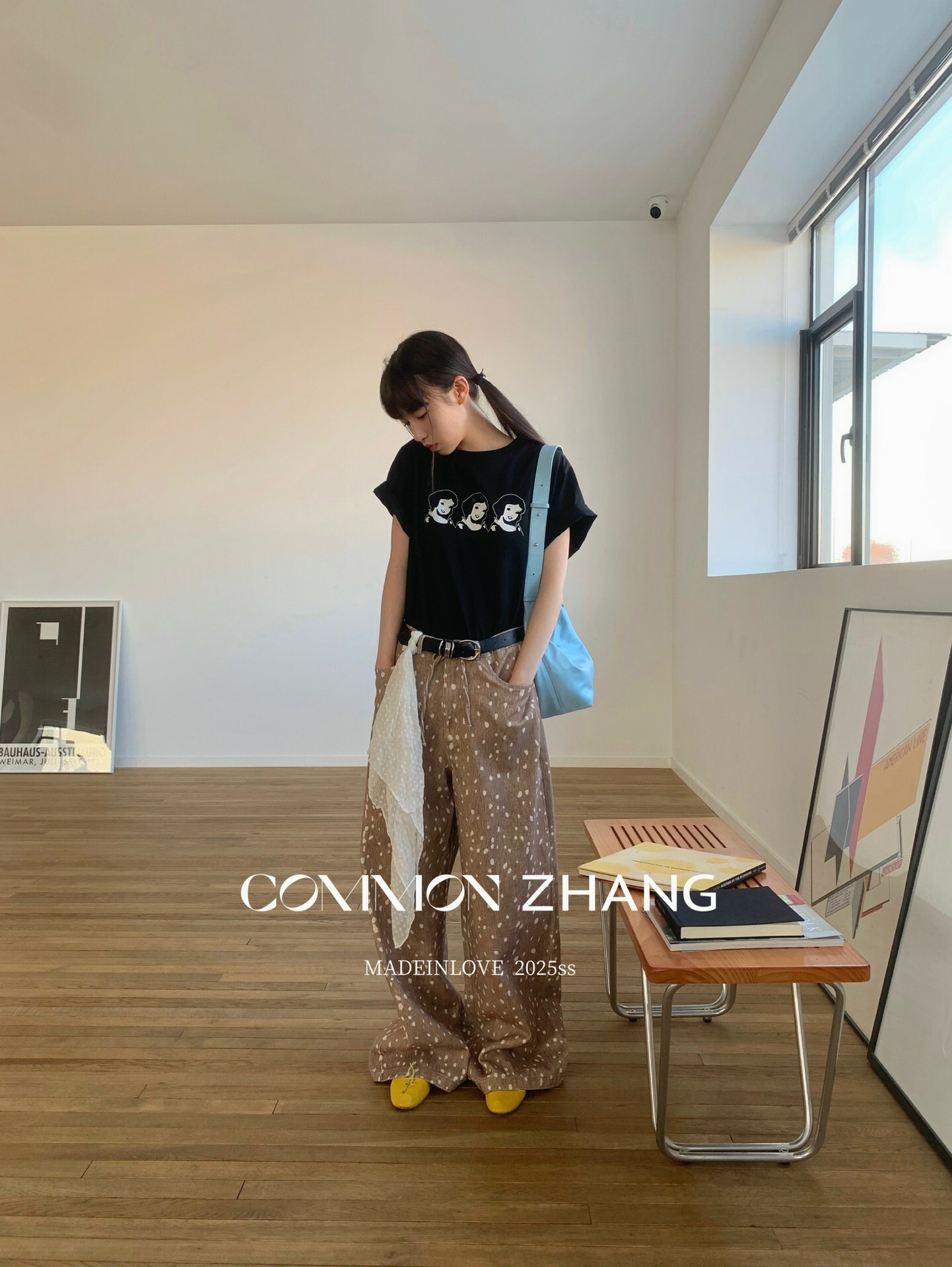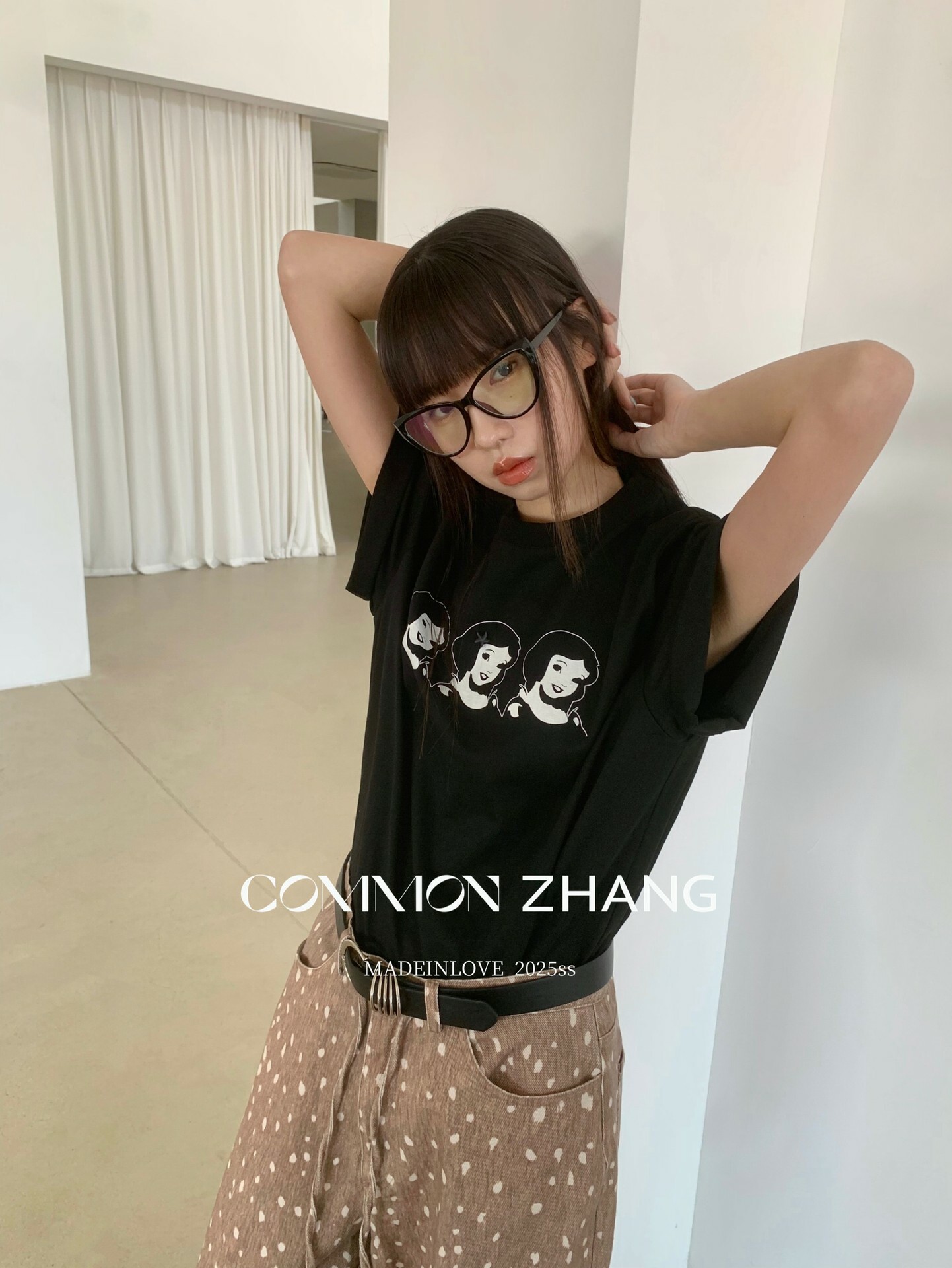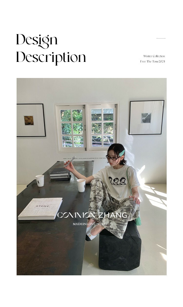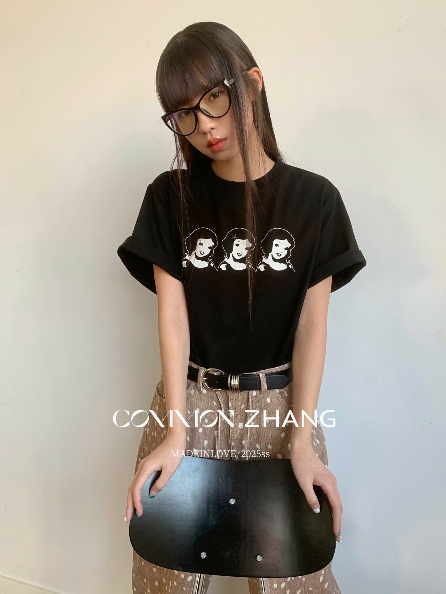 *o-ha-you*【FCZ100386】春季休閒慵懶圓領正肩卡通人物印花寬鬆百搭短袖T恤-2色