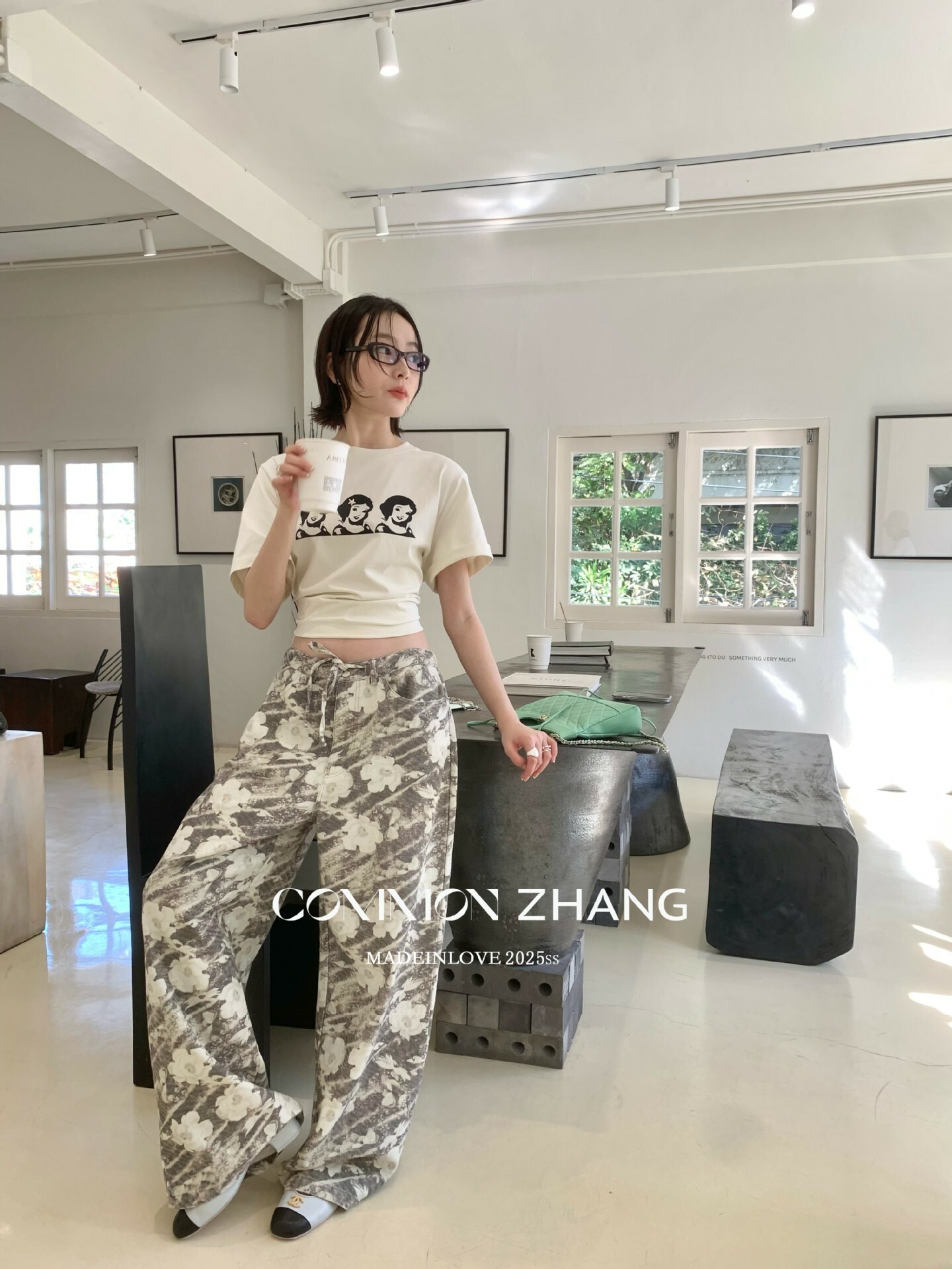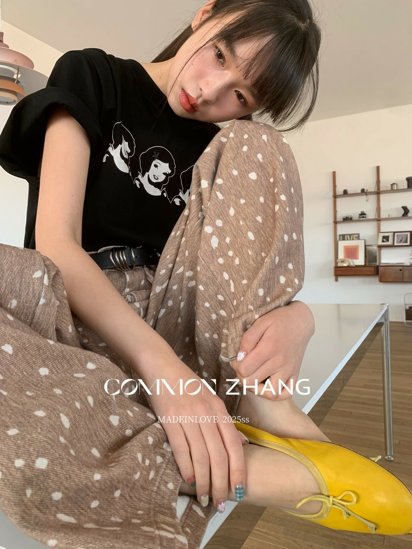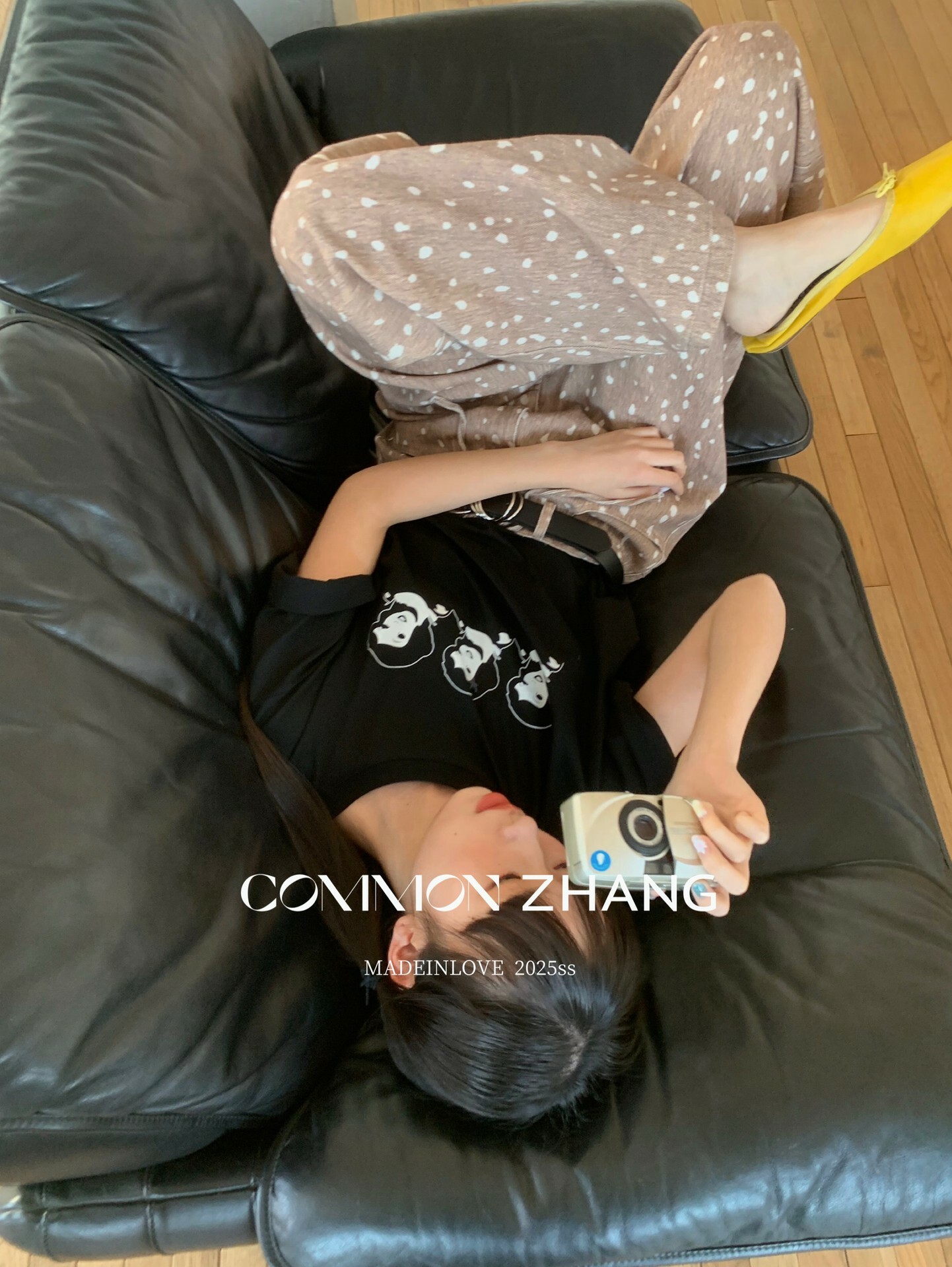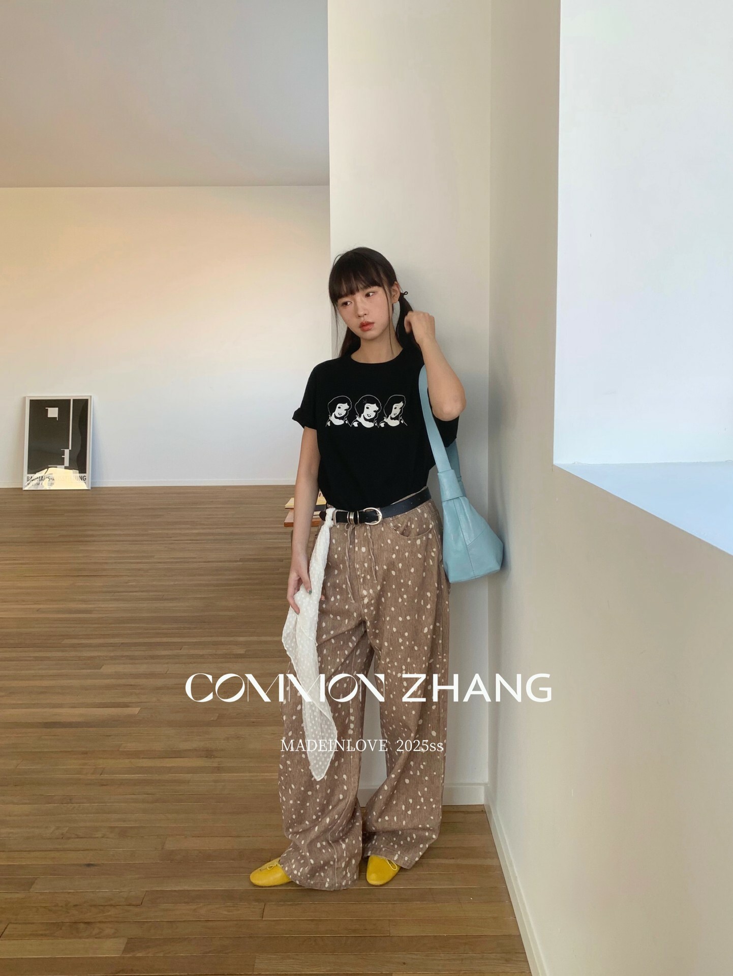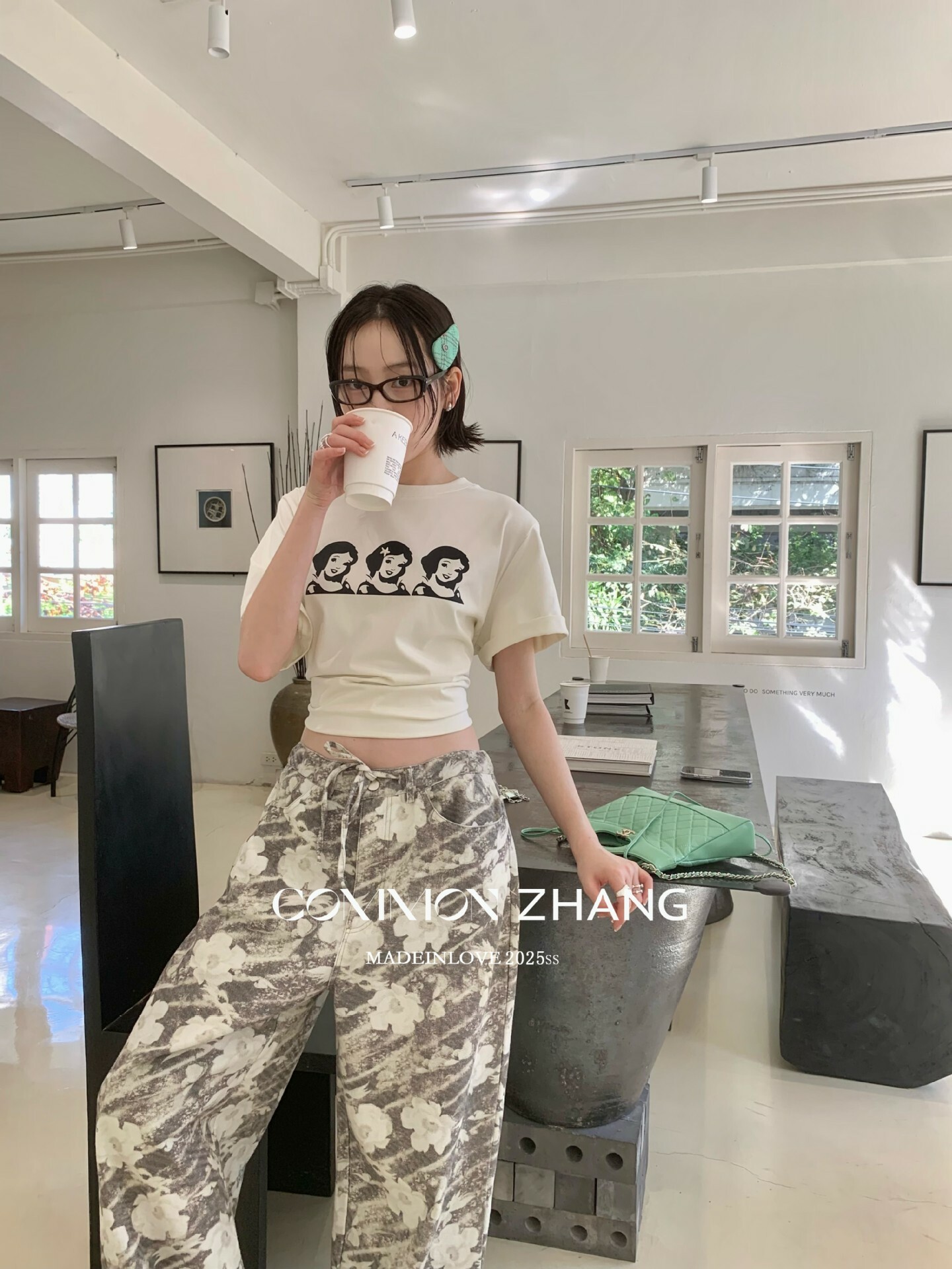 *o-ha-you*【FCZ100386】春季休閒慵懶圓領正肩卡通人物印花寬鬆百搭短袖T恤-2色