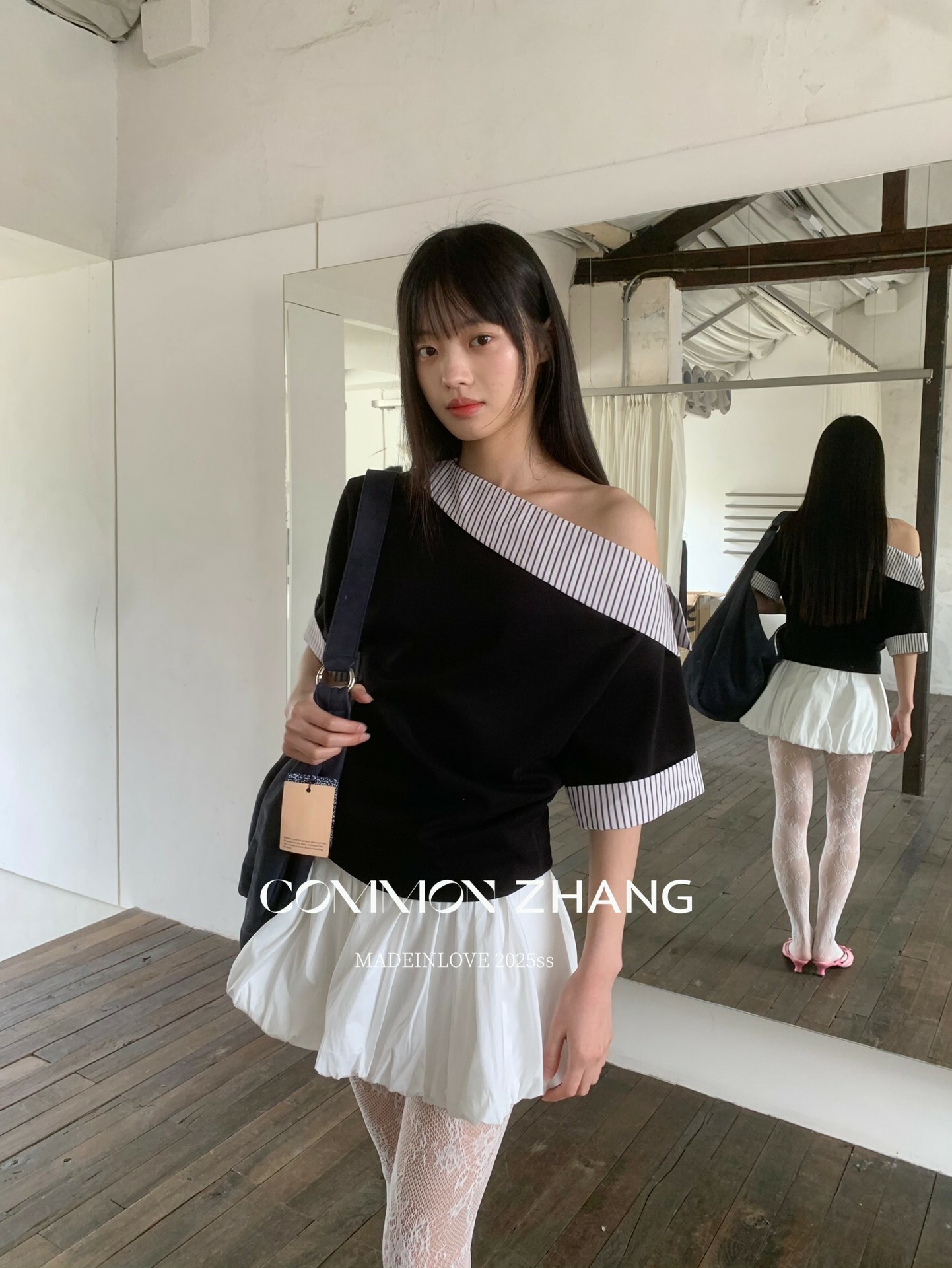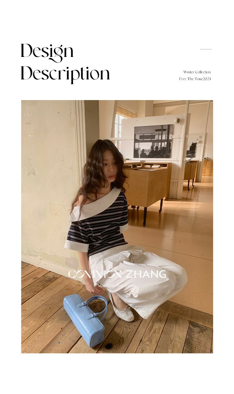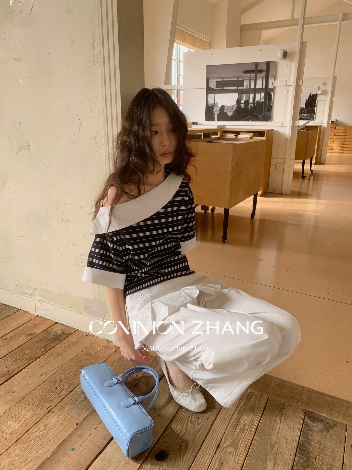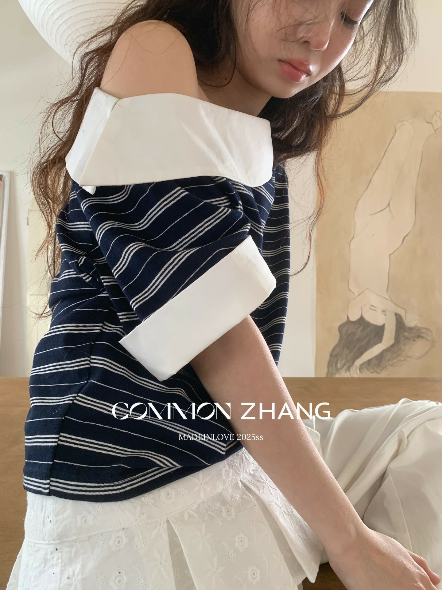 *o-ha-you*【FCZ100486】夏季新款斜領條紋半袖短袖T恤-3色-如有需要請先諮詢