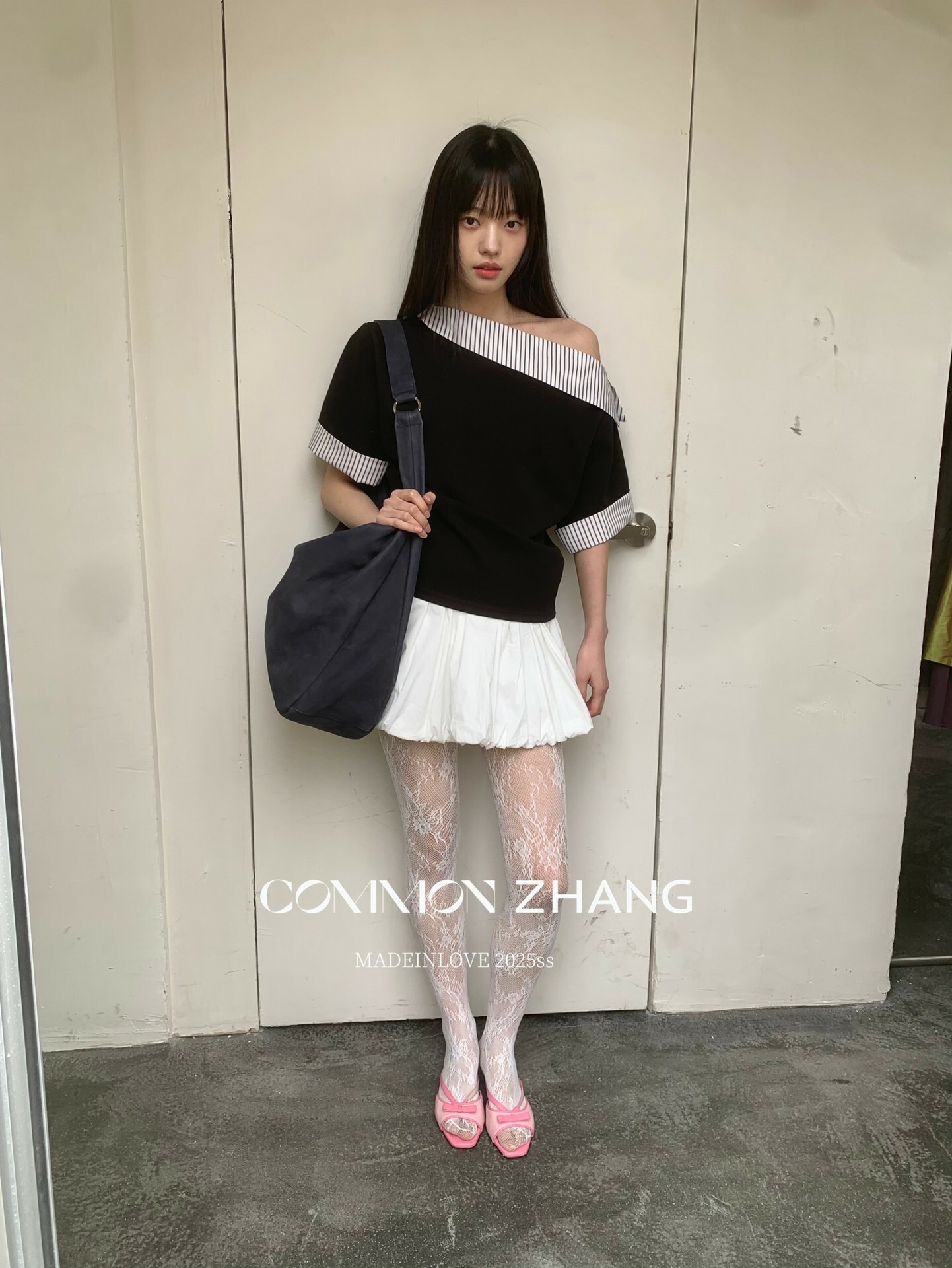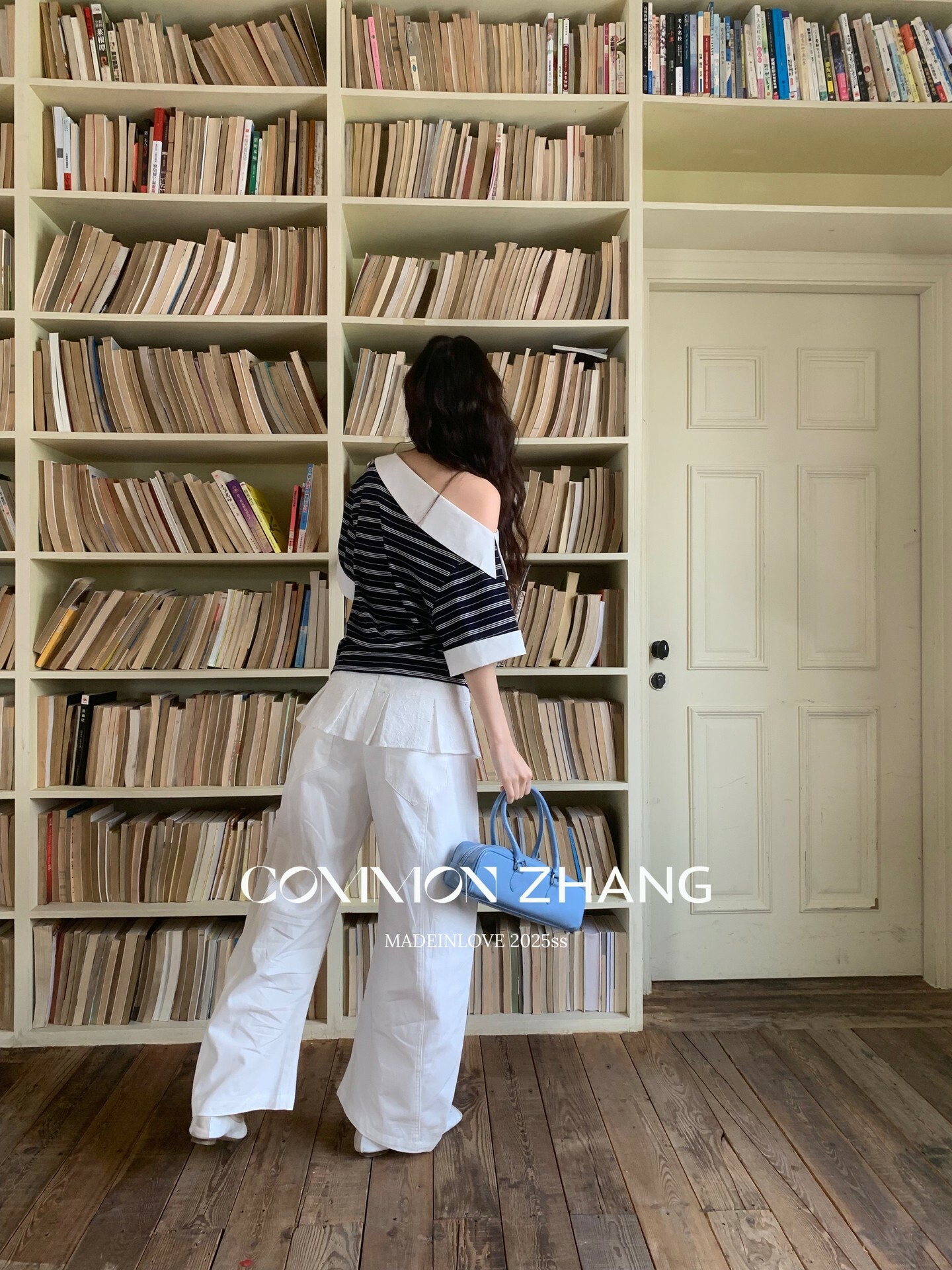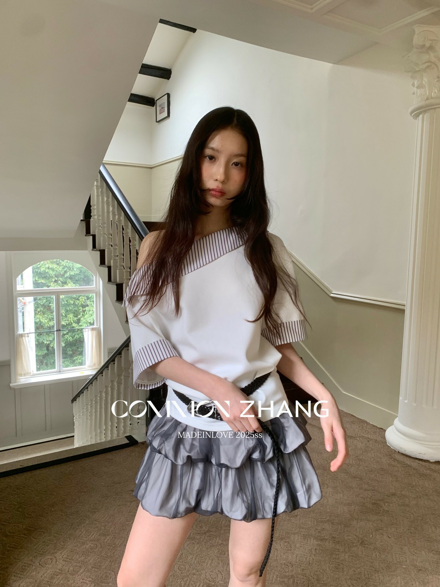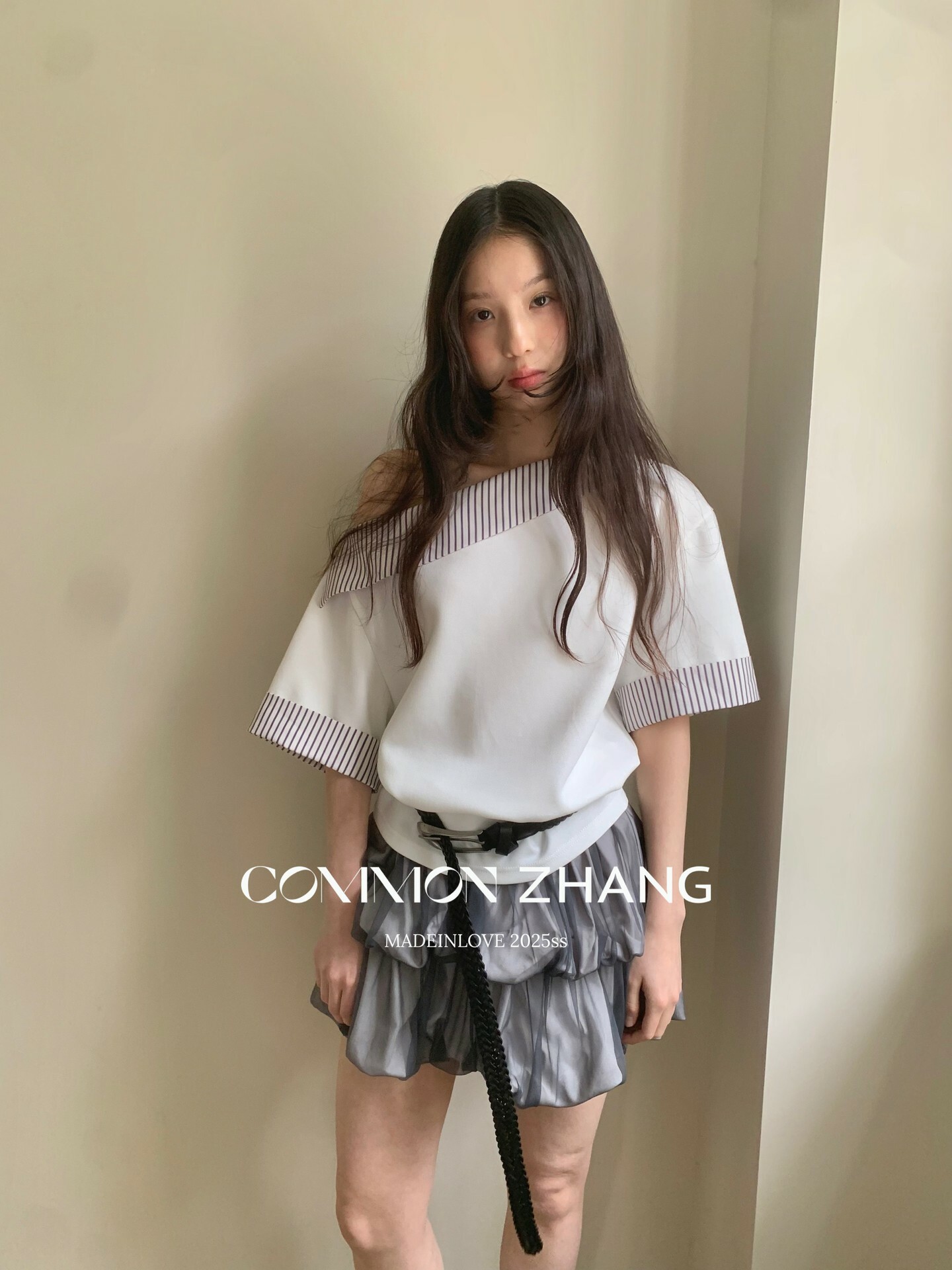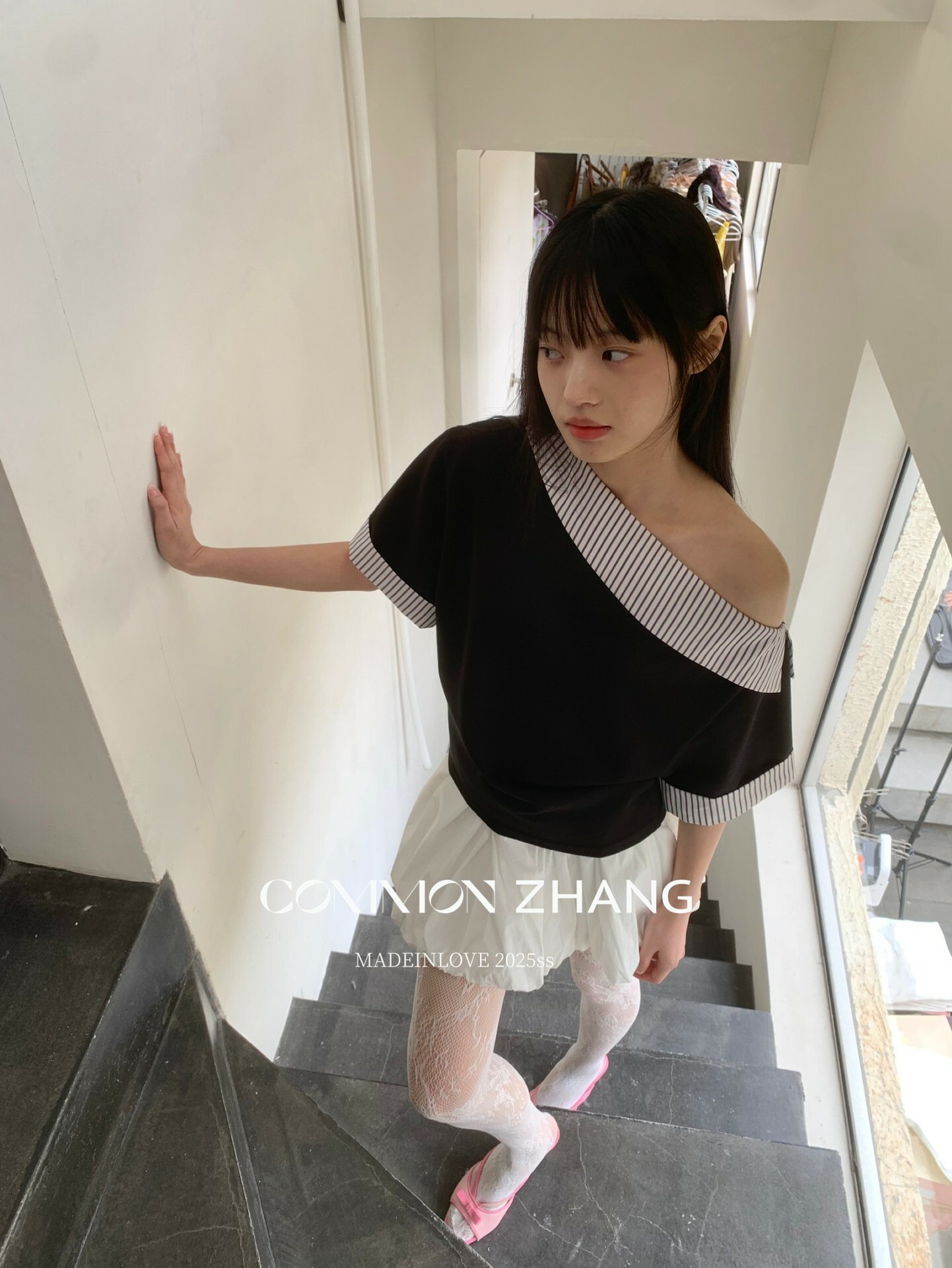 *o-ha-you*【FCZ100486】夏季新款斜領條紋半袖短袖T恤-3色-如有需要請先諮詢