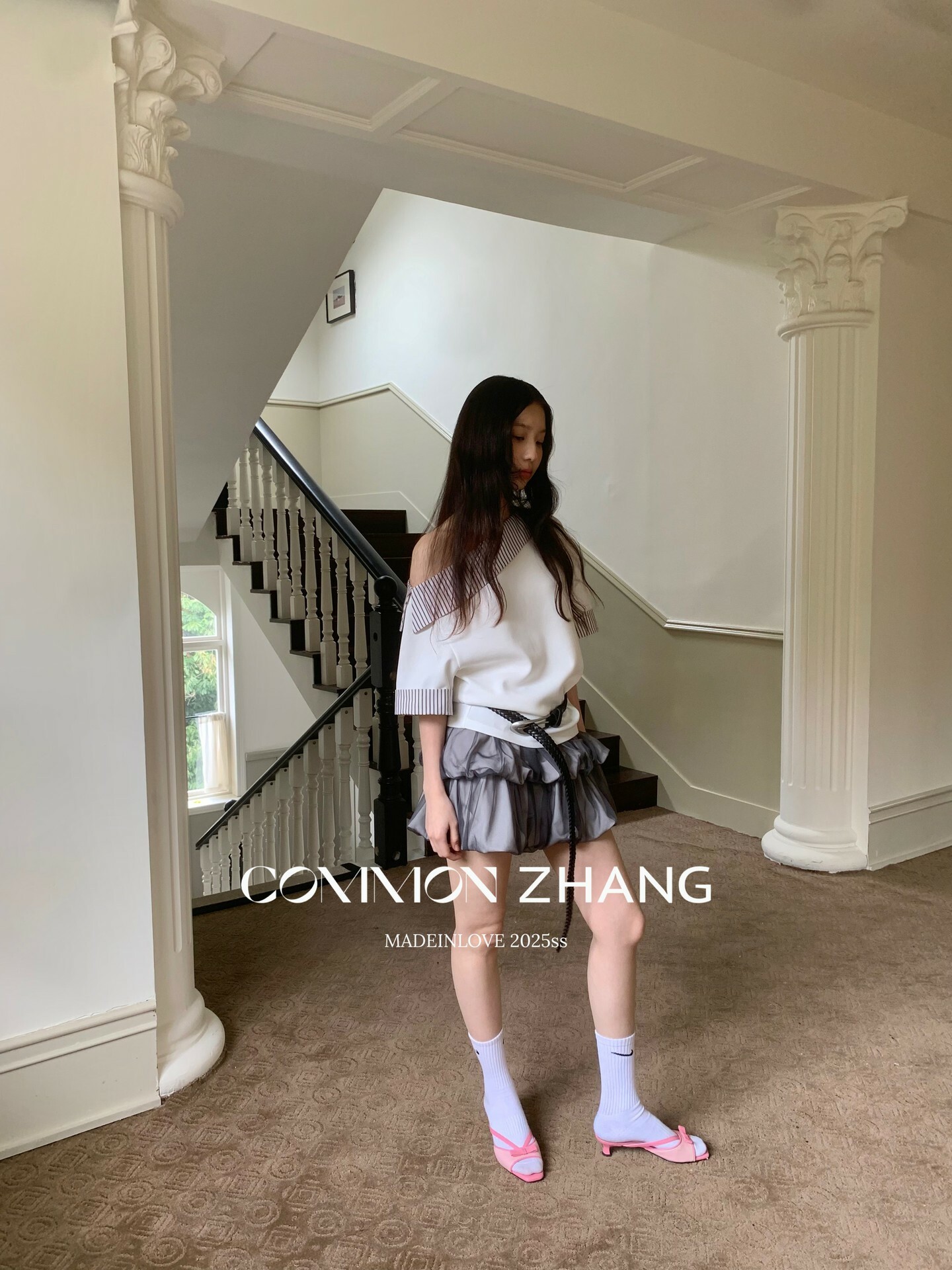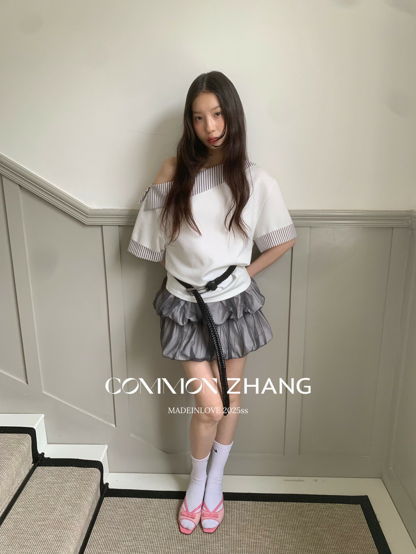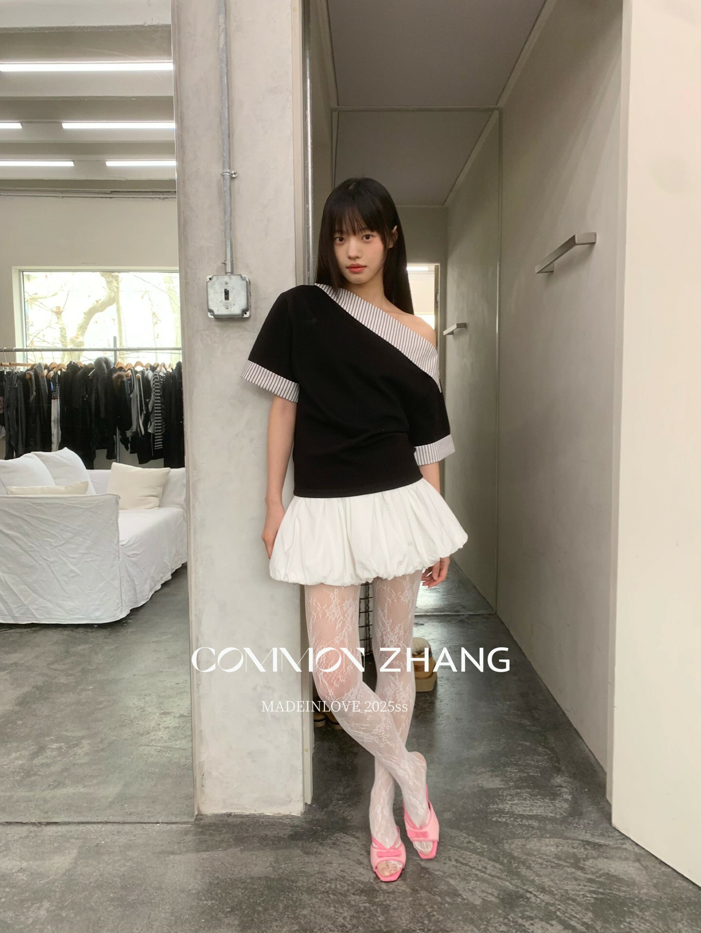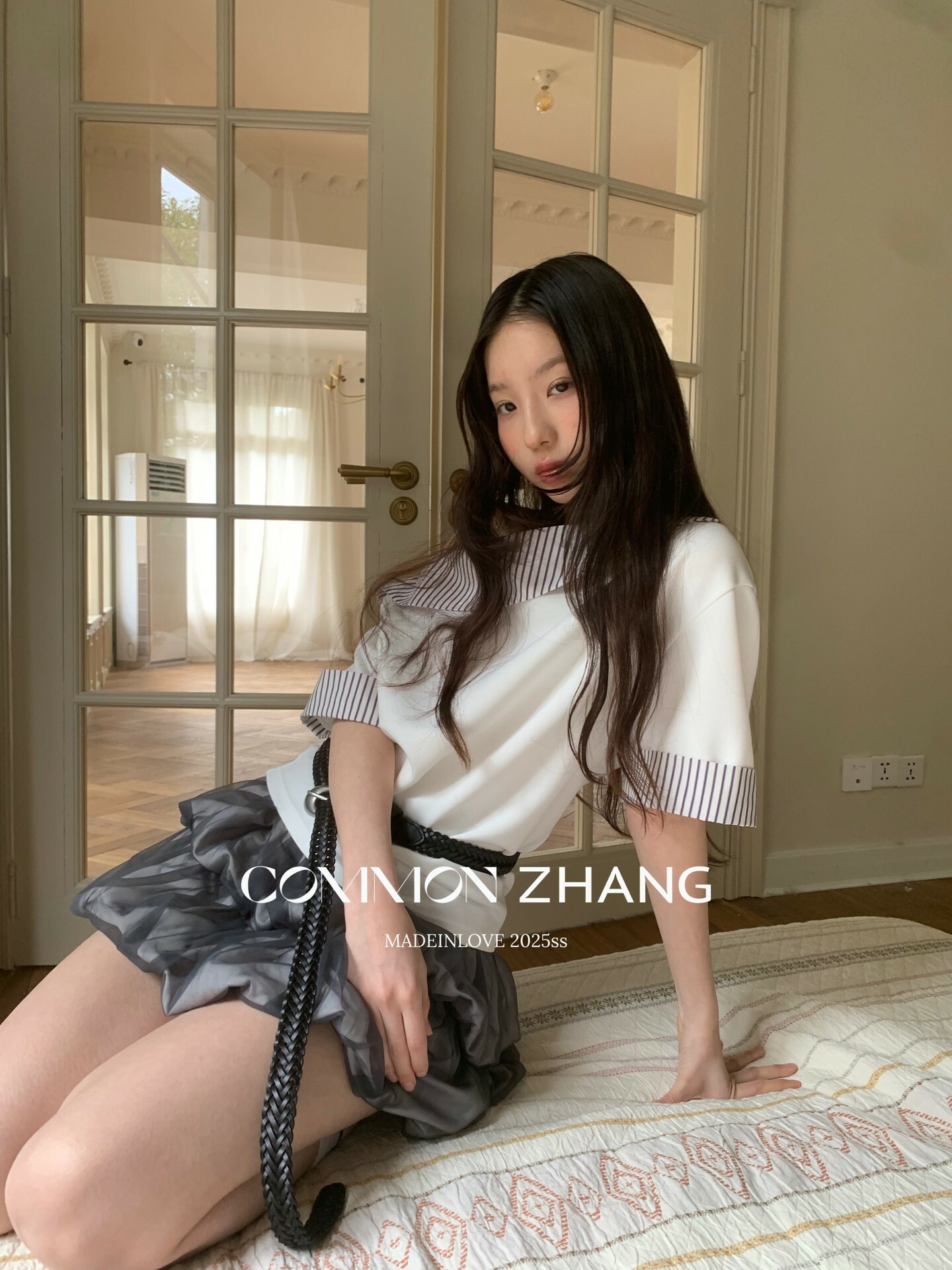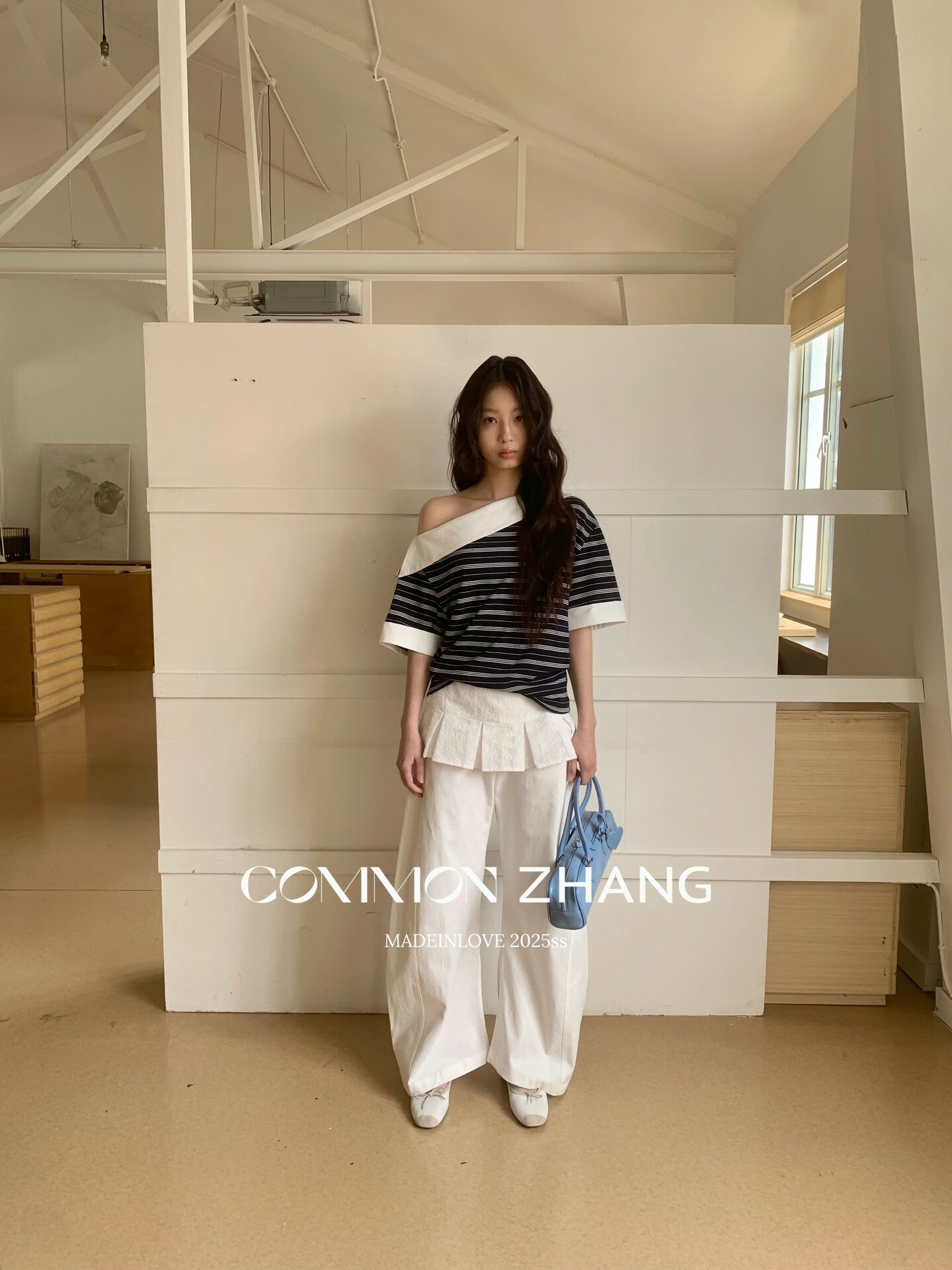 *o-ha-you*【FCZ100486】夏季新款斜領條紋半袖短袖T恤-3色-如有需要請先諮詢