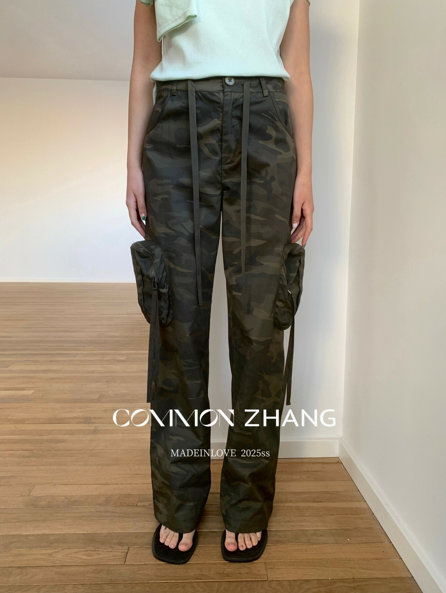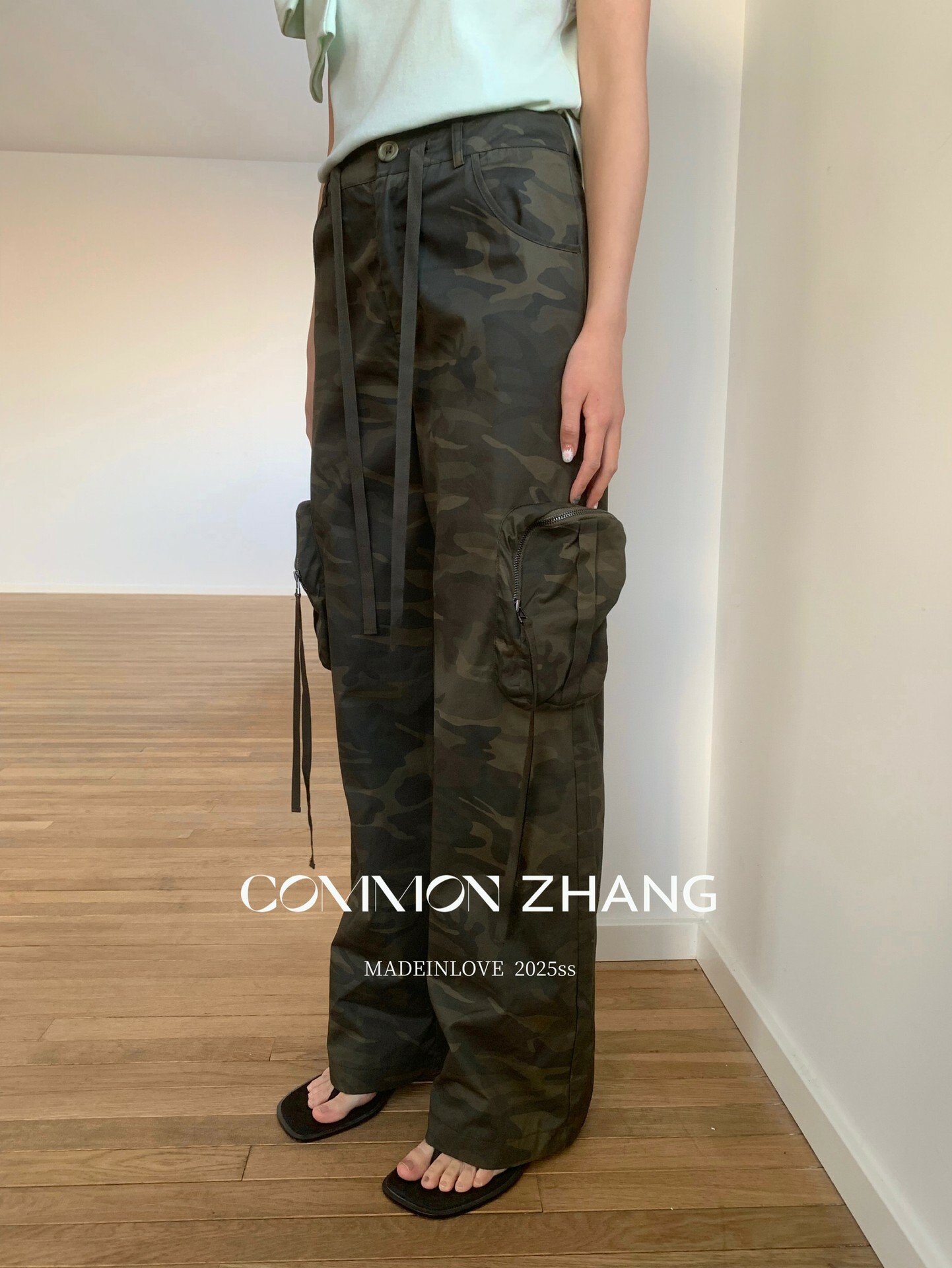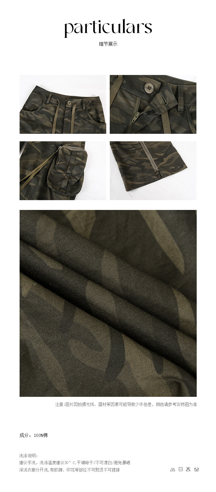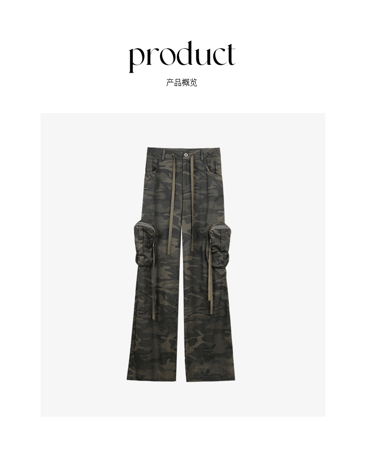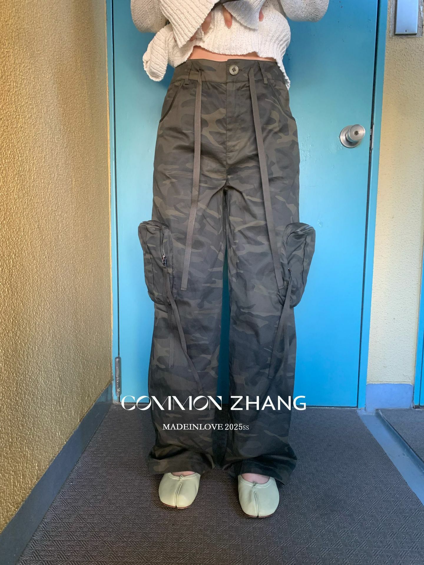 *o-ha-you*【FCZ101172】春季甜酷個性迷彩工裝口袋辣妹高腰闊腿拖地休閒褲