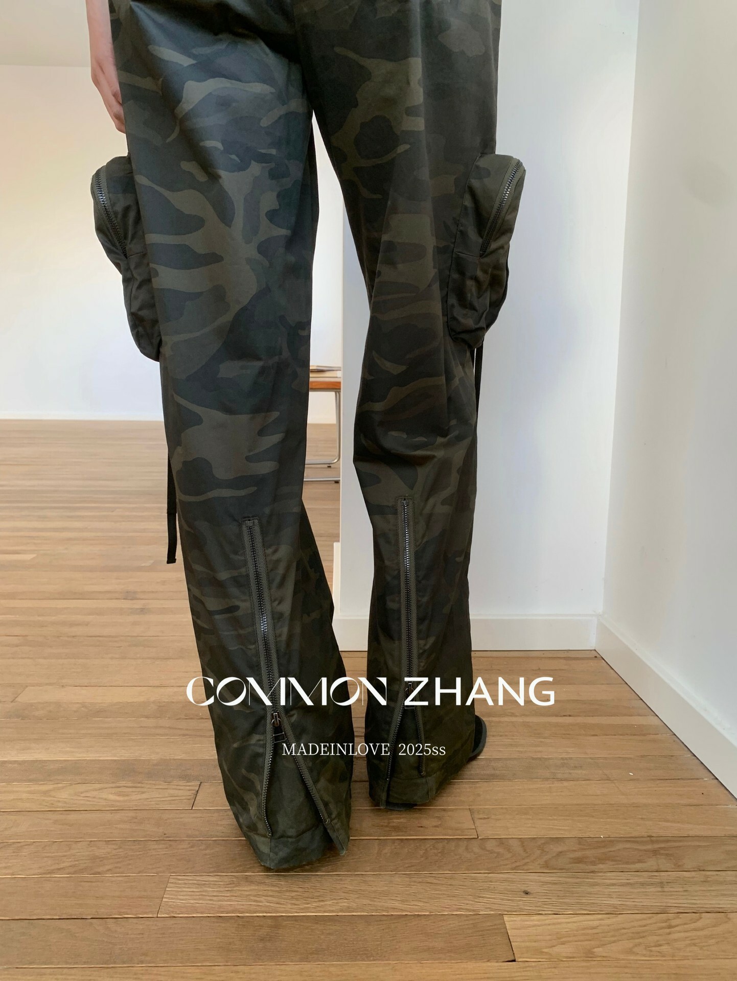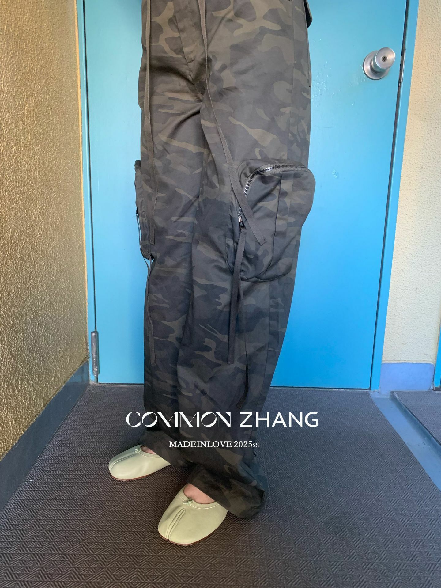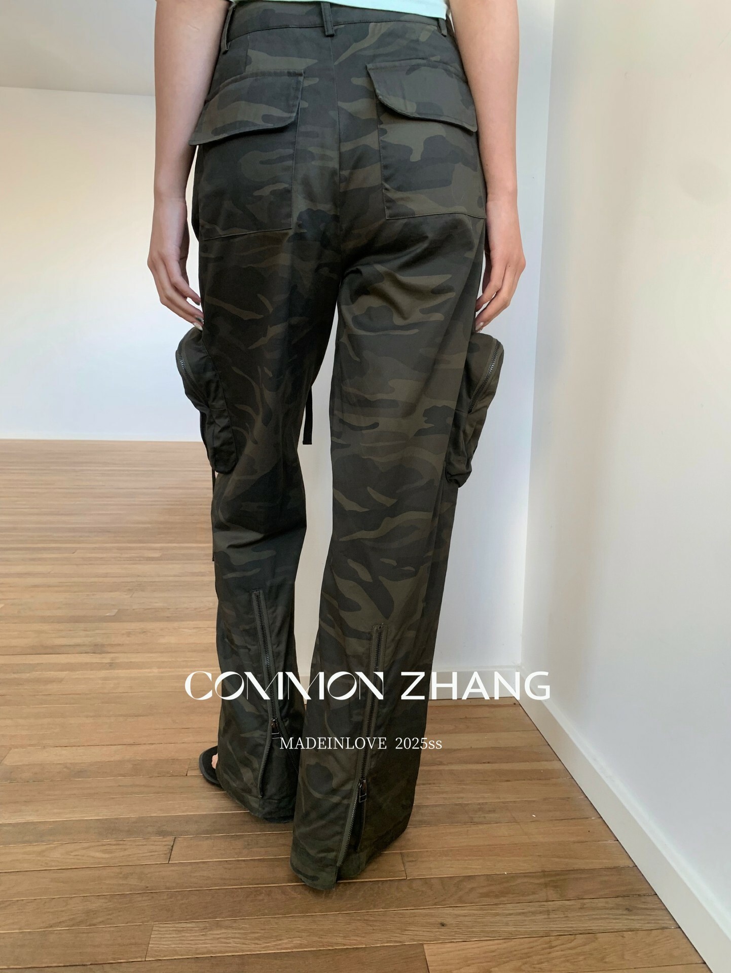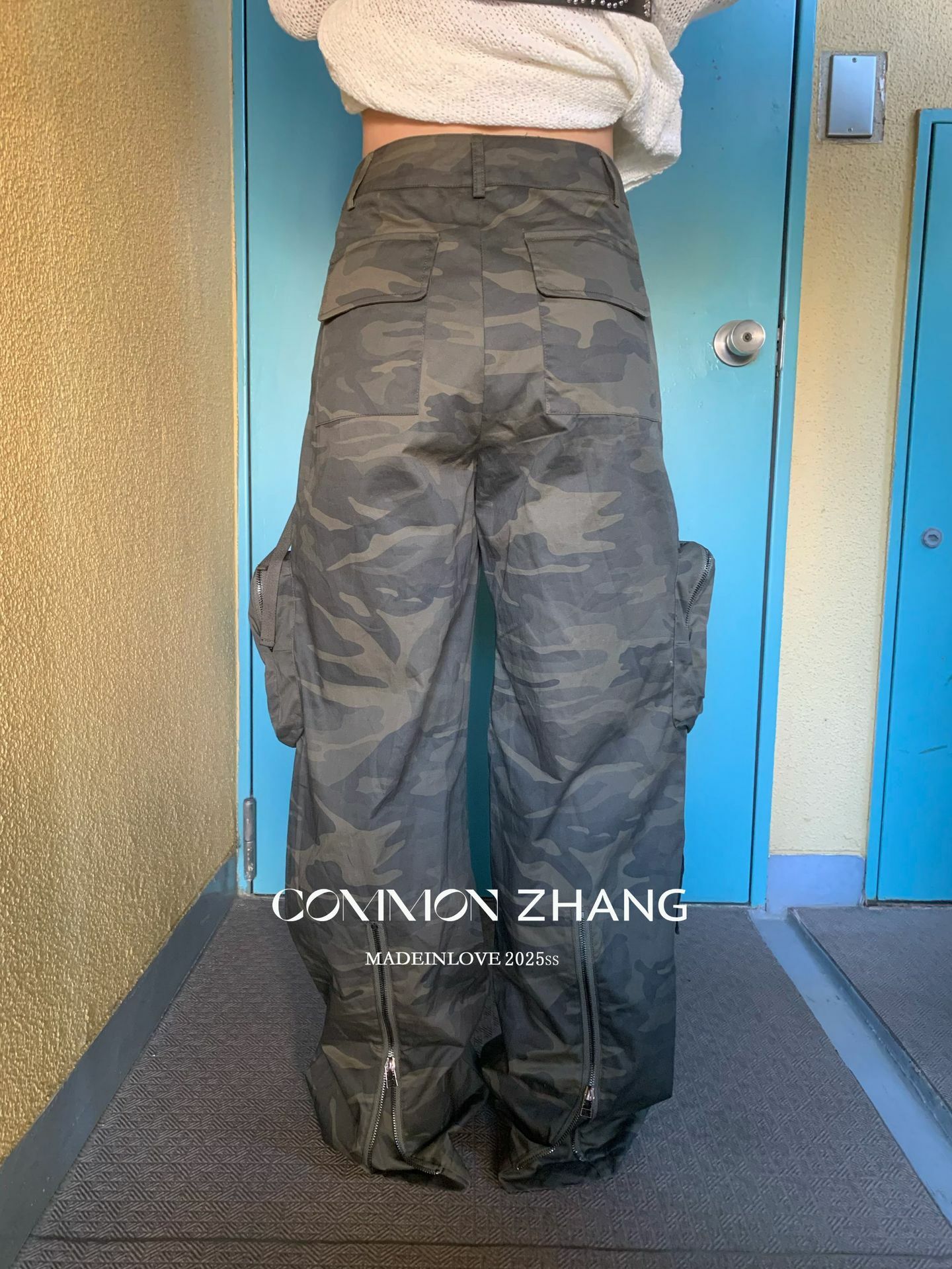 *o-ha-you*【FCZ101172】春季甜酷個性迷彩工裝口袋辣妹高腰闊腿拖地休閒褲
