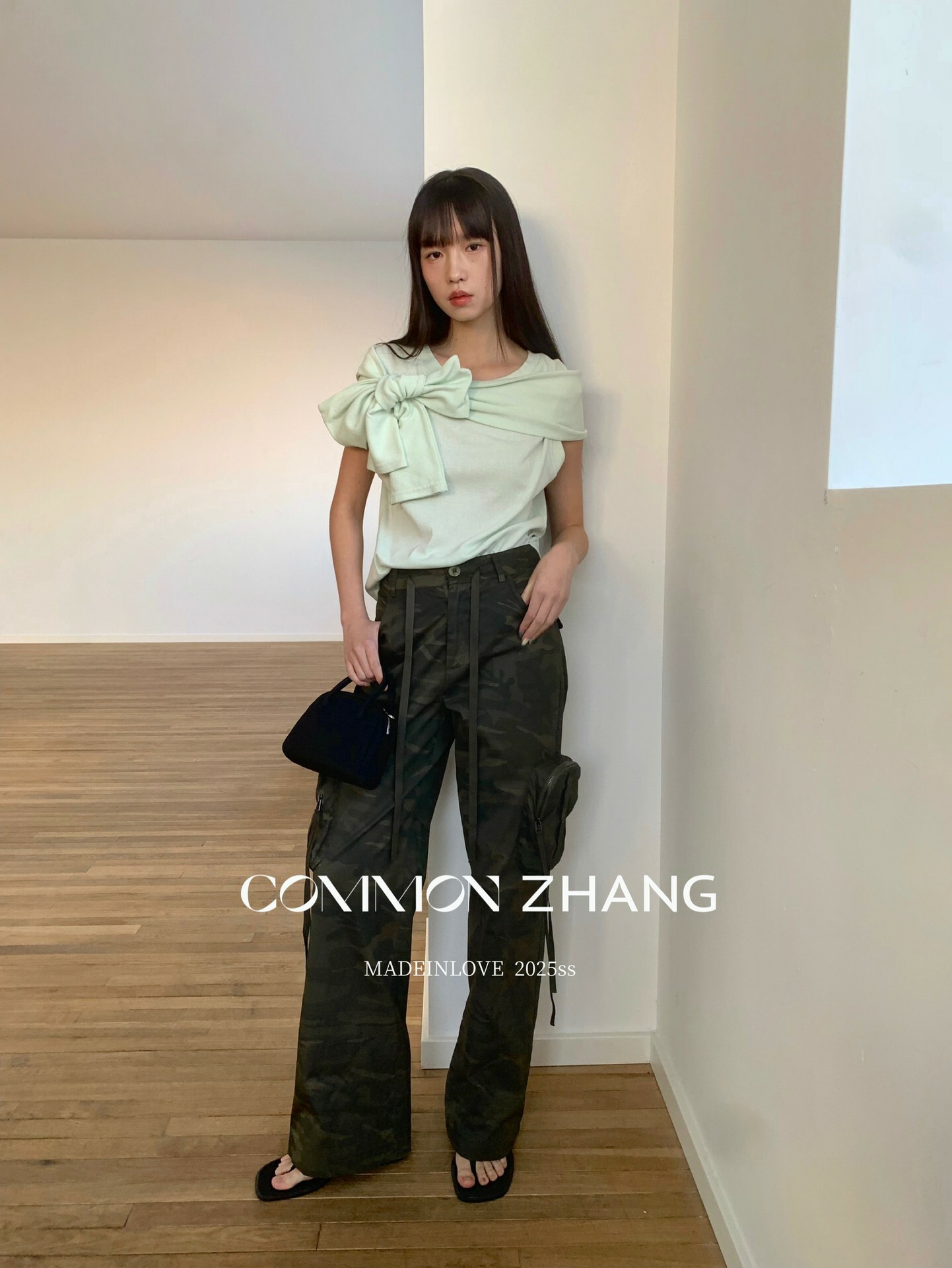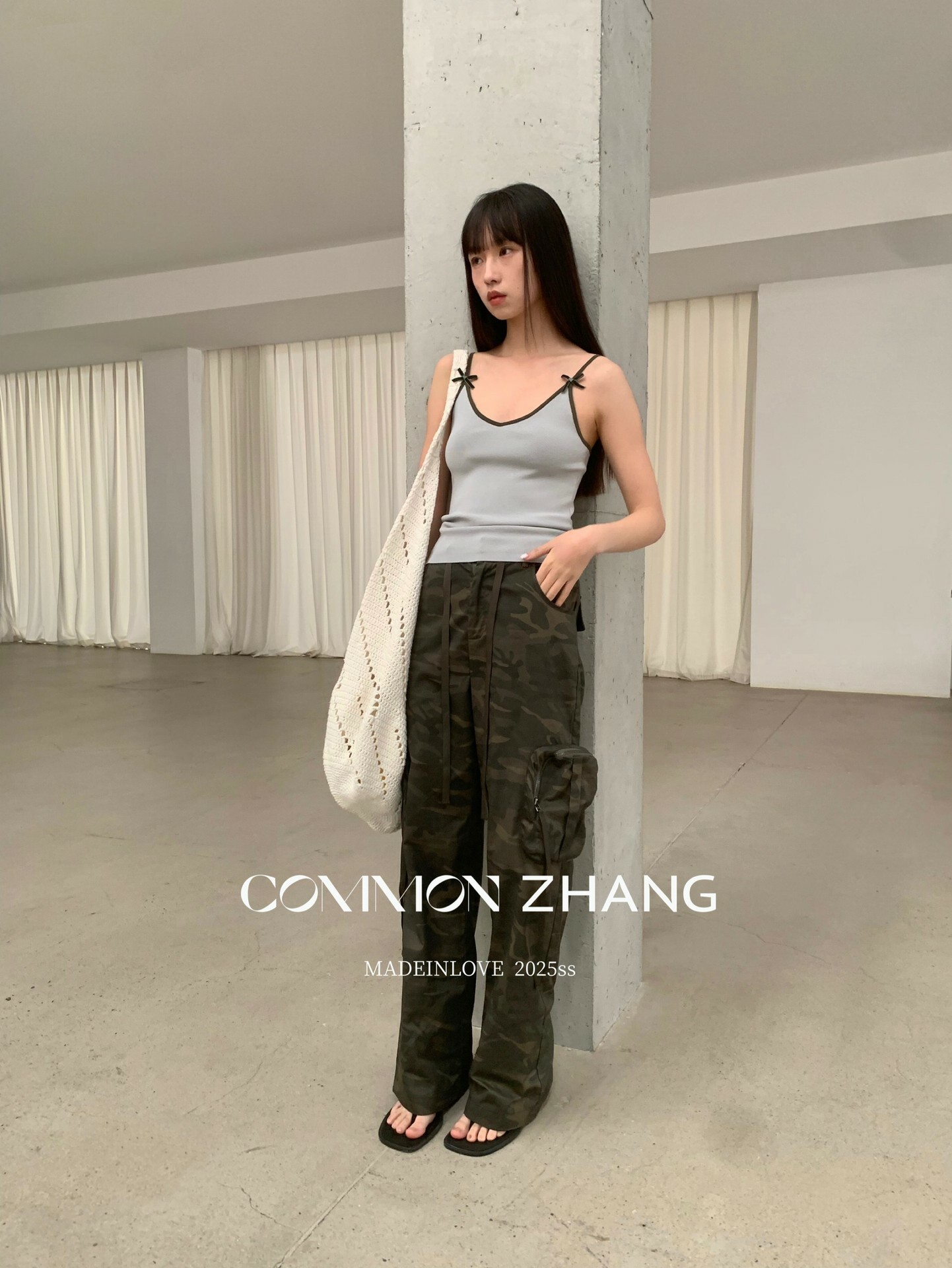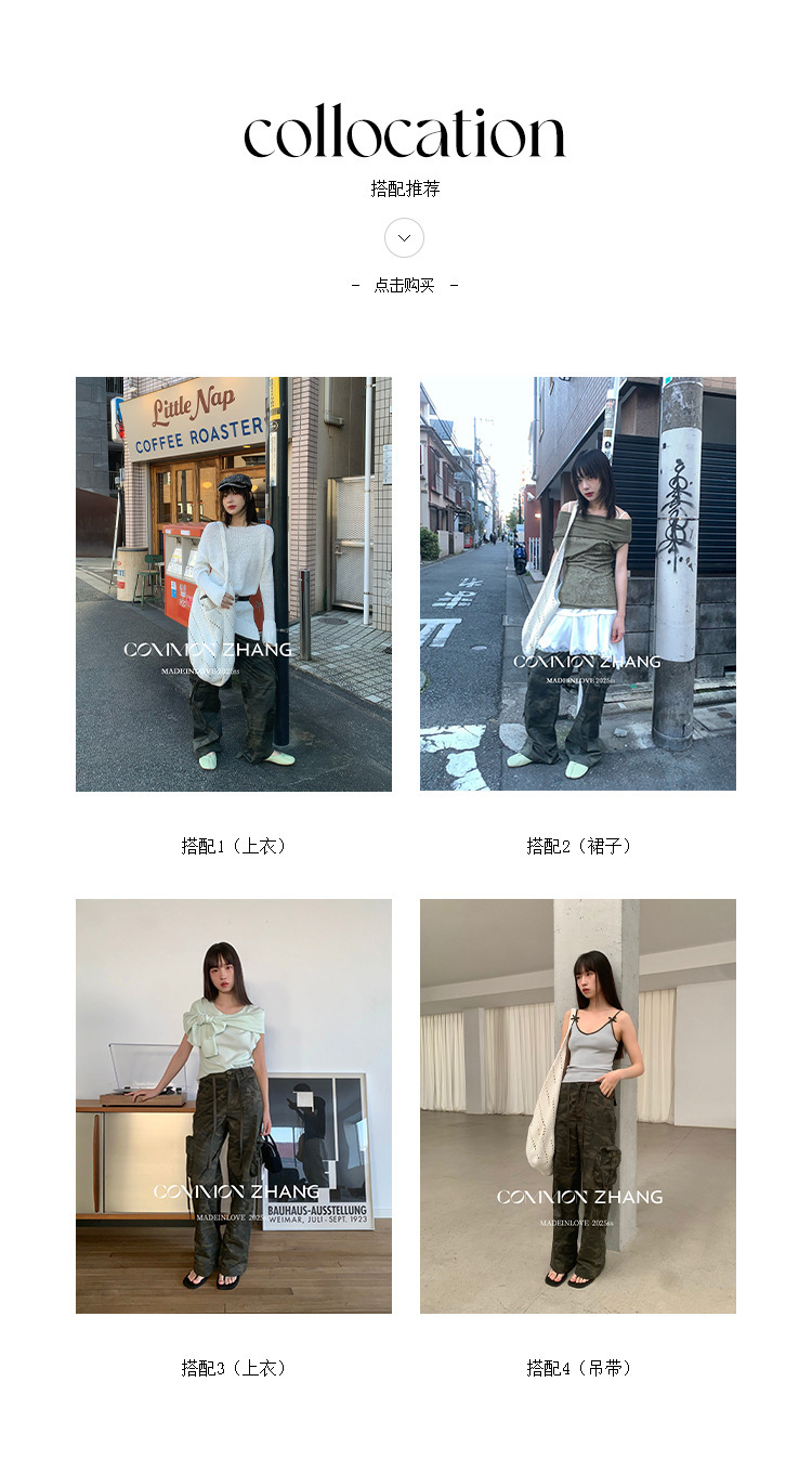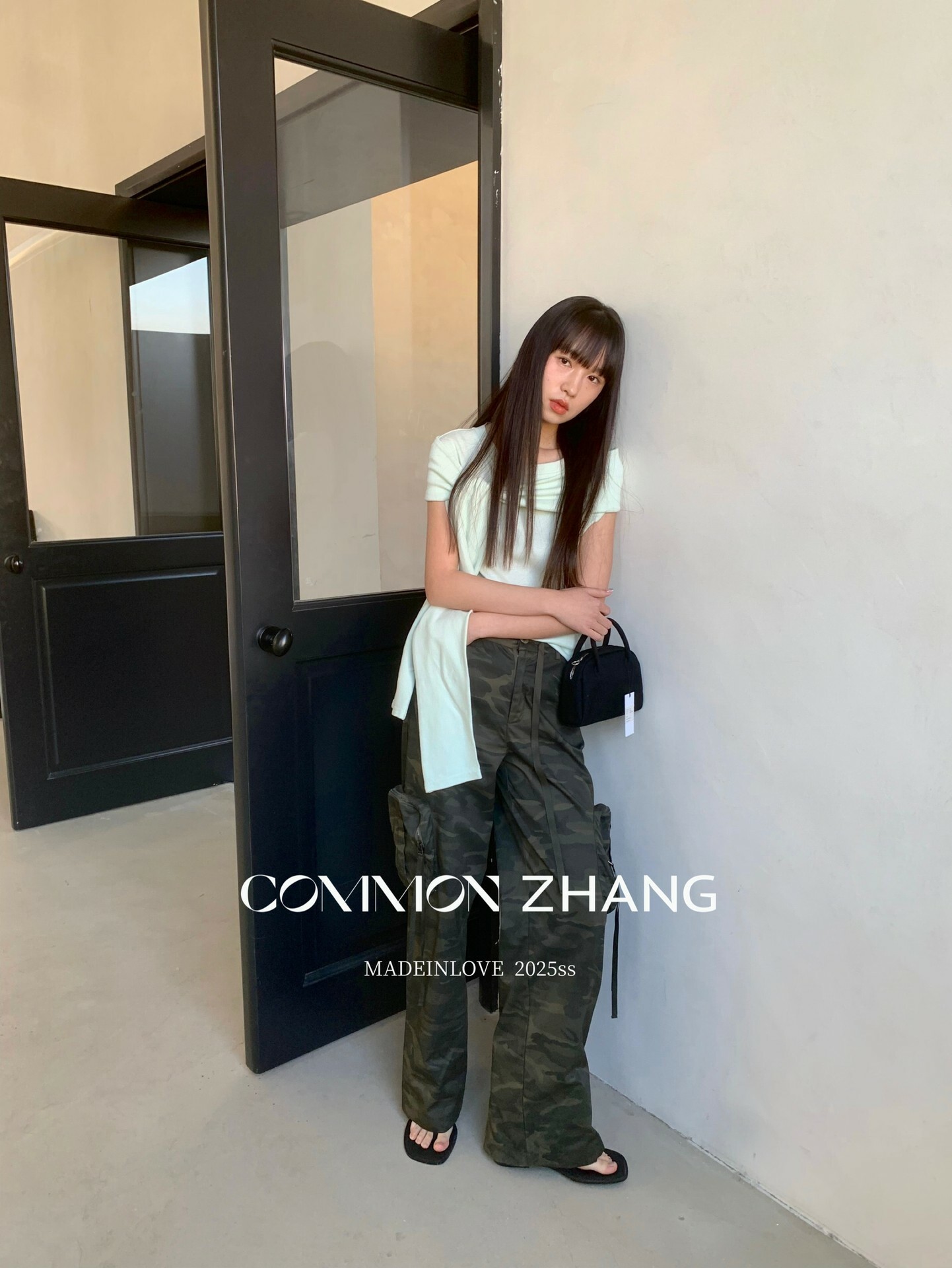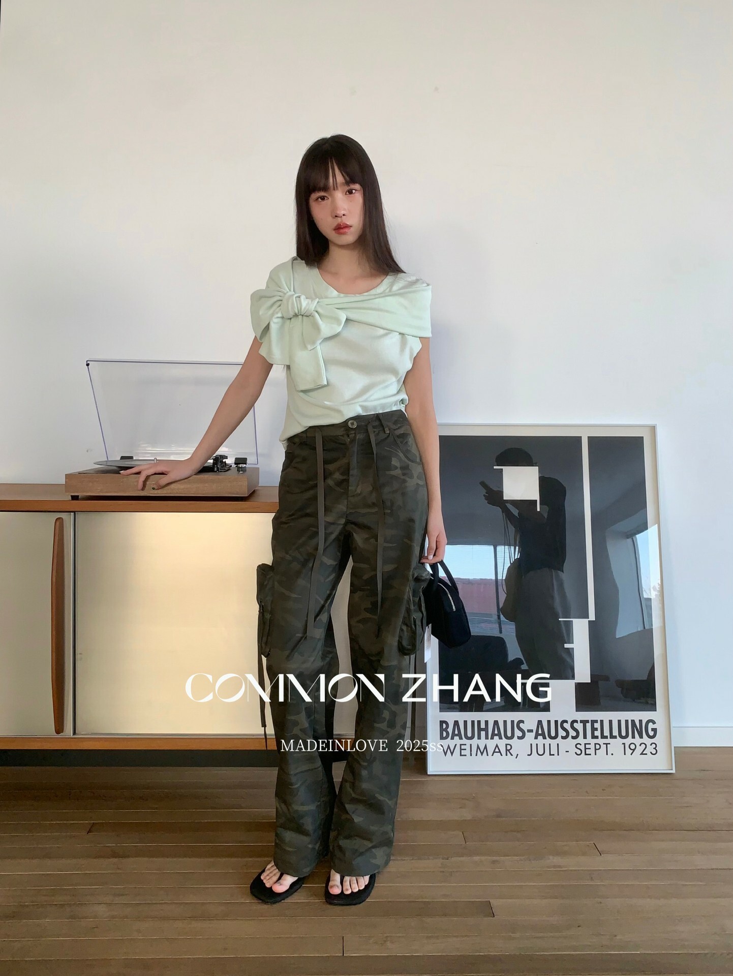 *o-ha-you*【FCZ101172】春季甜酷個性迷彩工裝口袋辣妹高腰闊腿拖地休閒褲