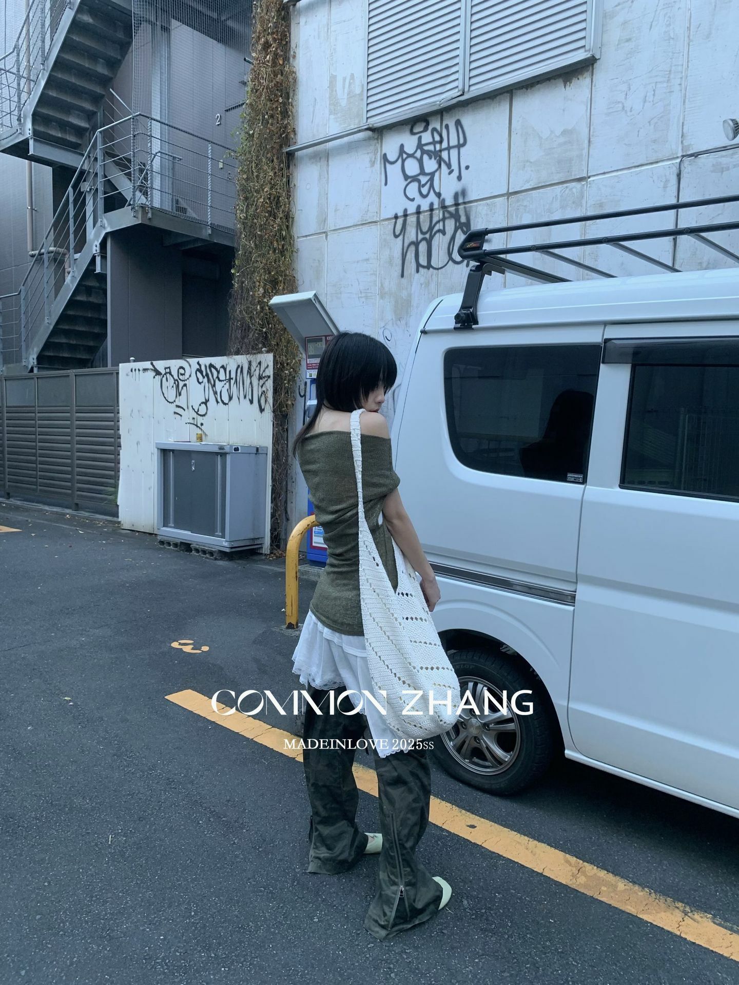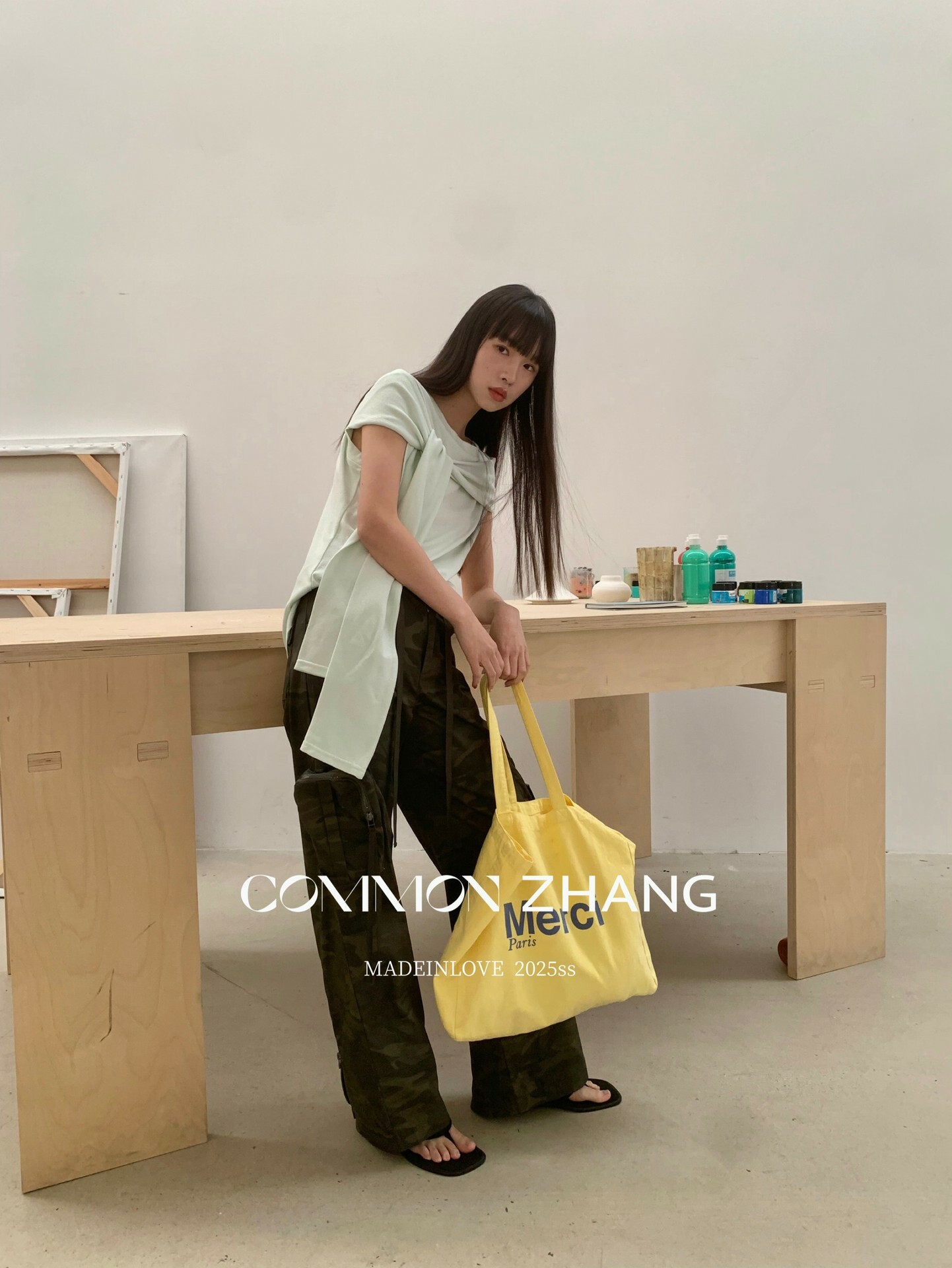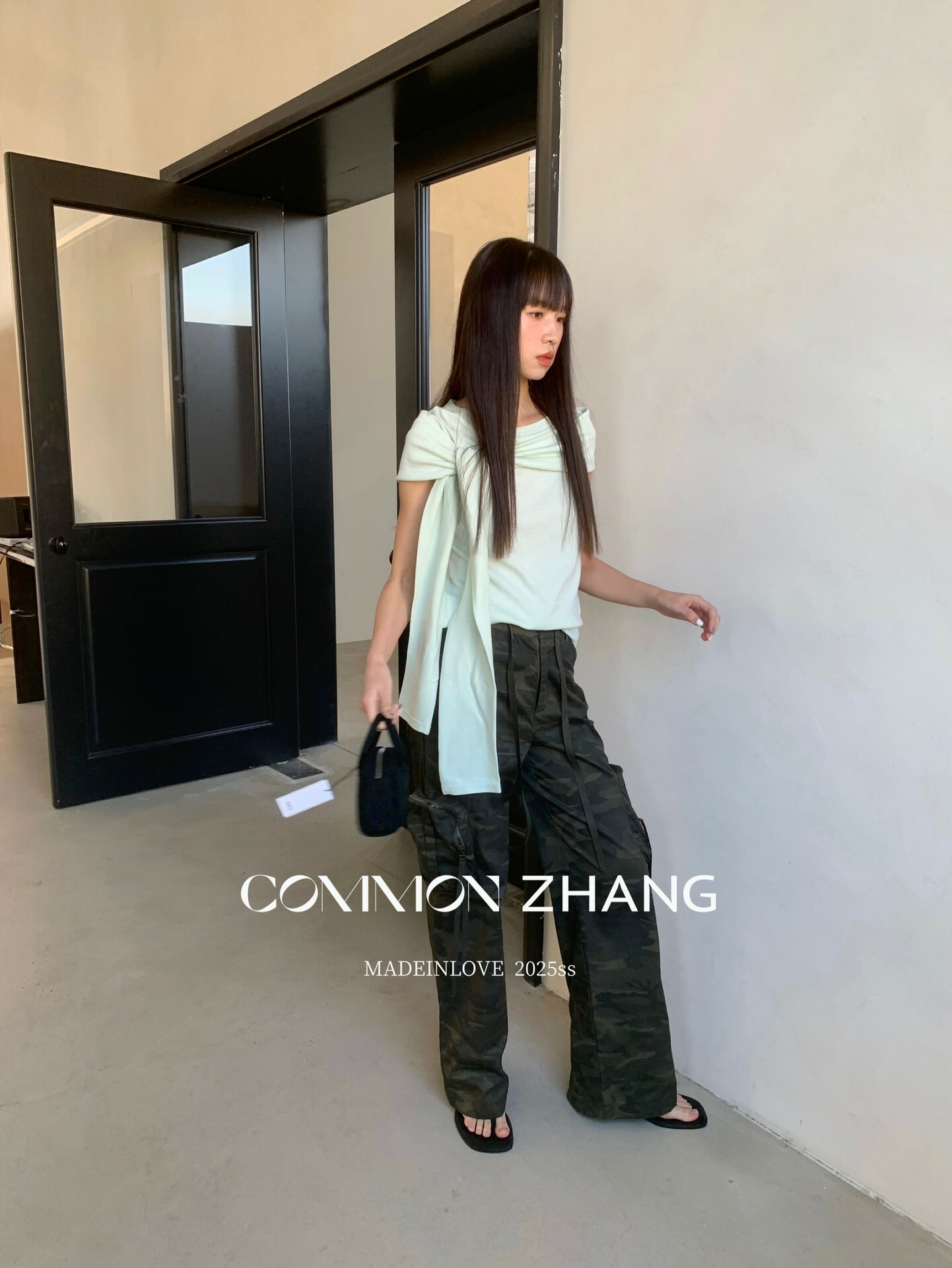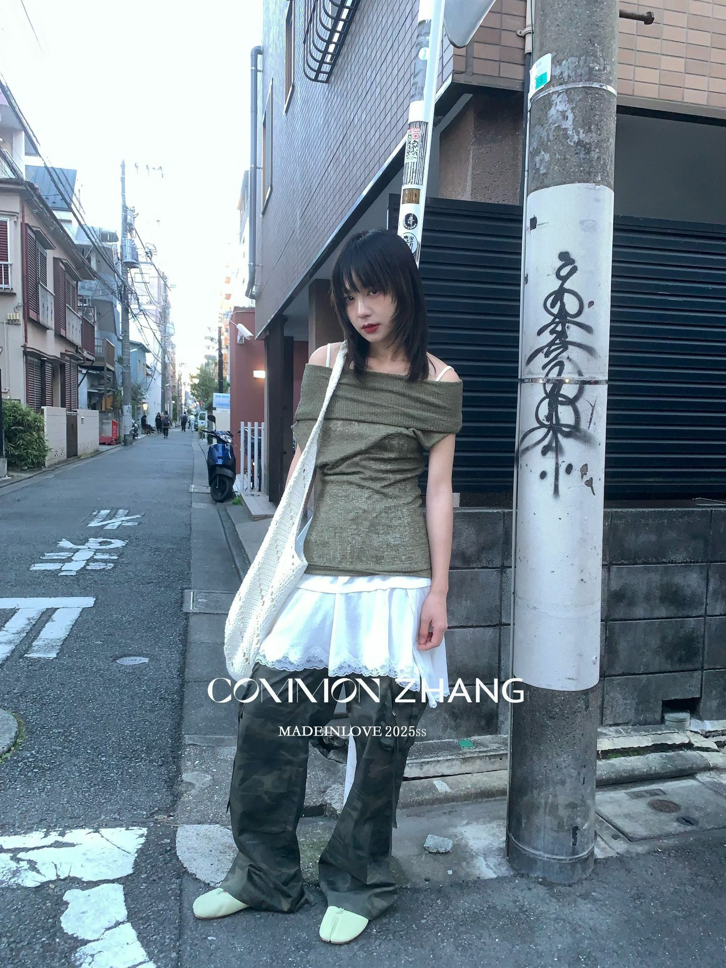 *o-ha-you*【FCZ101172】春季甜酷個性迷彩工裝口袋辣妹高腰闊腿拖地休閒褲