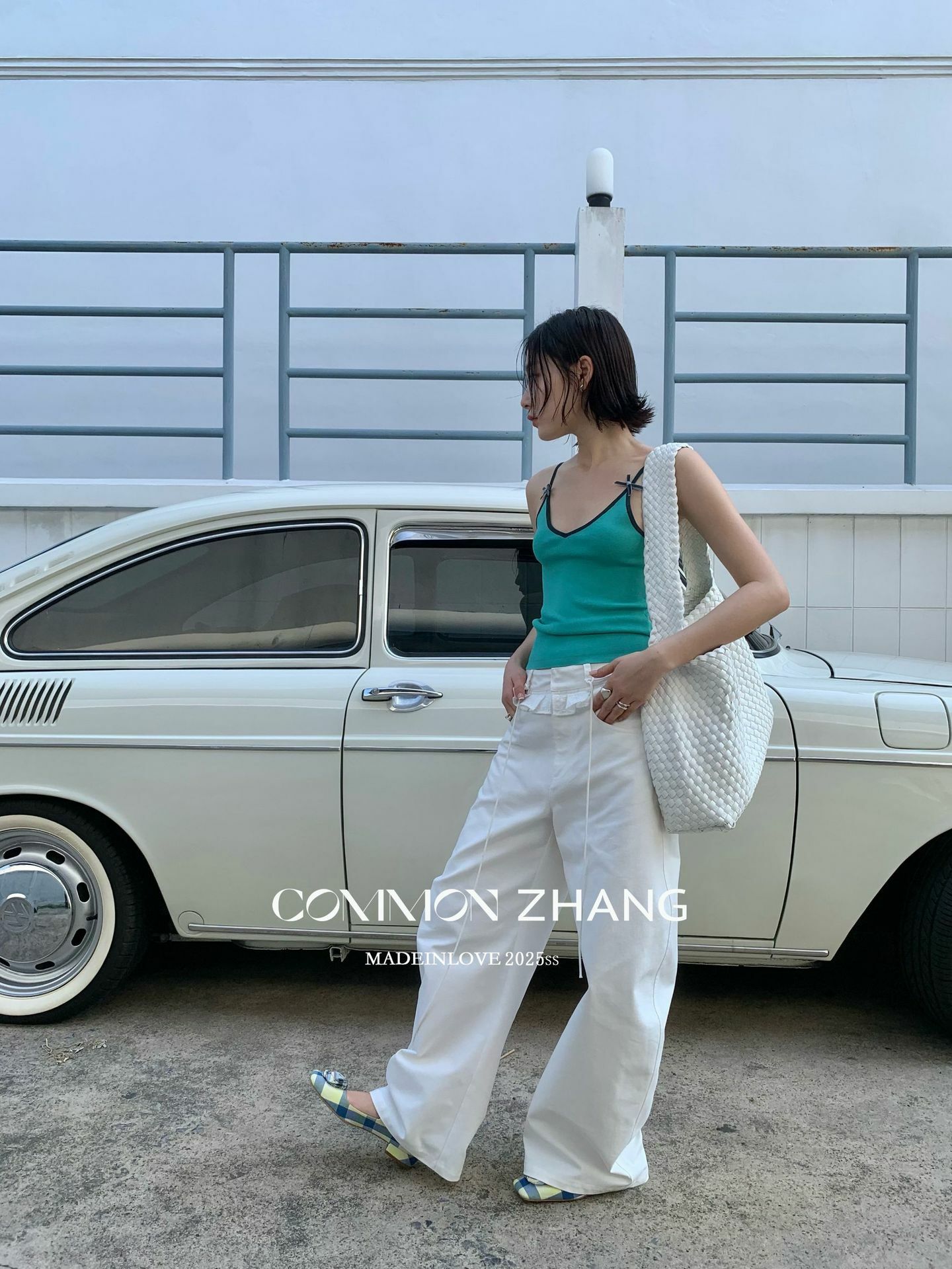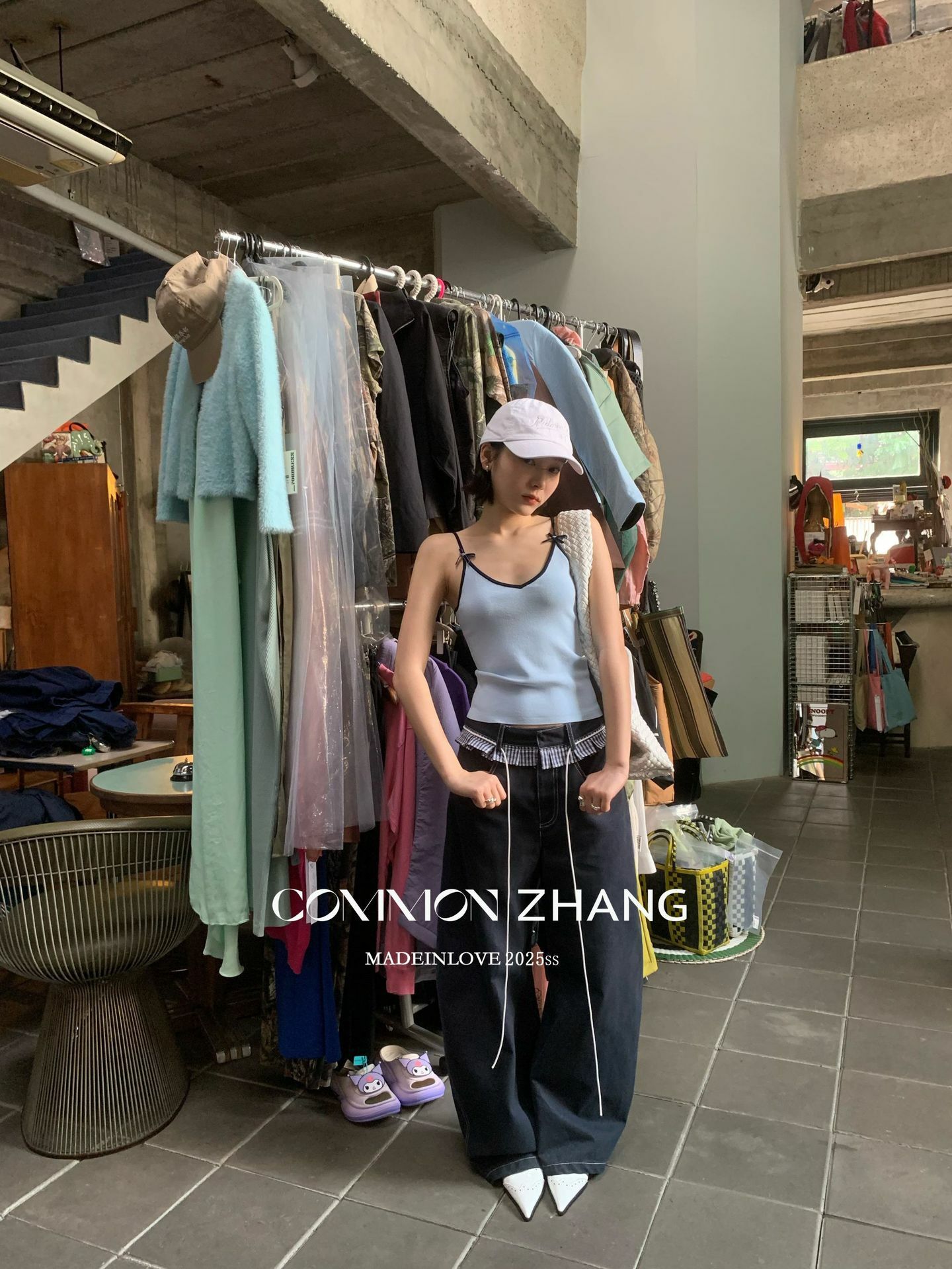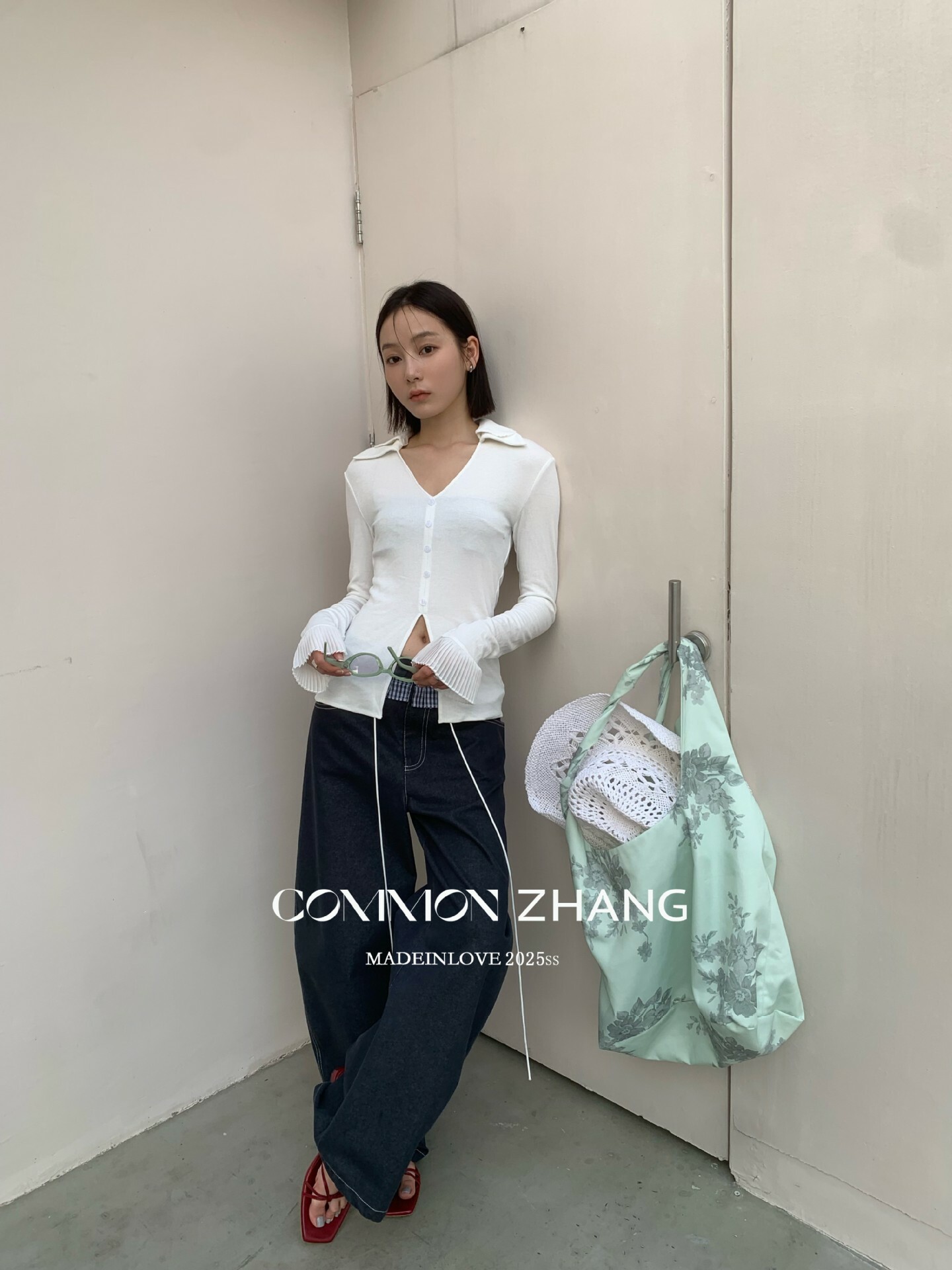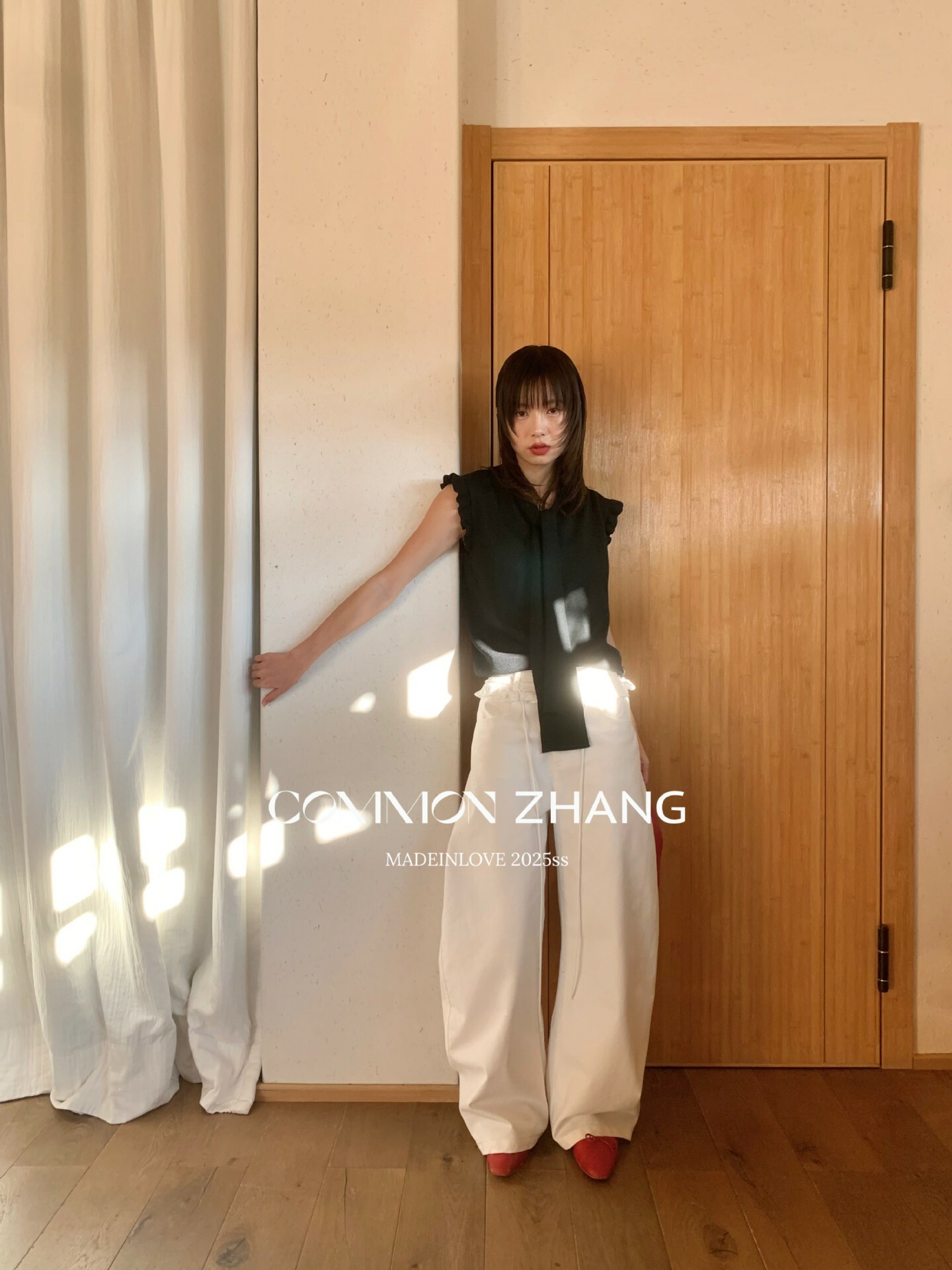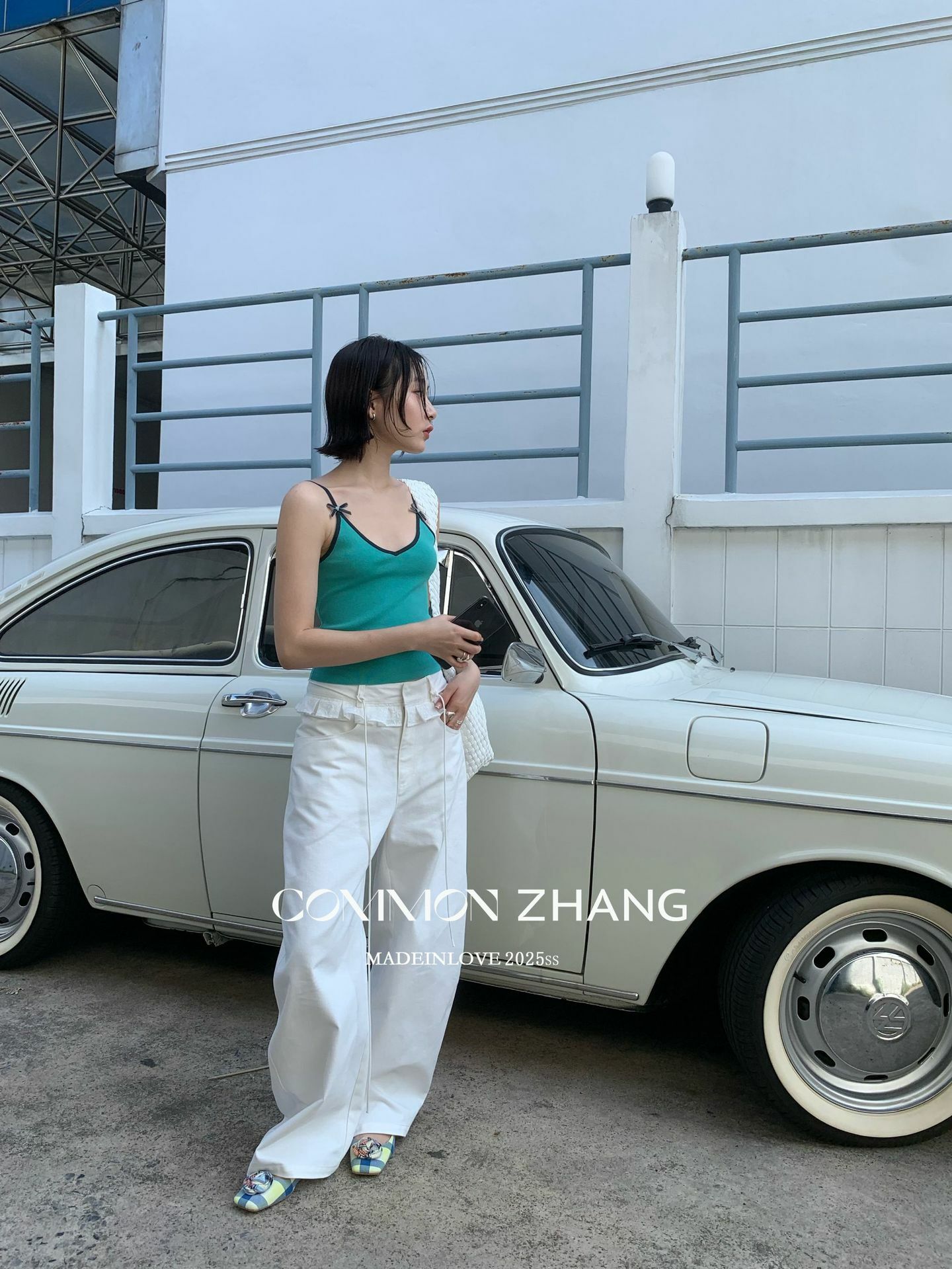 *o-ha-you*【FCZ101231】韓版都會通勤花邊拼接繫帶高腰闊腿垂感拖地牛仔褲-2色-如有需要請先諮詢