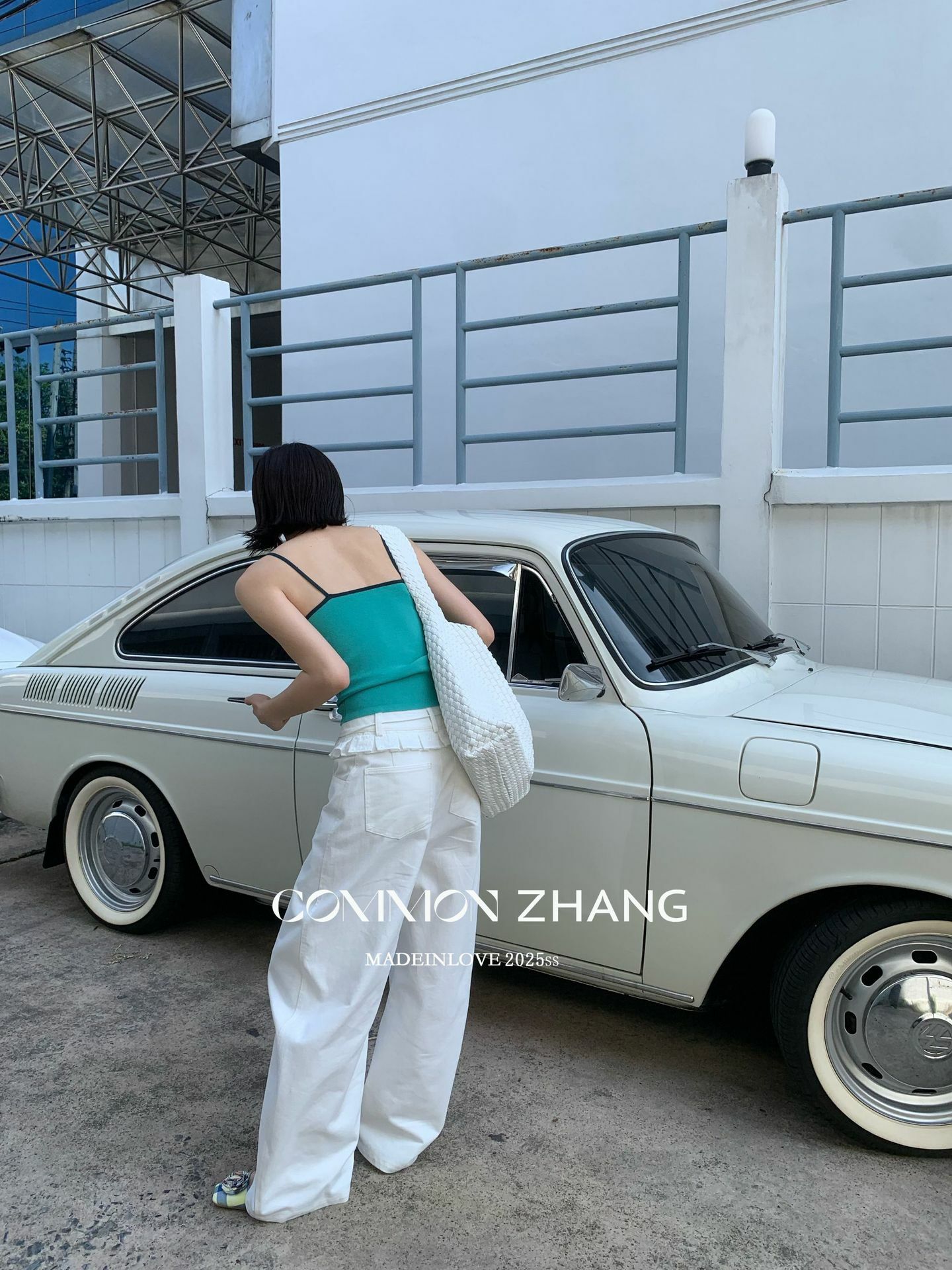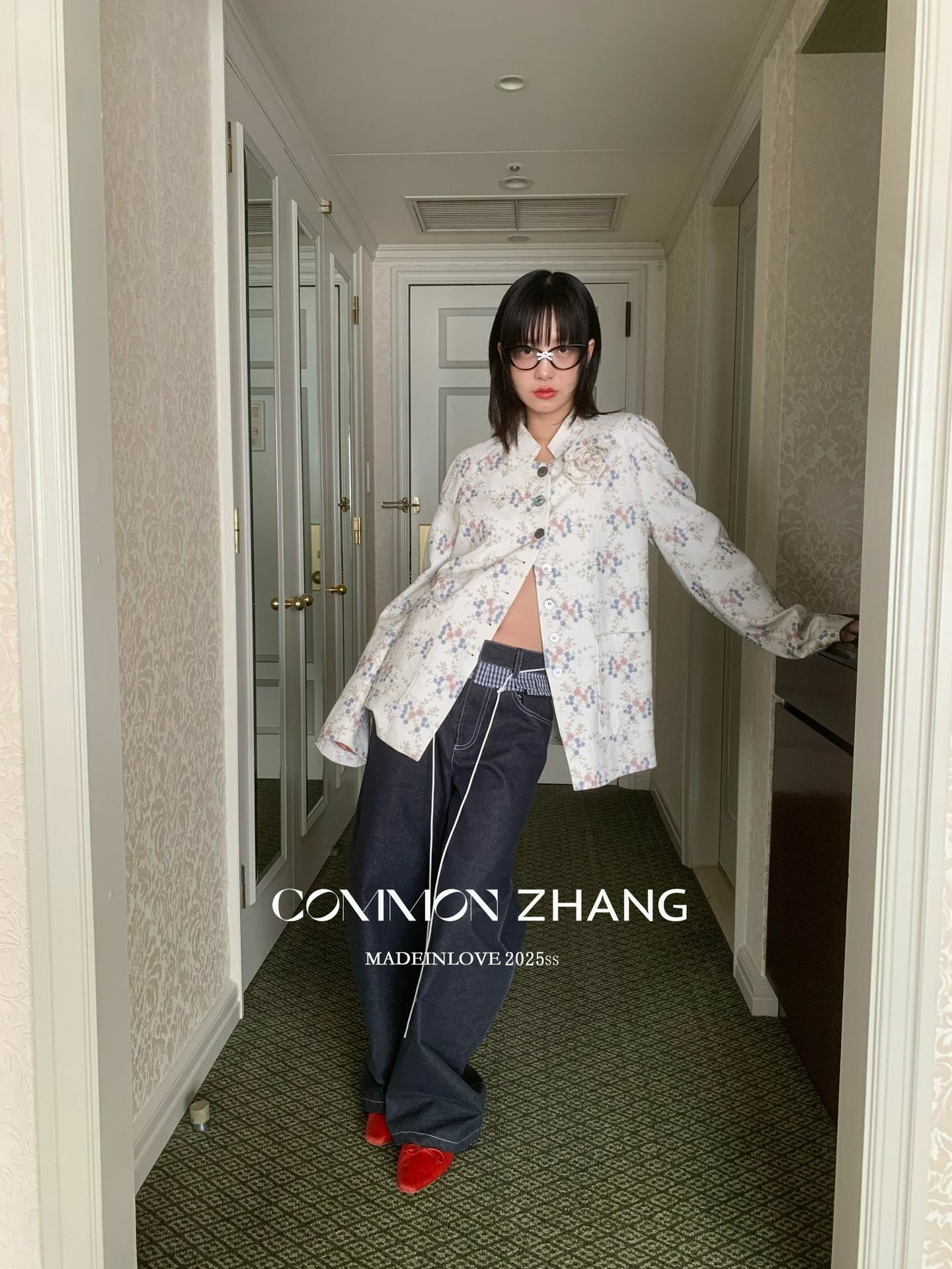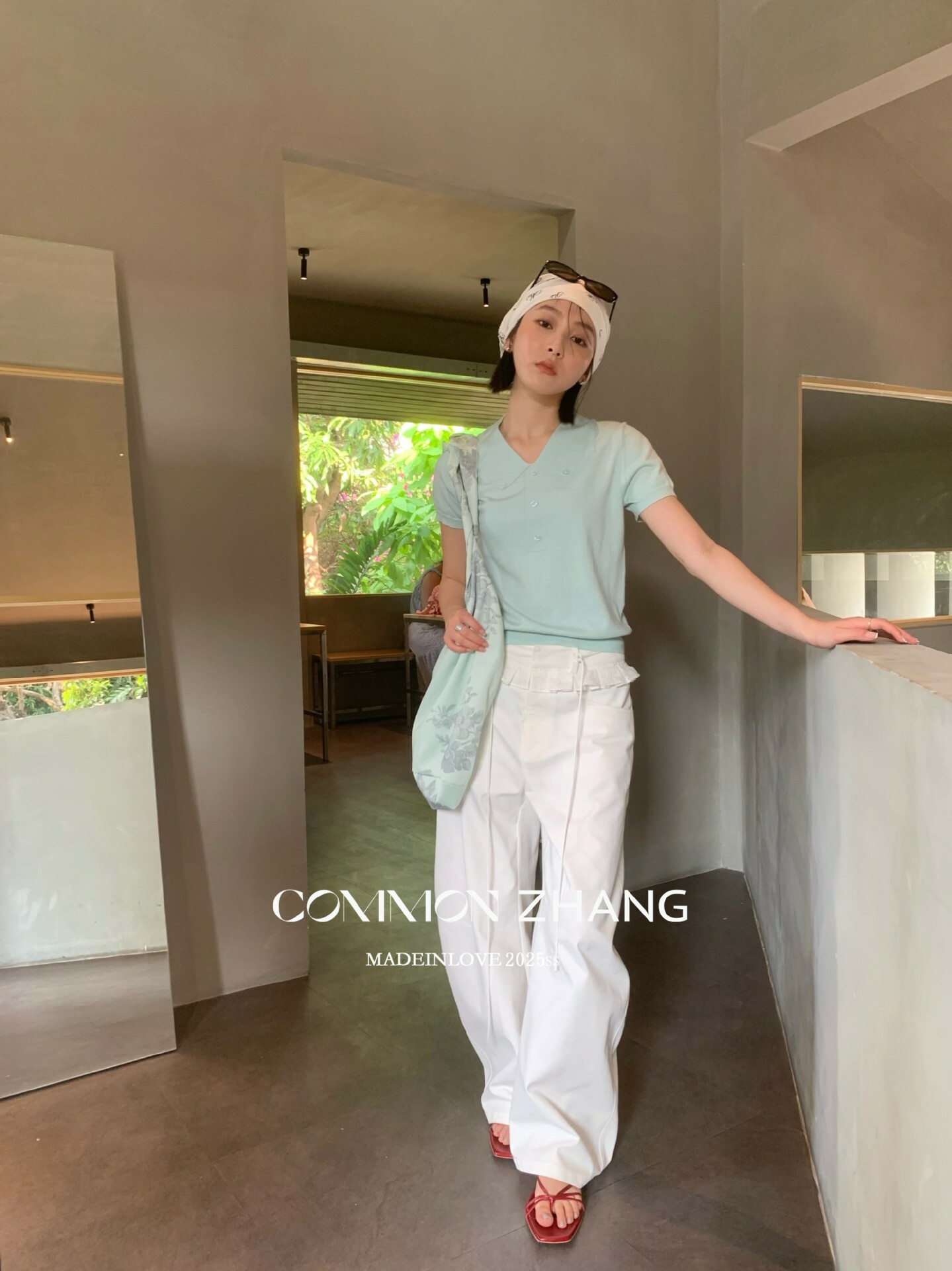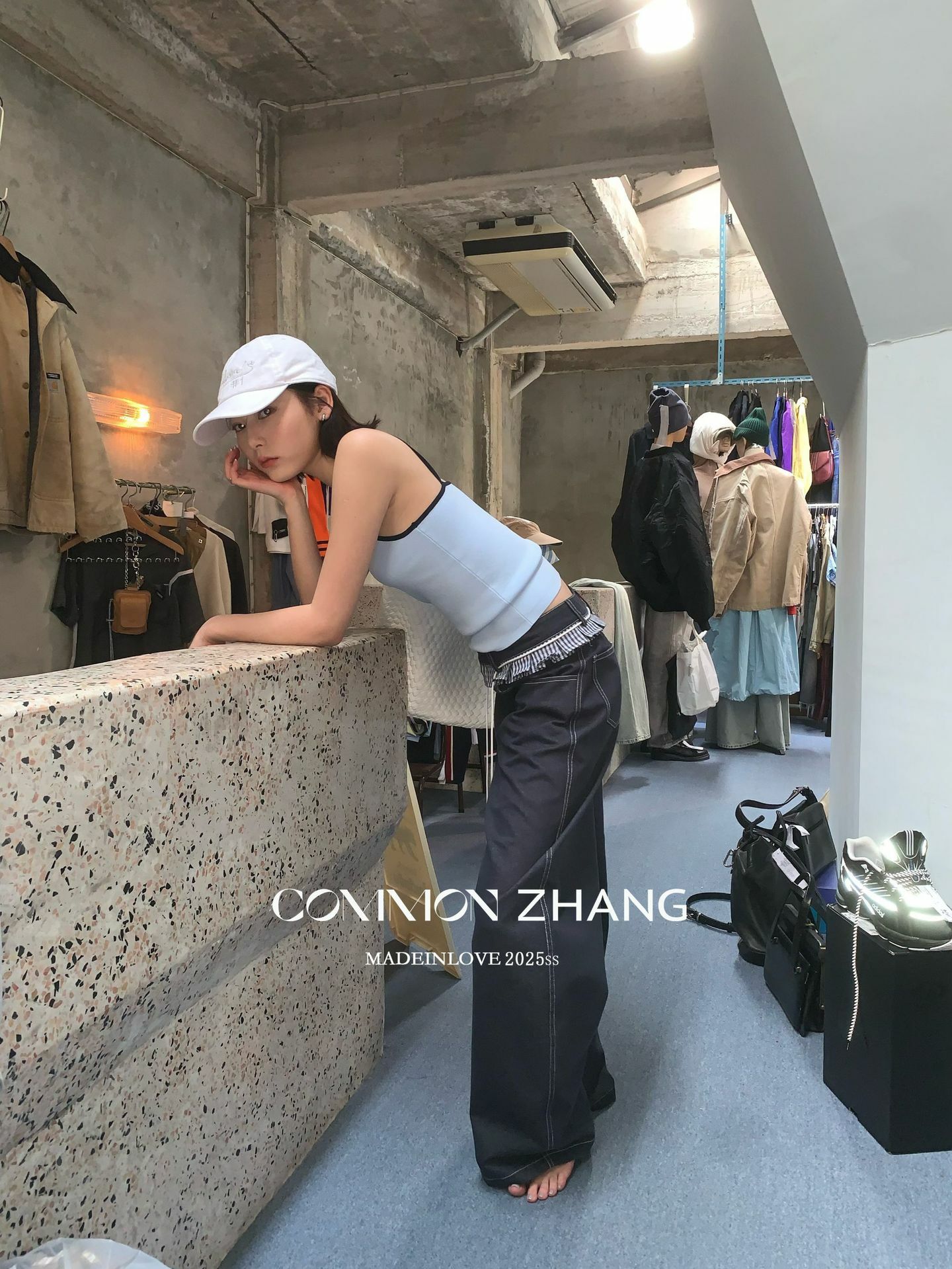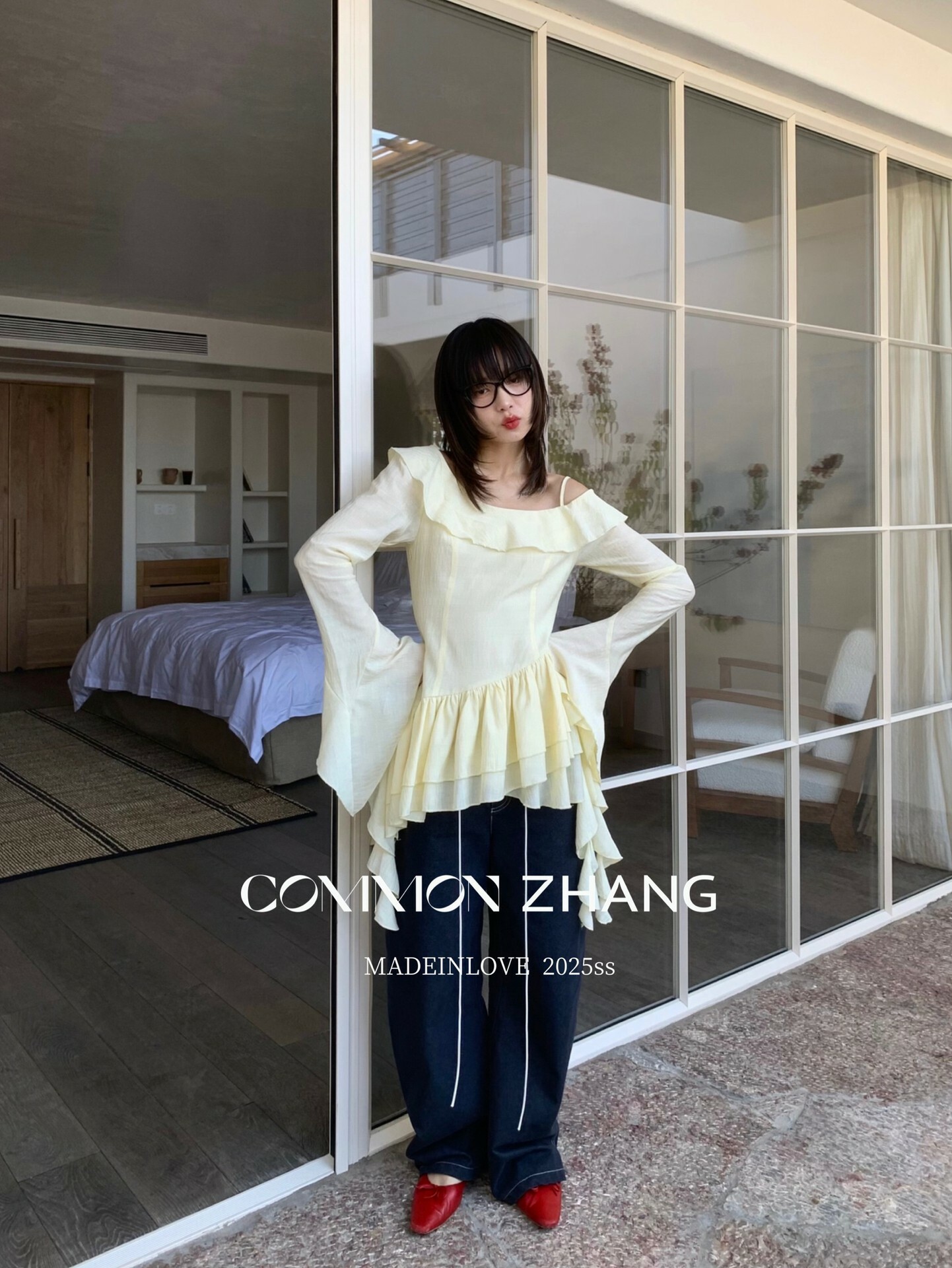 *o-ha-you*【FCZ101231】韓版都會通勤花邊拼接繫帶高腰闊腿垂感拖地牛仔褲-2色-如有需要請先諮詢