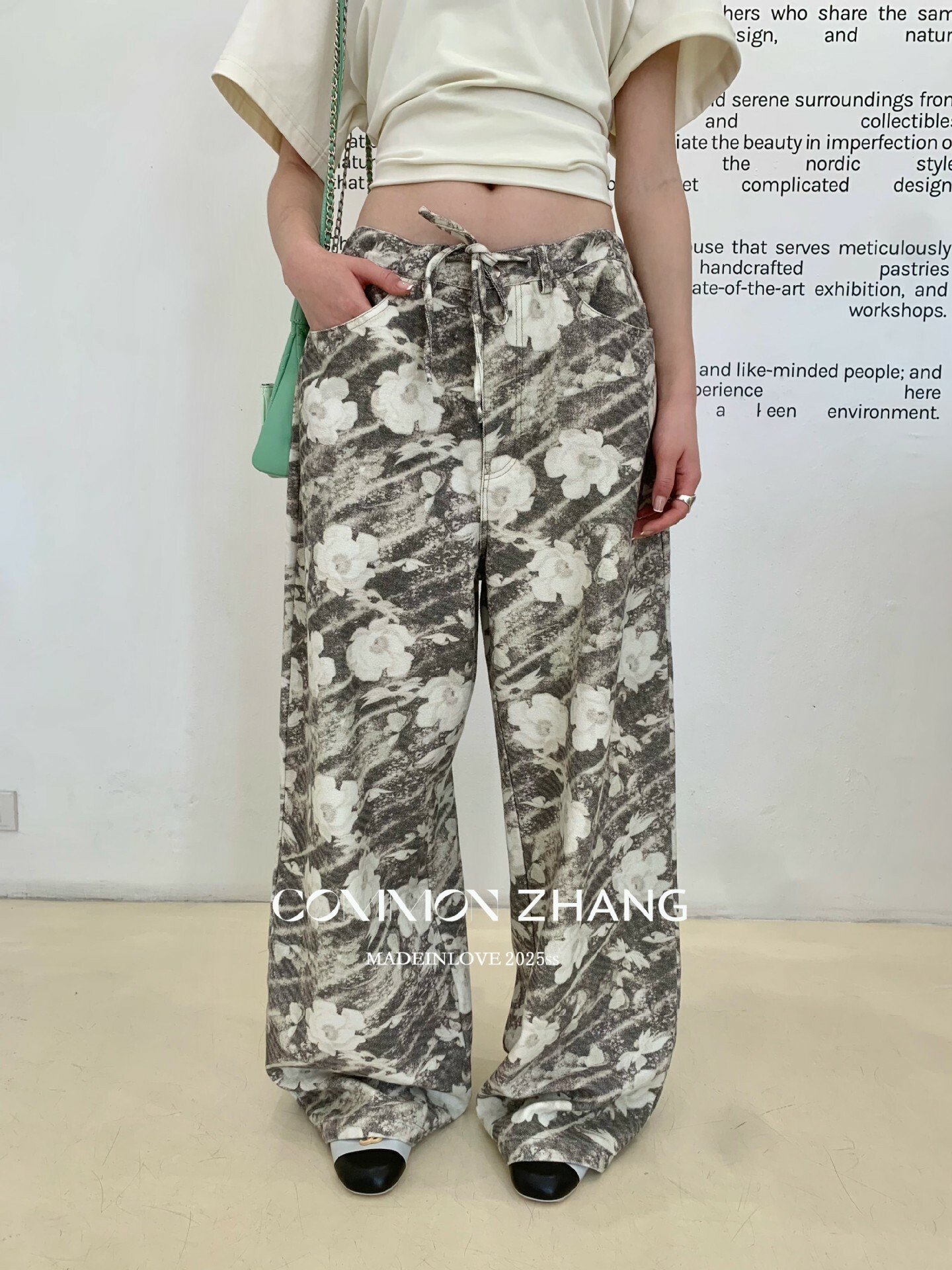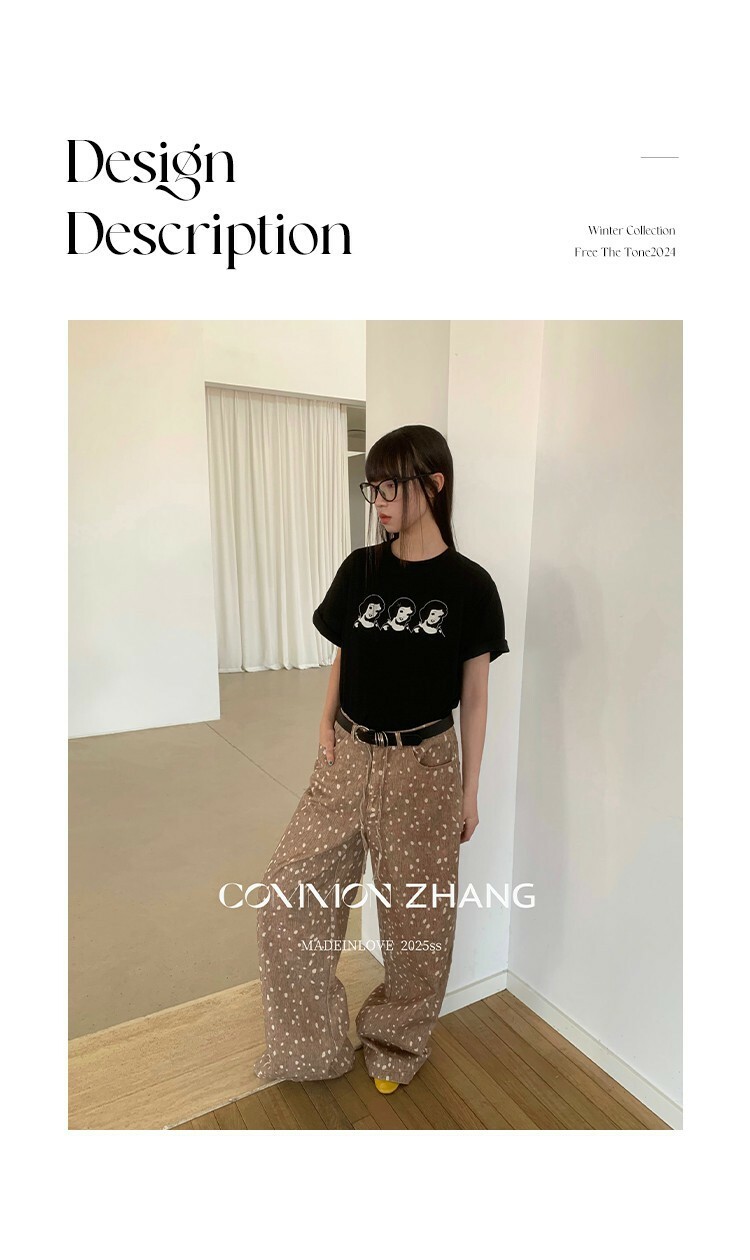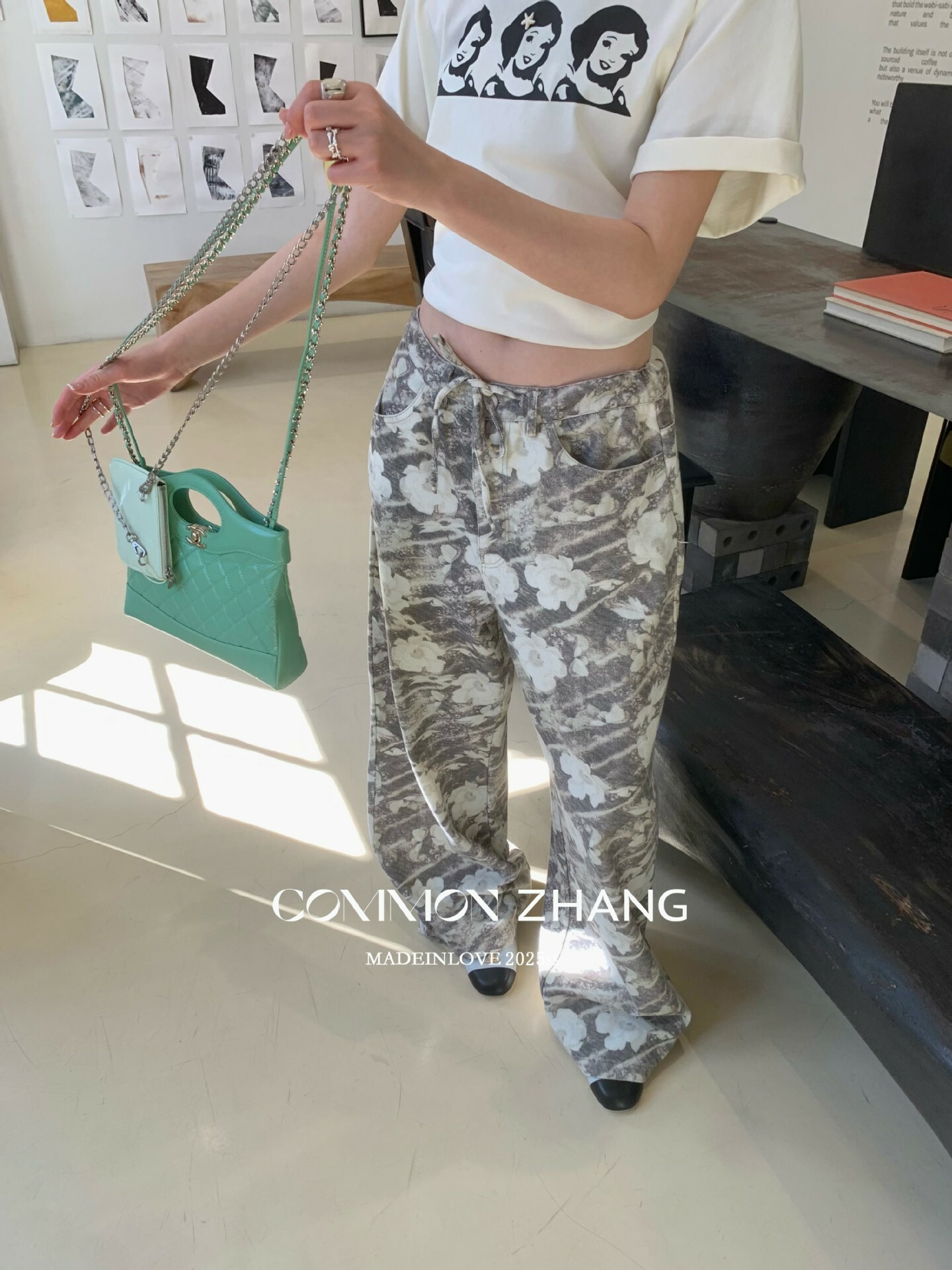 *o-ha-you*【FCZ101399】春季新款小眾復古時髦花卉印花高腰闊腿垂感拖地百搭休閒褲-2色-如有需要請先諮詢