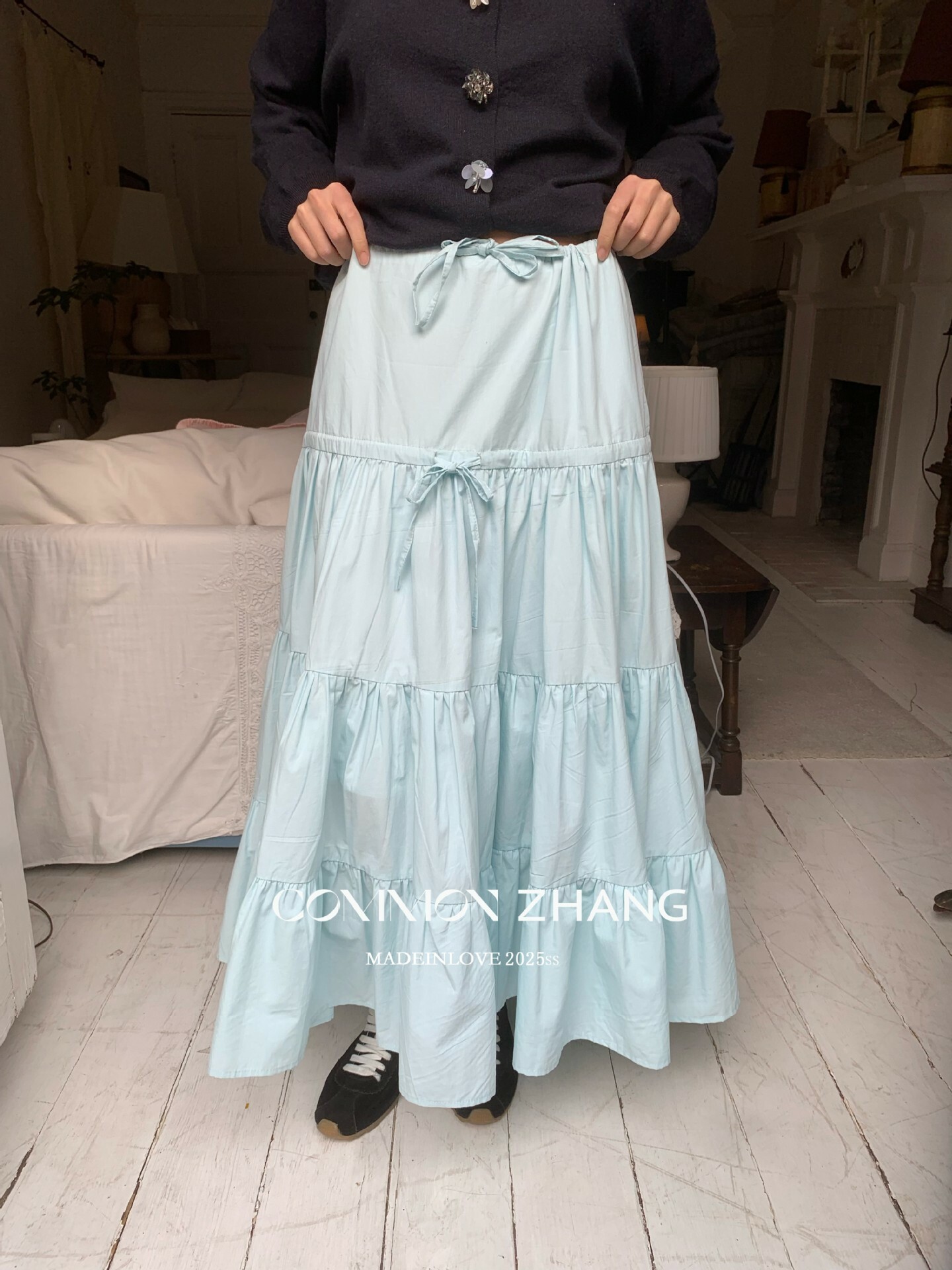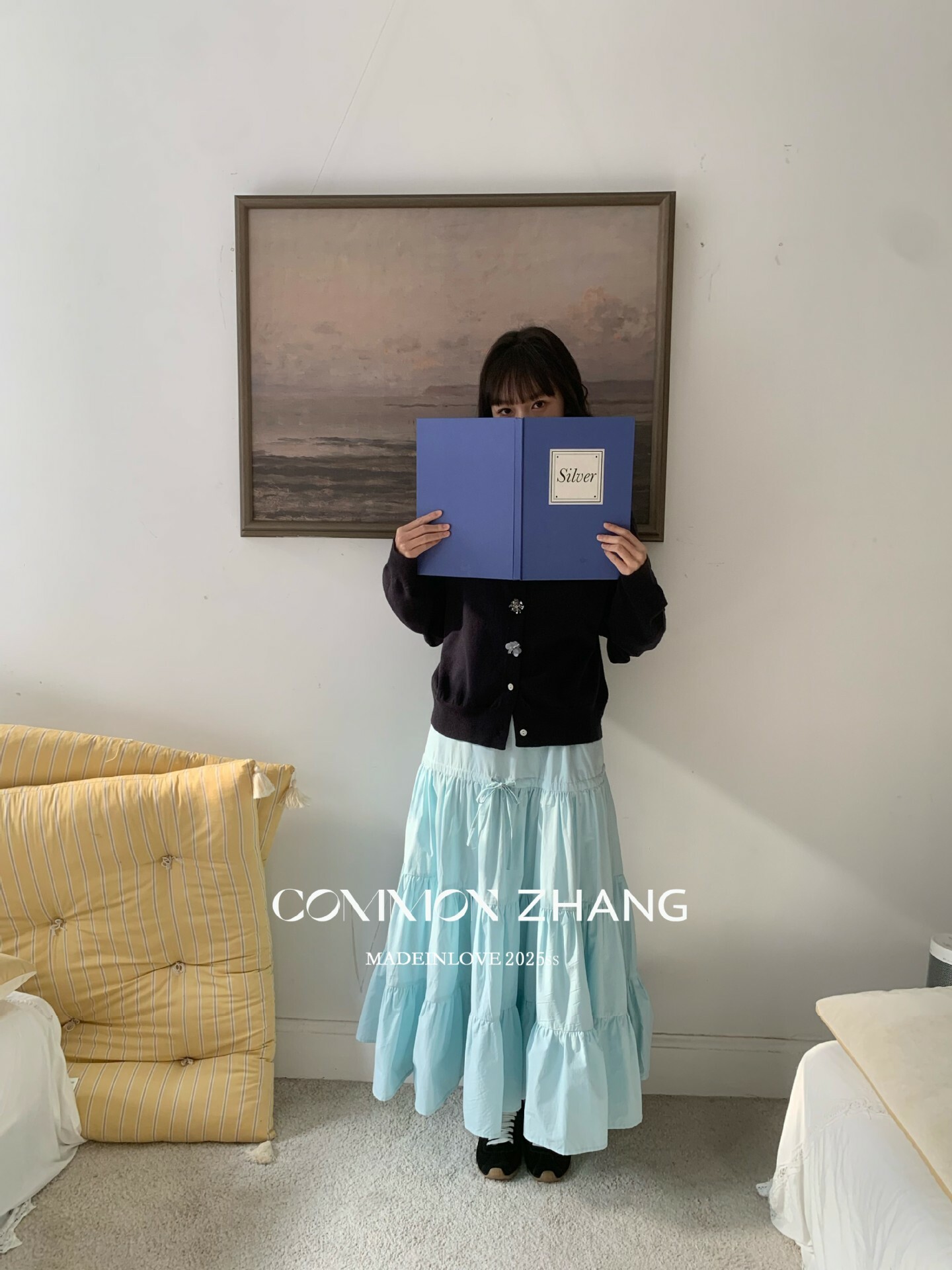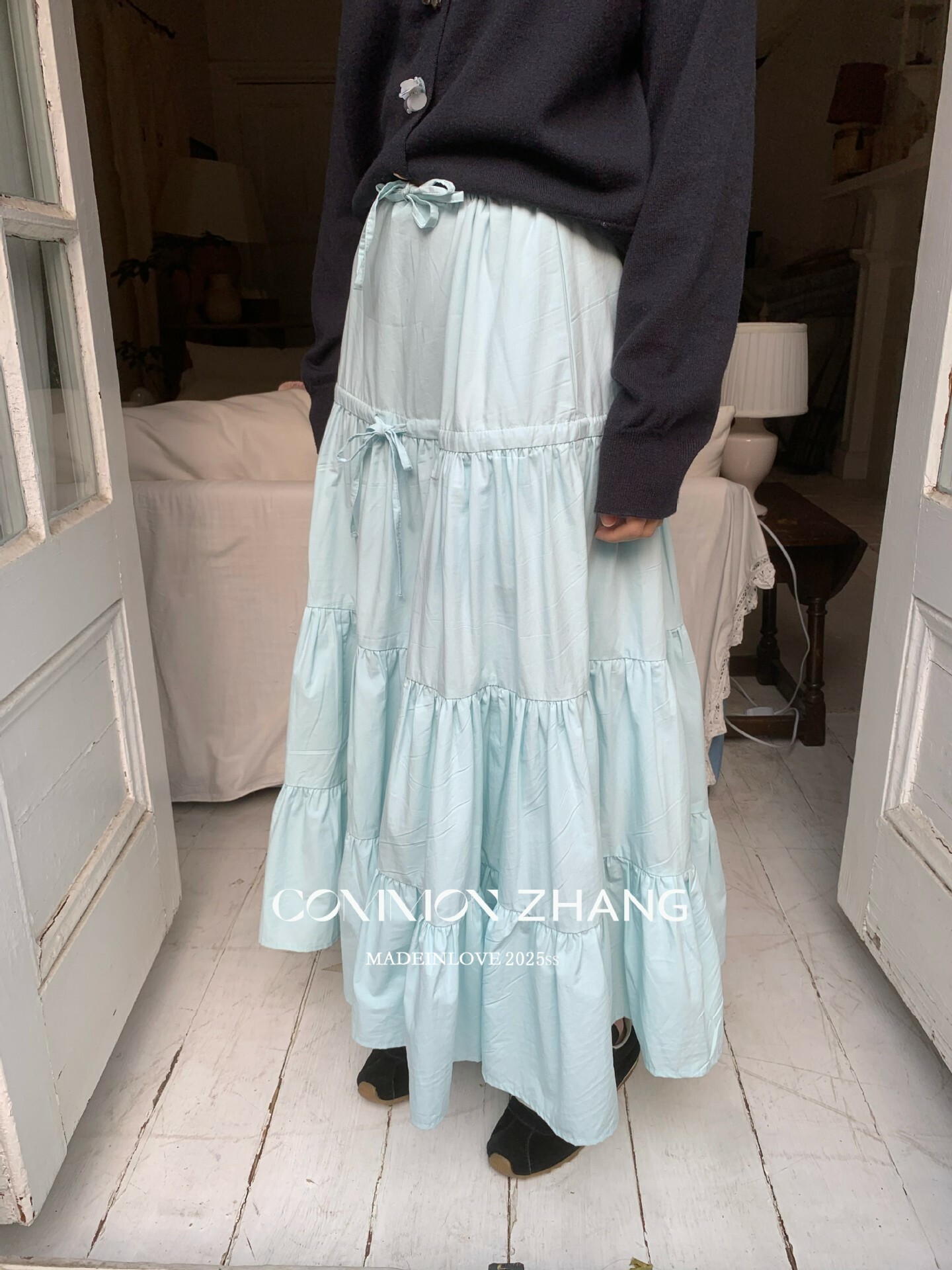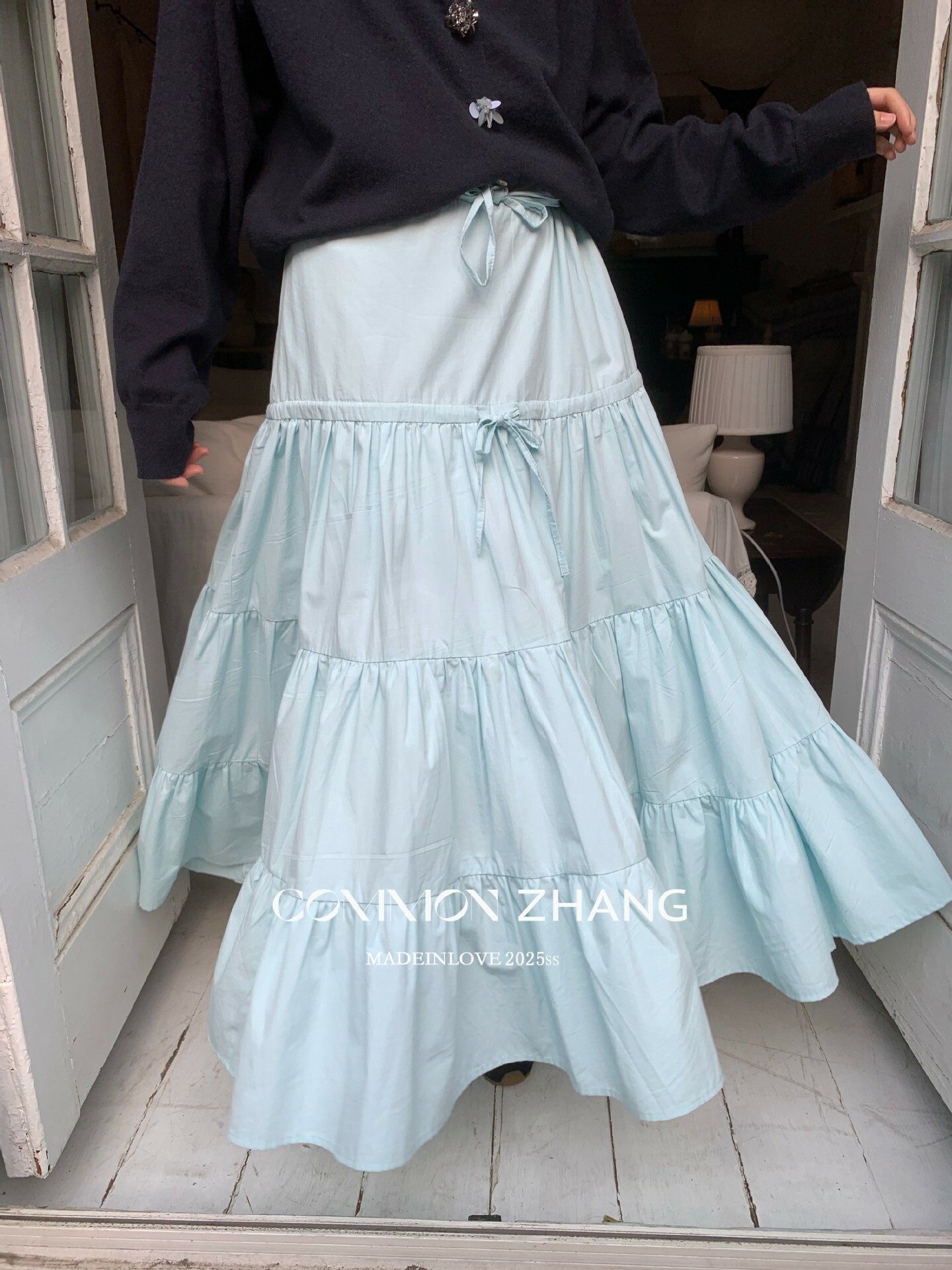 *o-ha-you*【FCZ102041】純色繫帶蝴蝶結層次感高腰遮胯A字蛋糕公主半身裙-4色-如有需要請先諮詢