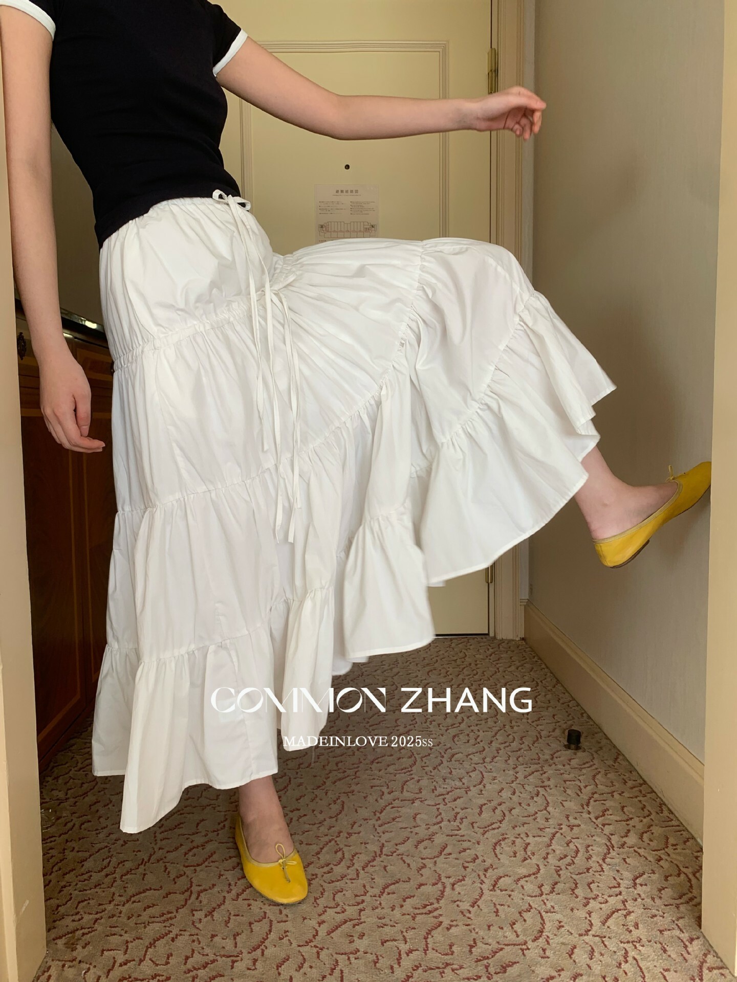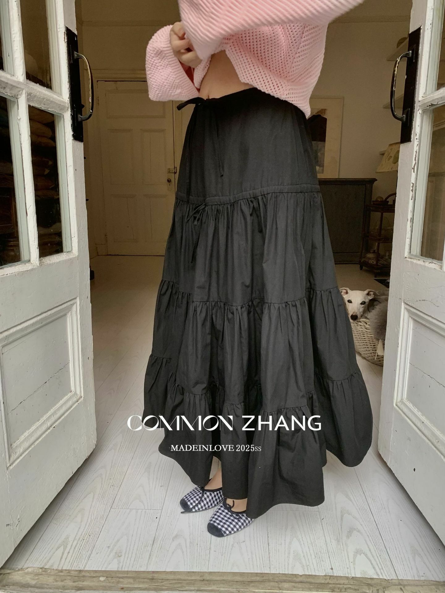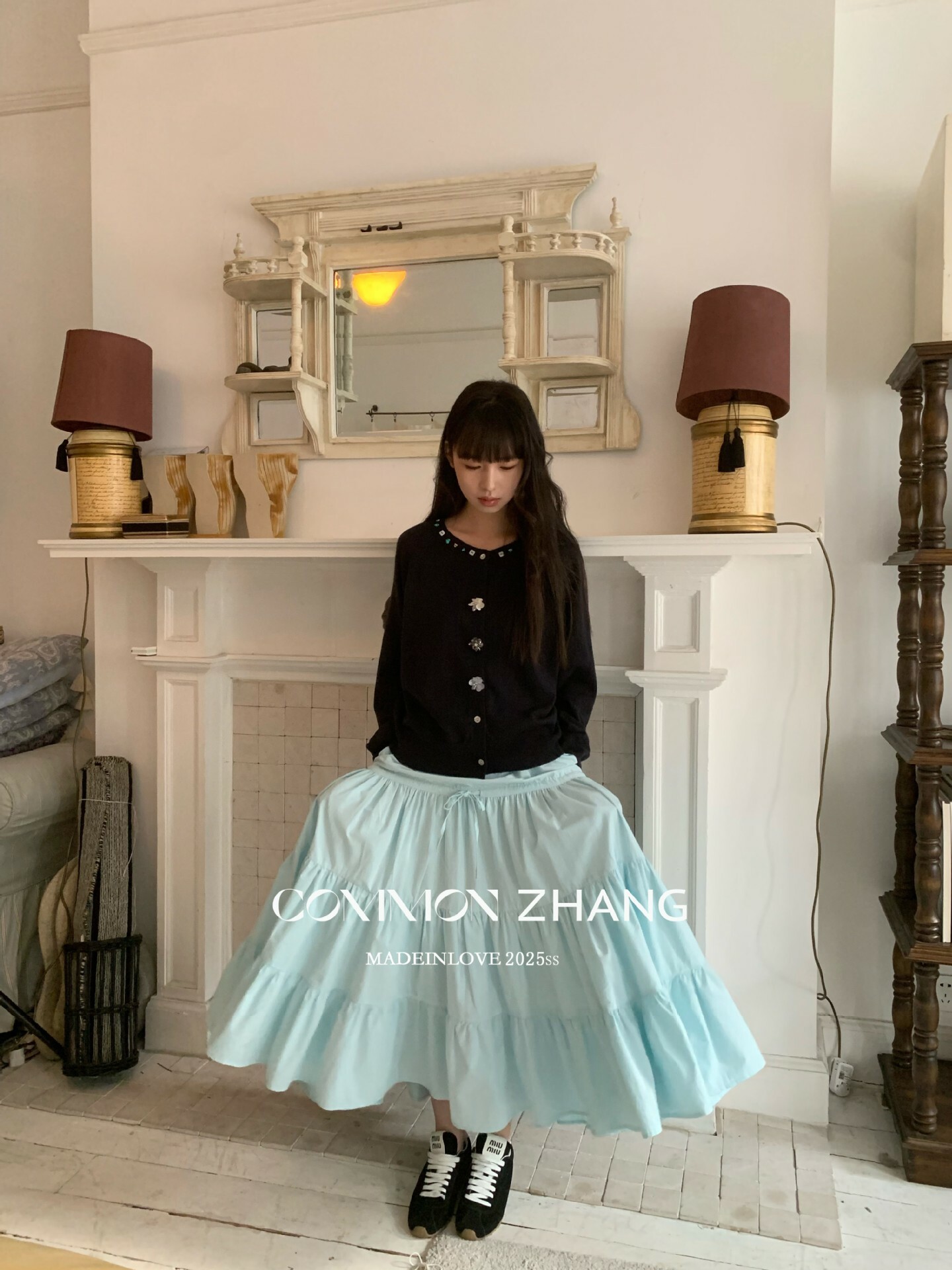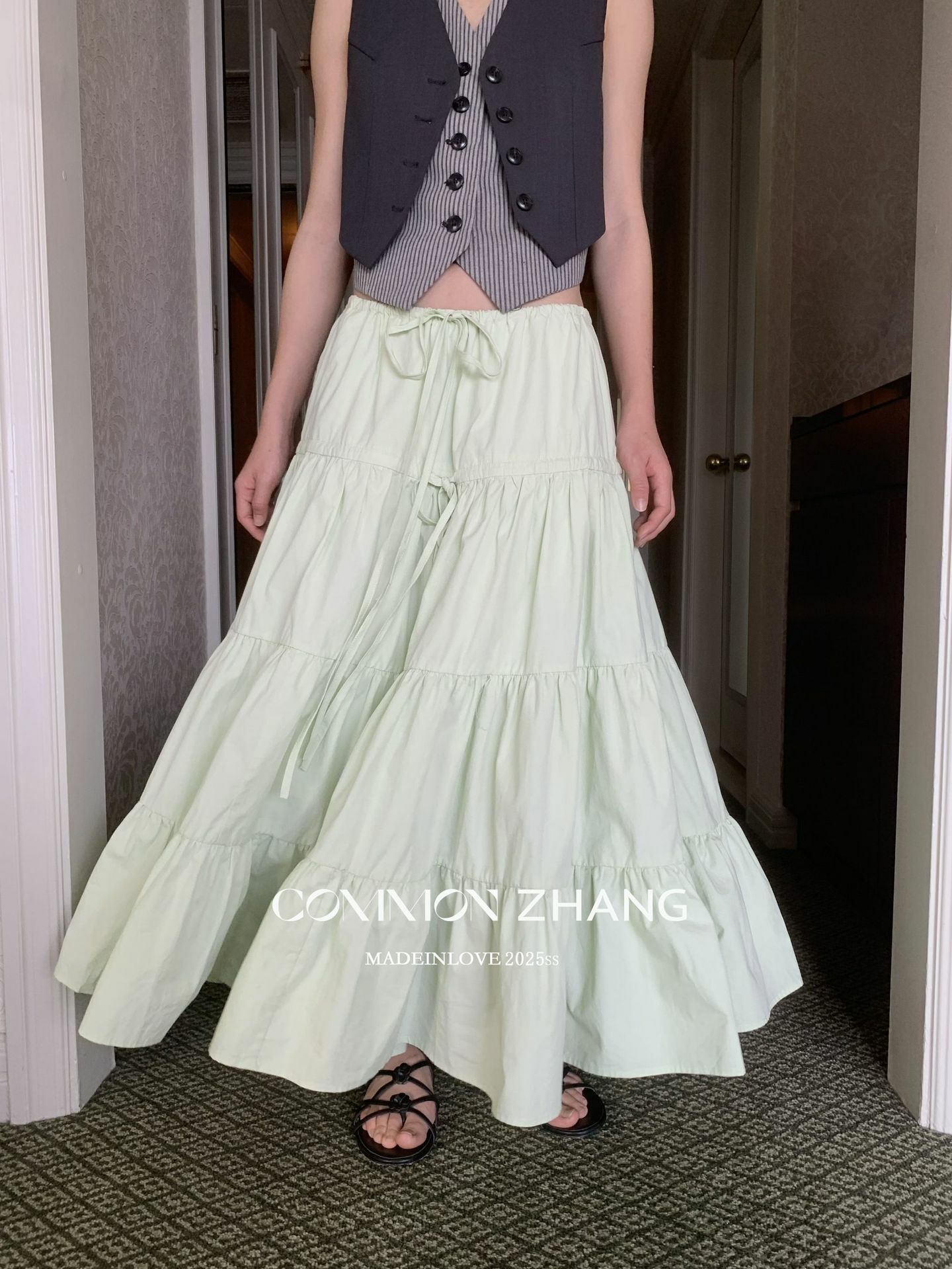 *o-ha-you*【FCZ102041】純色繫帶蝴蝶結層次感高腰遮胯A字蛋糕公主半身裙-4色-如有需要請先諮詢