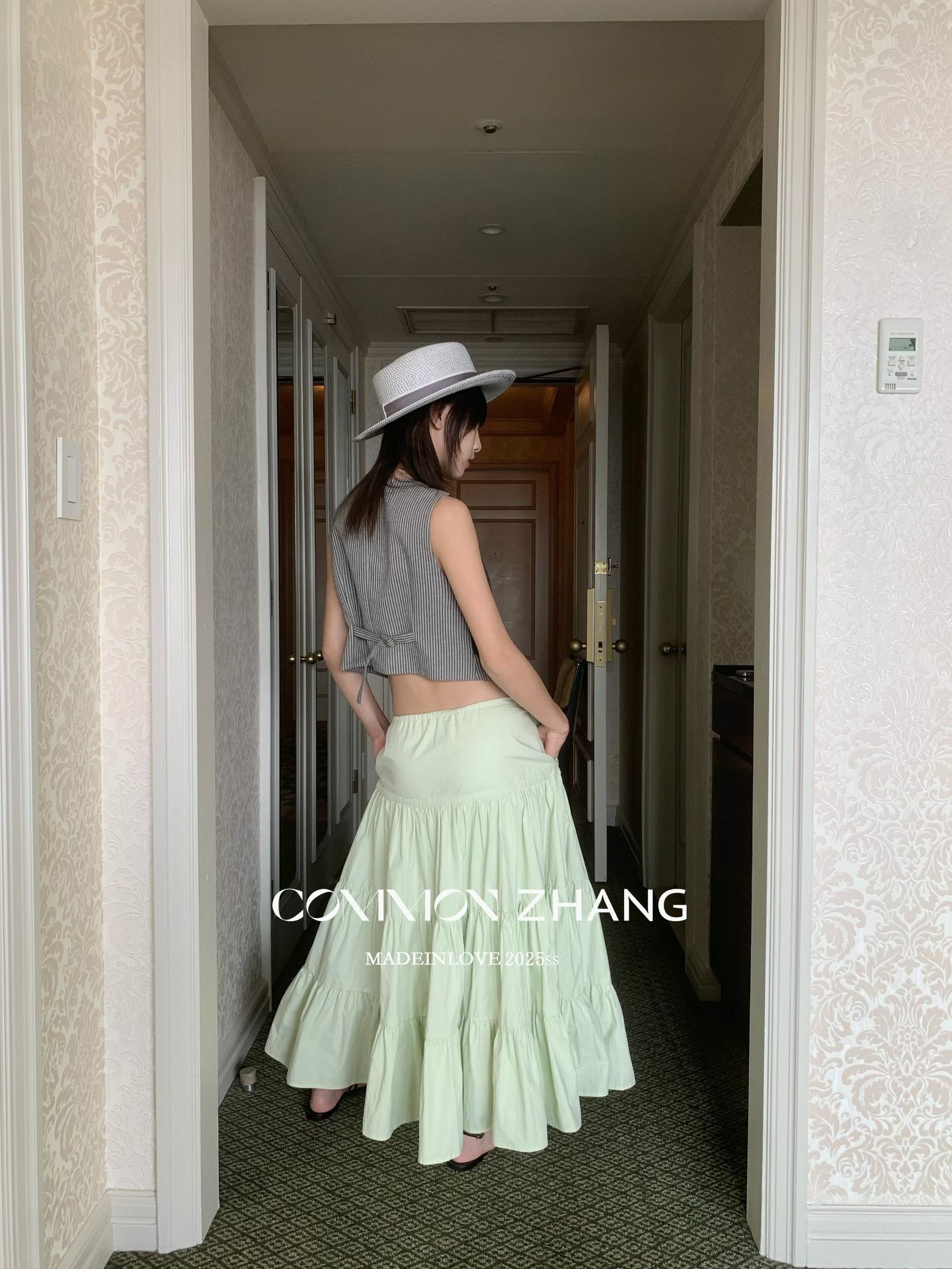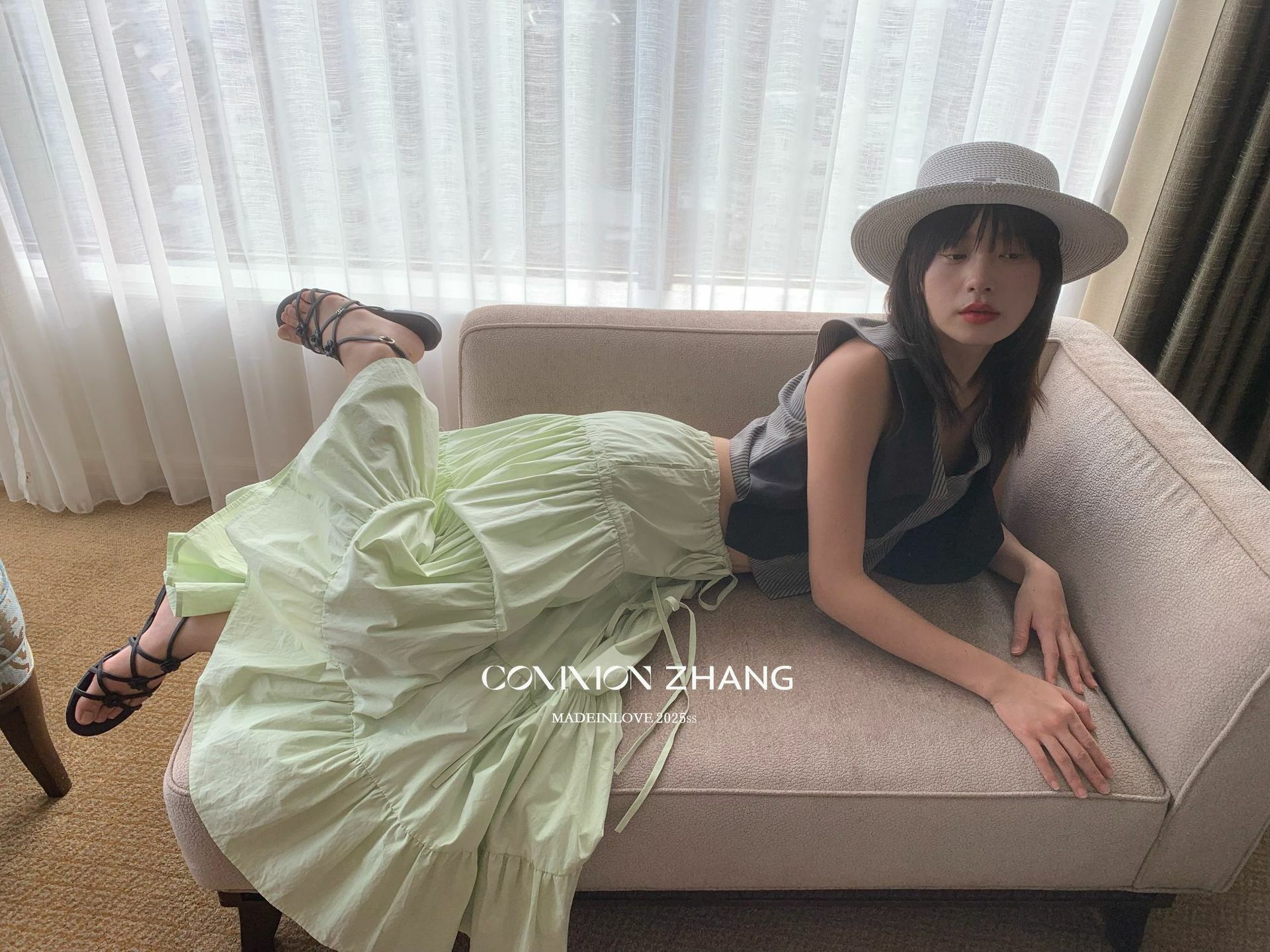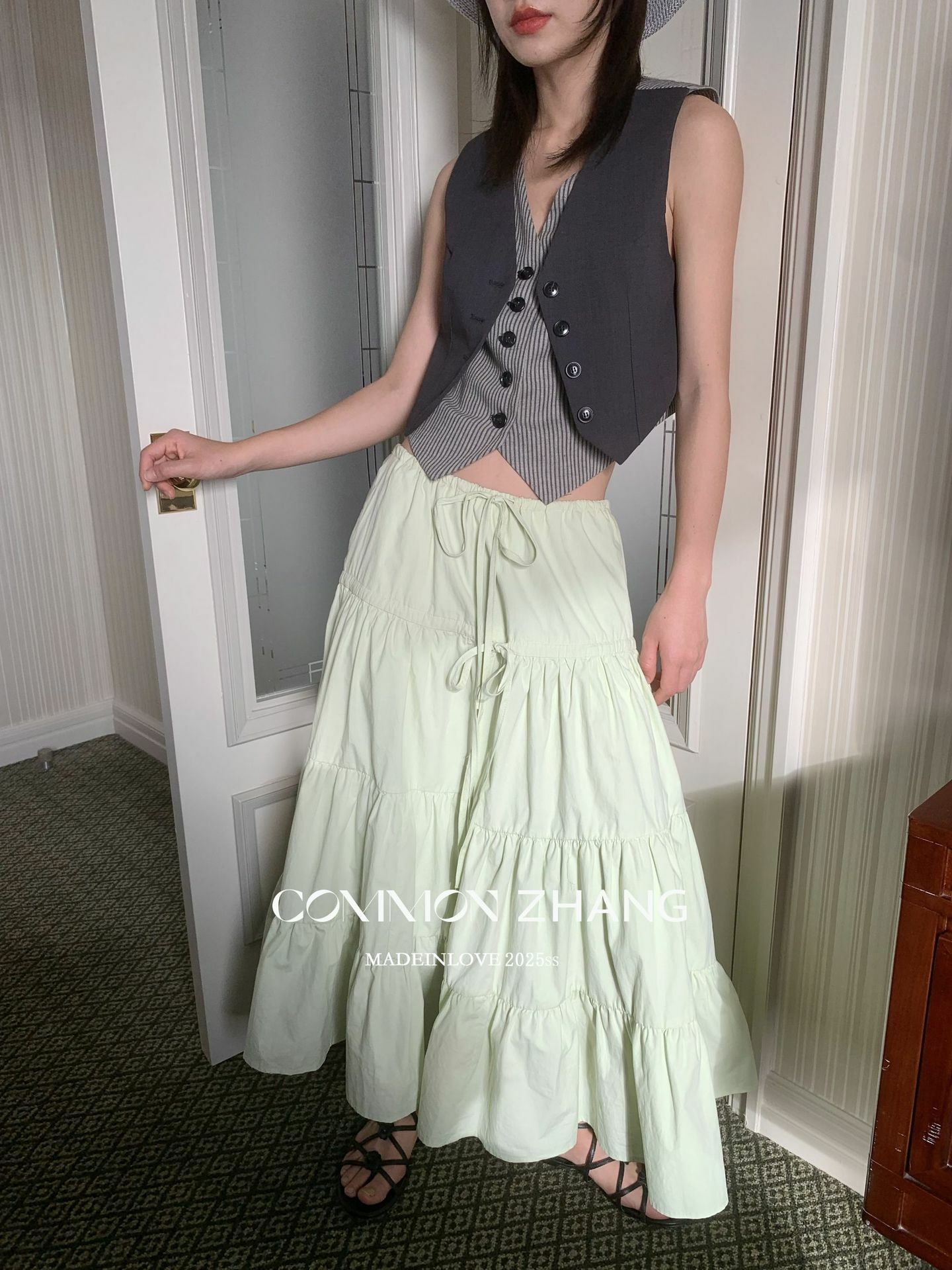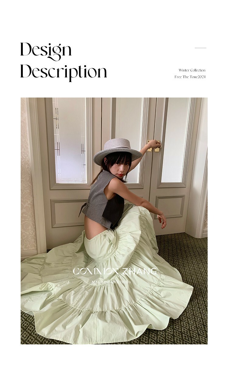 *o-ha-you*【FCZ102041】純色繫帶蝴蝶結層次感高腰遮胯A字蛋糕公主半身裙-4色-如有需要請先諮詢