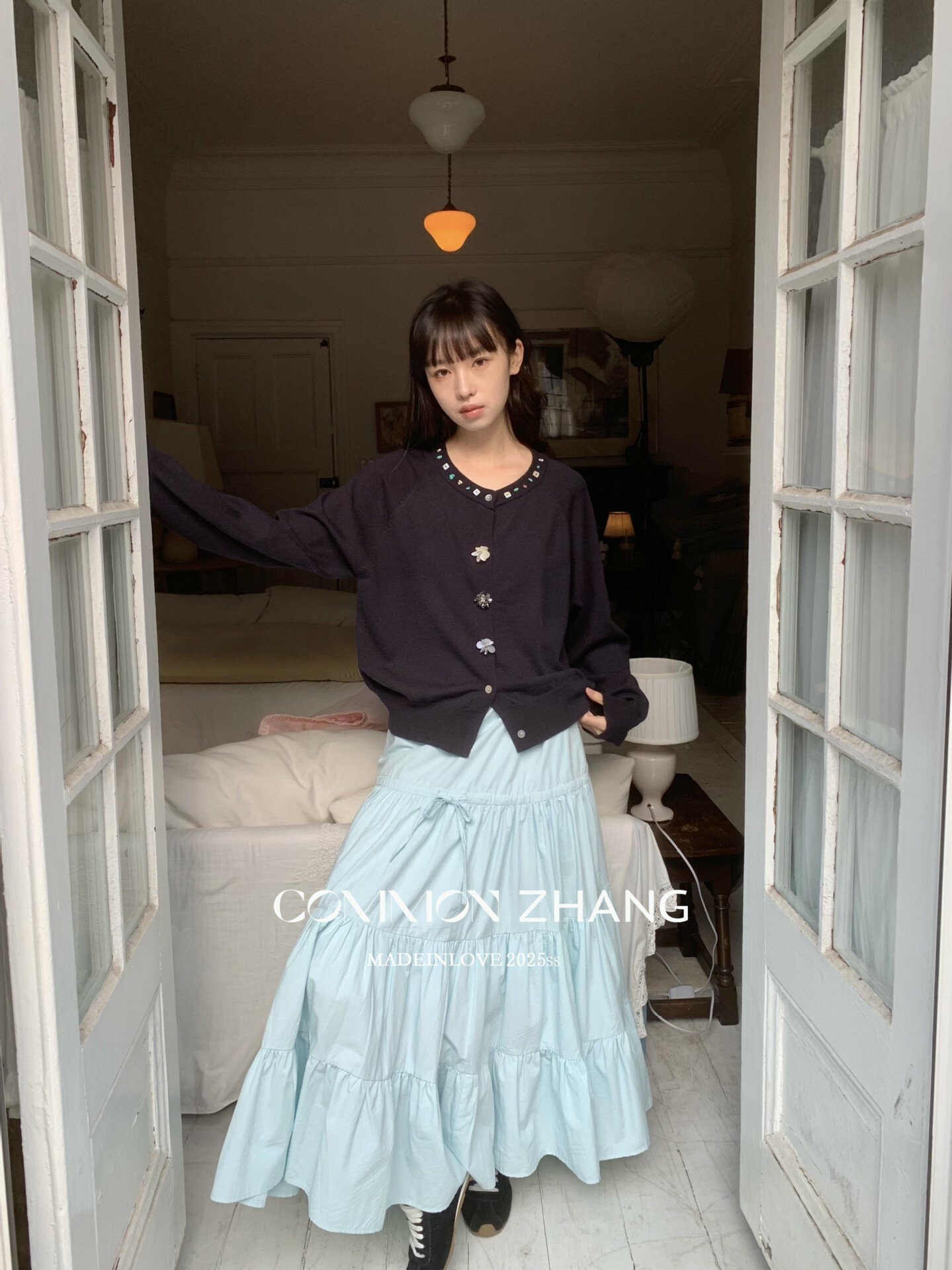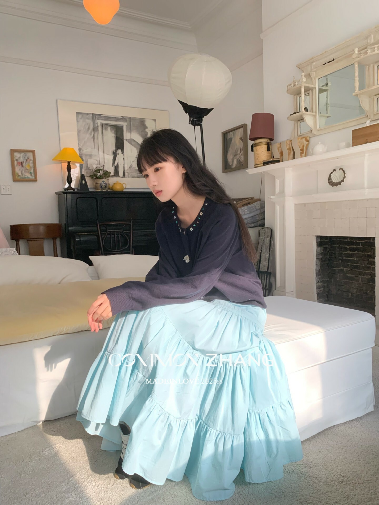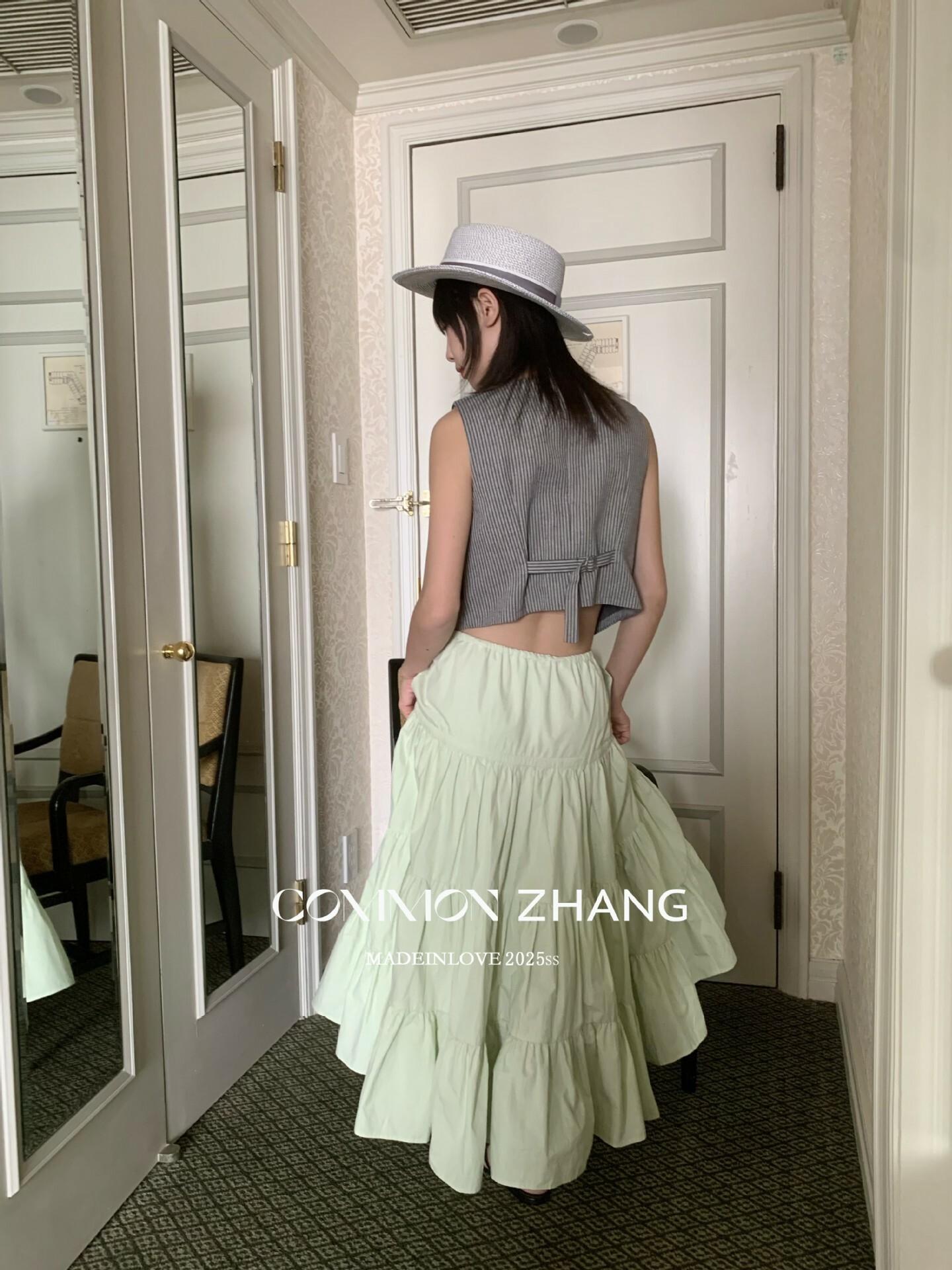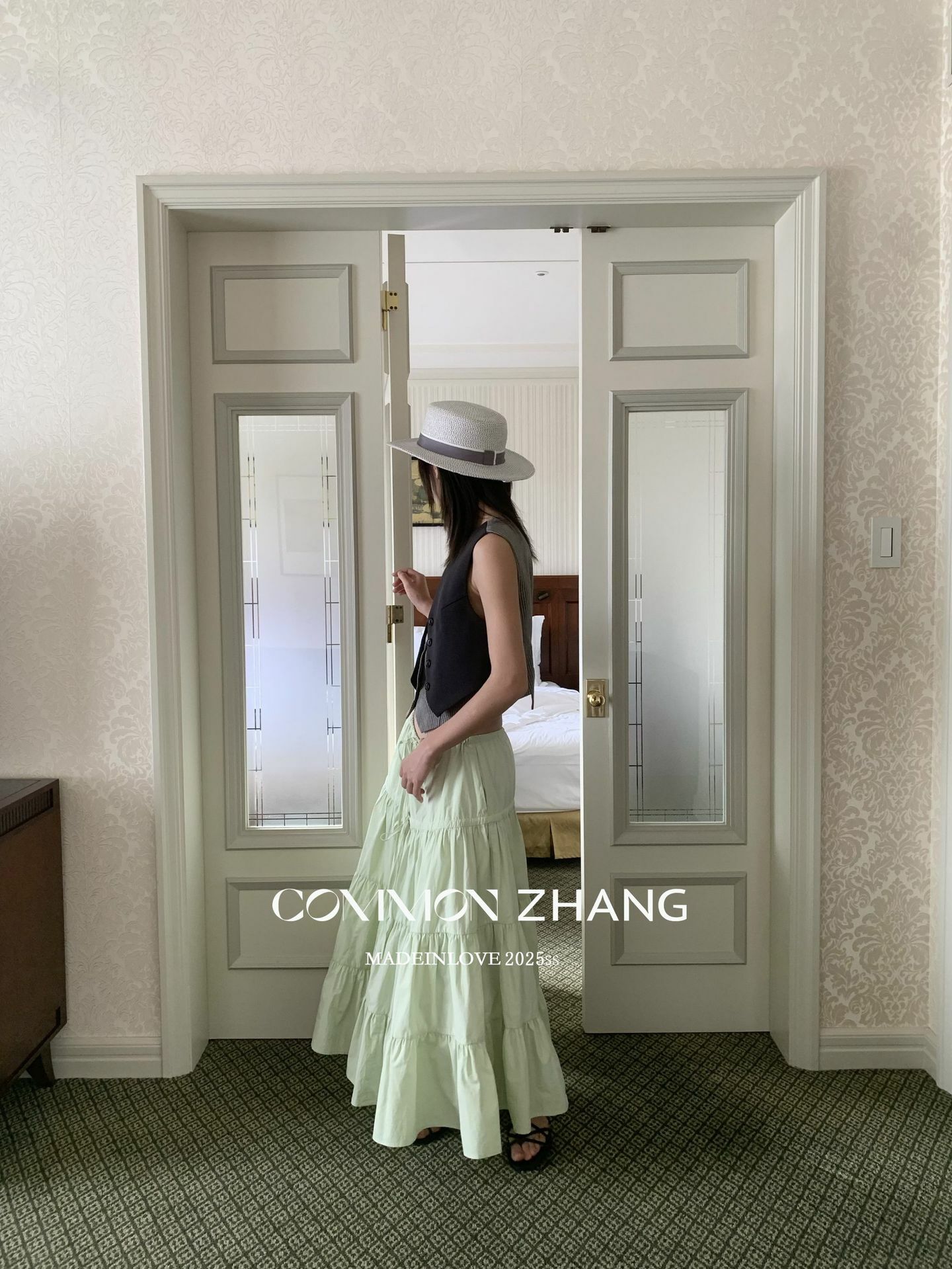 *o-ha-you*【FCZ102041】純色繫帶蝴蝶結層次感高腰遮胯A字蛋糕公主半身裙-4色-如有需要請先諮詢