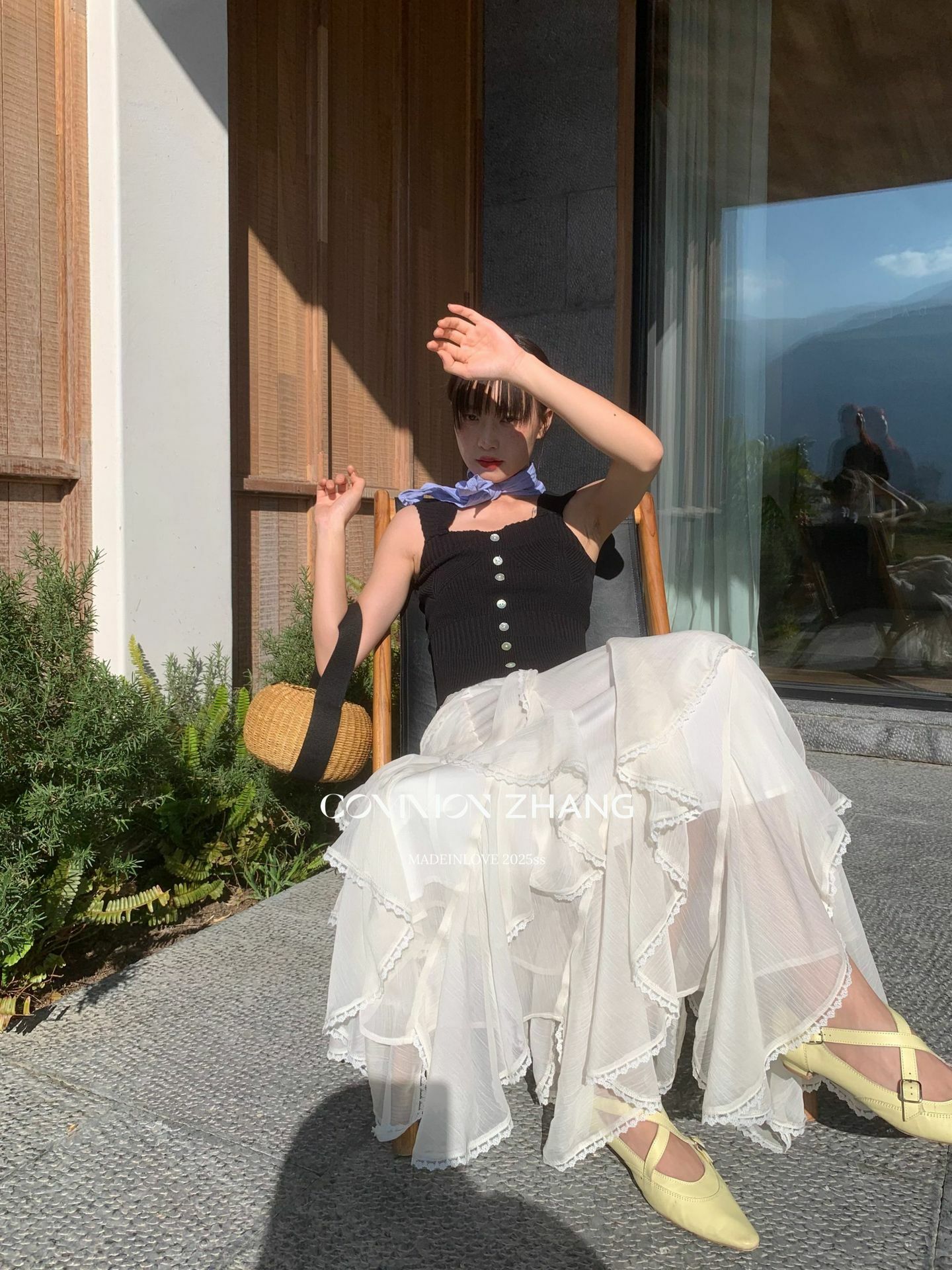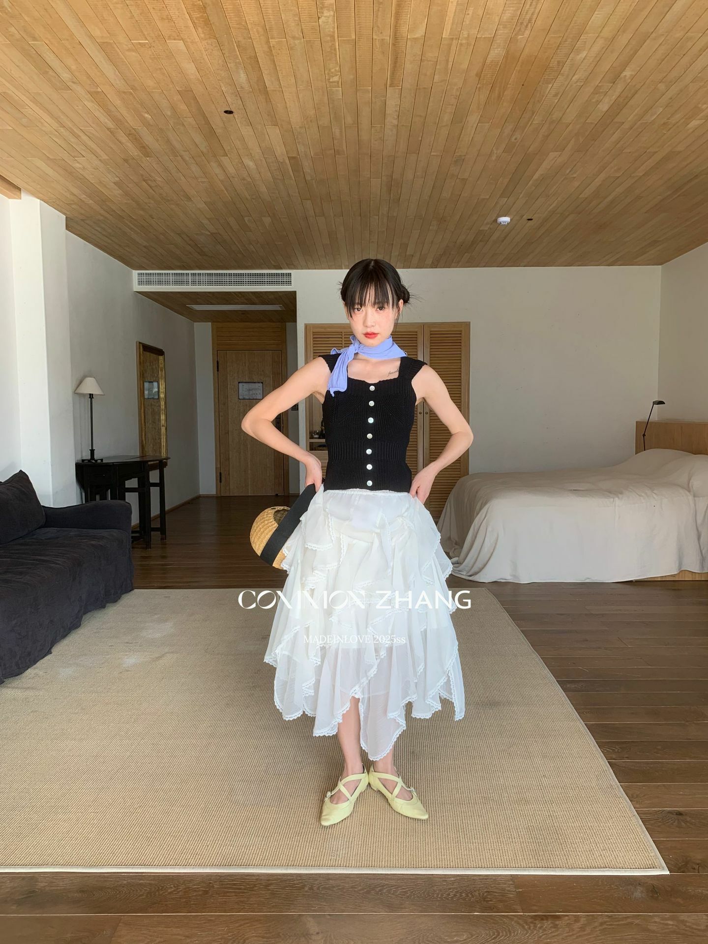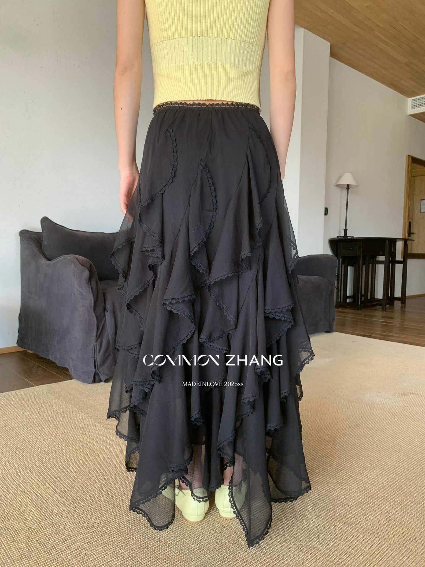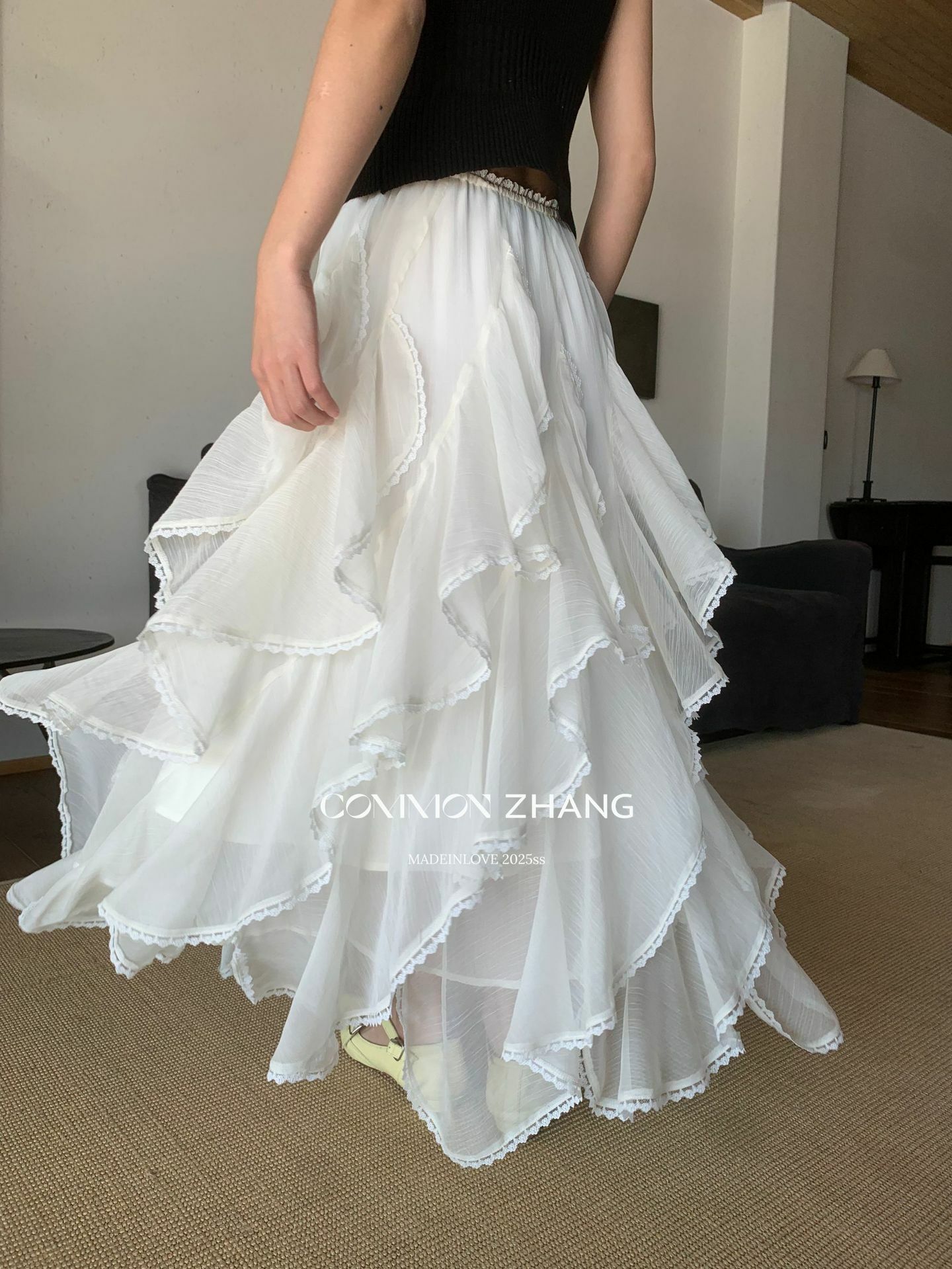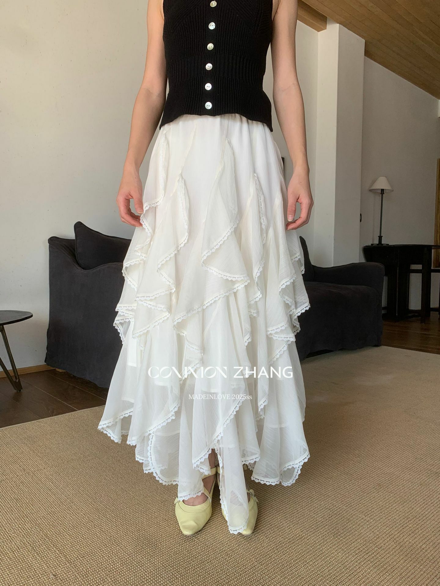 *o-ha-you*【FCZ102043】法式仙女不規則層次感網紗高腰A字蛋糕公主半身裙-2色-如有需要請先諮詢