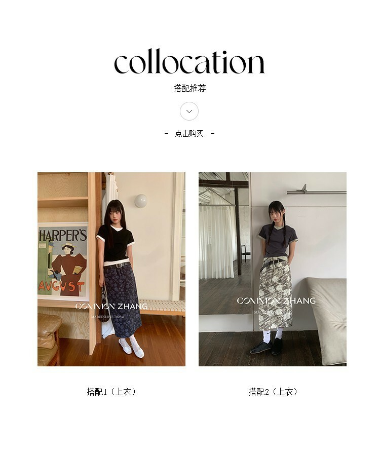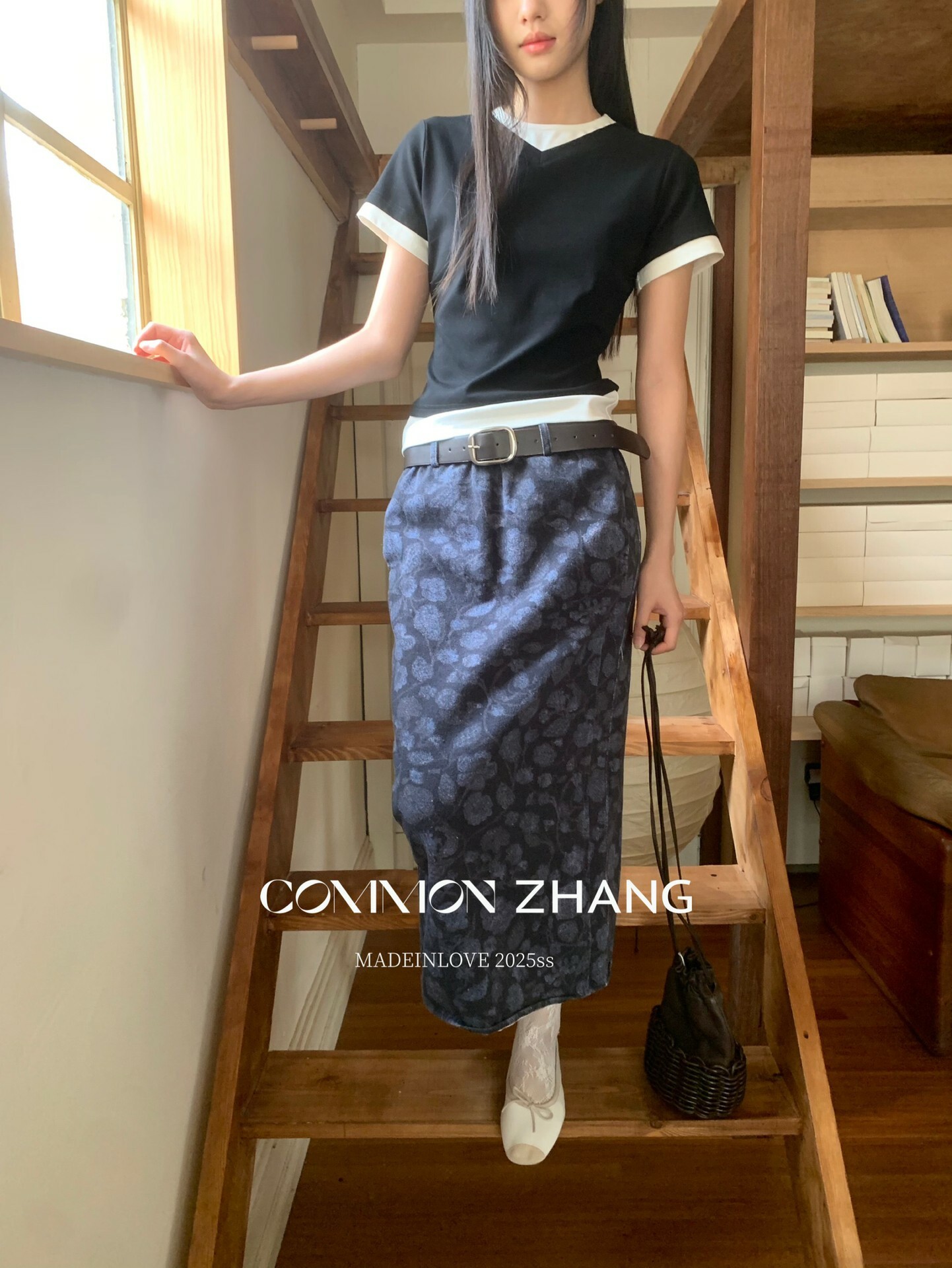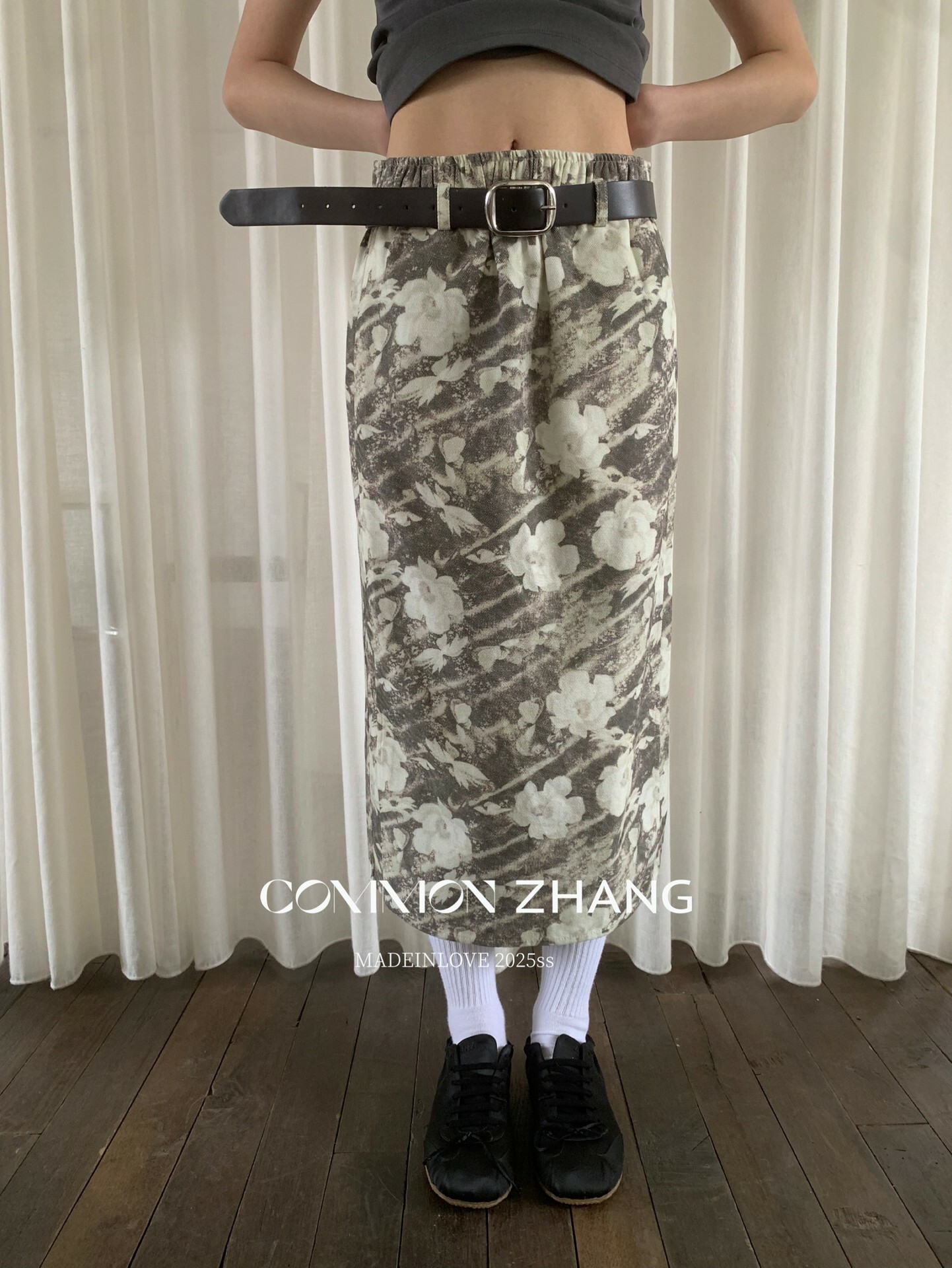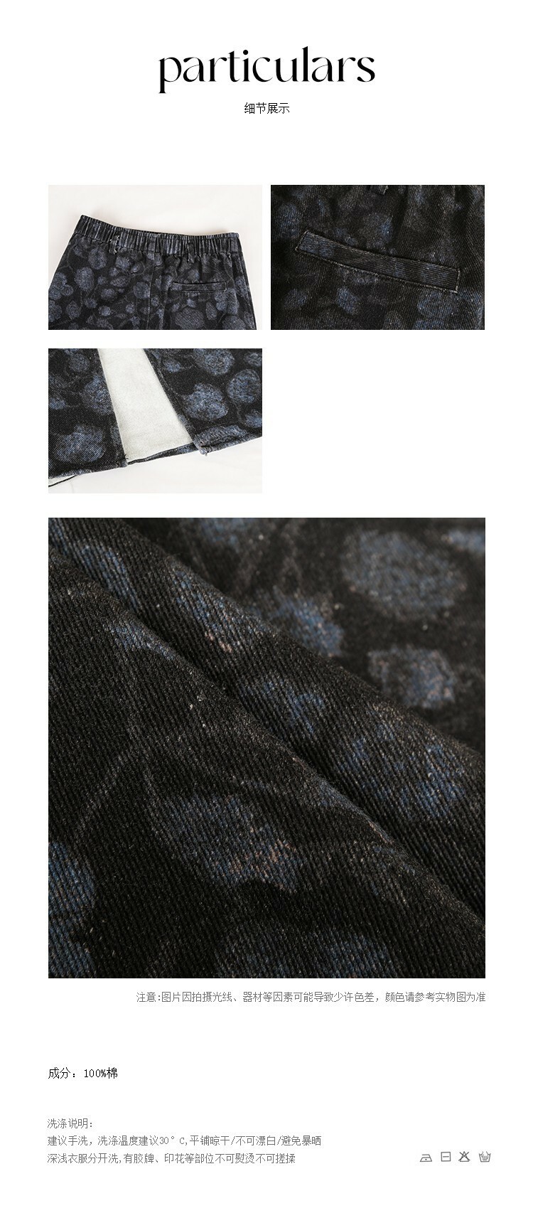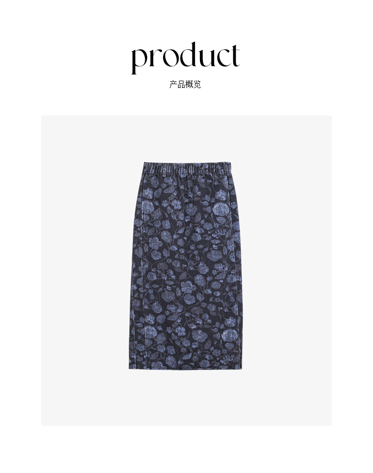*o-ha-you*【FCZ102123】夏季新中式復古花卉印花高腰開叉A字一步牛仔半身裙-2色