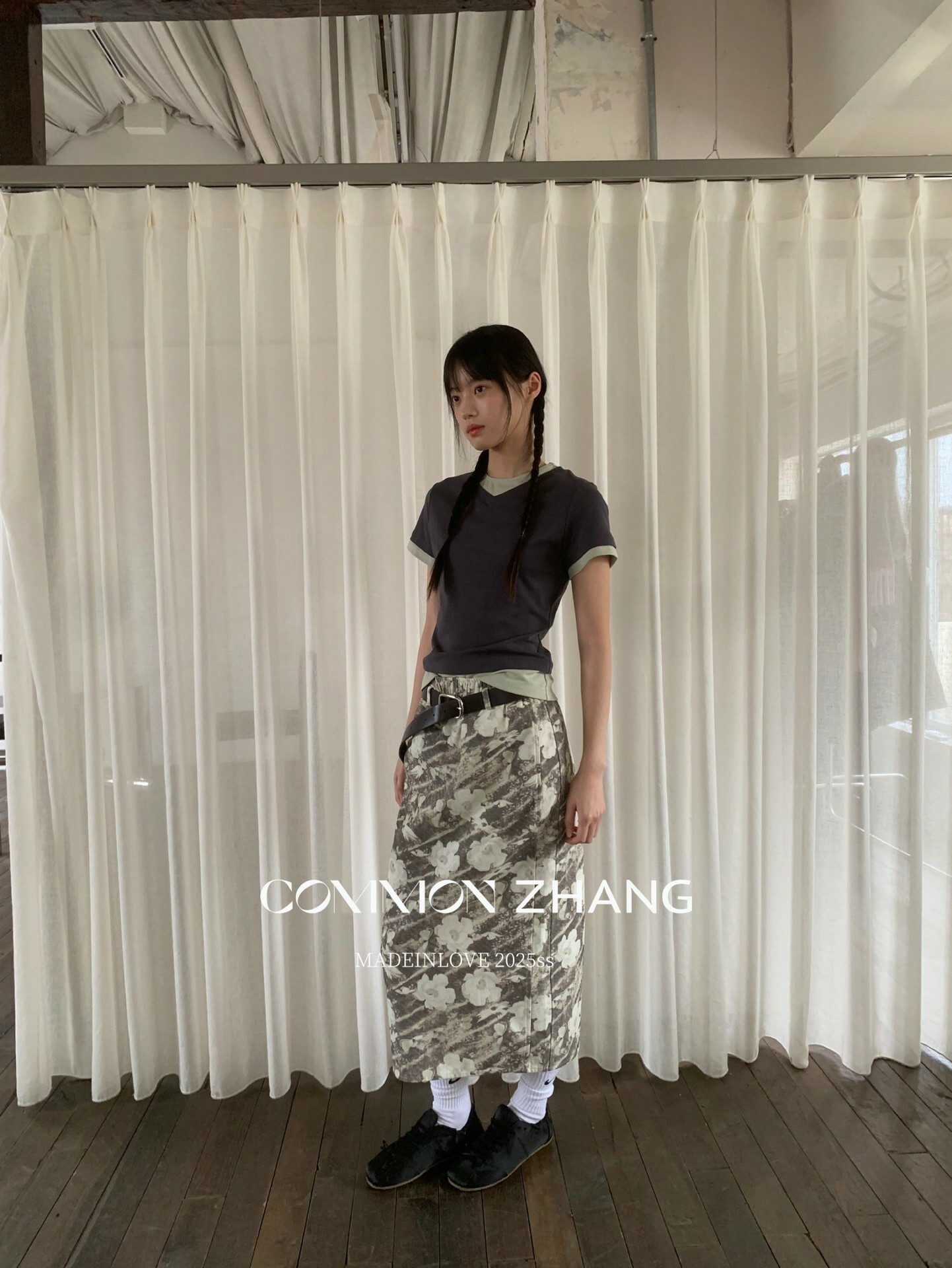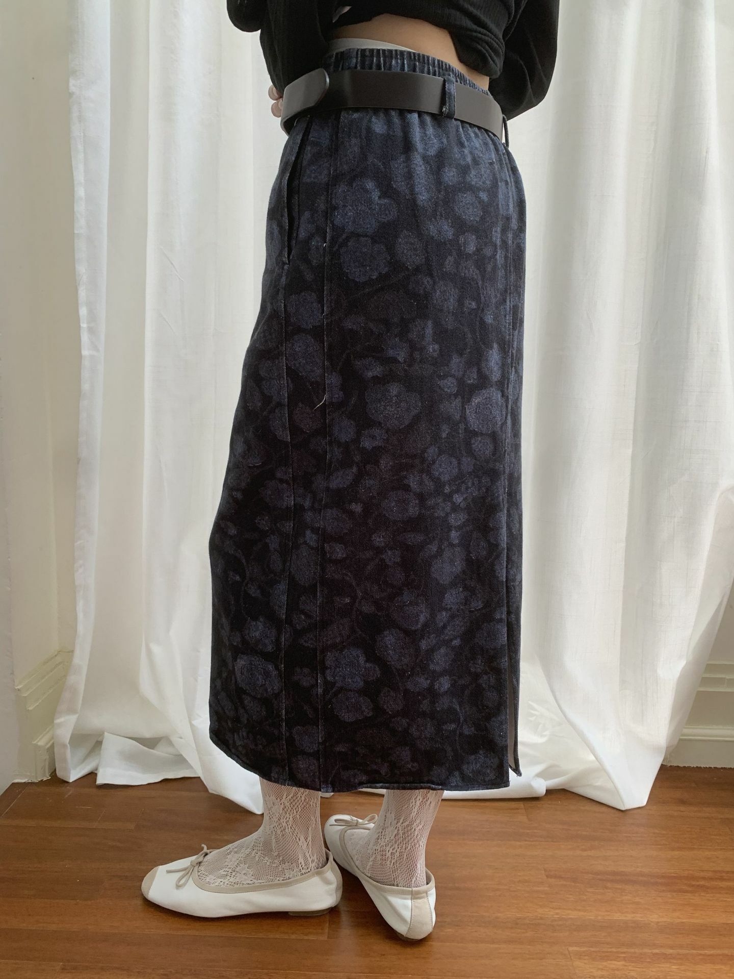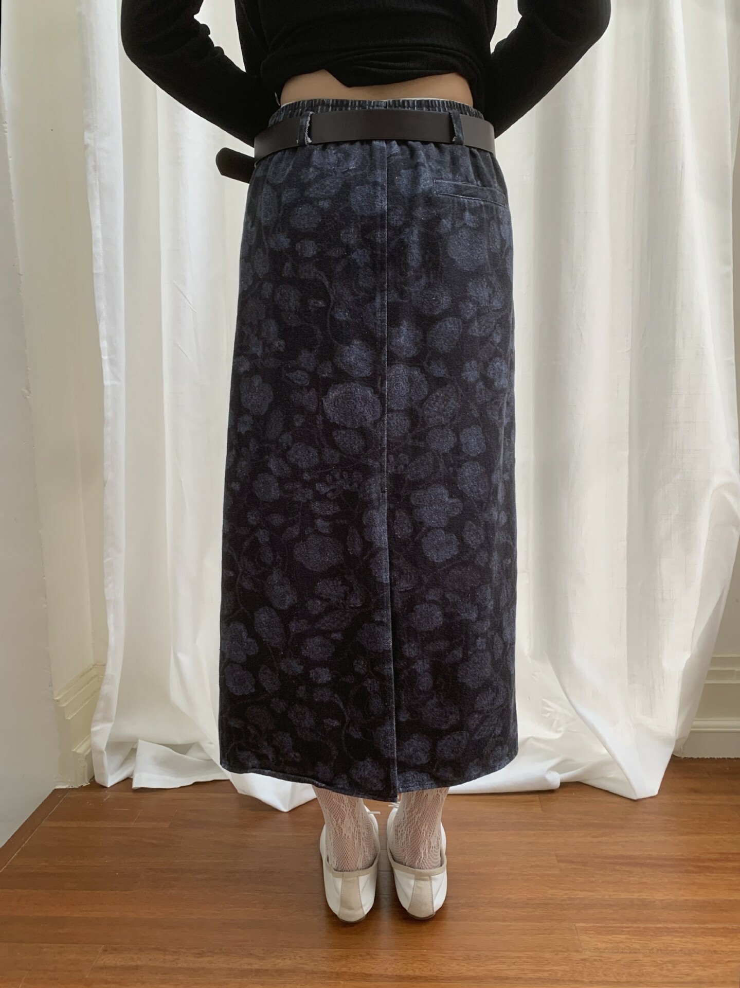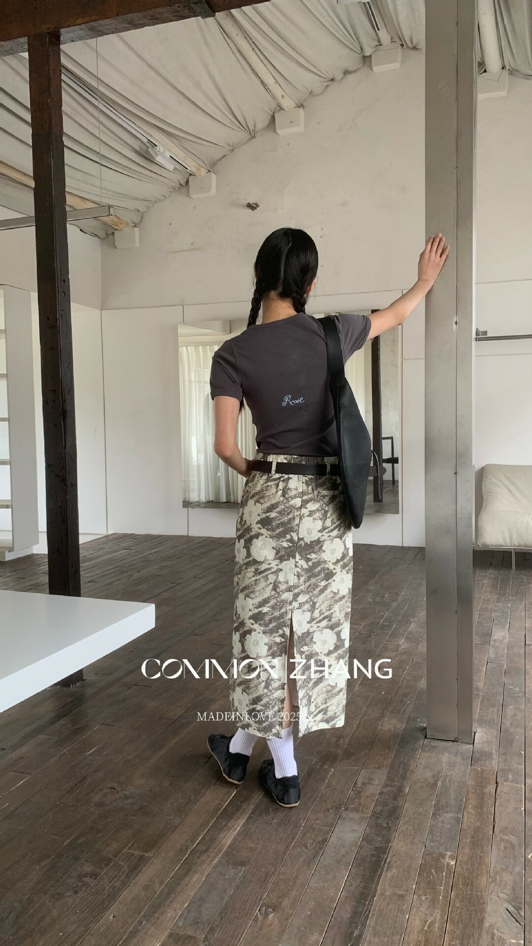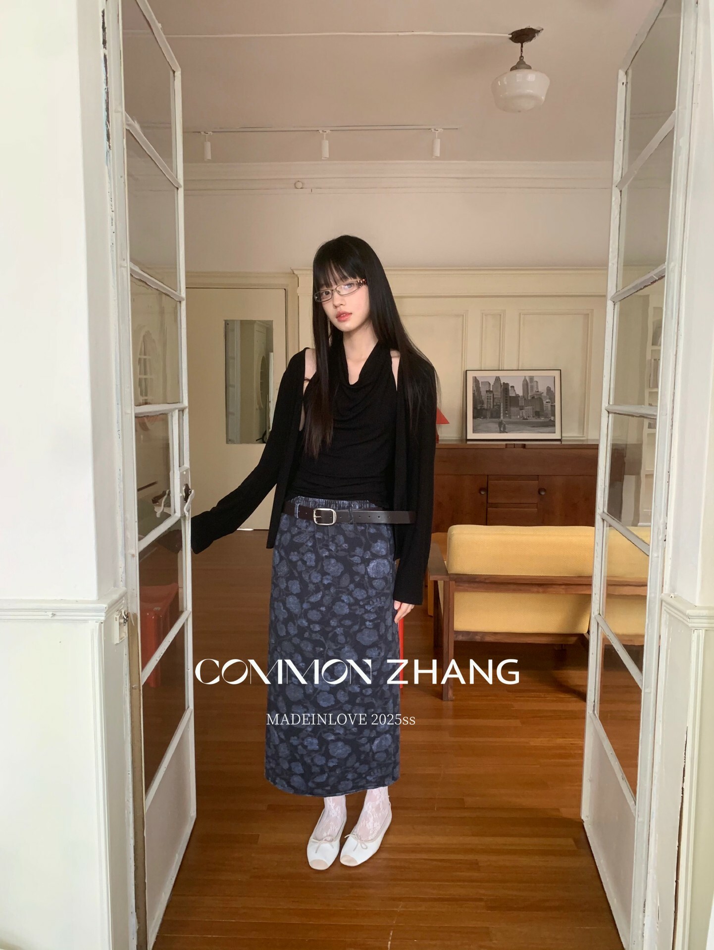 *o-ha-you*【FCZ102123】夏季新中式復古花卉印花高腰開叉A字一步牛仔半身裙-2色
