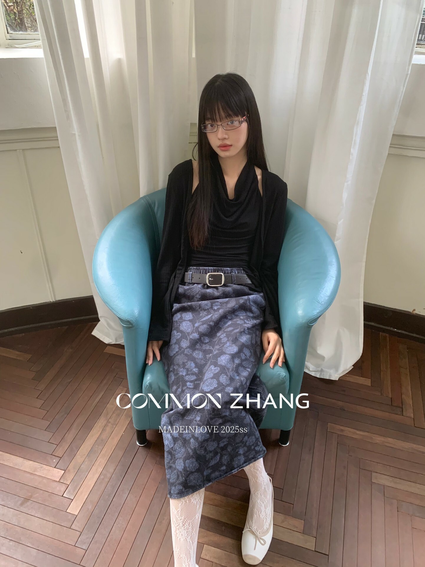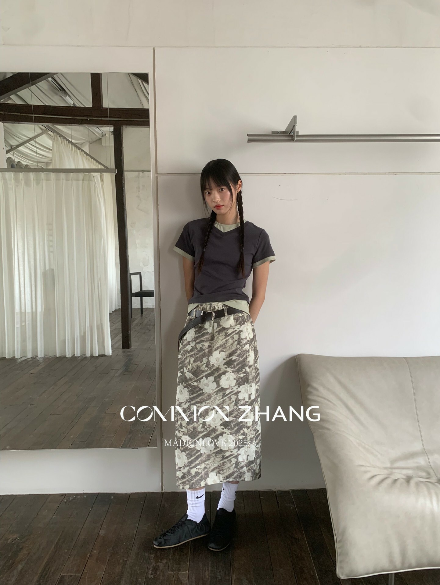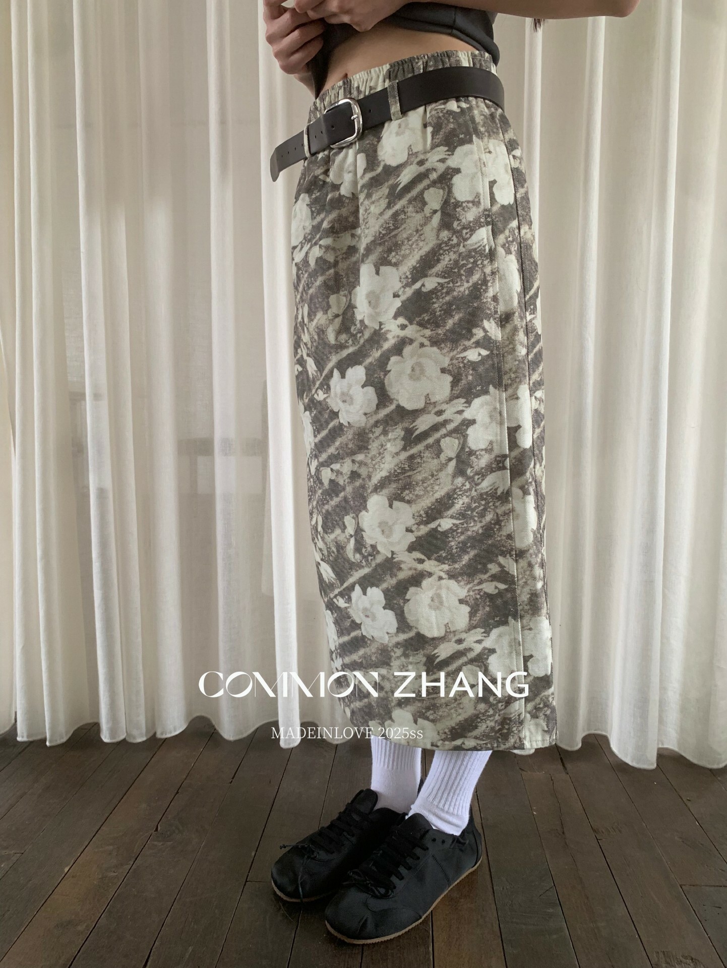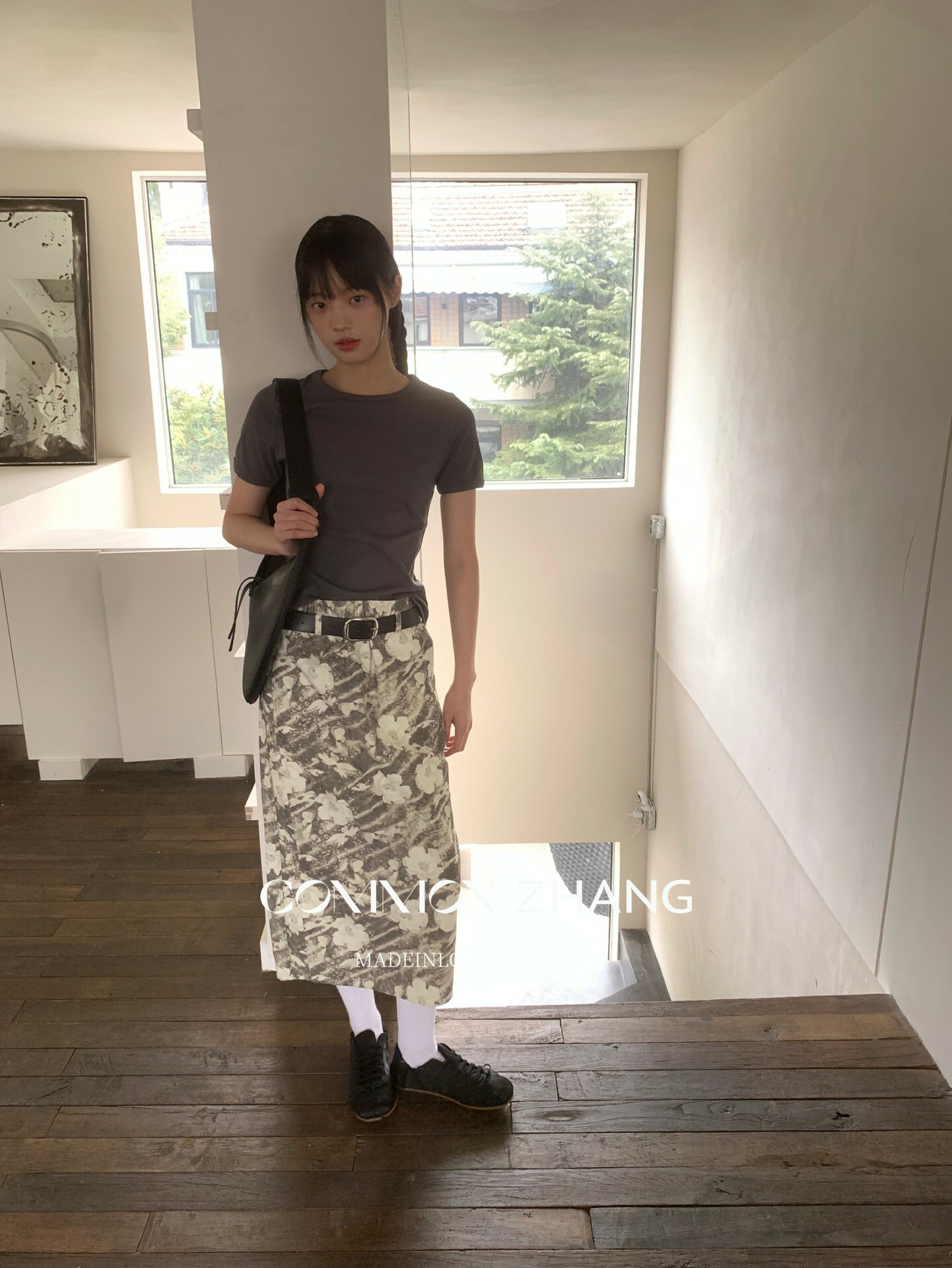 *o-ha-you*【FCZ102123】夏季新中式復古花卉印花高腰開叉A字一步牛仔半身裙-2色