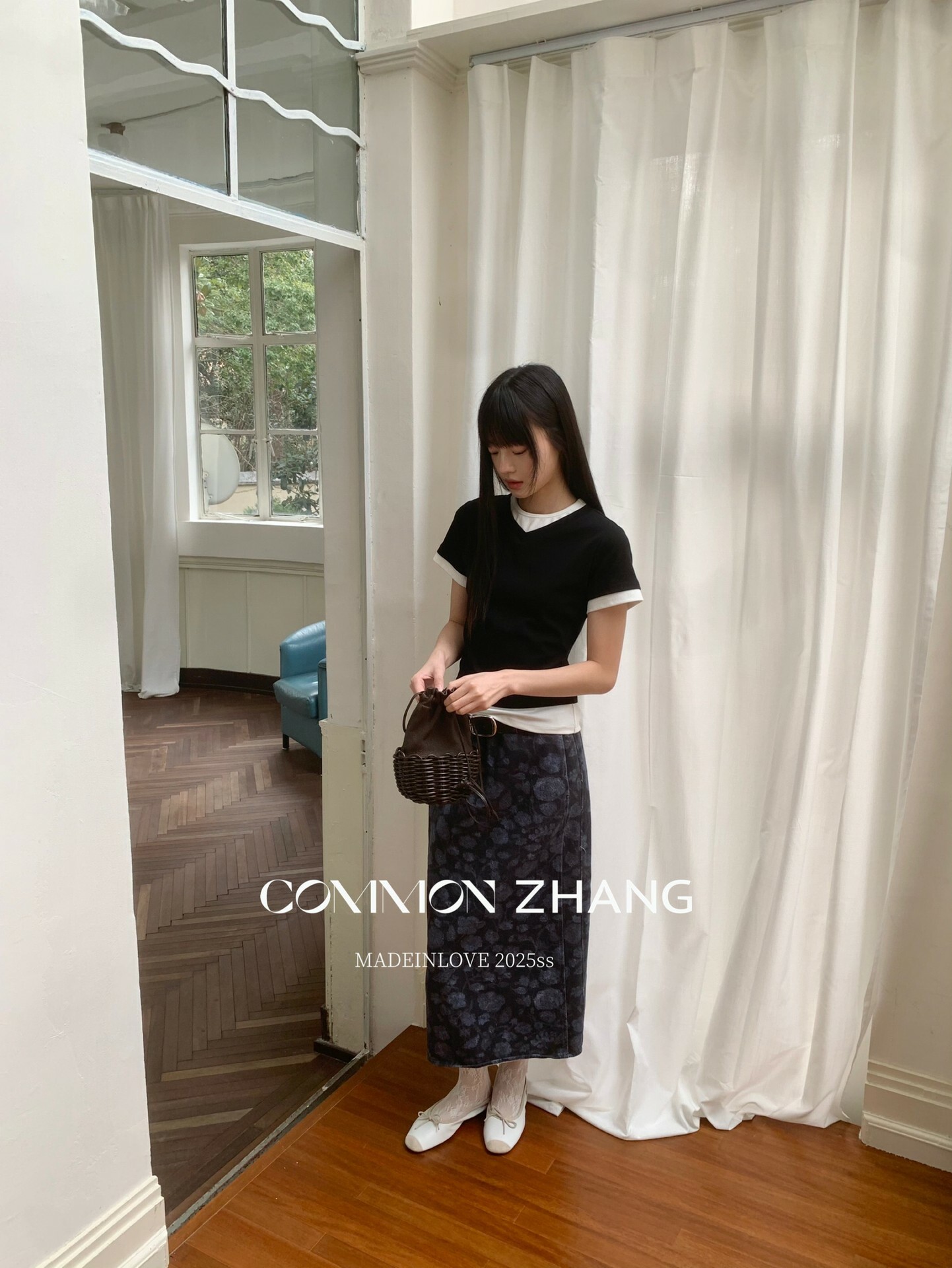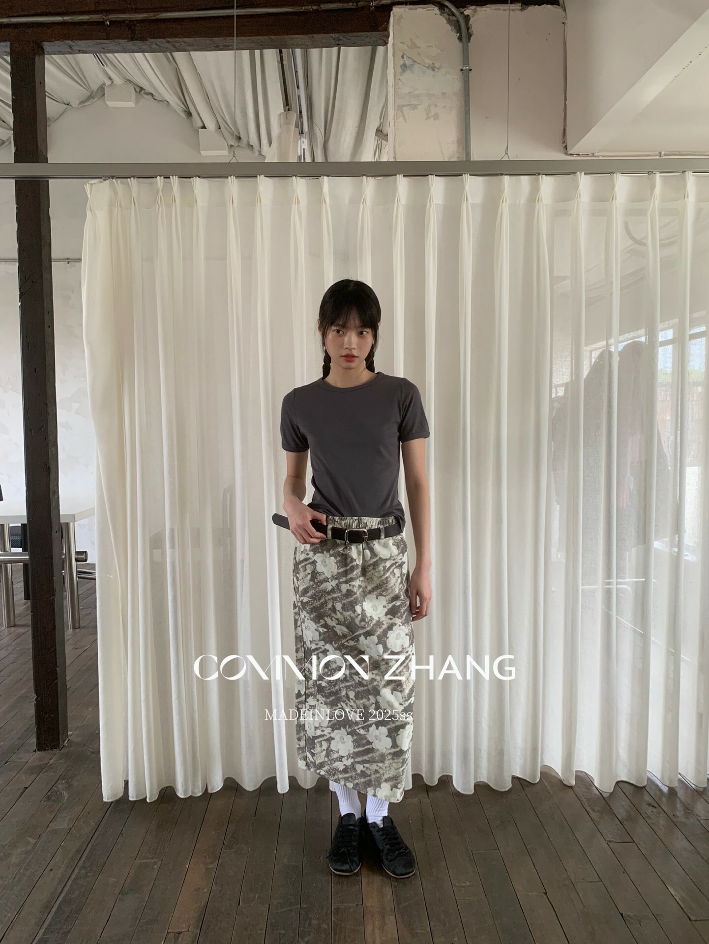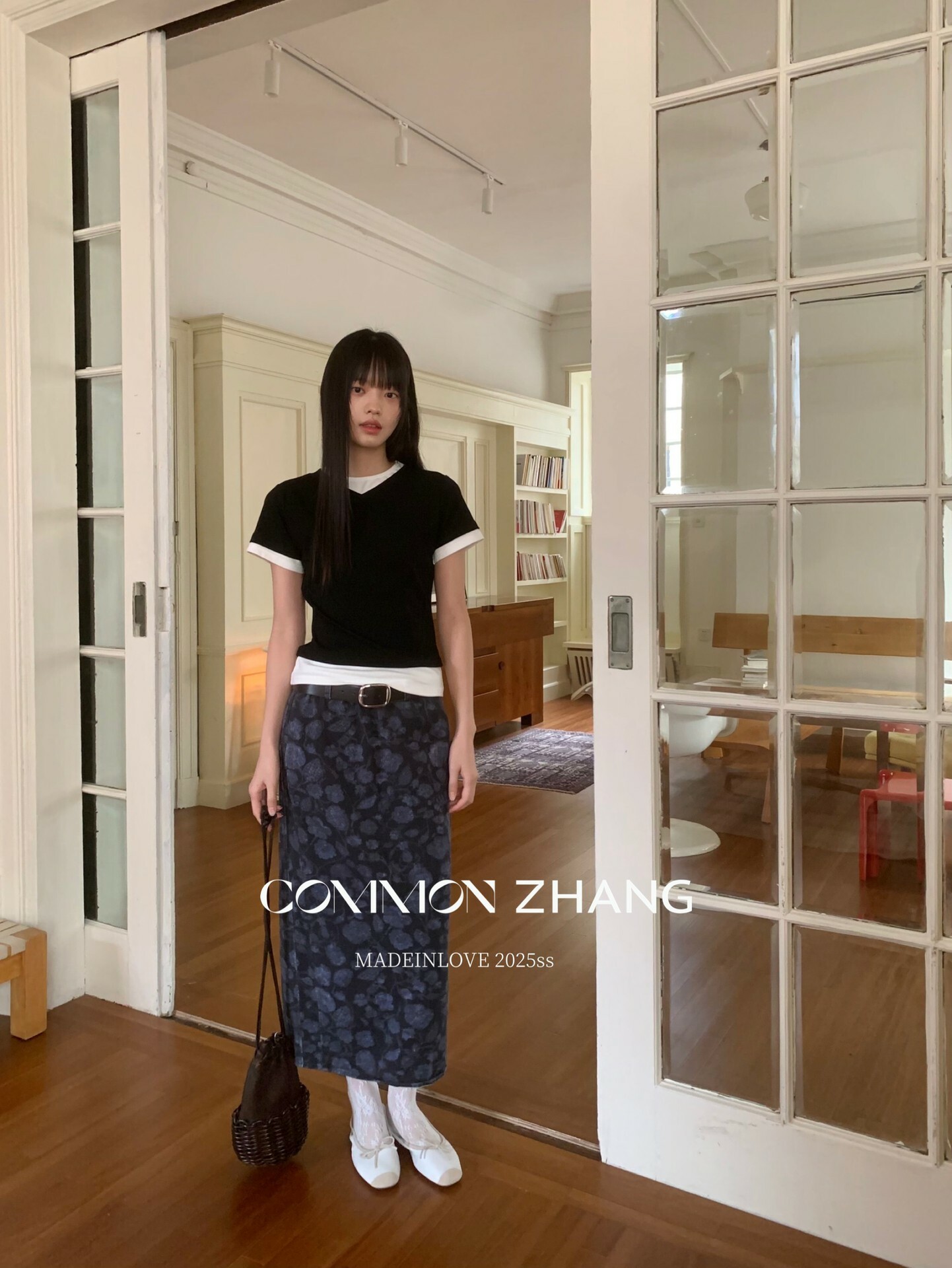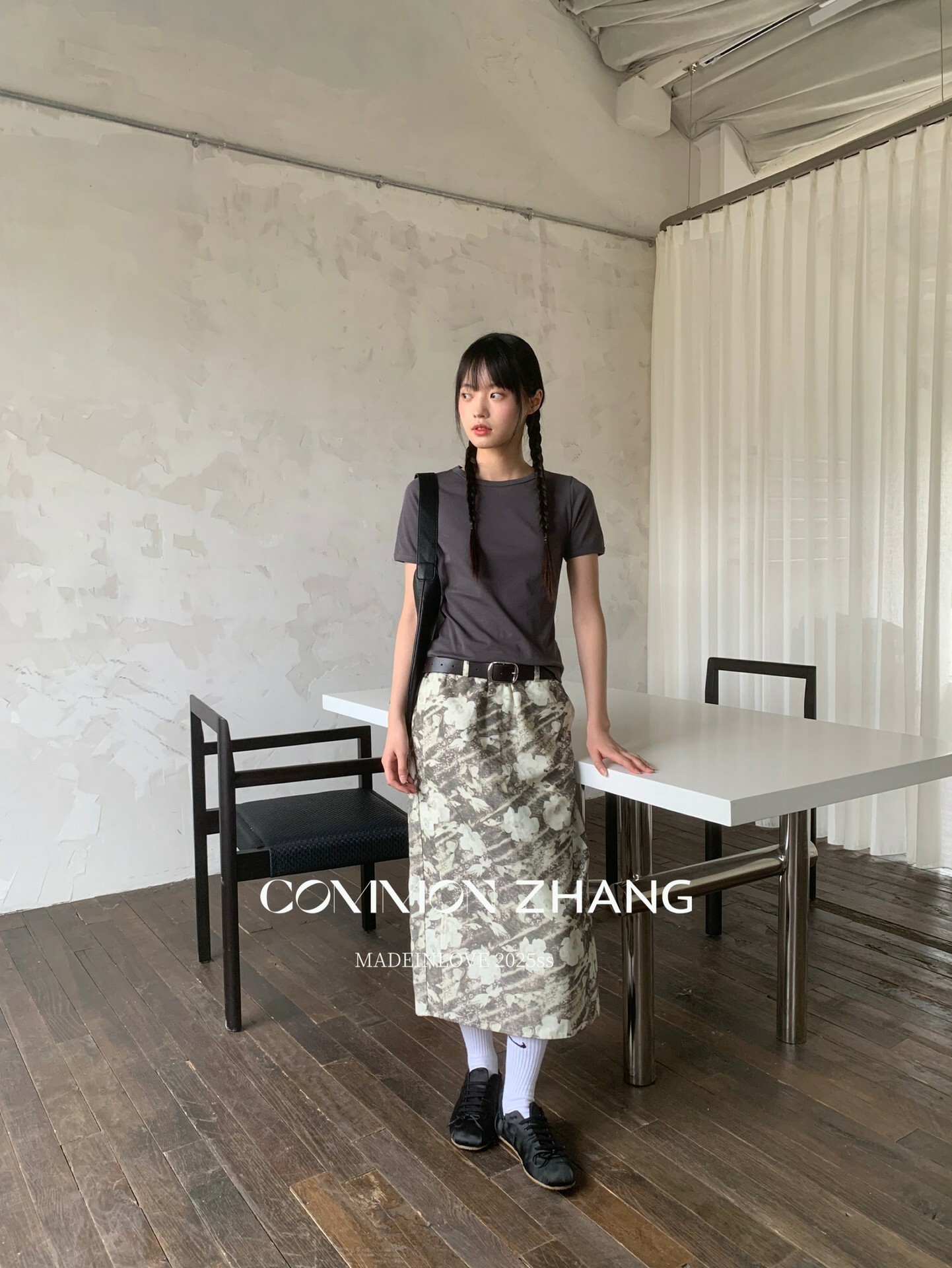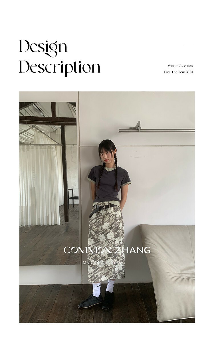 *o-ha-you*【FCZ102123】夏季新中式復古花卉印花高腰開叉A字一步牛仔半身裙-2色