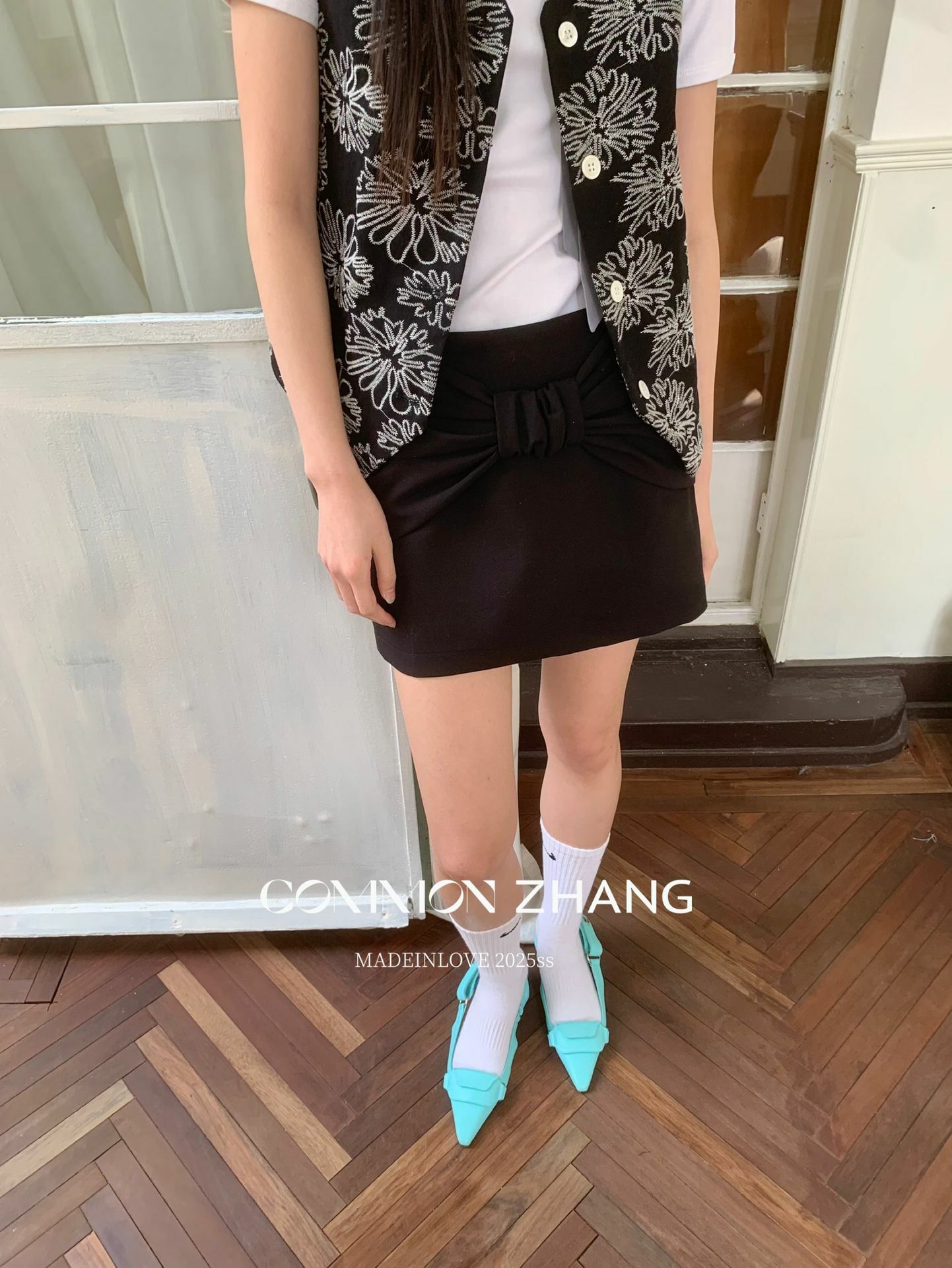*o-ha-you*【FCZ102155】夏季新款韓風減齡少女感蝴蝶結壓皺高腰百搭A字短裙-2色-如有需要請先諮詢