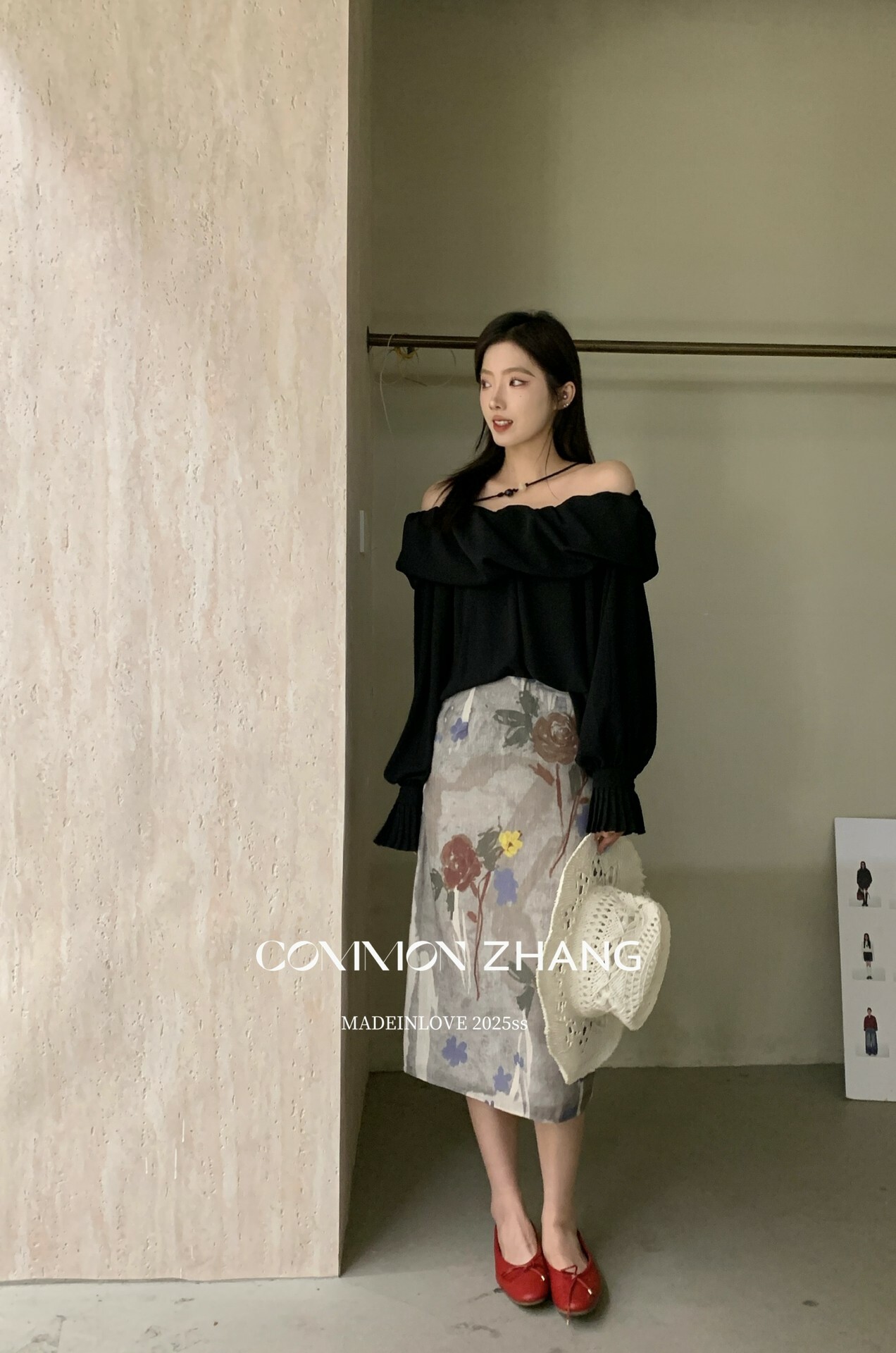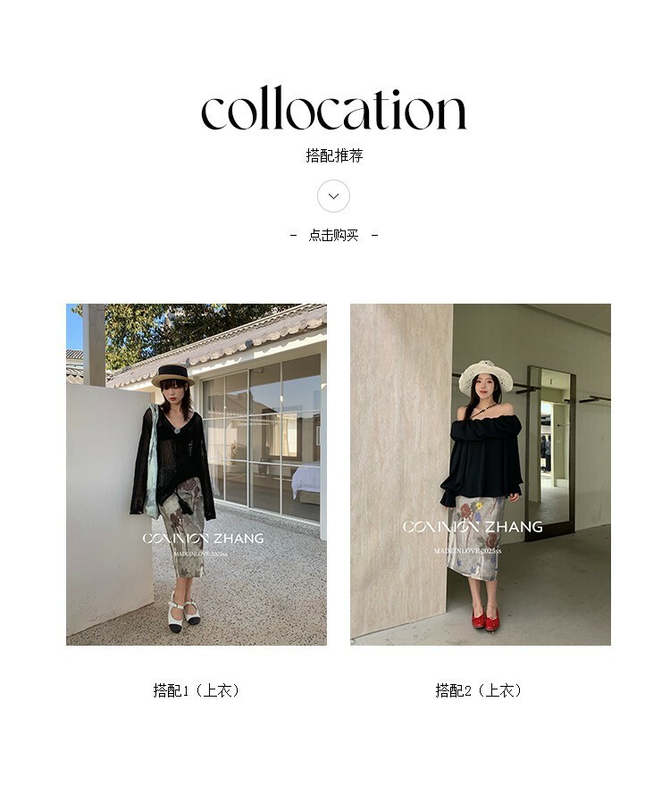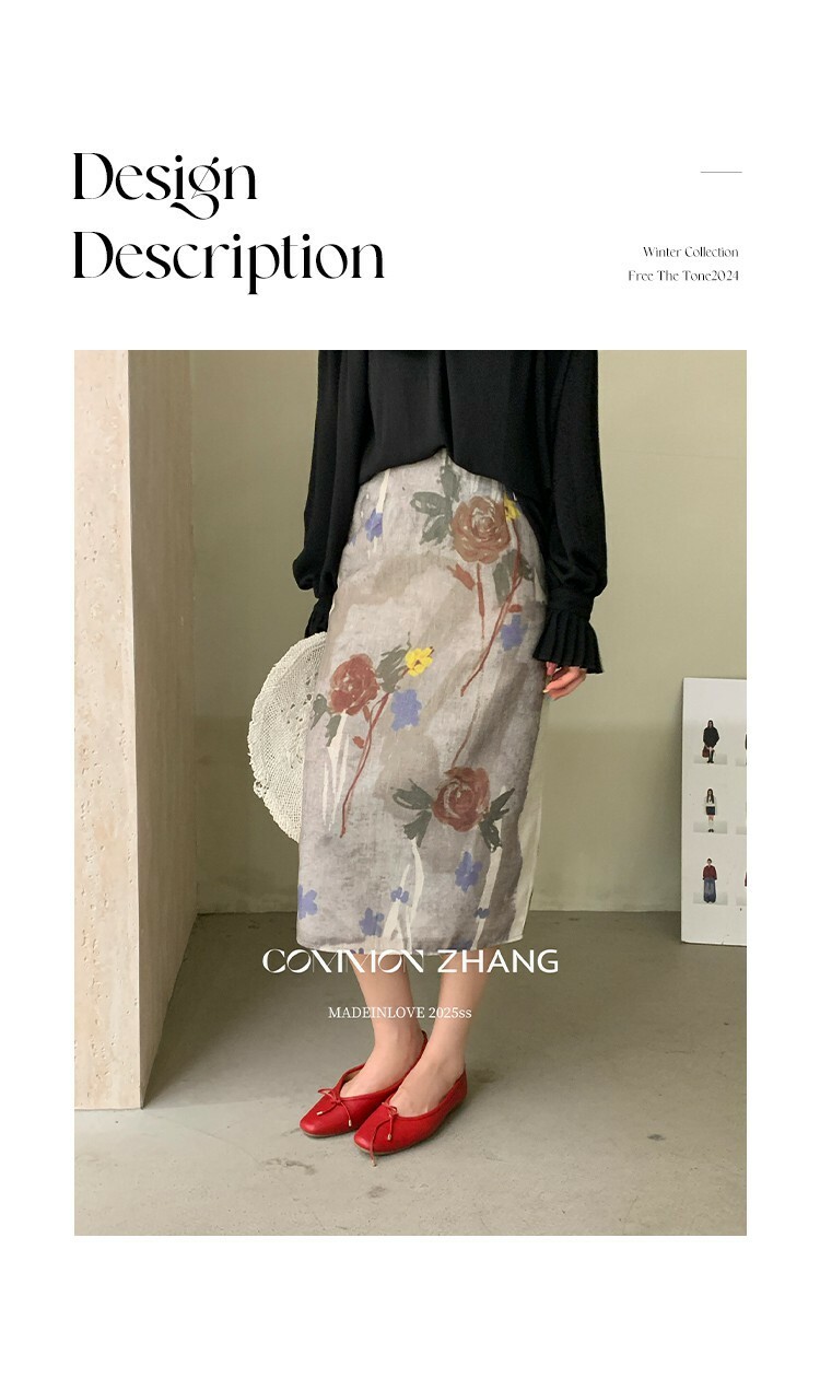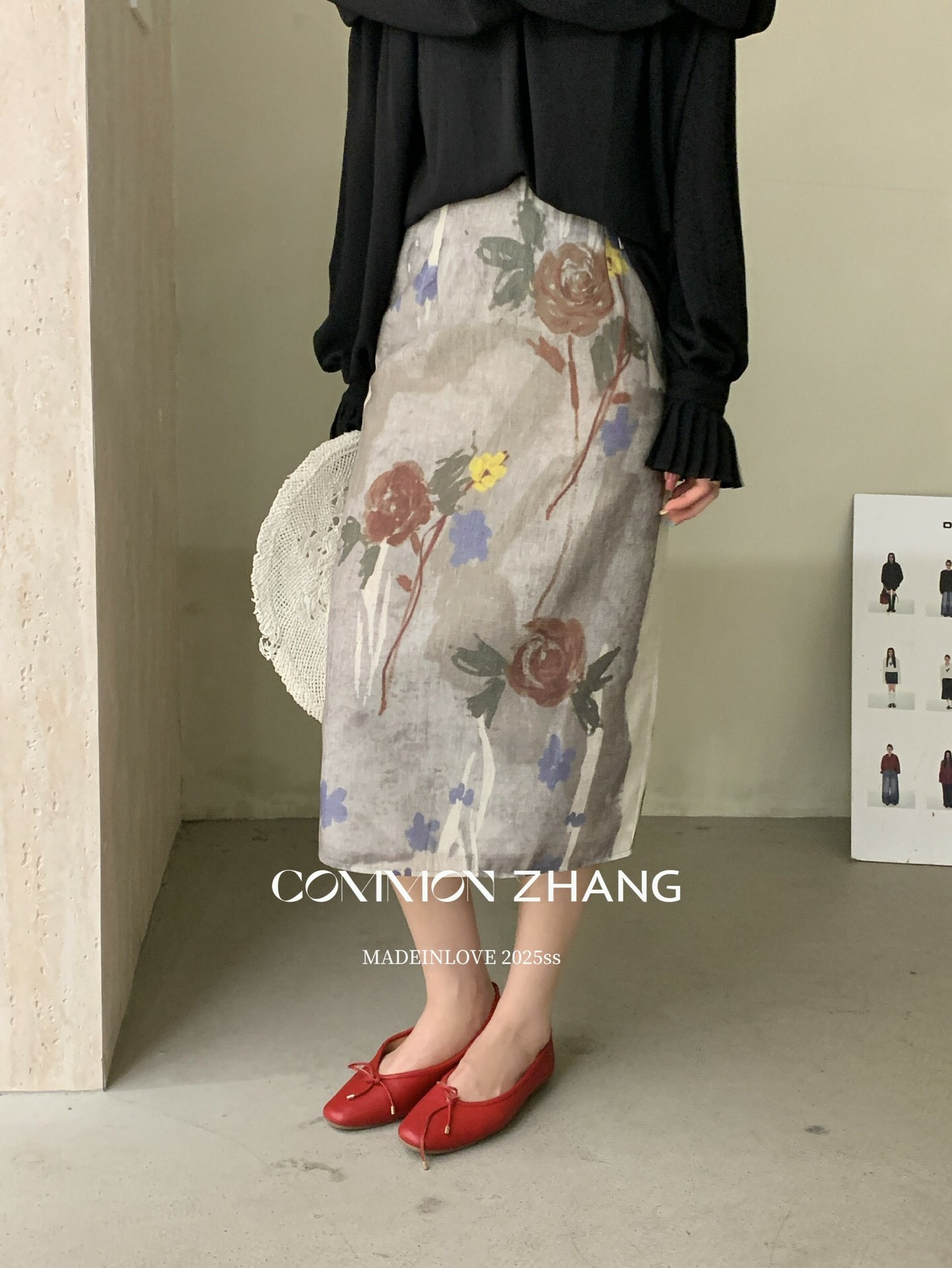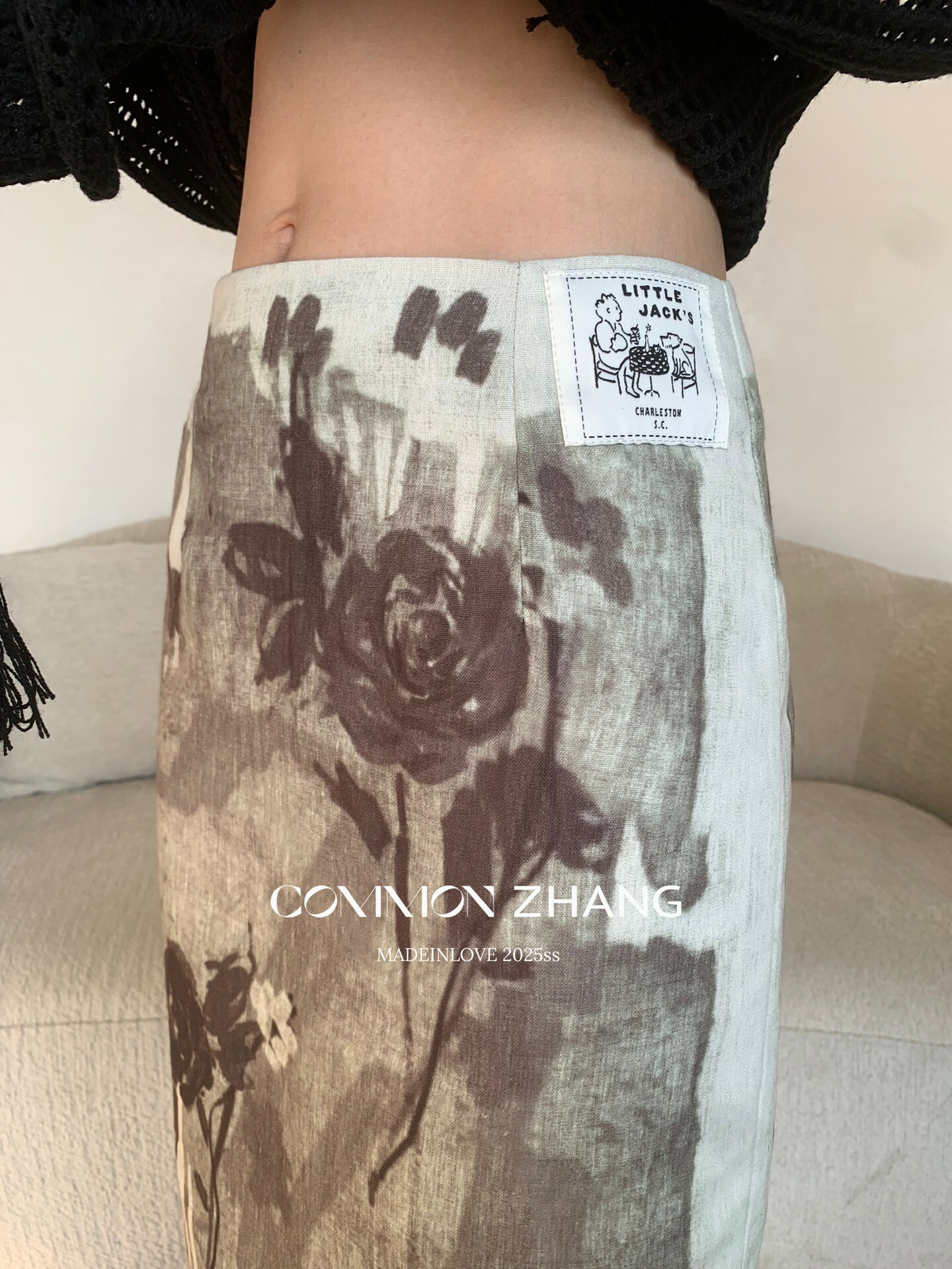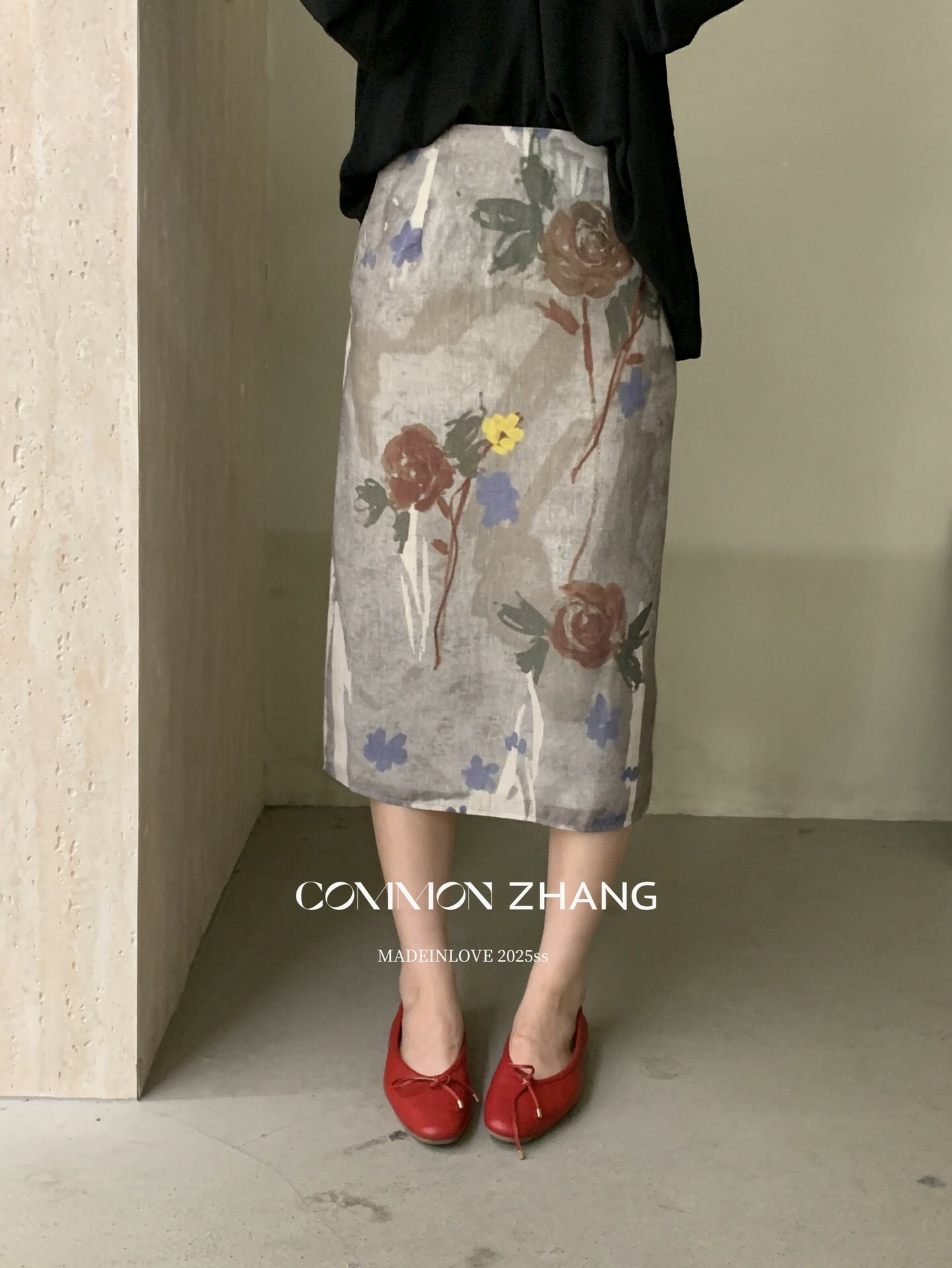 *o-ha-you*【FCZ102166】春季新中式植物花卉印花質感高腰開叉A字包臀半身裙-2色