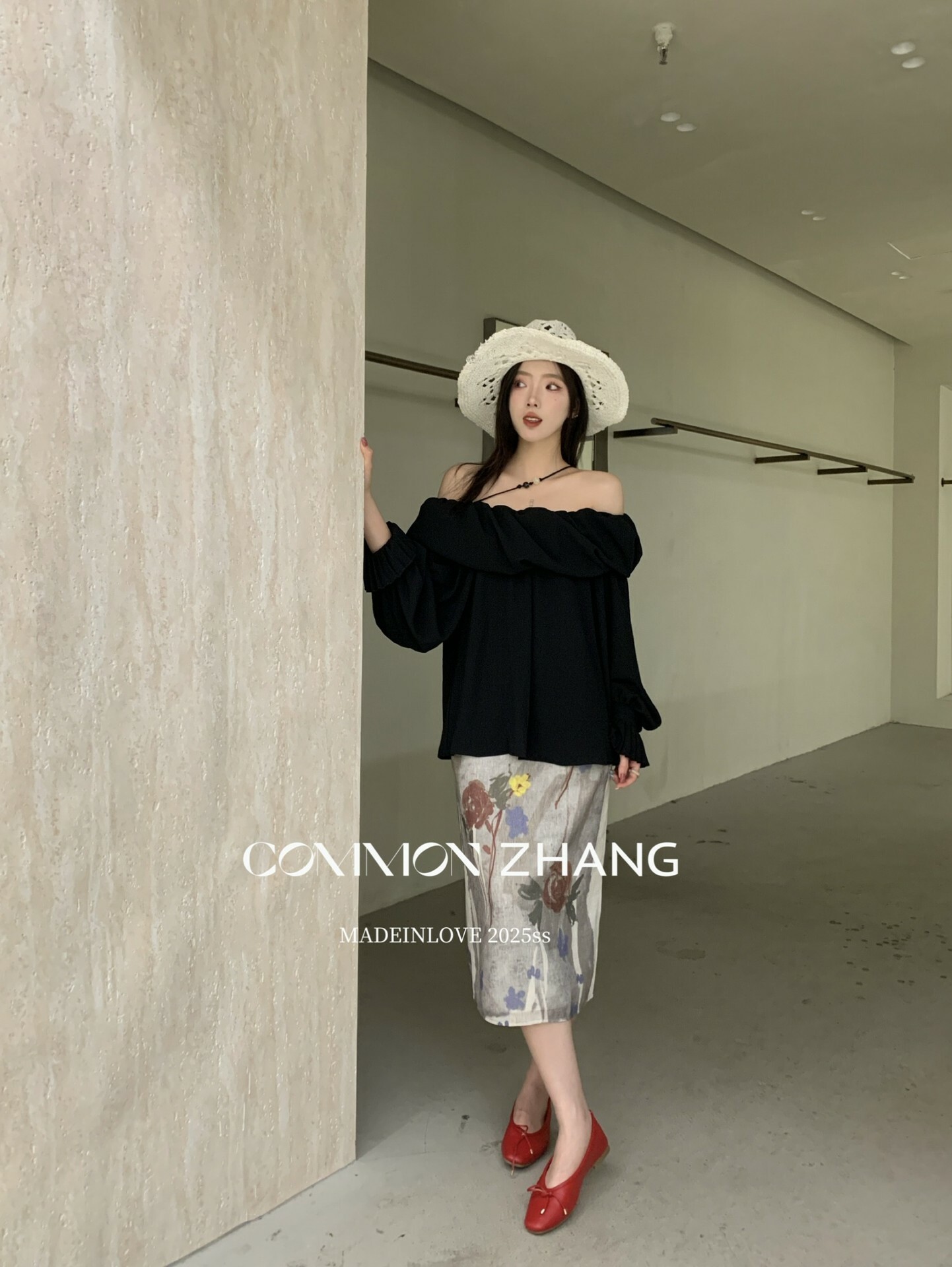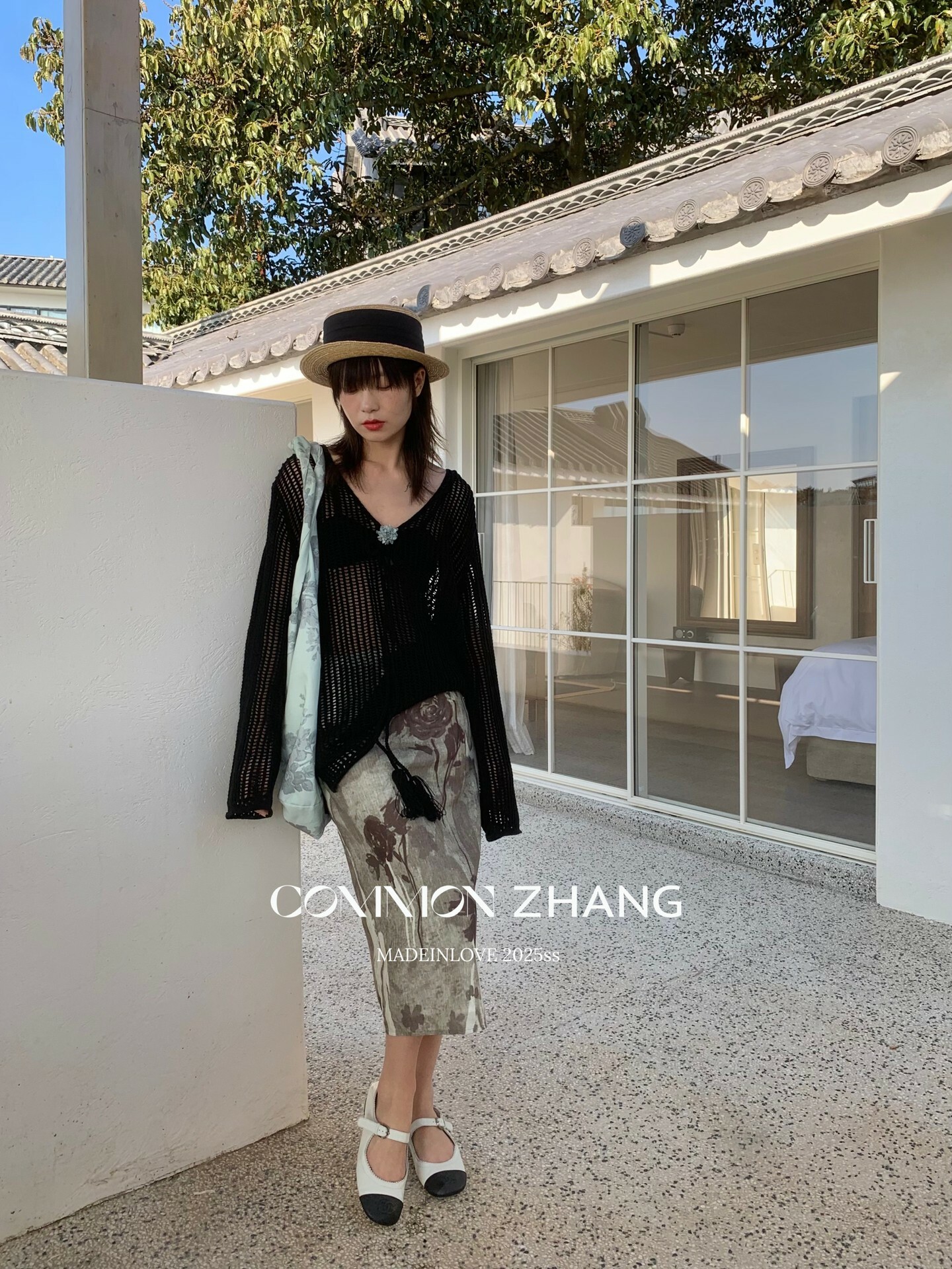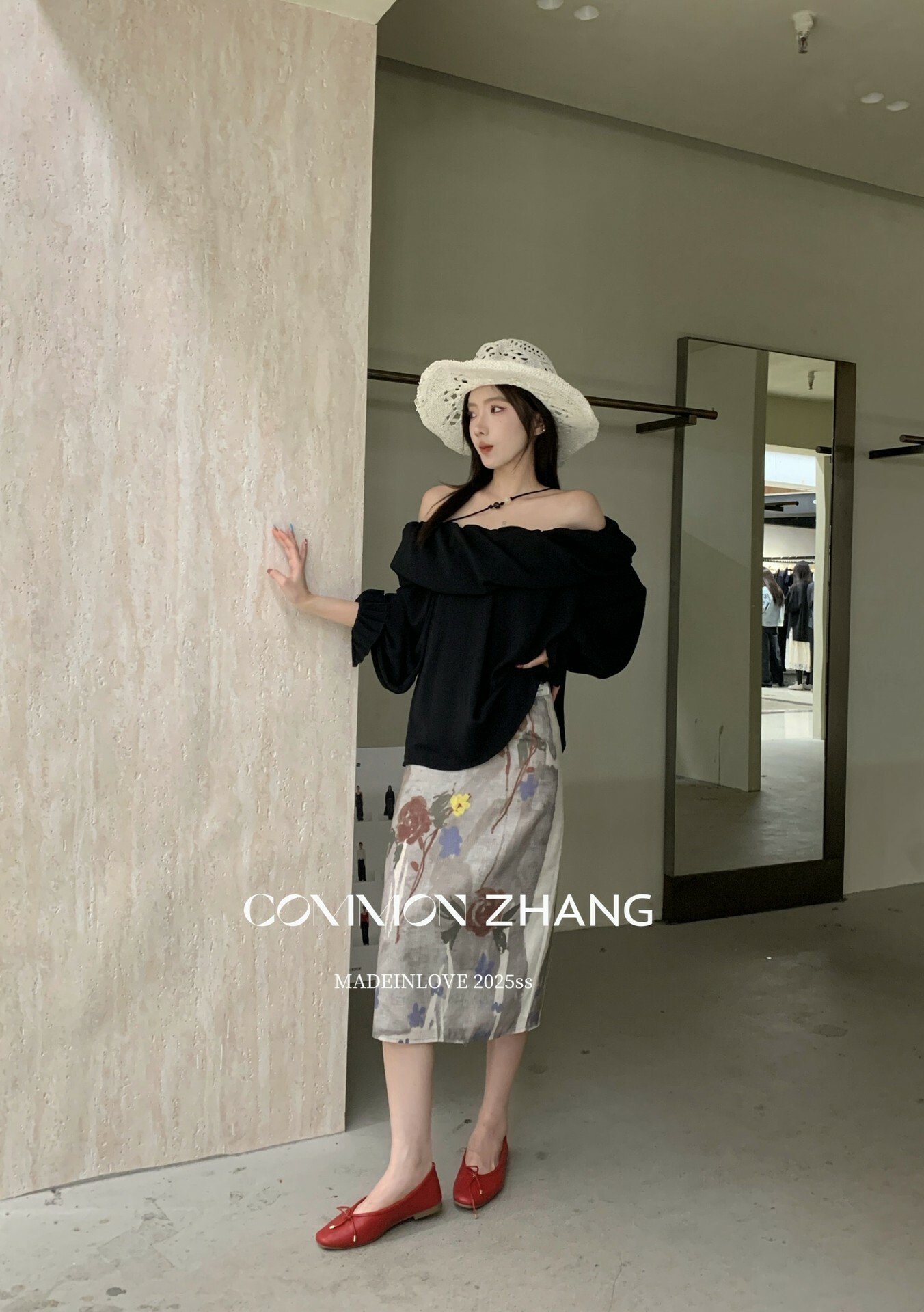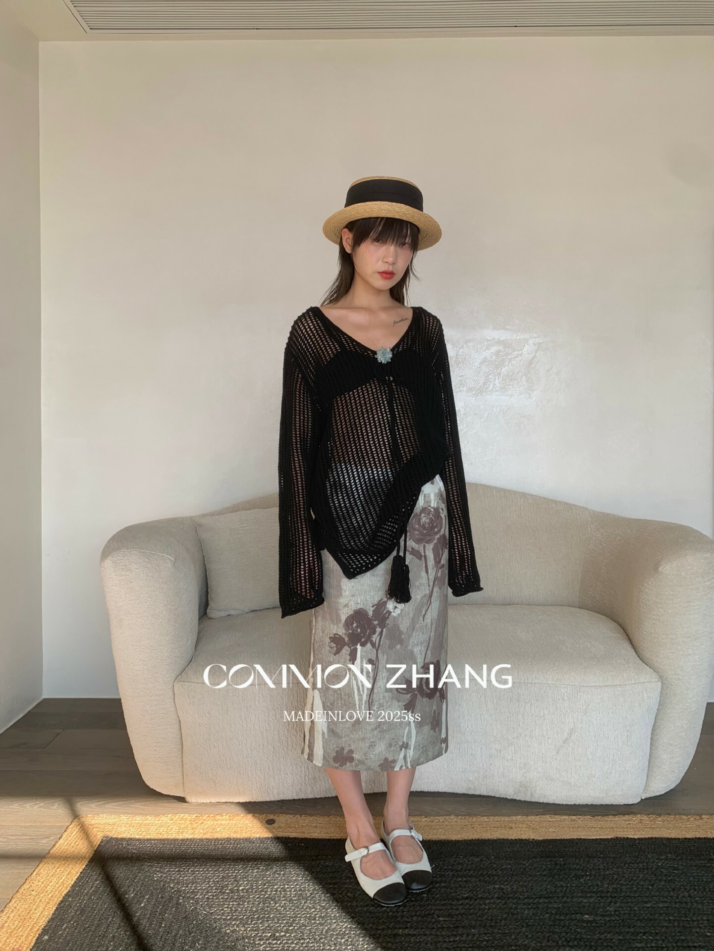 *o-ha-you*【FCZ102166】春季新中式植物花卉印花質感高腰開叉A字包臀半身裙-2色