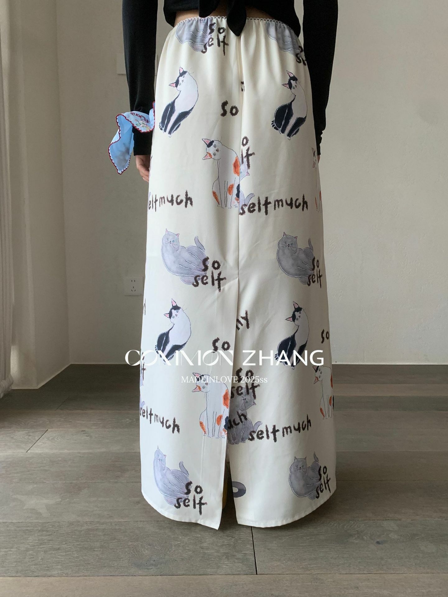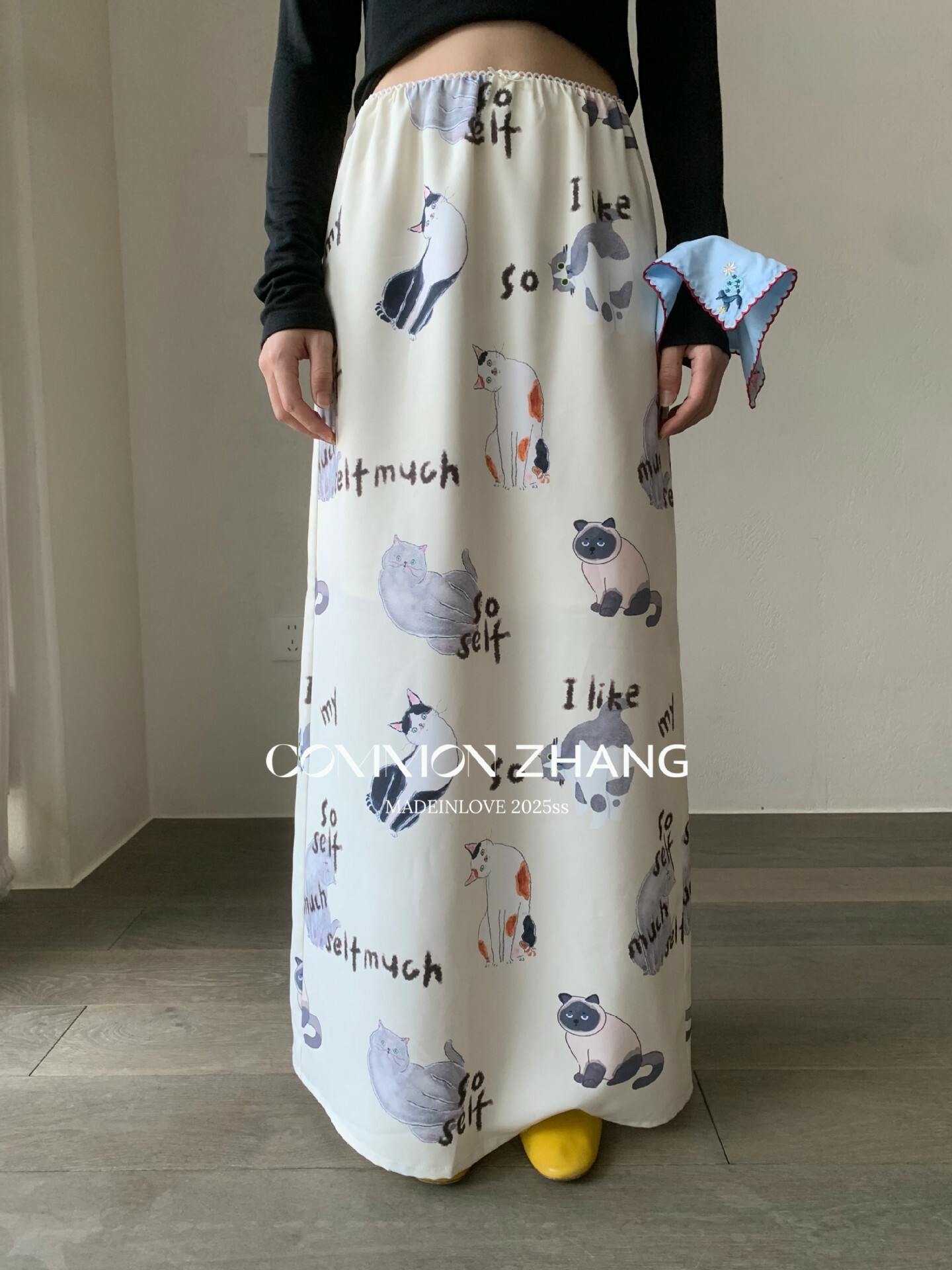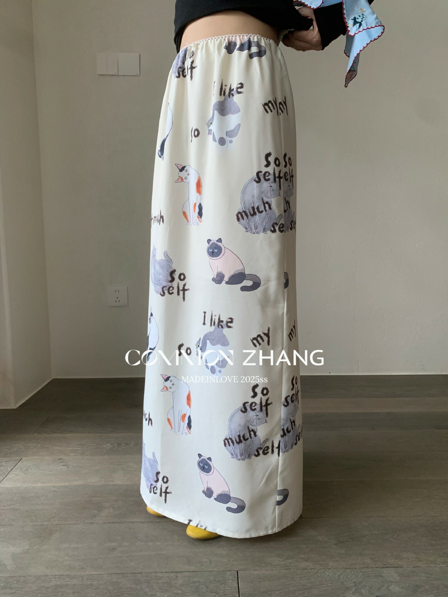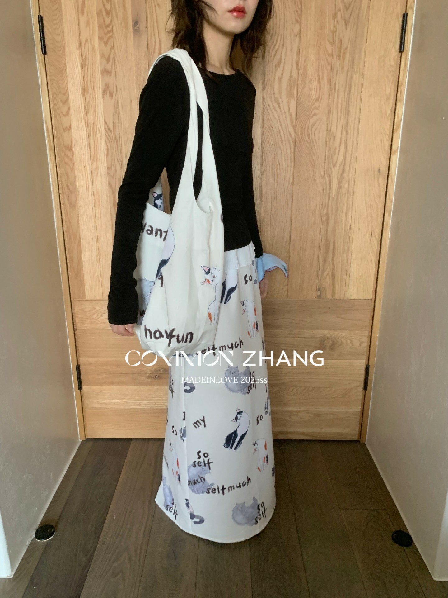 *o-ha-you*【FCZ102205-1】韓版可愛動漫卡通印花減齡高腰垂感百搭A字半身裙-2色-如有需要請先諮詢