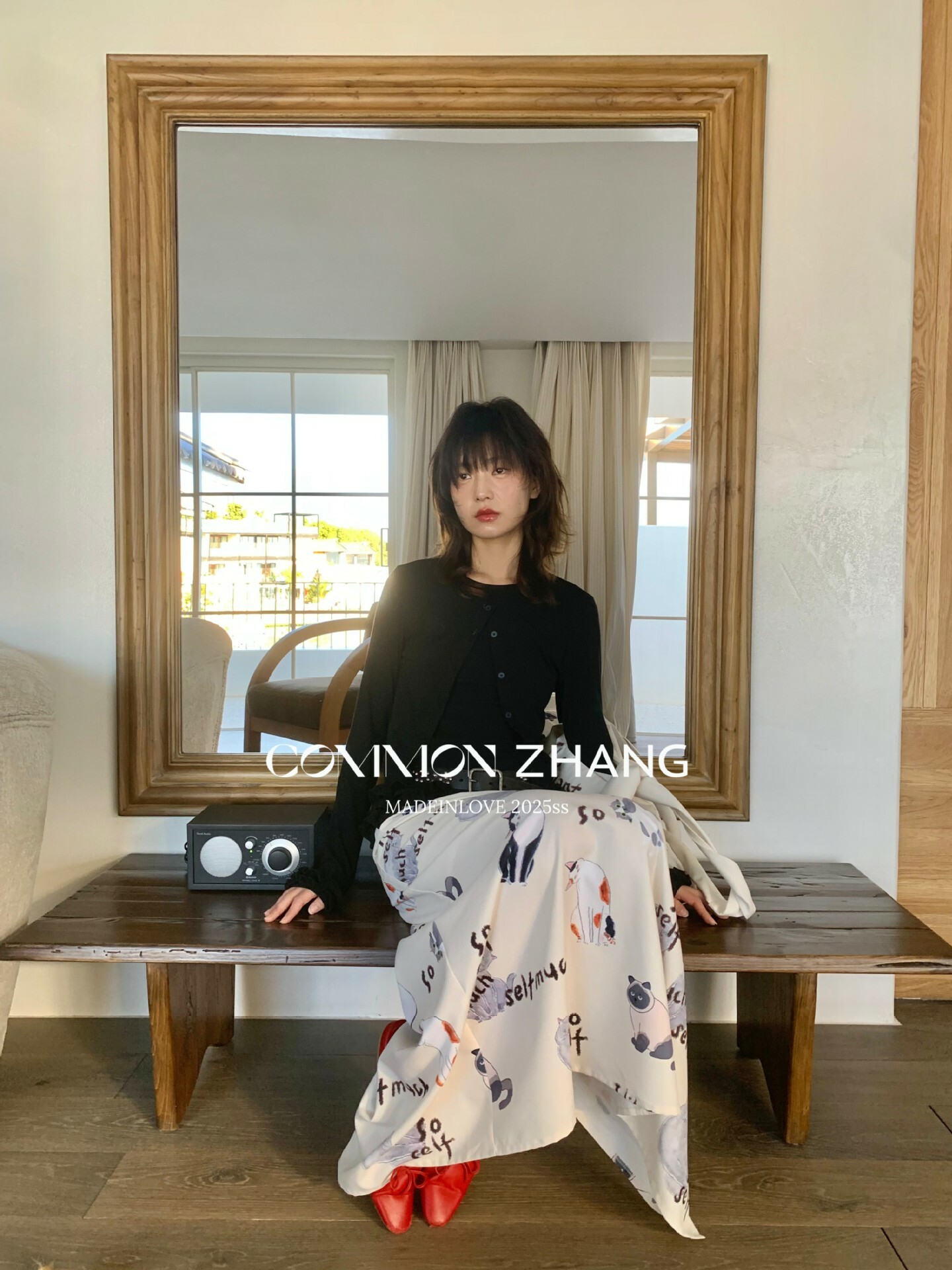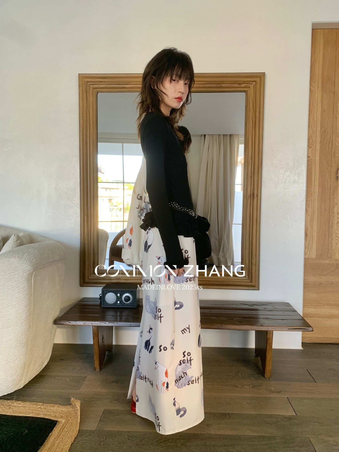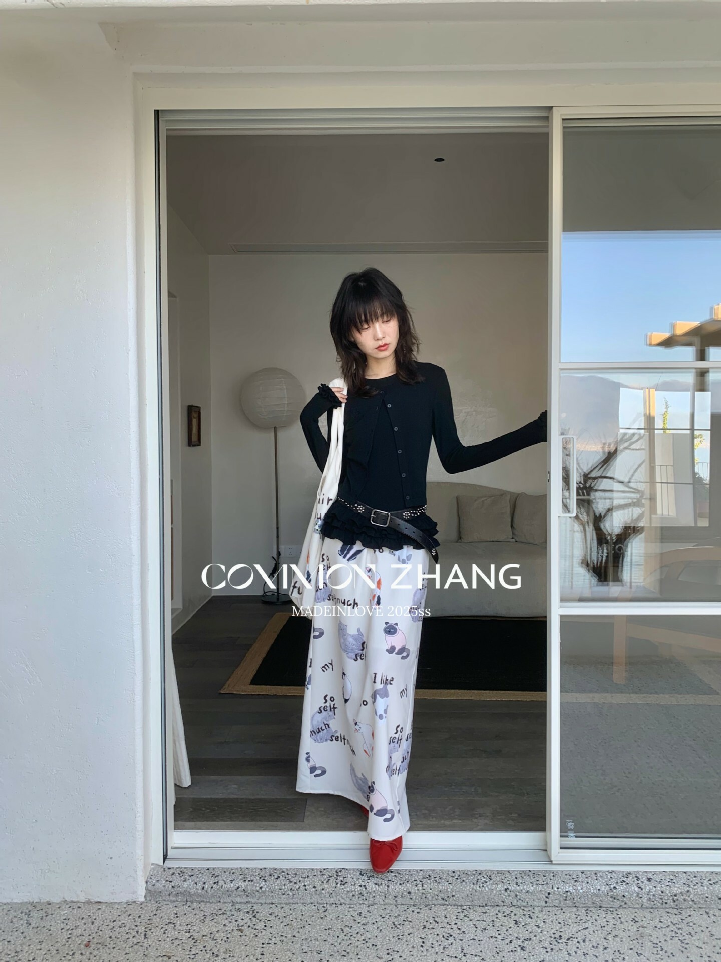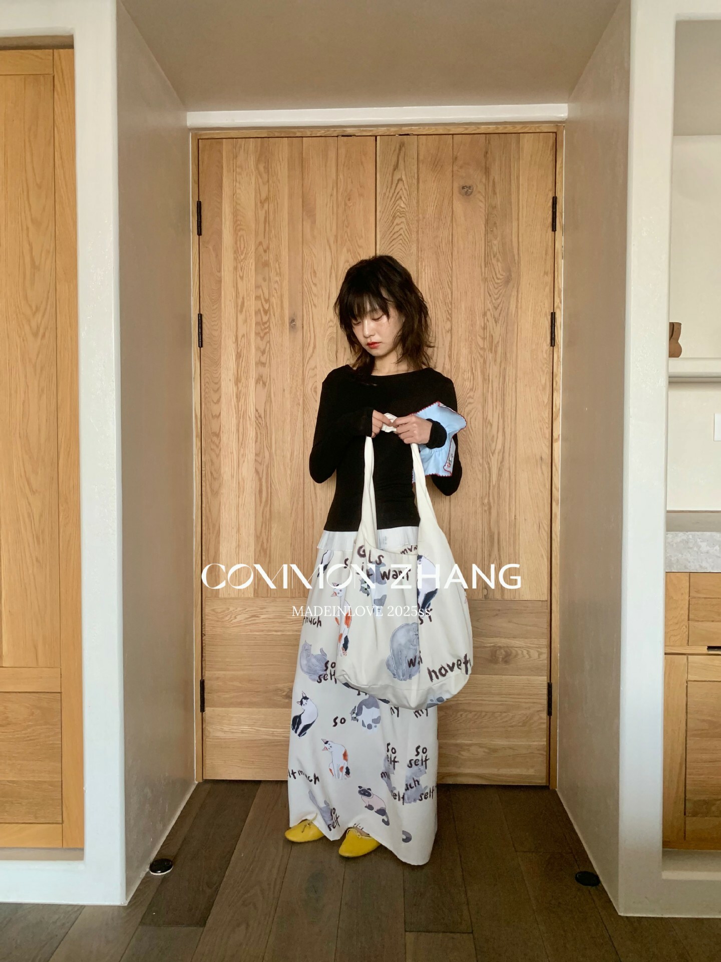 *o-ha-you*【FCZ102205-1】韓版可愛動漫卡通印花減齡高腰垂感百搭A字半身裙-2色-如有需要請先諮詢