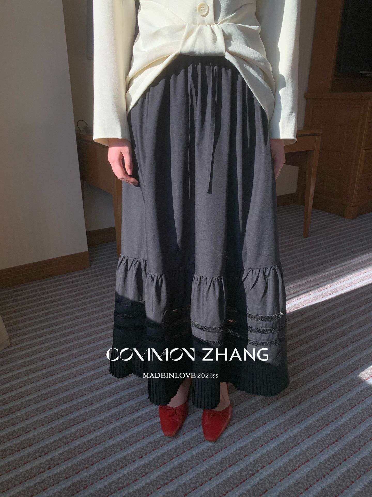 *o-ha-you*【FCZ102269】韓版知性時髦蕾絲拼接束帶高腰顯瘦垂感A字半身裙-2色-如有需要請先諮詢