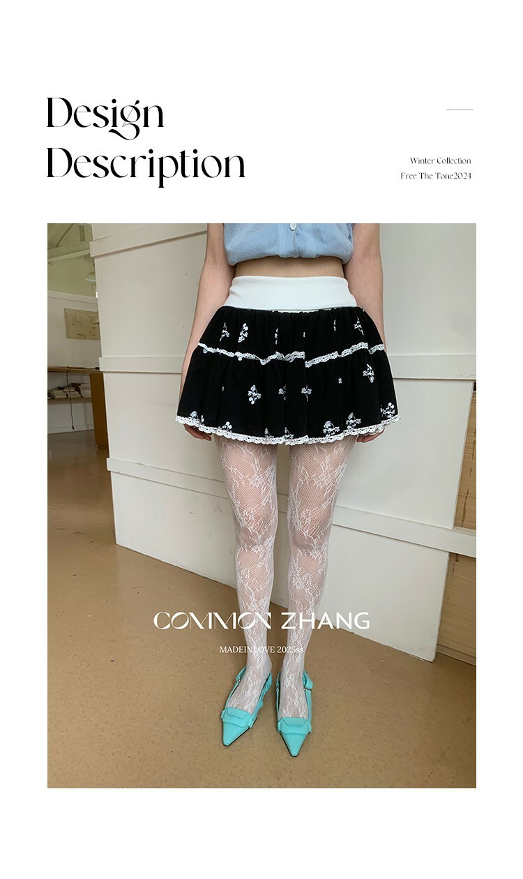 *o-ha-you*【FCZ102363】夏季法式蕾絲拼接花卉印花層次感減齡A字蛋糕短裙-2色
