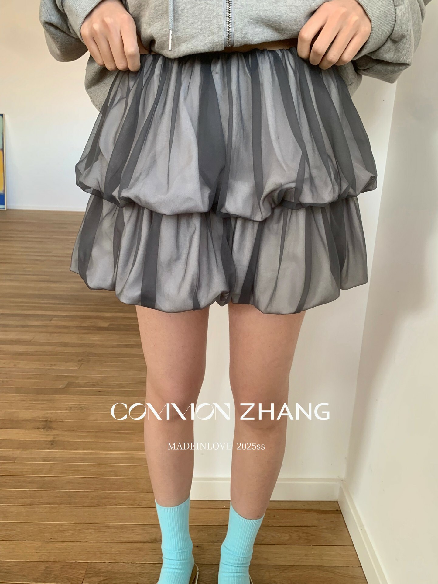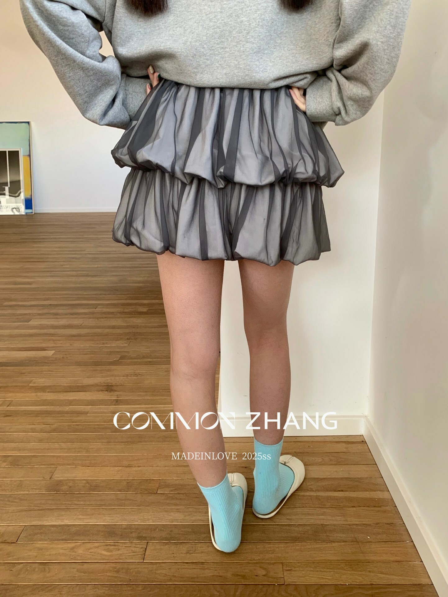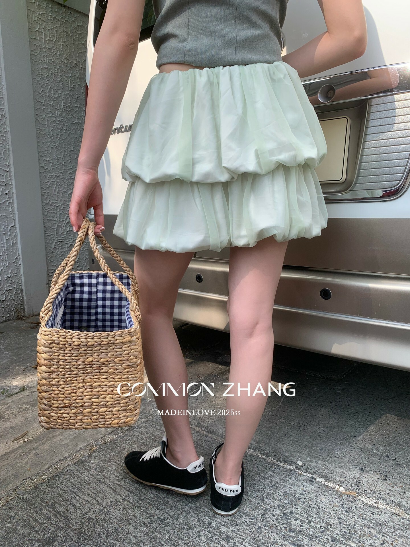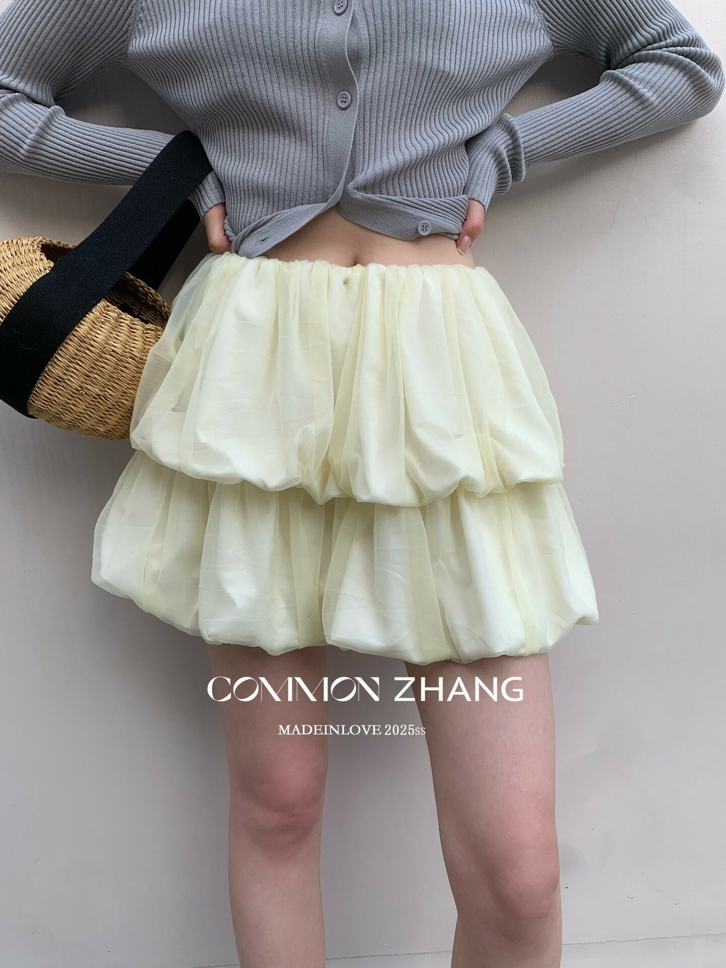 *o-ha-you*【FCZ102387】歐根紗層次垂感壓褶甜美少女純色高腰百搭蛋糕短裙-4色-如有需要請先諮詢