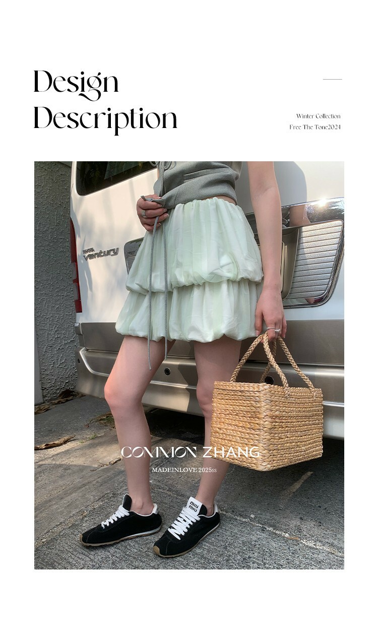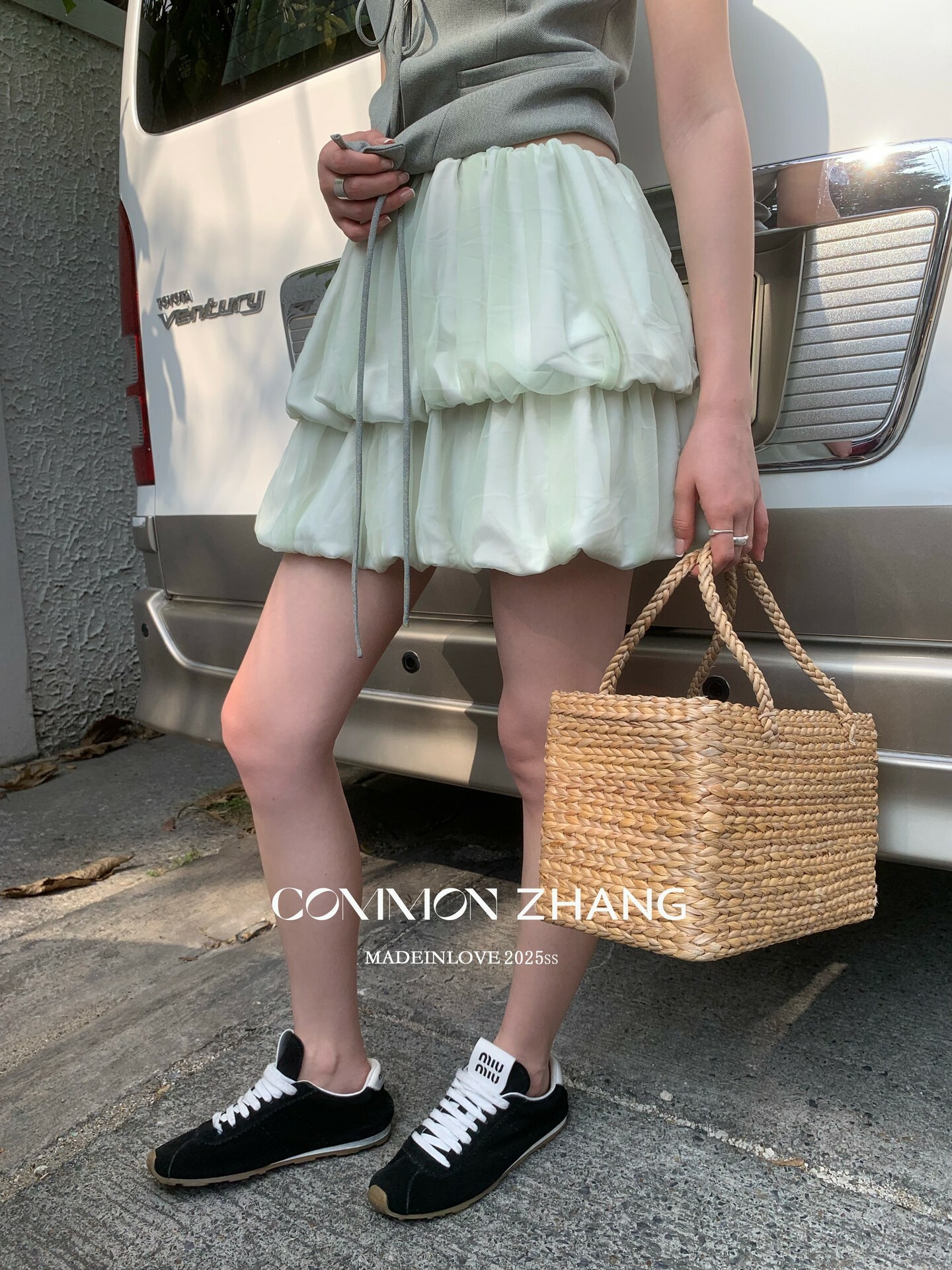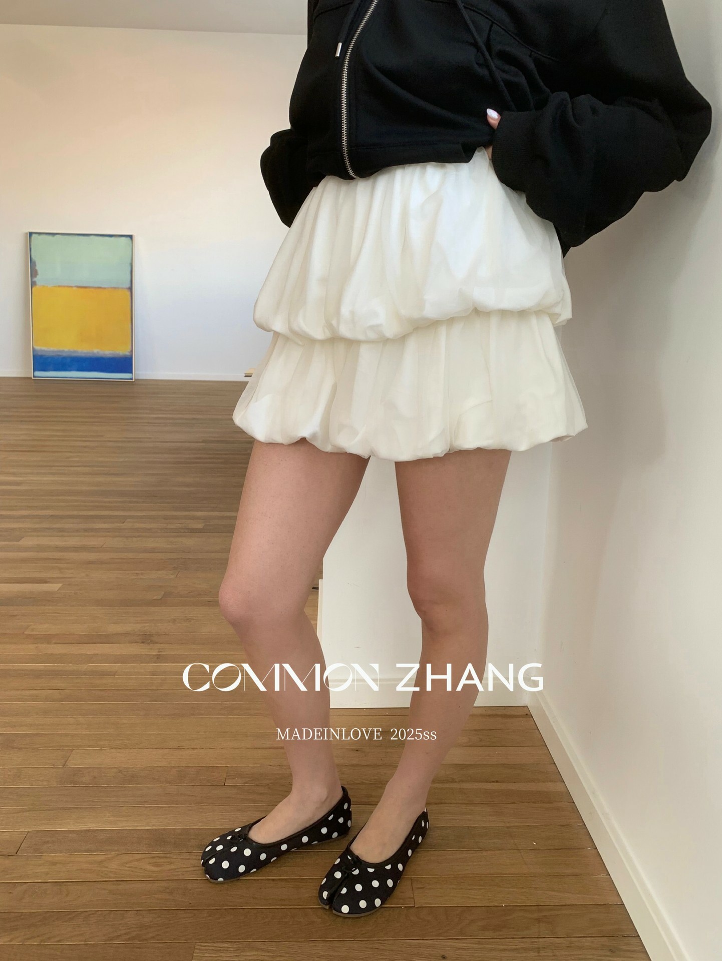 *o-ha-you*【FCZ102387】歐根紗層次垂感壓褶甜美少女純色高腰百搭蛋糕短裙-4色-如有需要請先諮詢